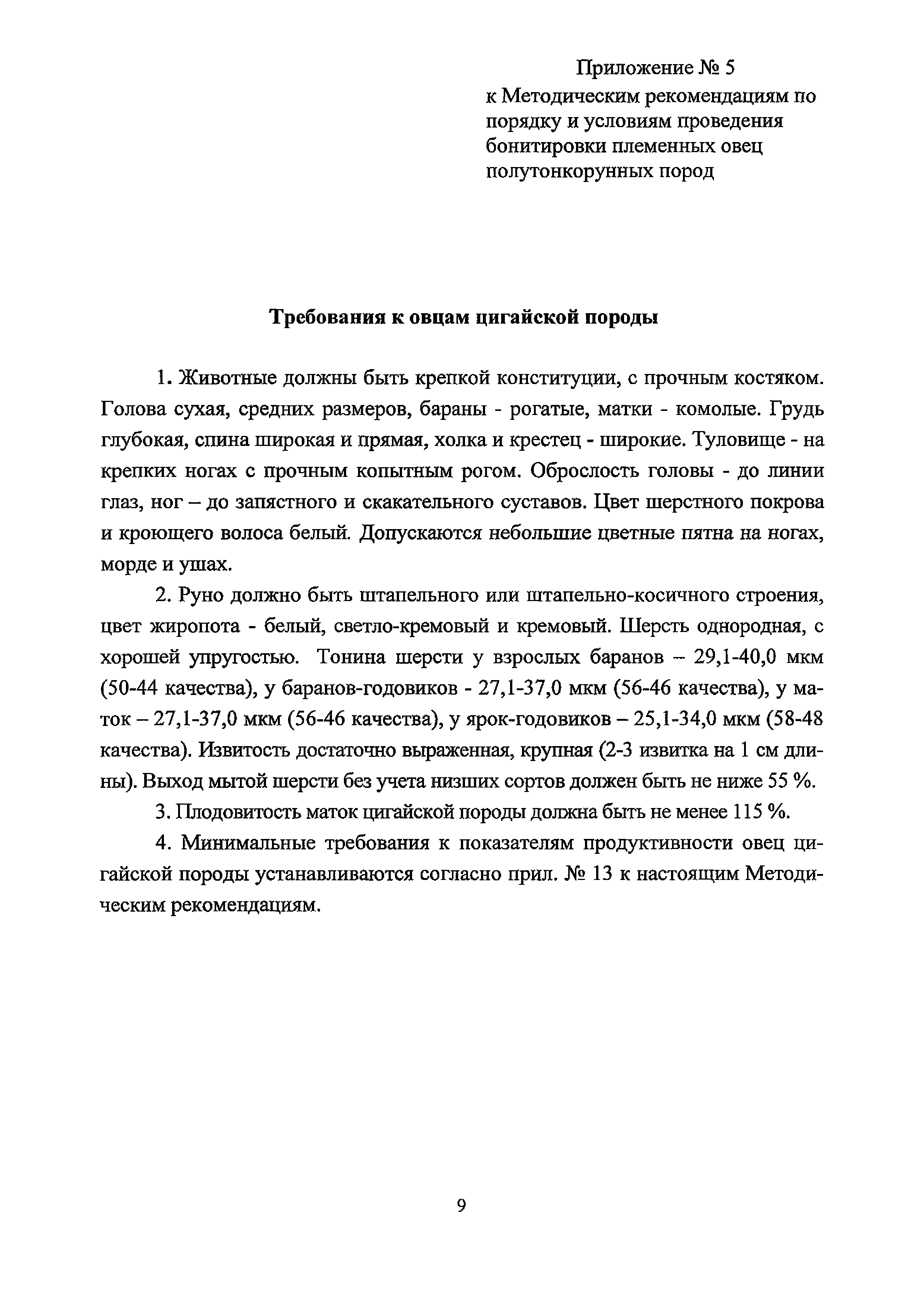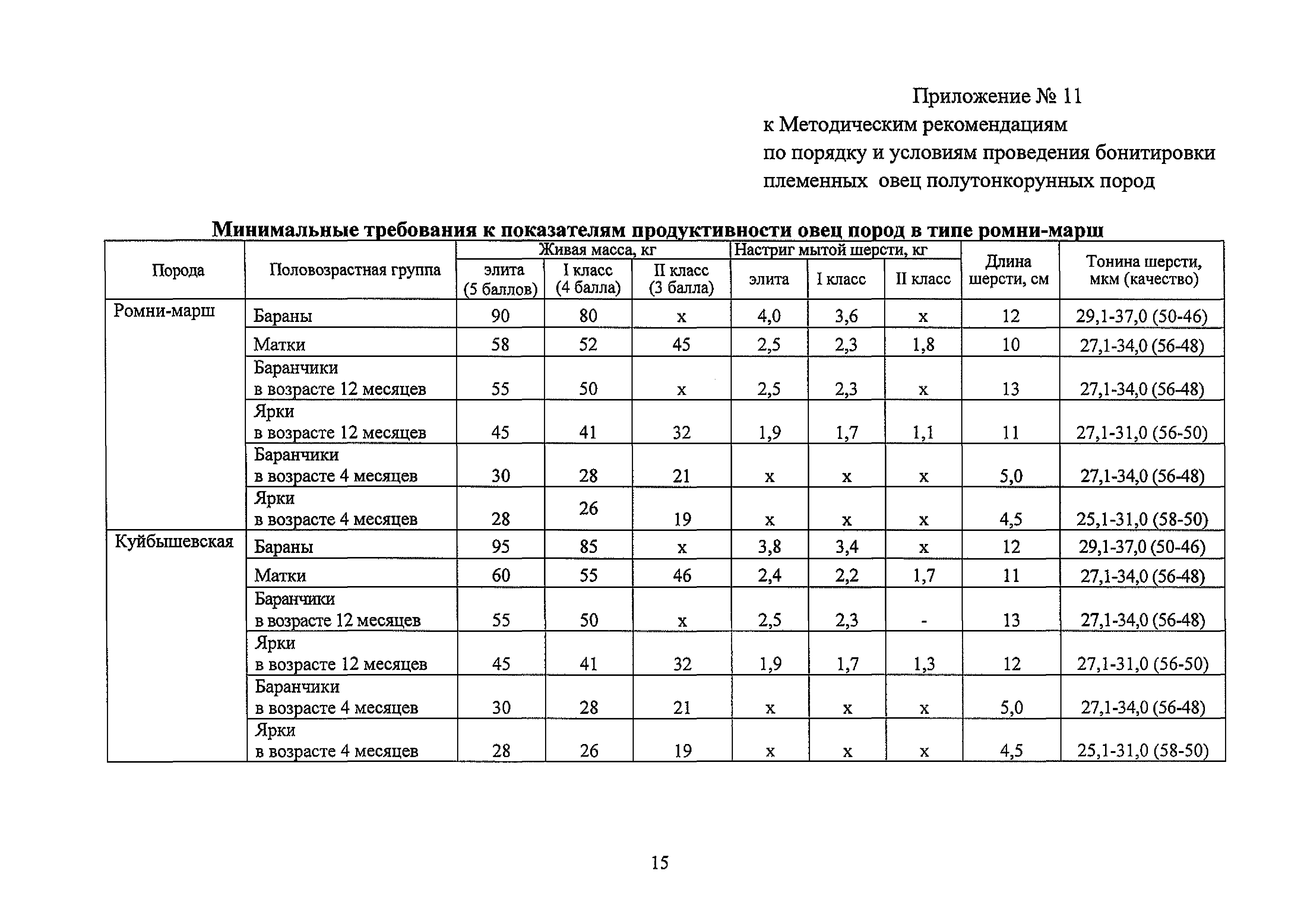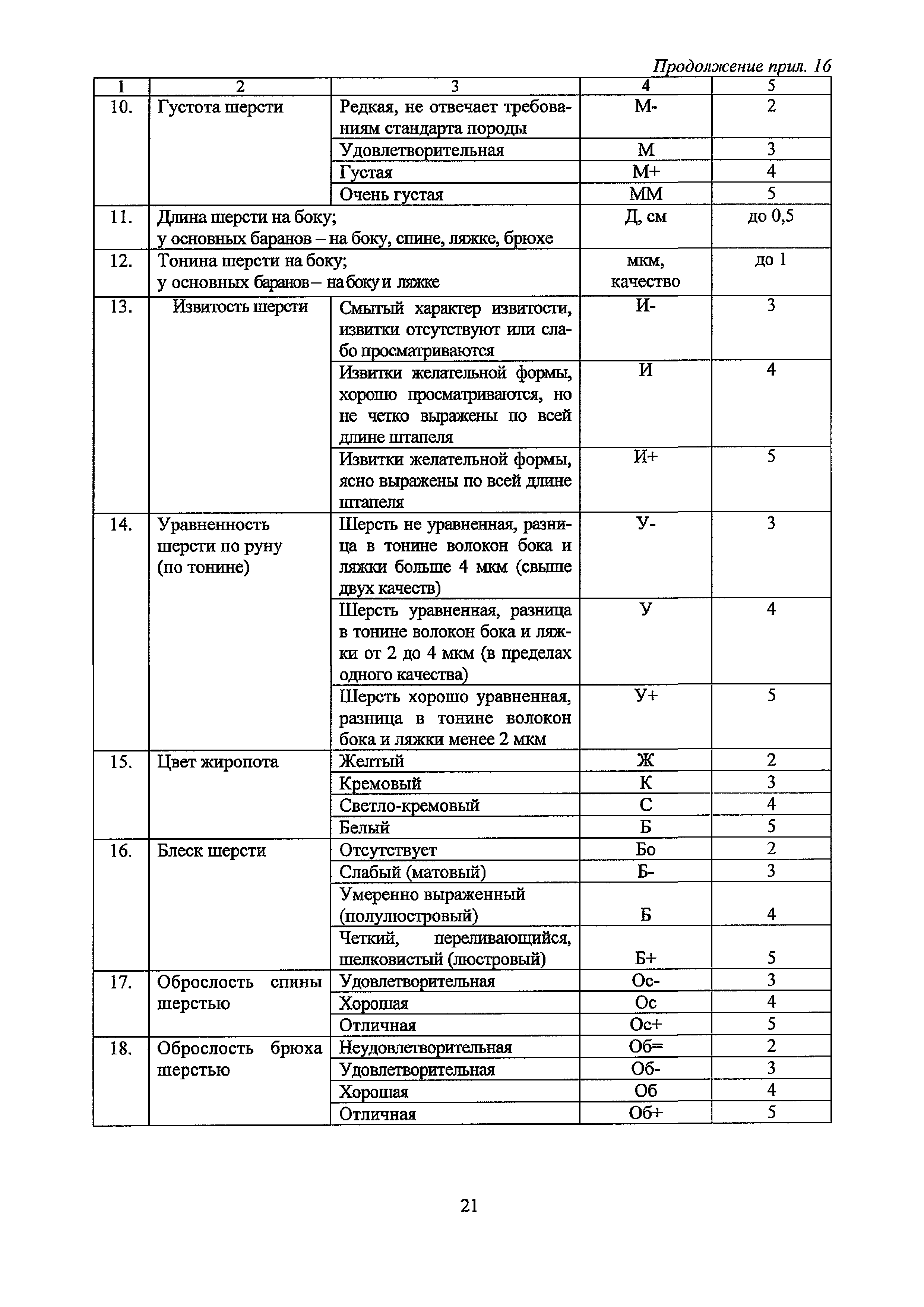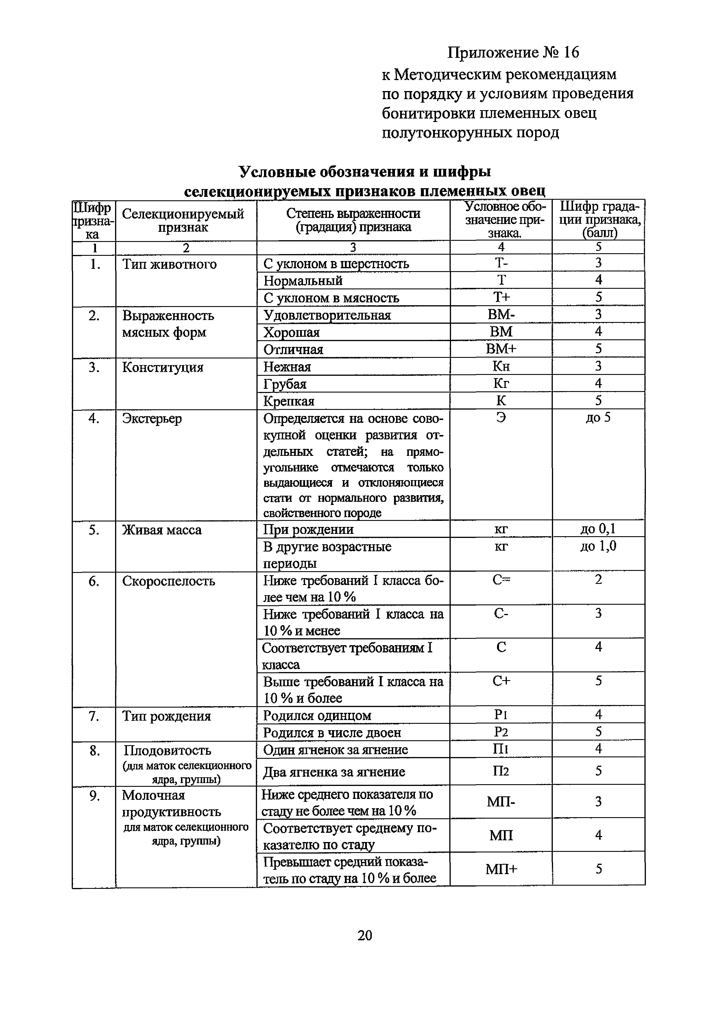 | Оглавление: | Приложение 1. Разделение полутонкорунных овец на группы Приложение 2. Требования к овцам длинношерстных пород с люстровой шерстью Приложение 3. Требования к овцам длинношерстных пород в типе ромни-марш Приложение 4. Требования к овцам длинношерстных пород в типе корридель Приложение 5. Требования к овцам цигайской породы Приложение 6. Требования к овцам горноалтайской породы Приложение 7. Условные обозначения оценки особенностей экстерьера Приложение 8. Шкала оценки качества шерсти Приложение 9. Признаки, оцениваемые при бонитировке овец различных половозрастных групп Приложение 10. Минимальные требования к показателям продуктивности овец длинношерстных пород с люстровой шерстью Приложение 11. Минимальные требования к показателям продуктивности овец пород в типе ромни-марш Приложение 12. Минимальные требования к показателям продуктивности овец пород в типе корридель Приложение 13. Минимальные требования к показателям продуктивности овец цигайской породы Приложение 14. Минимальные требования к показателям продуктивности овец горноалтайской породы Приложение 15. Шкала условных обозначений и шифров пород овец Приложение 16. Условные обозначения и шифры селекционируемых признаков племенных овец Приложение 17. Условные обозначения и шифры дальнейшего использования животных |