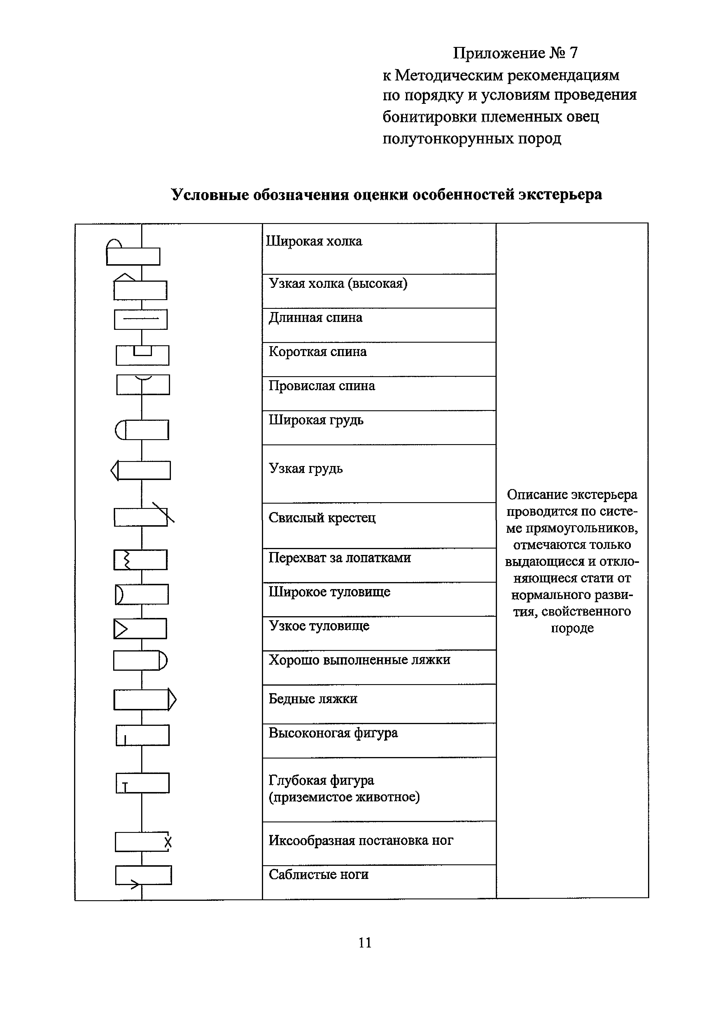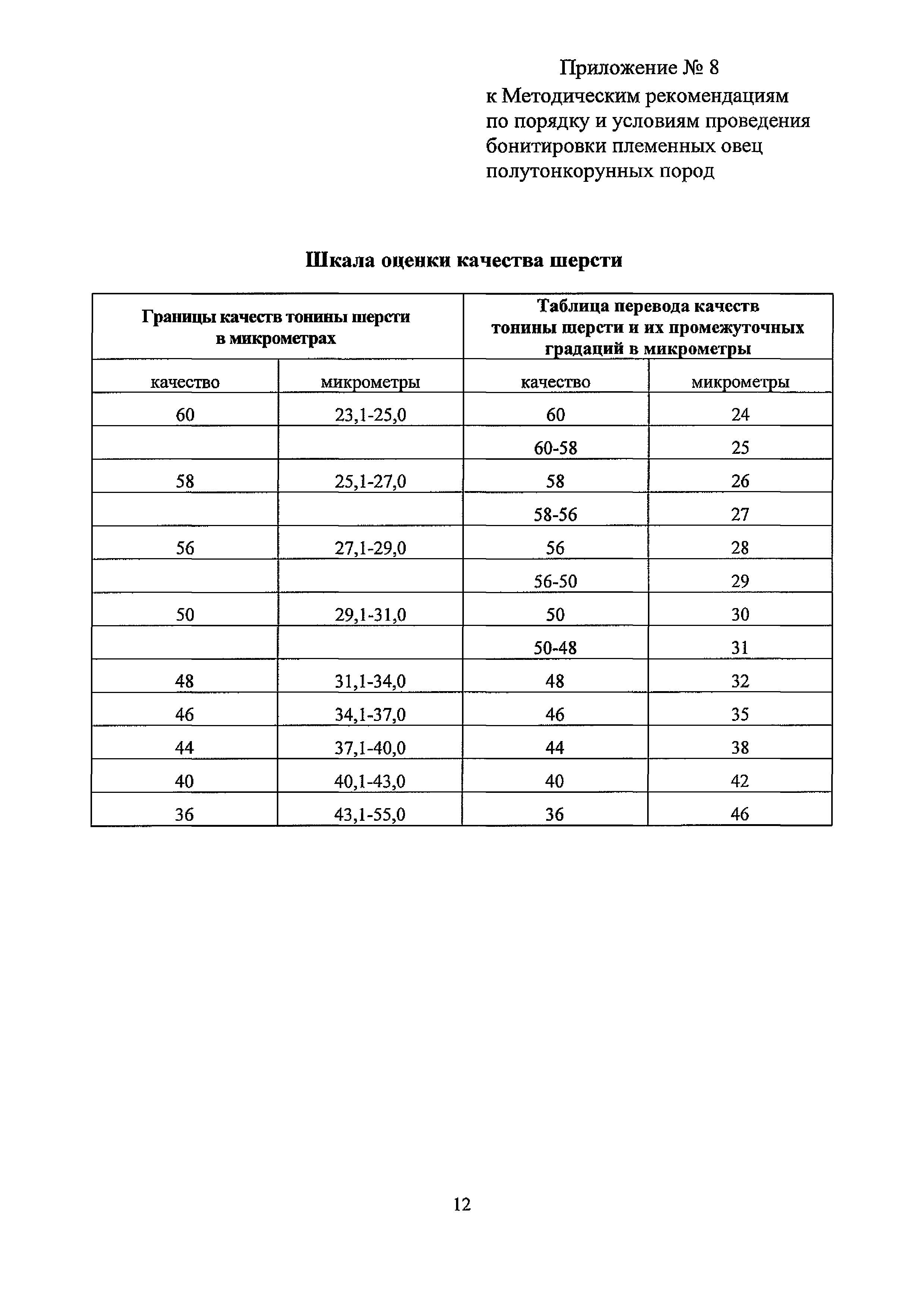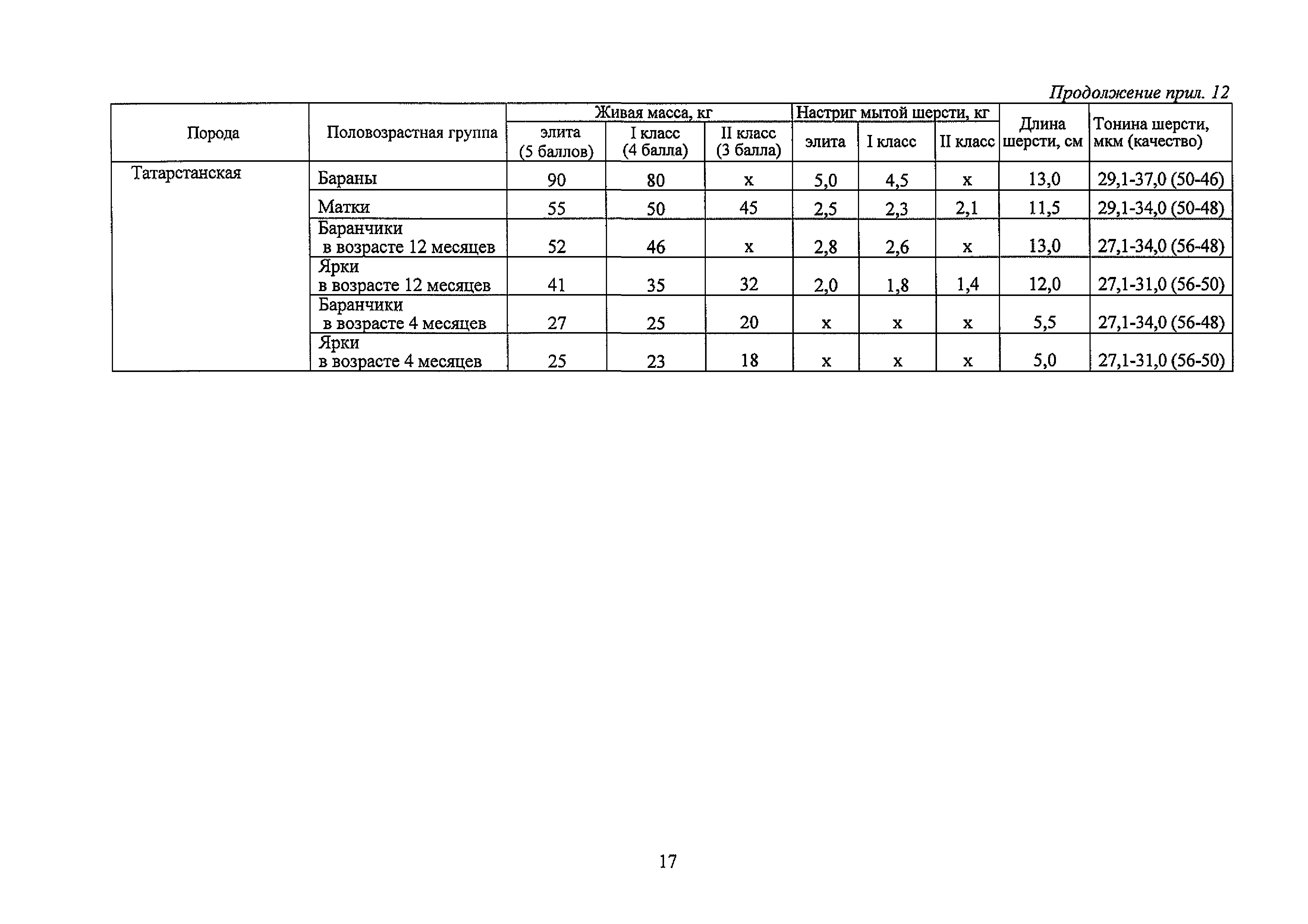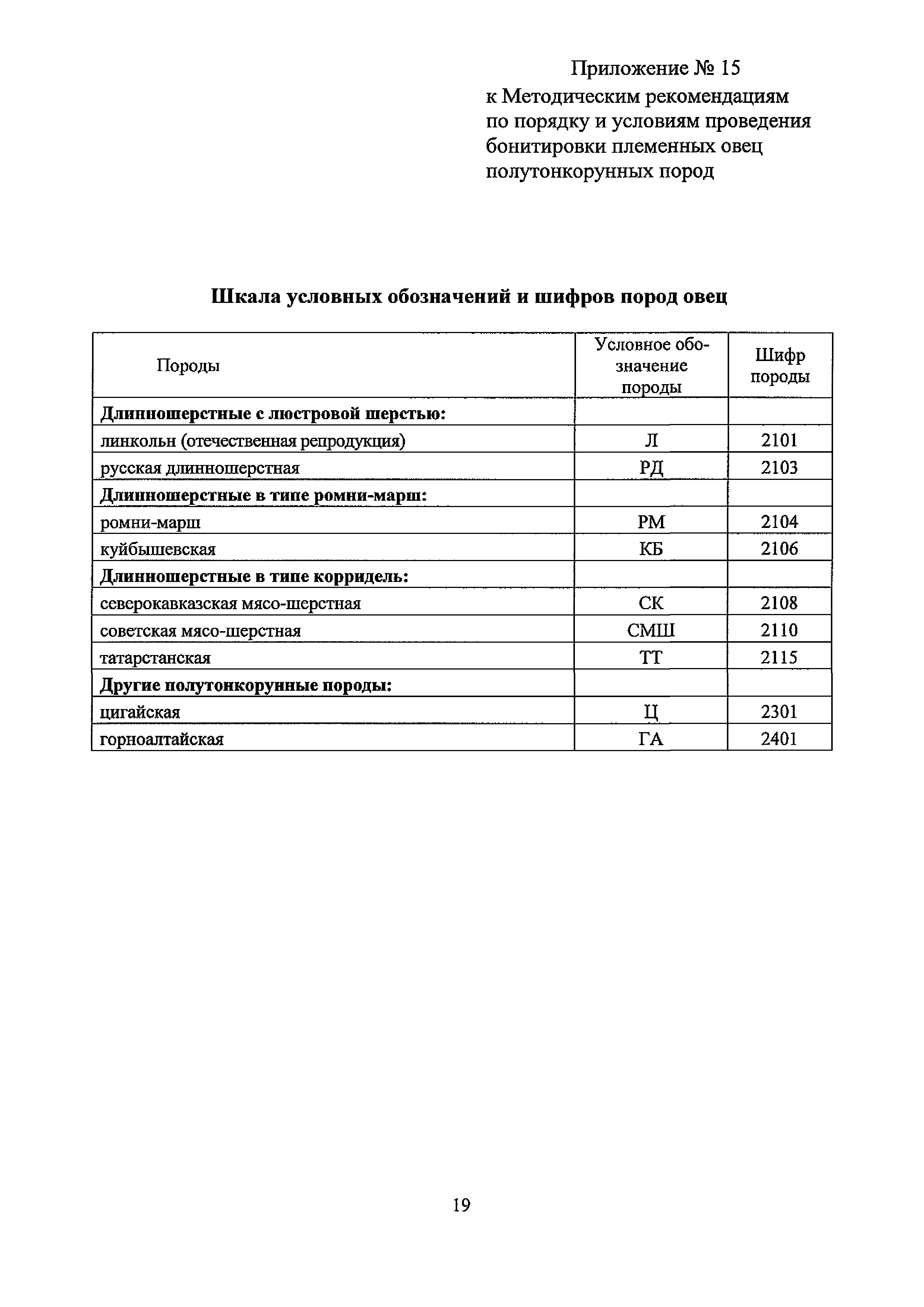| Оглавление: | Приложение 1. Разделение полутонкорунных овец на группы Приложение 2. Требования к овцам длинношерстных пород с люстровой шерстью Приложение 3. Требования к овцам длинношерстных пород в типе ромни-марш Приложение 4. Требования к овцам длинношерстных пород в типе корридель Приложение 5. Требования к овцам цигайской породы Приложение 6. Требования к овцам горноалтайской породы Приложение 7. Условные обозначения оценки особенностей экстерьера Приложение 8. Шкала оценки качества шерсти Приложение 9. Признаки, оцениваемые при бонитировке овец различных половозрастных групп Приложение 10. Минимальные требования к показателям продуктивности овец длинношерстных пород с люстровой шерстью Приложение 11. Минимальные требования к показателям продуктивности овец пород в типе ромни-марш Приложение 12. Минимальные требования к показателям продуктивности овец пород в типе корридель Приложение 13. Минимальные требования к показателям продуктивности овец цигайской породы Приложение 14. Минимальные требования к показателям продуктивности овец горноалтайской породы Приложение 15. Шкала условных обозначений и шифров пород овец Приложение 16. Условные обозначения и шифры селекционируемых признаков племенных овец Приложение 17. Условные обозначения и шифры дальнейшего использования животных |