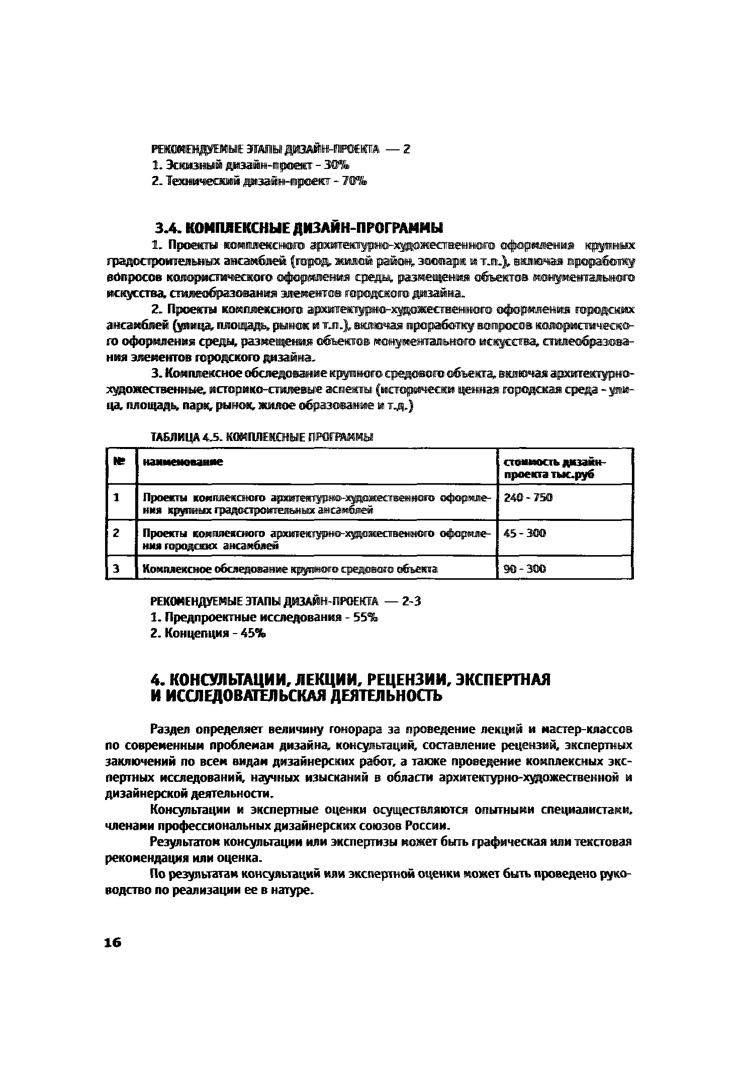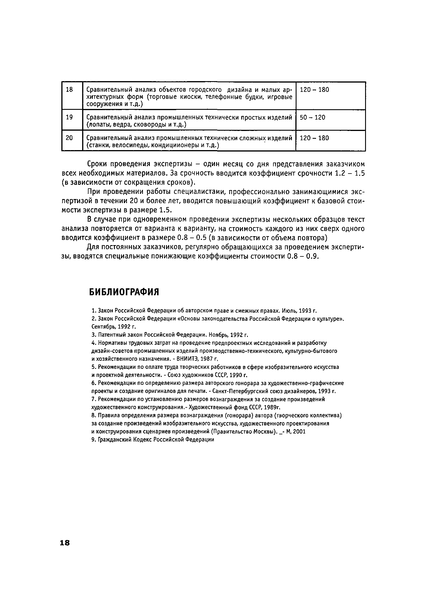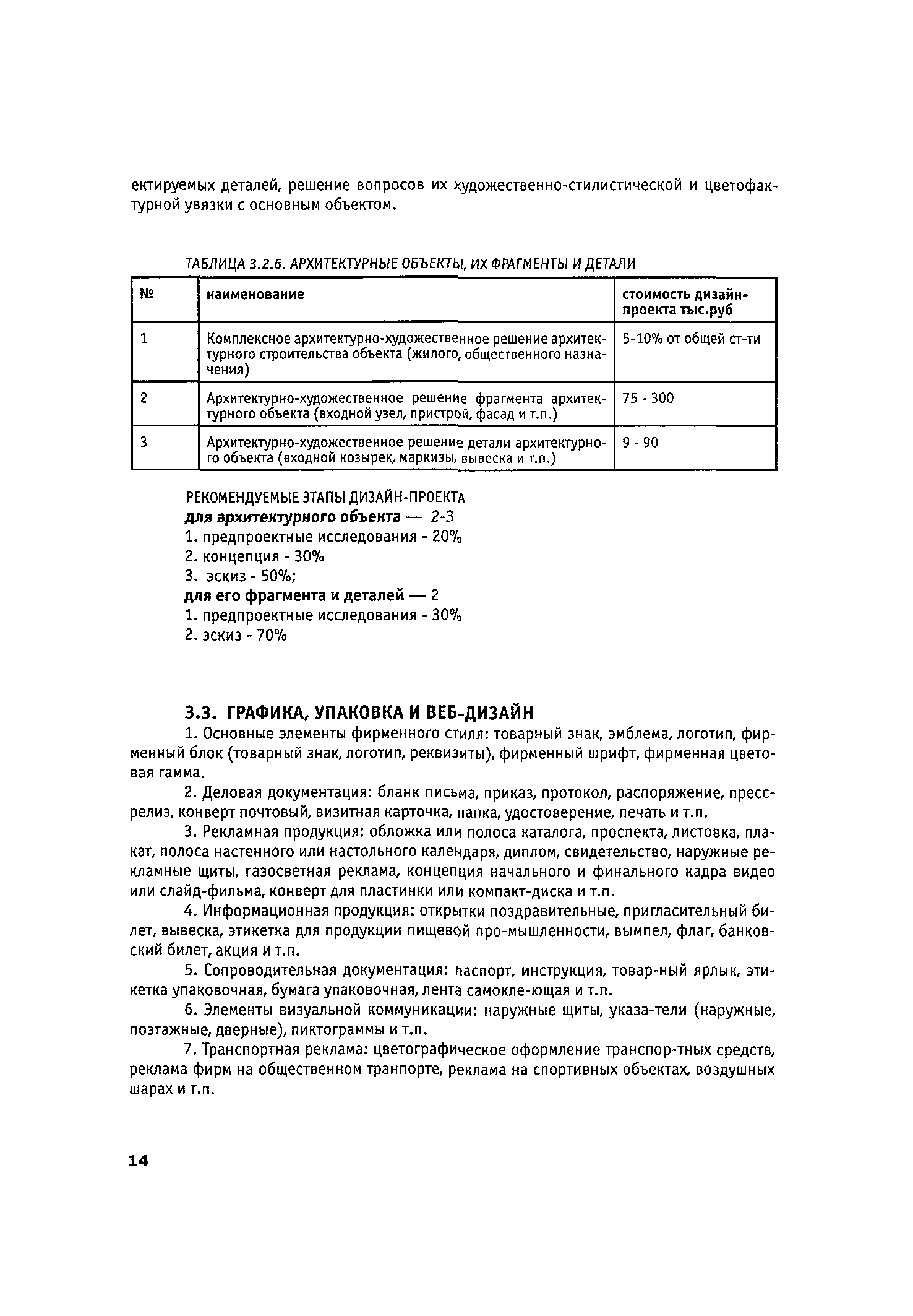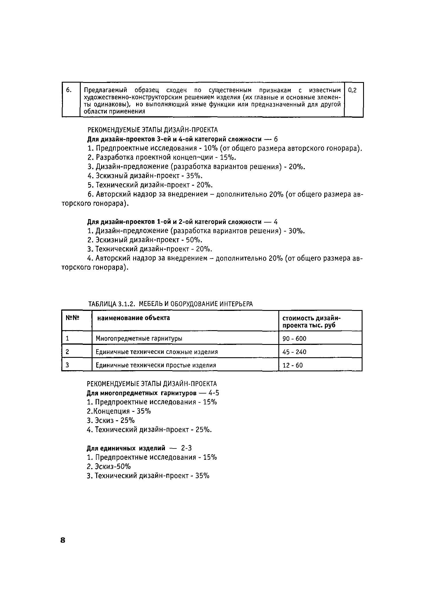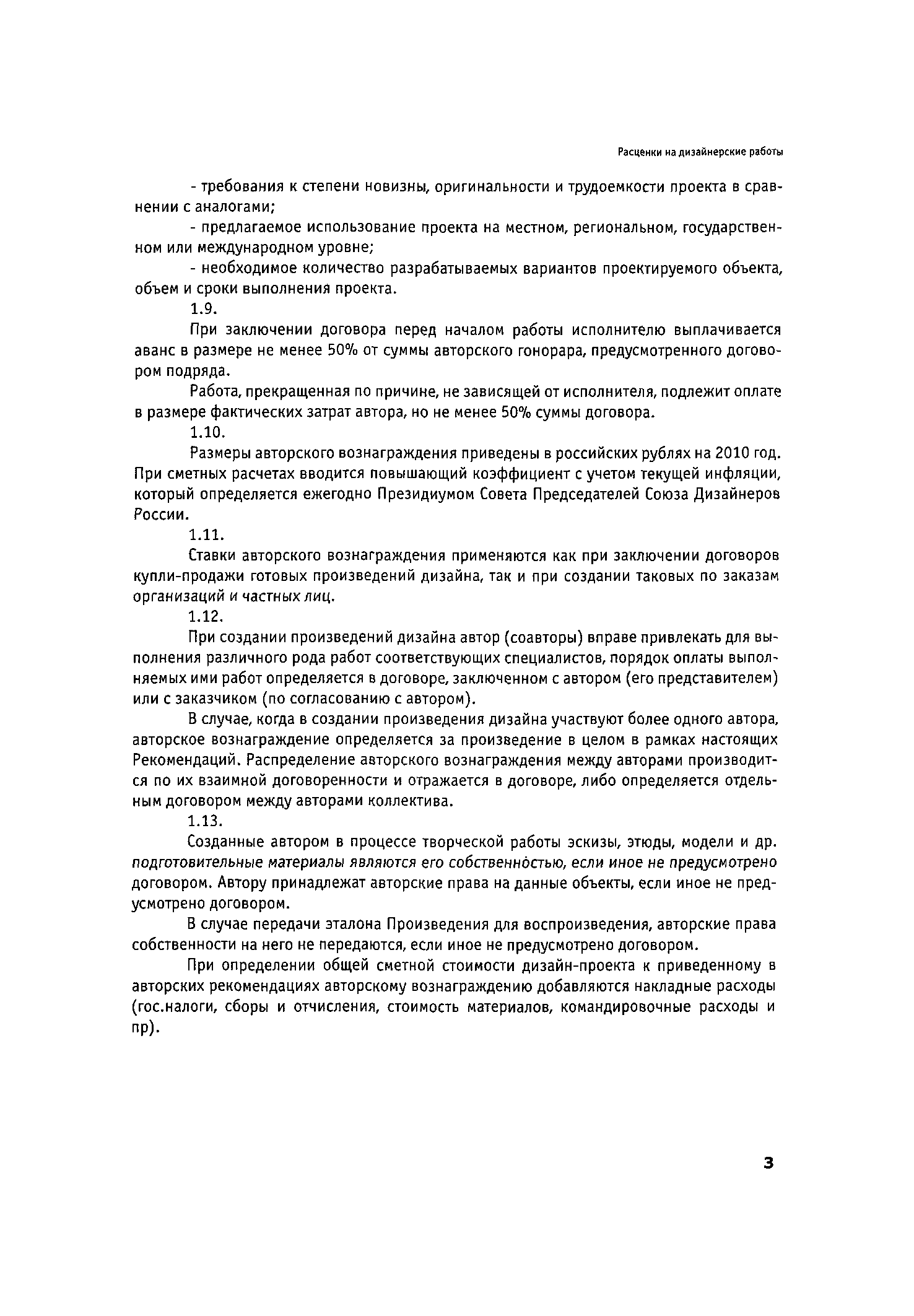 | Оглавление: | 1 Общие положения 2 Состав и этапность дизайн-проекта 3 Виды дизайнерских работ 3.1 Предметный дизайн 3.1.1. Промышленные изделия 3.1.2. Мебель и оборудование интерьера 3.1.3. Уличное оборудование и визуальные коммуникации 3.1.4. Одежда, обувь, галантерейные изделия 3.1.5. Текстиль 3.2 Дизайн архитектурной среды 3.3 Графика, упаковка и веб-дизайн 3.4 Комплексные дизайн-программы 4 Консультации, лекции, рецензии, экспертная и исследовательская деятельность Библиография Приложение 1. Рекомендуемый состав исполнителей по видам работ изделия Приложение 2. Обращение Союза Дизайнеров России Приложение 3. Форма договора по обеспечению авторских прав Приложение 4. Доверенность по обеспечению авторских прав Приложение 5. Сведения об авторе и его творческой деятельности Приложение 6. Закон "Об авторском праве и смежных правах" Российской Федерации (извлечения) Приложение 7. Международный профессиональный кодекс чести дизайнера. Образцовый кодекс поведения для дизайнеров |