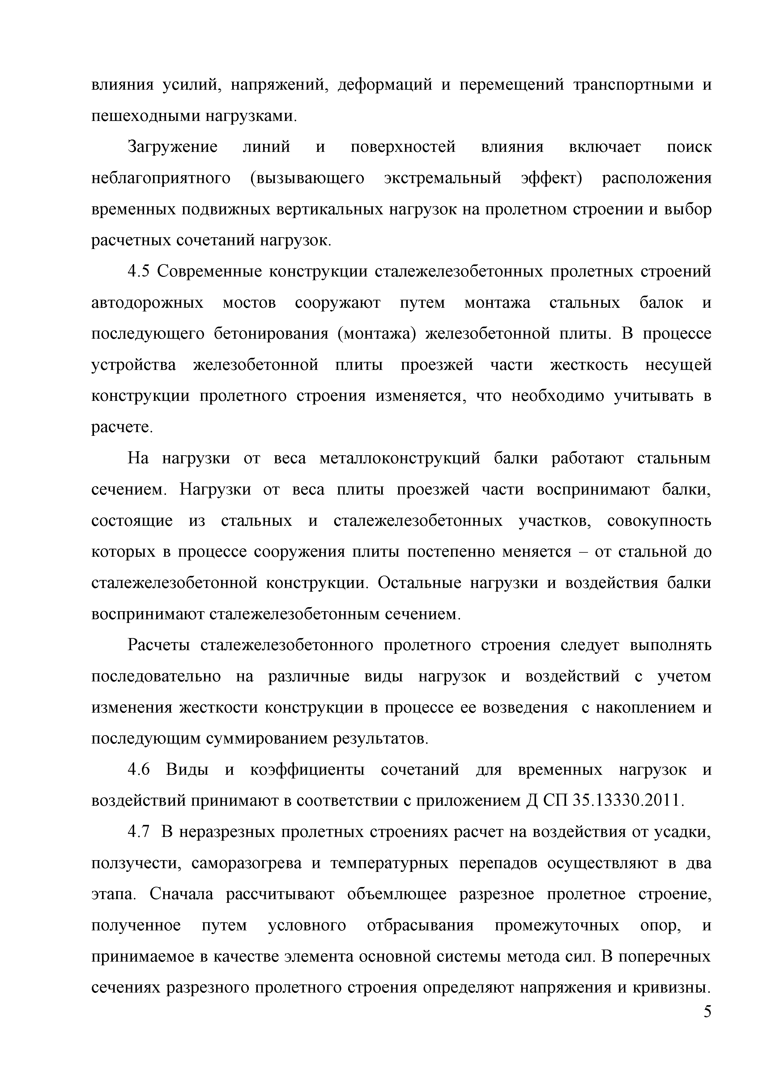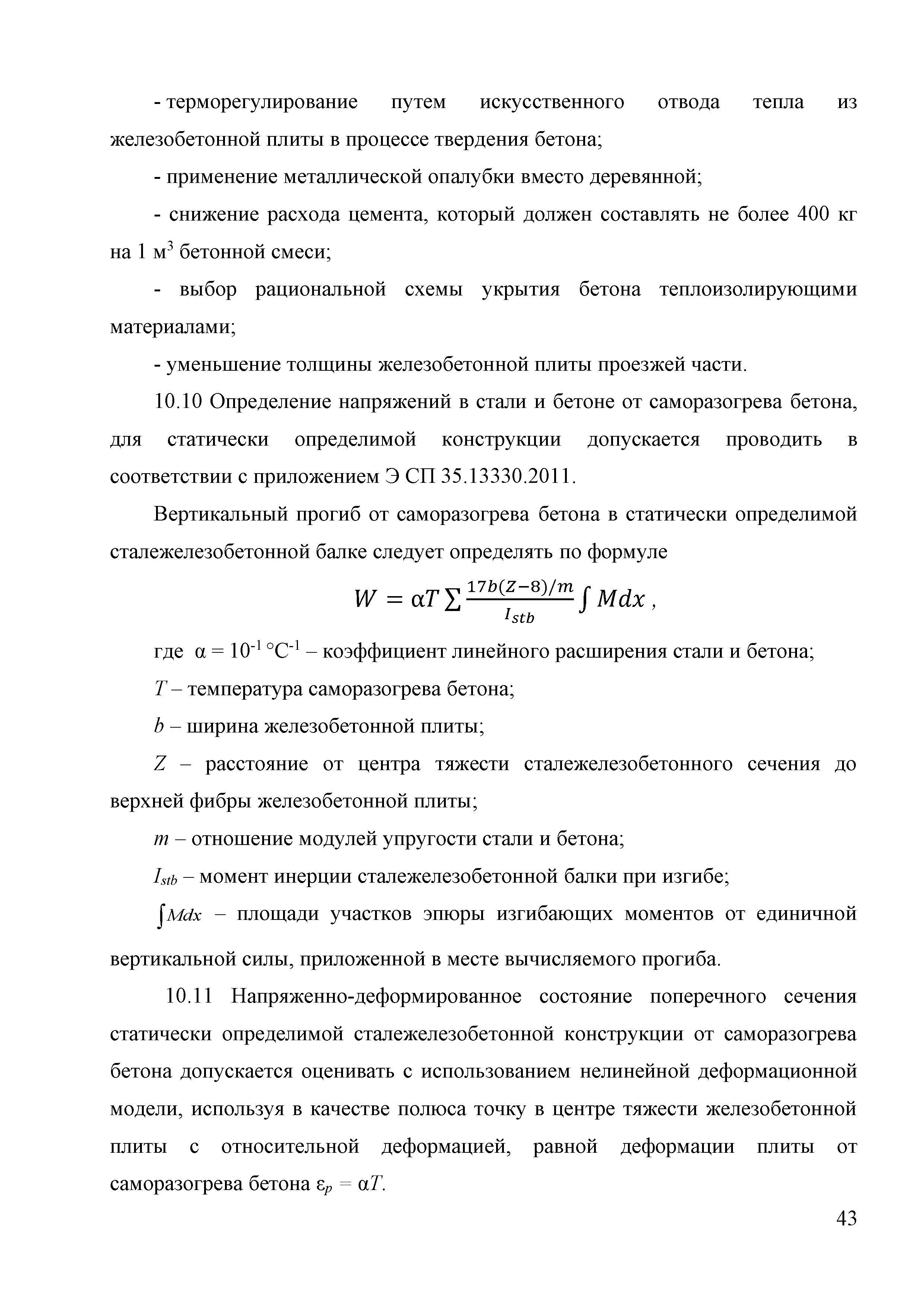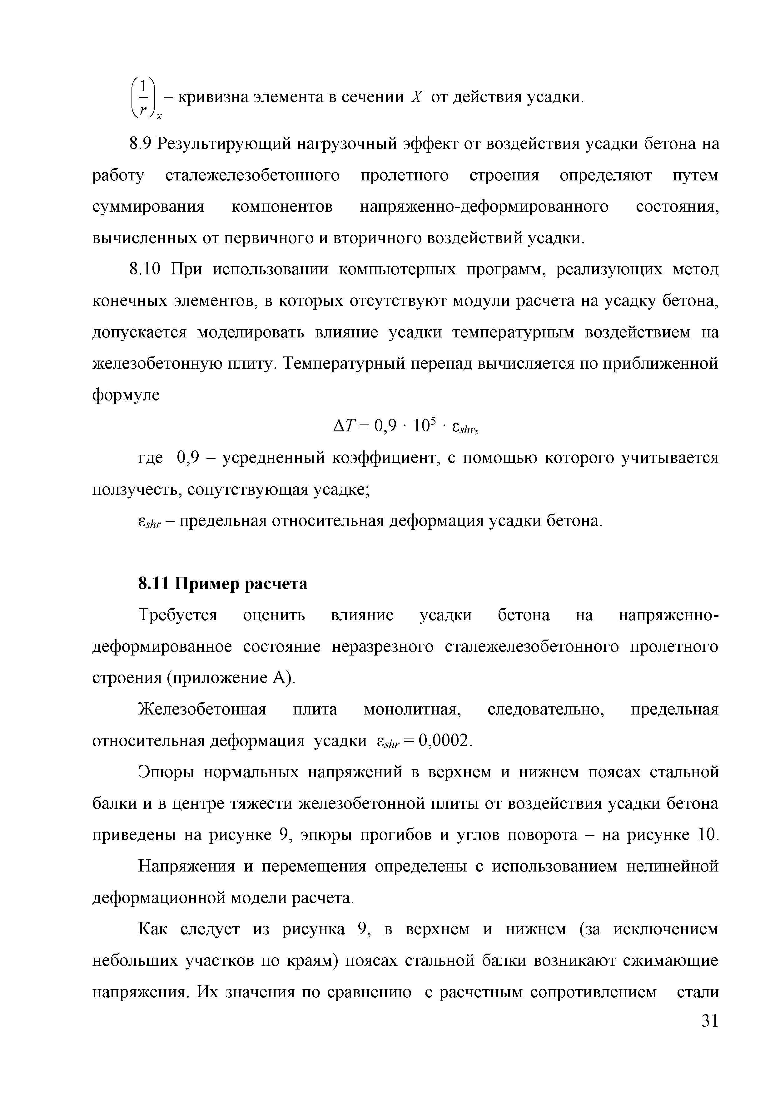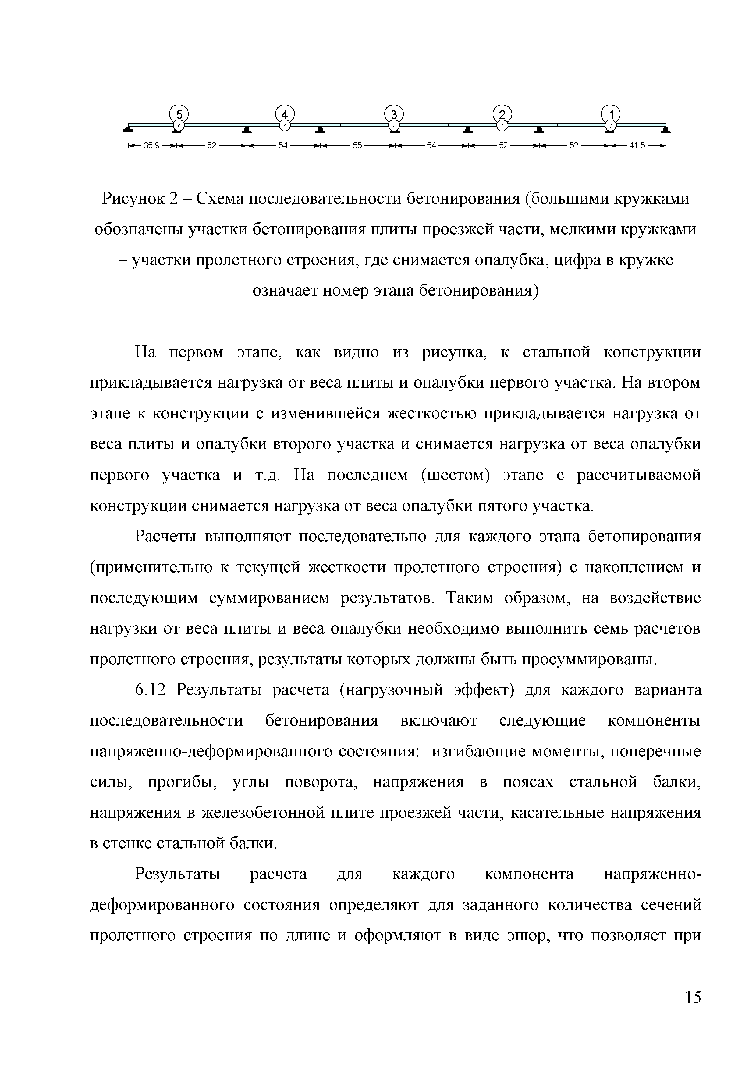 | Оглавление: | 1 Область применения 2 Нормативные ссылки 3 Термины и определения 4 Общие положения 5 Чувствительность сталежелезобетонных пролетных строений к внешним воздействиям 6 Учет последовательности бетонирования (монтажа) плиты проезжей части при определении нагрузочного эффекта 7 Влияние наличия трещин в плите на работу сталежелезобетонных пролетных строений 8 Расчет на воздействие усадки бетона 9 Расчет на воздействие ползучести бетона 10 Саморазогрев бетона в процессе твердения 11 Температурные перепады между стальной и железобетонной частями сечения 12 Определение ординат строительного подъема 13 Расчет на временные подвижные нагрузки Приложение А Краткое описание исходных данных к примерам расчета сталежелезобетонного пролетного строения |