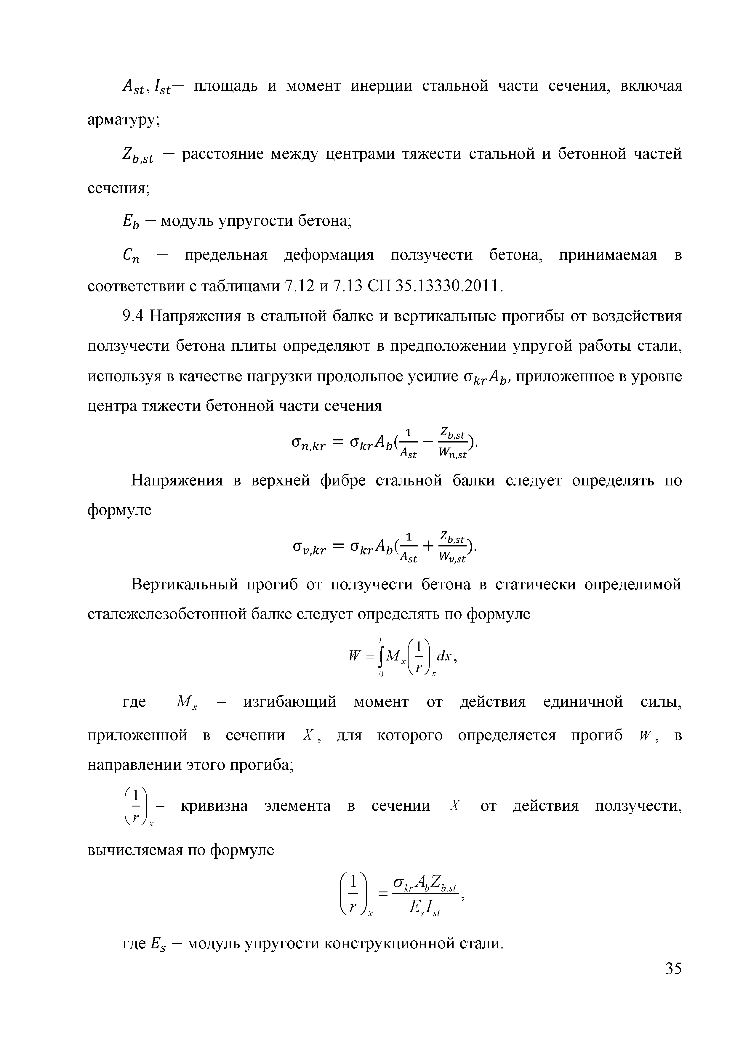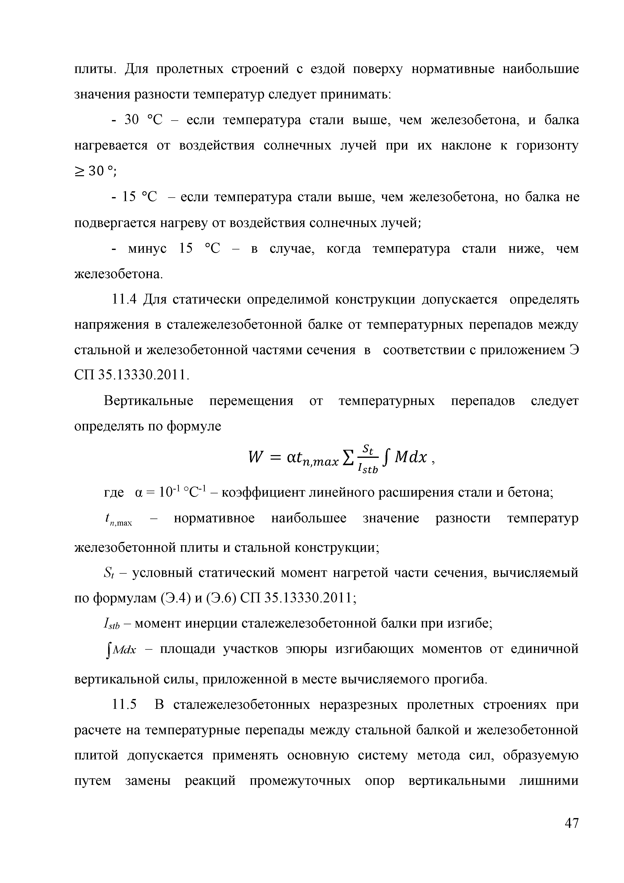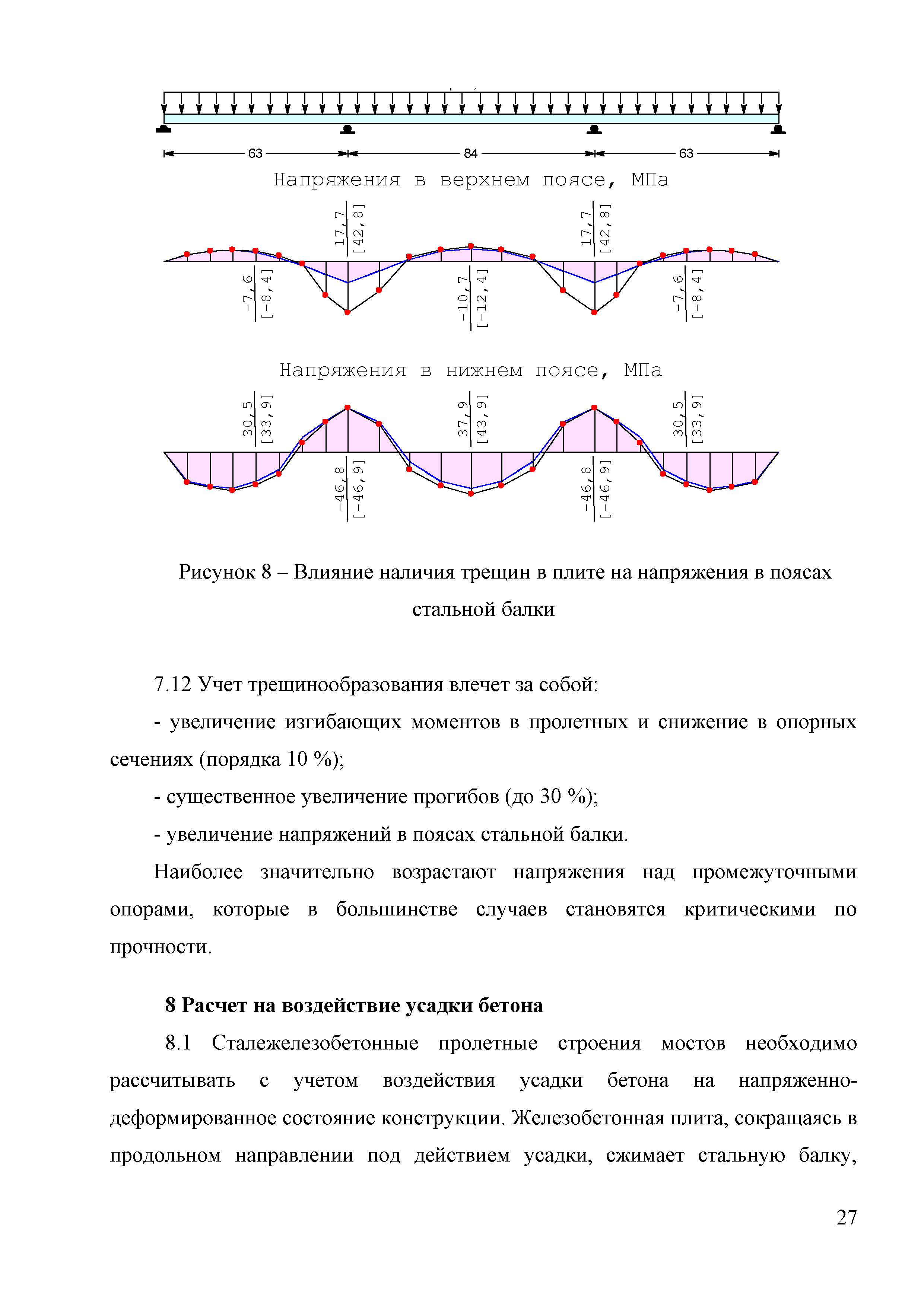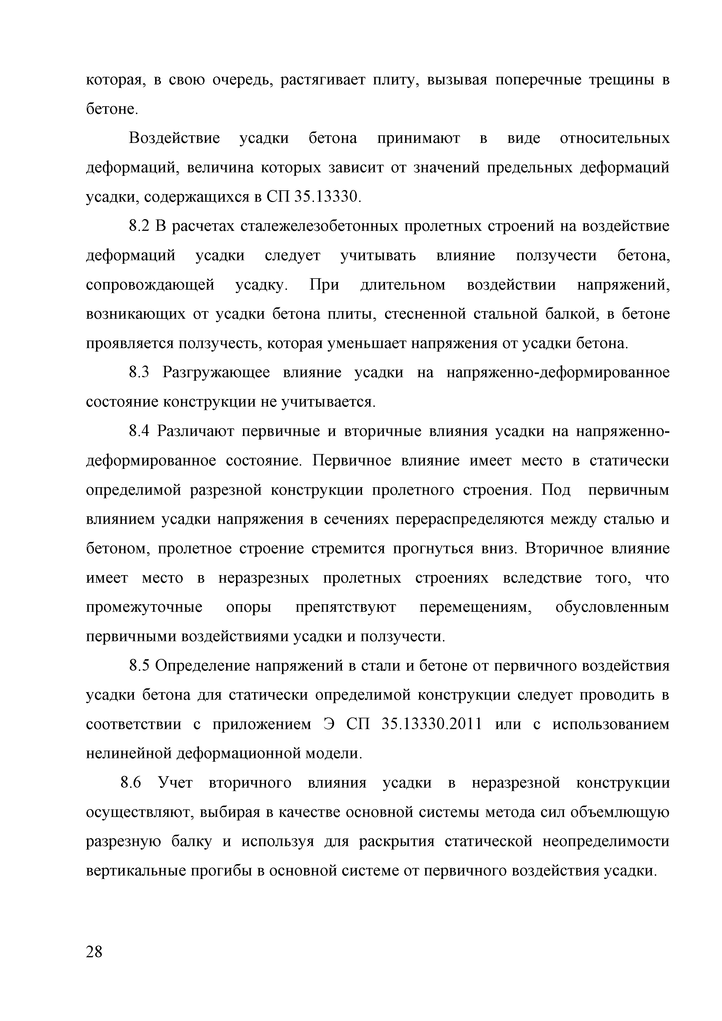 | Оглавление: | 1 Область применения 2 Нормативные ссылки 3 Термины и определения 4 Общие положения 5 Чувствительность сталежелезобетонных пролетных строений к внешним воздействиям 6 Учет последовательности бетонирования (монтажа) плиты проезжей части при определении нагрузочного эффекта 7 Влияние наличия трещин в плите на работу сталежелезобетонных пролетных строений 8 Расчет на воздействие усадки бетона 9 Расчет на воздействие ползучести бетона 10 Саморазогрев бетона в процессе твердения 11 Температурные перепады между стальной и железобетонной частями сечения 12 Определение ординат строительного подъема 13 Расчет на временные подвижные нагрузки Приложение А Краткое описание исходных данных к примерам расчета сталежелезобетонного пролетного строения |