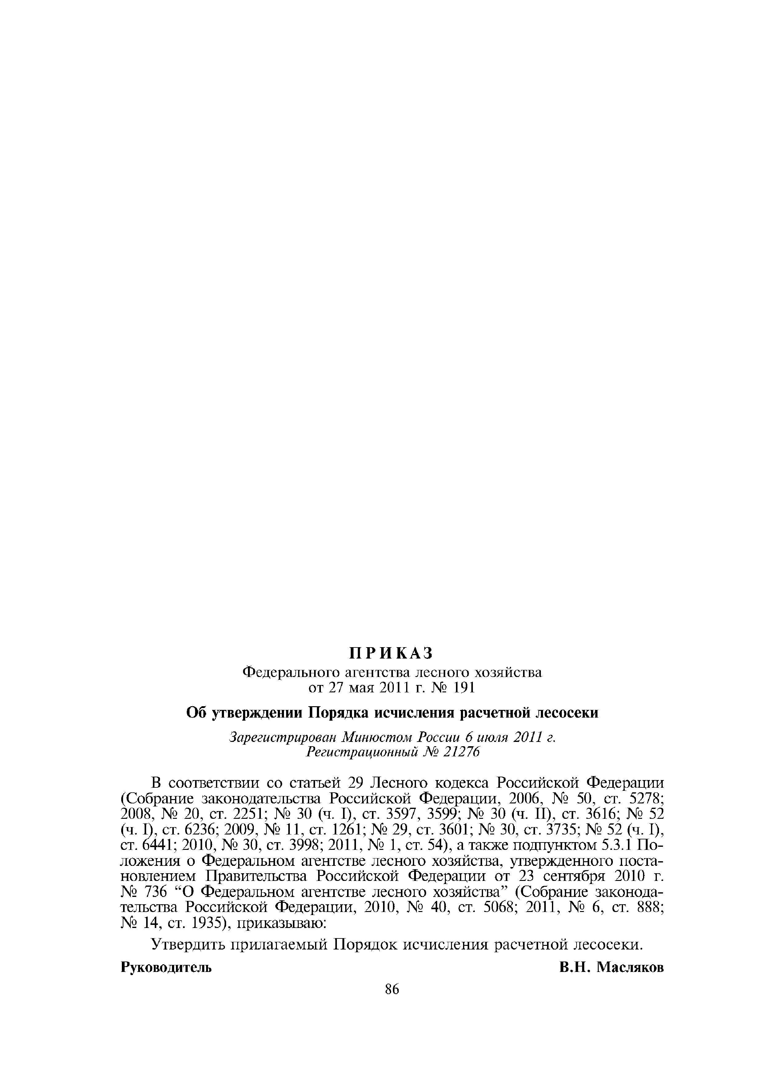 | Название рус.: | Порядок исчисления расчетной лесосеки |