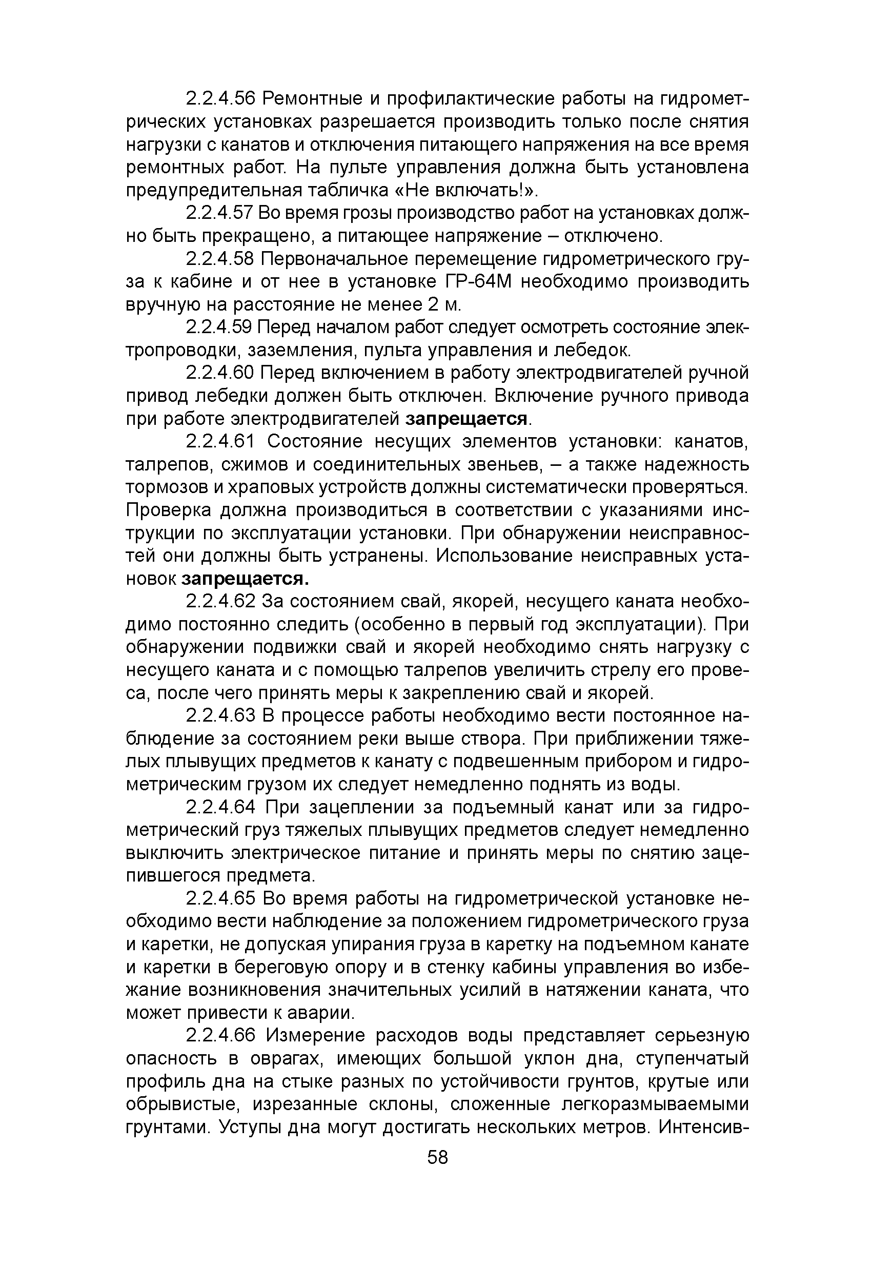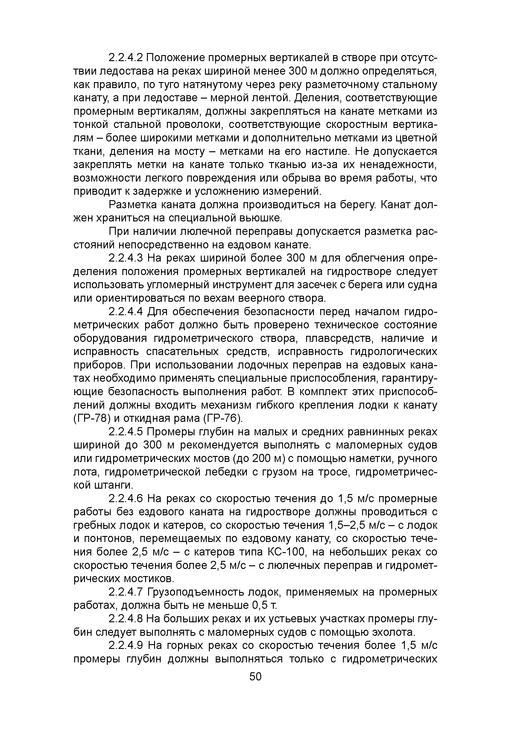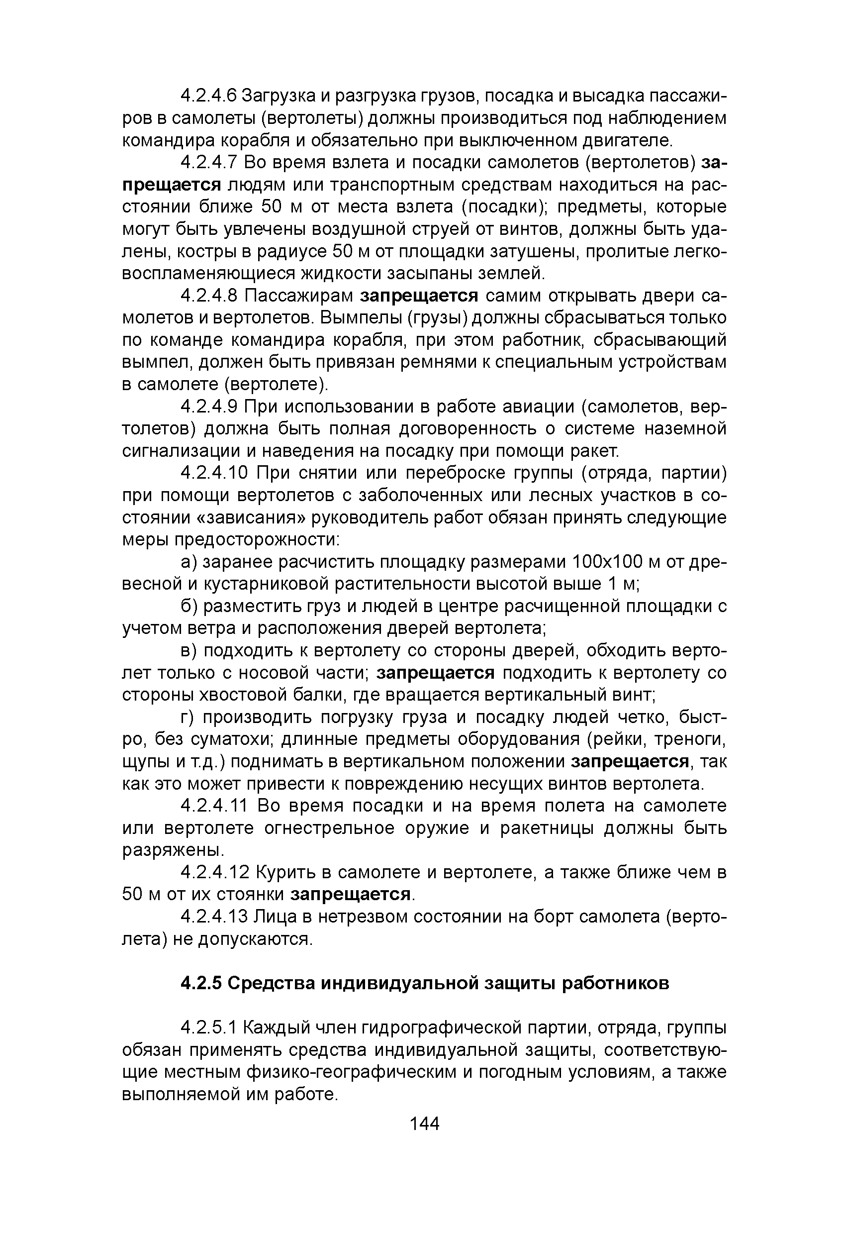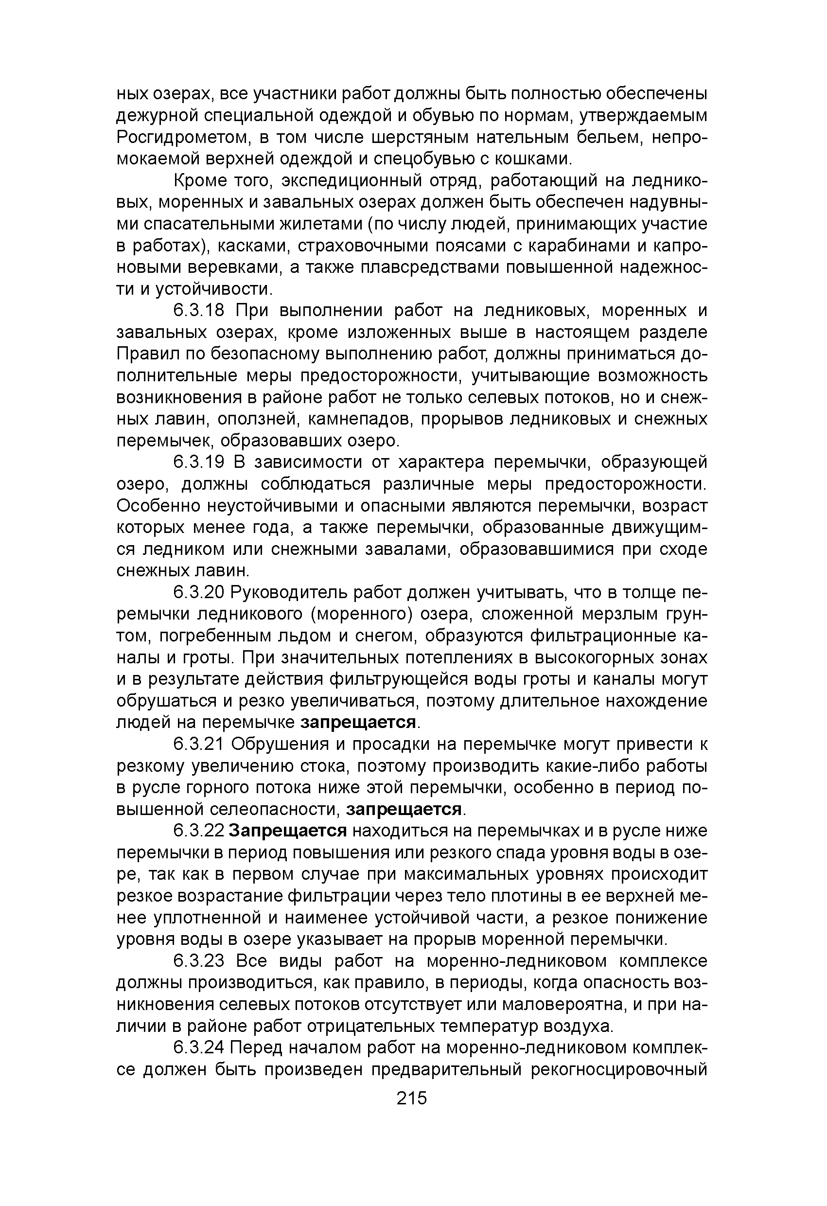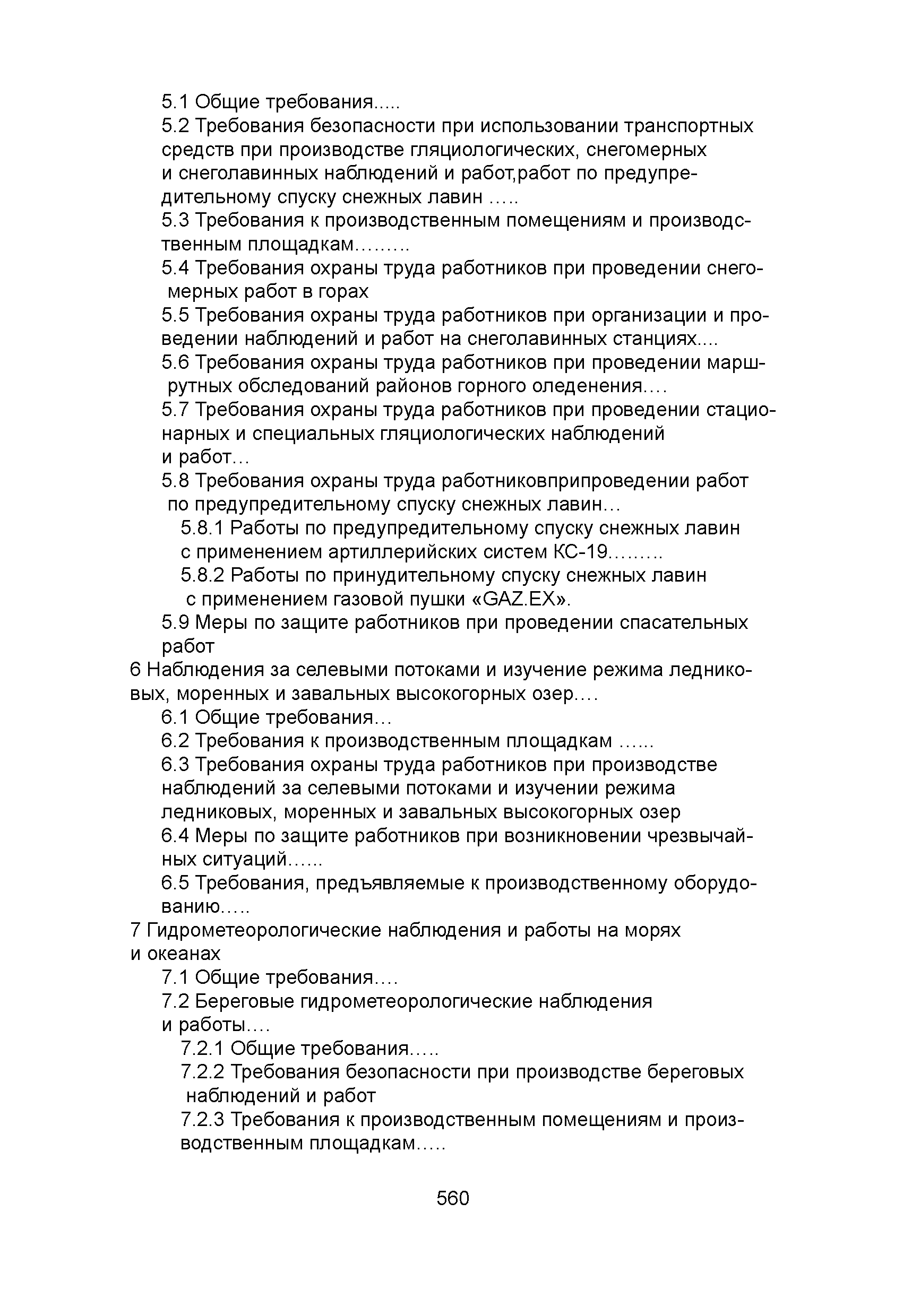 | Оглавление: | Введение 1 Общие положения 2 Гидрологические наблюдения и работы на реках и каналах 2.1 Общие требования 2.2 Требования охраны труда работников при организации и проведении гидрологических наблюдений и работ 2.2.1 Требования безопасности при проведении наблюдений за уровнем воды 2.2.2 Требования безопасности при проведении наблюдений за ледовыми явлениями и толщиной льда 2.2.3 Требования безопасности при проведении уровенных и ледовых наблюдений в случае возникновения заторов и зажоров льда 2.2.4 Требования безопасности при проведении гидрометрических работ по измерению расходов воды и наблюдений за наносами 2.2.5 Требования безопасности при проведении работ на горных и таежных реках, а также в период прохождения весеннего половодья и высоких дождевых паводков 2.2.6 Требования безопасности при организации специализированных гидрологических наблюдений и работ (болотных, воднобалансовых, на наледях) 2.2.7 Требования безопасности при проведении аэрогидрометрических наблюдений и работ 2.2.8 Средства индивидуальной защиты работников 2.2.9 Меры по защите работников при возникновении аварийных ситуаций 2.3 Требования к производственным площадкам, оборудованию, приборам и условиям их эксплуатации 2.3.1 Общие требования 2.3.2 Требования при проведении наблюдений за уровнем воды 2.3.3 Требования при проведении наблюдений за продольным уклоном водной поверхности 2.3.4 Требования при проведении наблюдений за температурой воды 2.3.5 Требования при проведении наблюдений за ледовыми явлениями, толщиной льда, снежным покровом 2.3.6 Требования при проведении измерений расходов воды и взвешенных наносов, при отборе проб донных отложений 3 Гидрометеорологические наблюдения и работы на озерах и водохранилищах 3.1 Общие требования 3.2 Требования охраны труда работников при организации и проведении гидрометеорологических наблюдений и работ 3.2.1 Общие требования 3.2.2 Требования безопасности при проведении гидрометеорологических наблюдений и работ в прибрежной зоне водоемов 3.2.3 Требования безопасности при проведении гидрометеорологических наблюдений и работ на открытой акватории водоемов 3.2.4 Требования безопасности при проведении наблюдений за ледяным покровом 3.2.5 Средства индивидуальной защиты работников 3.2.6 Защита работников при возникновении аварийных ситуаций 3.3 Требования к производственным площадкам 3.3.1 Требования к площадкам для производства гидрометеорологических наблюдений и работ в прибрежной зоне водоемов 3.3.2 Требования к площадкам для гидрометеорологических наблюдений и работ на открытой акватории водоемов 3.3.3 Требования к площадкам для наблюдений за ледяным покровом 3.4 Требования к приборам, оборудованию и условиям их эксплуатации 4 Гидрографические обследования 4.1 Общие требования 4.2 Требования охраны труда работников при организации и проведении гидрографических обследований 4.2.1 Требования безопасности при движении по маршрутам 4.2.2 Требования безопасности при переправах через реки, озера, другие водные преграды и лавины 4.2.3 Требования безопасности при проведении маршрутных снегомерных съемок на равнинной территории 4.2.4 Требования безопасности при применении авиационного транспорта 4.2.5 Средства индивидуальной защиты работников 4.2.6 Защита работников при возникновении аварийных ситуаций 4.3 Требования к пло