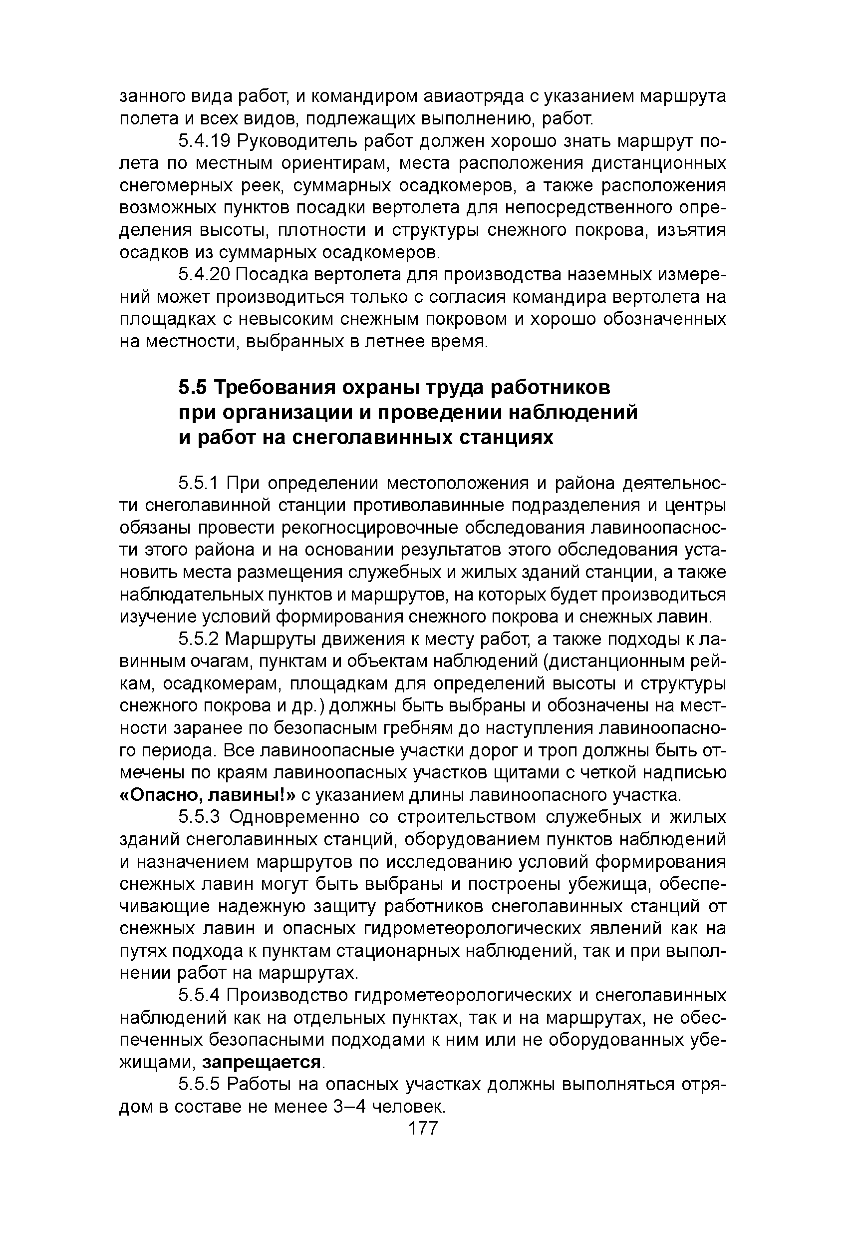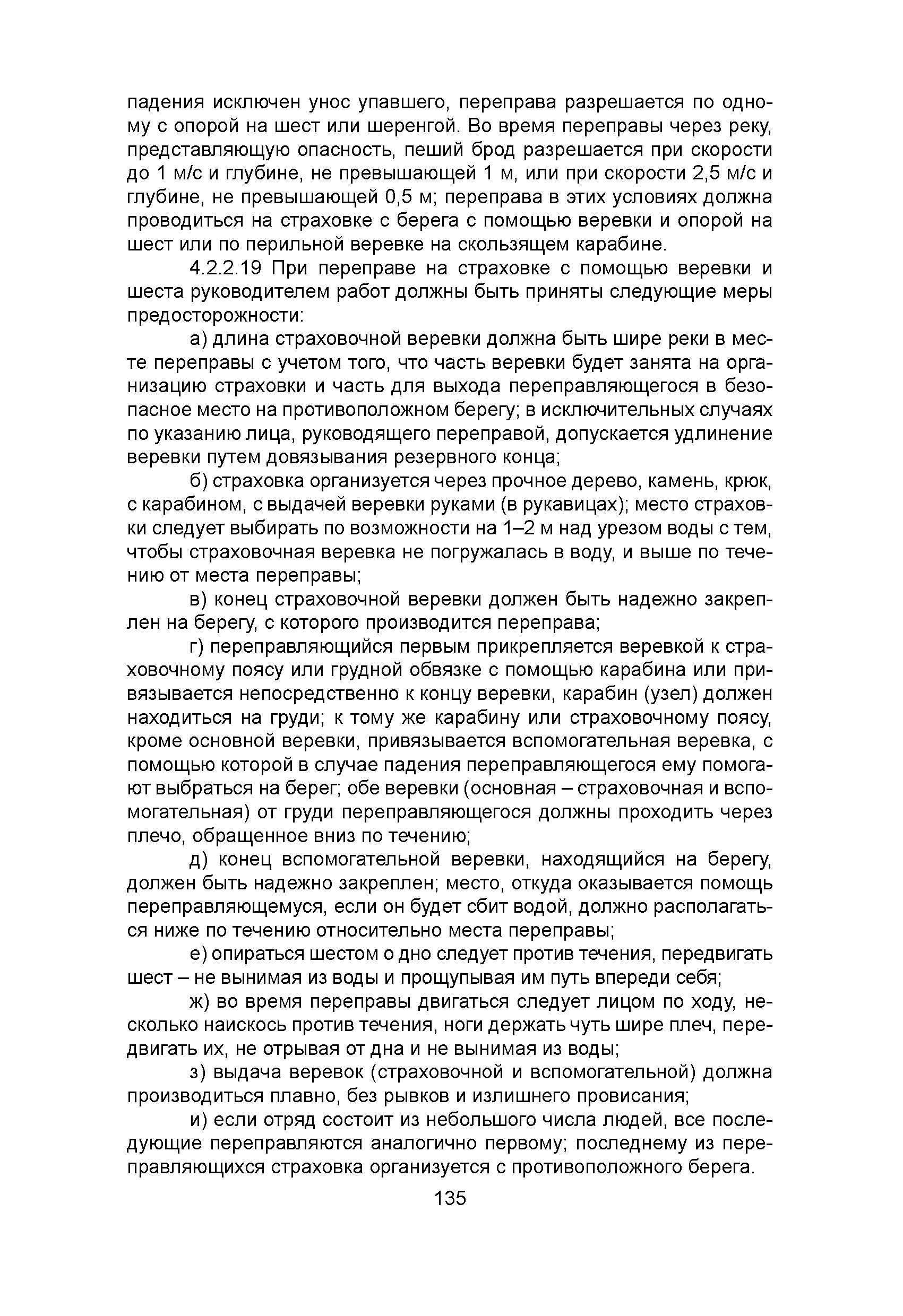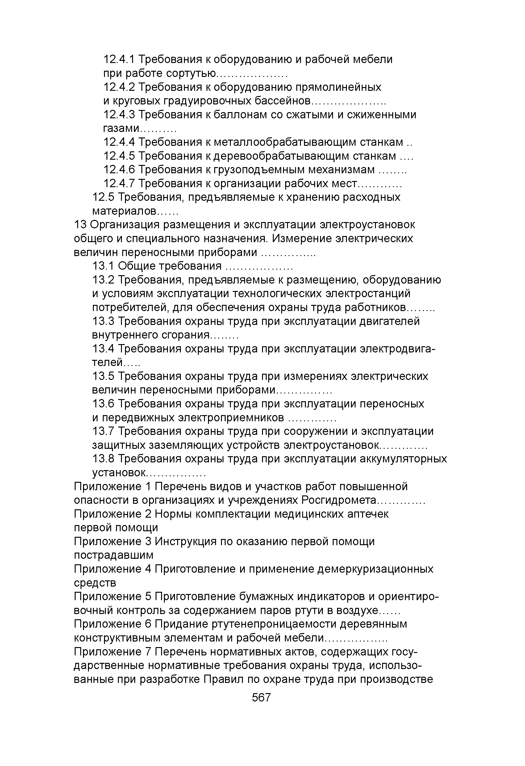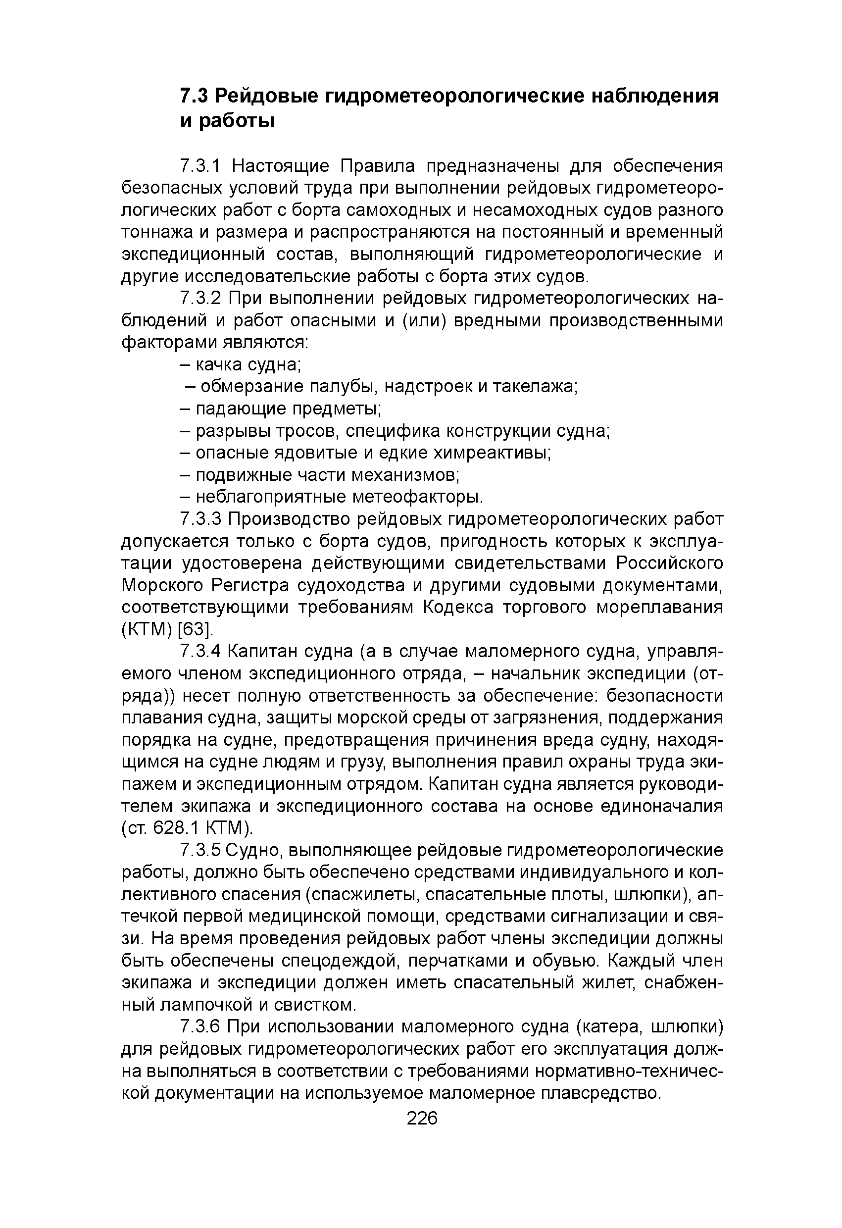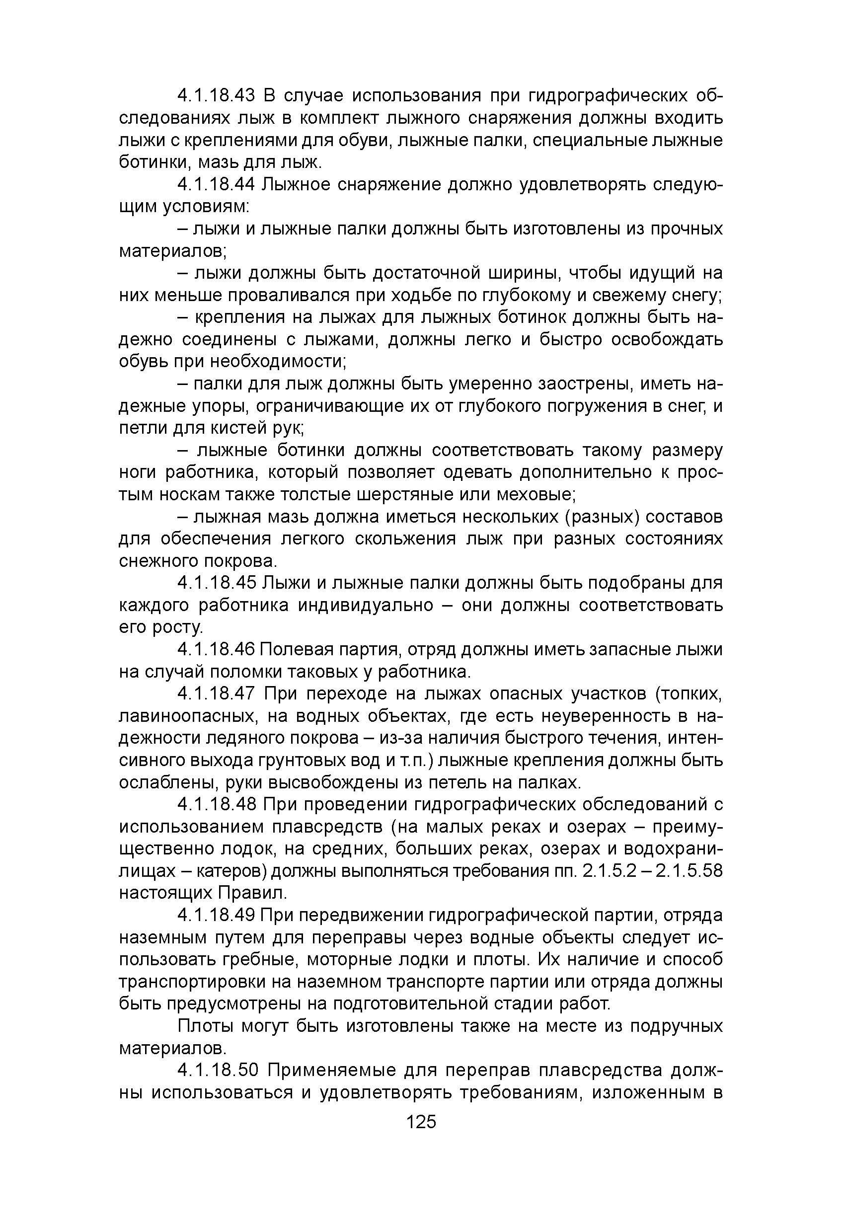 | Оглавление: | Введение 1 Общие положения 2 Гидрологические наблюдения и работы на реках и каналах 2.1 Общие требования 2.2 Требования охраны труда работников при организации и проведении гидрологических наблюдений и работ 2.2.1 Требования безопасности при проведении наблюдений за уровнем воды 2.2.2 Требования безопасности при проведении наблюдений за ледовыми явлениями и толщиной льда 2.2.3 Требования безопасности при проведении уровенных и ледовых наблюдений в случае возникновения заторов и зажоров льда 2.2.4 Требования безопасности при проведении гидрометрических работ по измерению расходов воды и наблюдений за наносами 2.2.5 Требования безопасности при проведении работ на горных и таежных реках, а также в период прохождения весеннего половодья и высоких дождевых паводков 2.2.6 Требования безопасности при организации специализированных гидрологических наблюдений и работ (болотных, воднобалансовых, на наледях) 2.2.7 Требования безопасности при проведении аэрогидрометрических наблюдений и работ 2.2.8 Средства индивидуальной защиты работников 2.2.9 Меры по защите работников при возникновении аварийных ситуаций 2.3 Требования к производственным площадкам, оборудованию, приборам и условиям их эксплуатации 2.3.1 Общие требования 2.3.2 Требования при проведении наблюдений за уровнем воды 2.3.3 Требования при проведении наблюдений за продольным уклоном водной поверхности 2.3.4 Требования при проведении наблюдений за температурой воды 2.3.5 Требования при проведении наблюдений за ледовыми явлениями, толщиной льда, снежным покровом 2.3.6 Требования при проведении измерений расходов воды и взвешенных наносов, при отборе проб донных отложений 3 Гидрометеорологические наблюдения и работы на озерах и водохранилищах 3.1 Общие требования 3.2 Требования охраны труда работников при организации и проведении гидрометеорологических наблюдений и работ 3.2.1 Общие требования 3.2.2 Требования безопасности при проведении гидрометеорологических наблюдений и работ в прибрежной зоне водоемов 3.2.3 Требования безопасности при проведении гидрометеорологических наблюдений и работ на открытой акватории водоемов 3.2.4 Требования безопасности при проведении наблюдений за ледяным покровом 3.2.5 Средства индивидуальной защиты работников 3.2.6 Защита работников при возникновении аварийных ситуаций 3.3 Требования к производственным площадкам 3.3.1 Требования к площадкам для производства гидрометеорологических наблюдений и работ в прибрежной зоне водоемов 3.3.2 Требования к площадкам для гидрометеорологических наблюдений и работ на открытой акватории водоемов 3.3.3 Требования к площадкам для наблюдений за ледяным покровом 3.4 Требования к приборам, оборудованию и условиям их эксплуатации 4 Гидрографические обследования 4.1 Общие требования 4.2 Требования охраны труда работников при организации и проведении гидрографических обследований 4.2.1 Требования безопасности при движении по маршрутам 4.2.2 Требования безопасности при переправах через реки, озера, другие водные преграды и лавины 4.2.3 Требования безопасности при проведении маршрутных снегомерных съемок на равнинной территории 4.2.4 Требования безопасности при применении авиационного транспорта 4.2.5 Средства индивидуальной защиты работников 4.2.6 Защита работников при возникновении аварийных ситуаций 4.3 Требования к пло