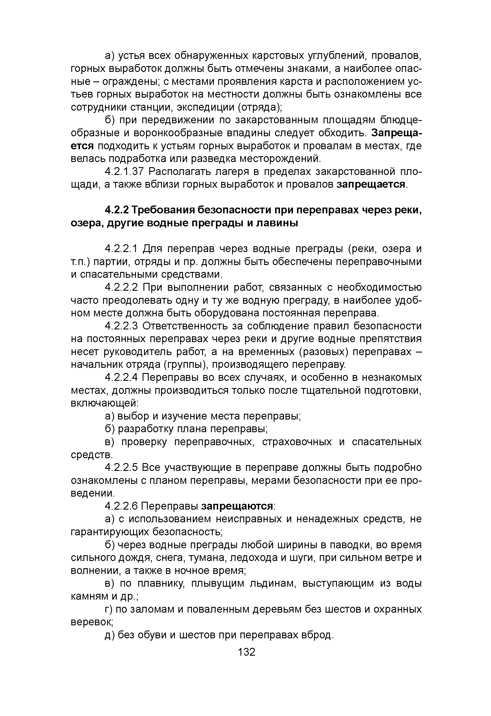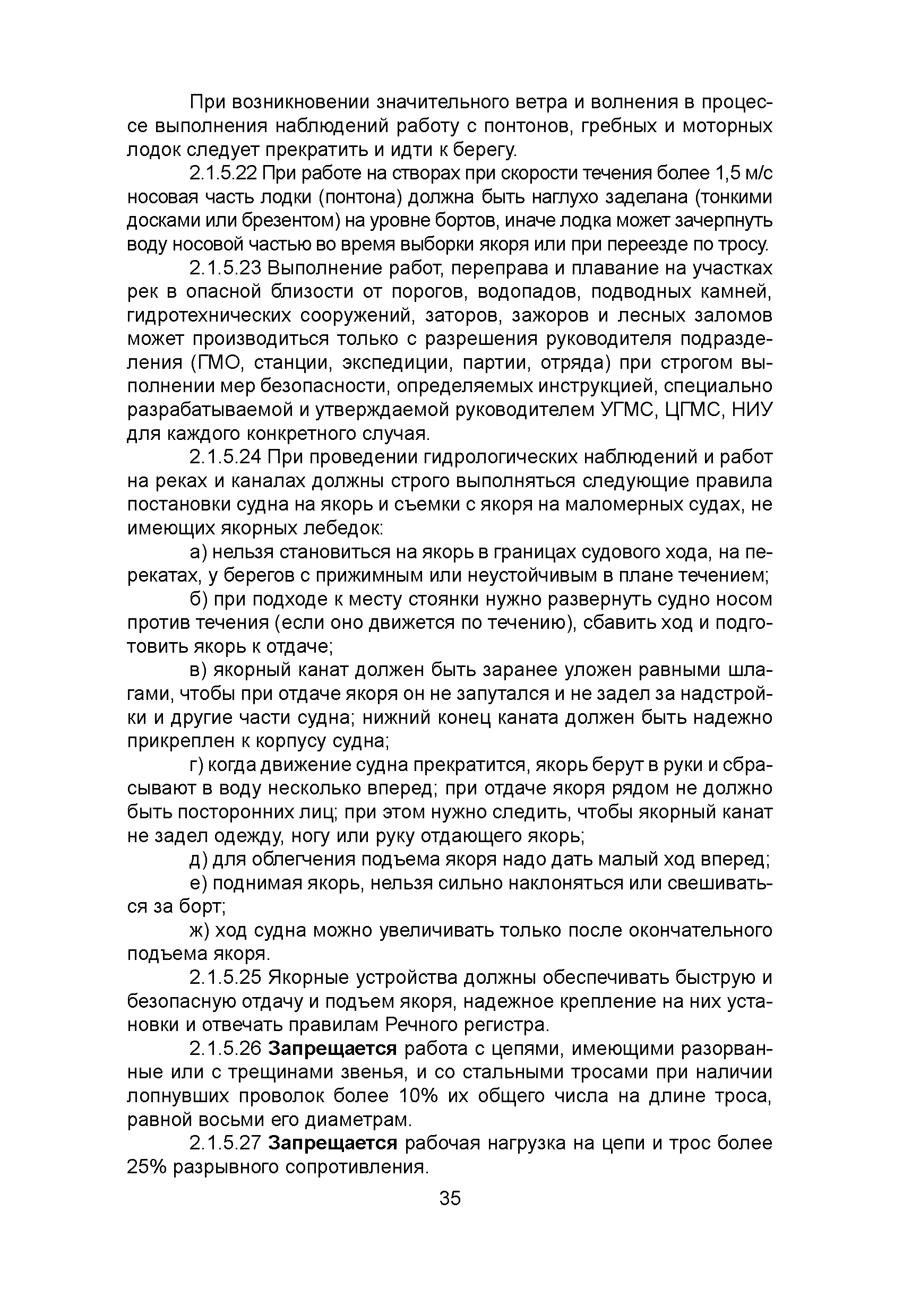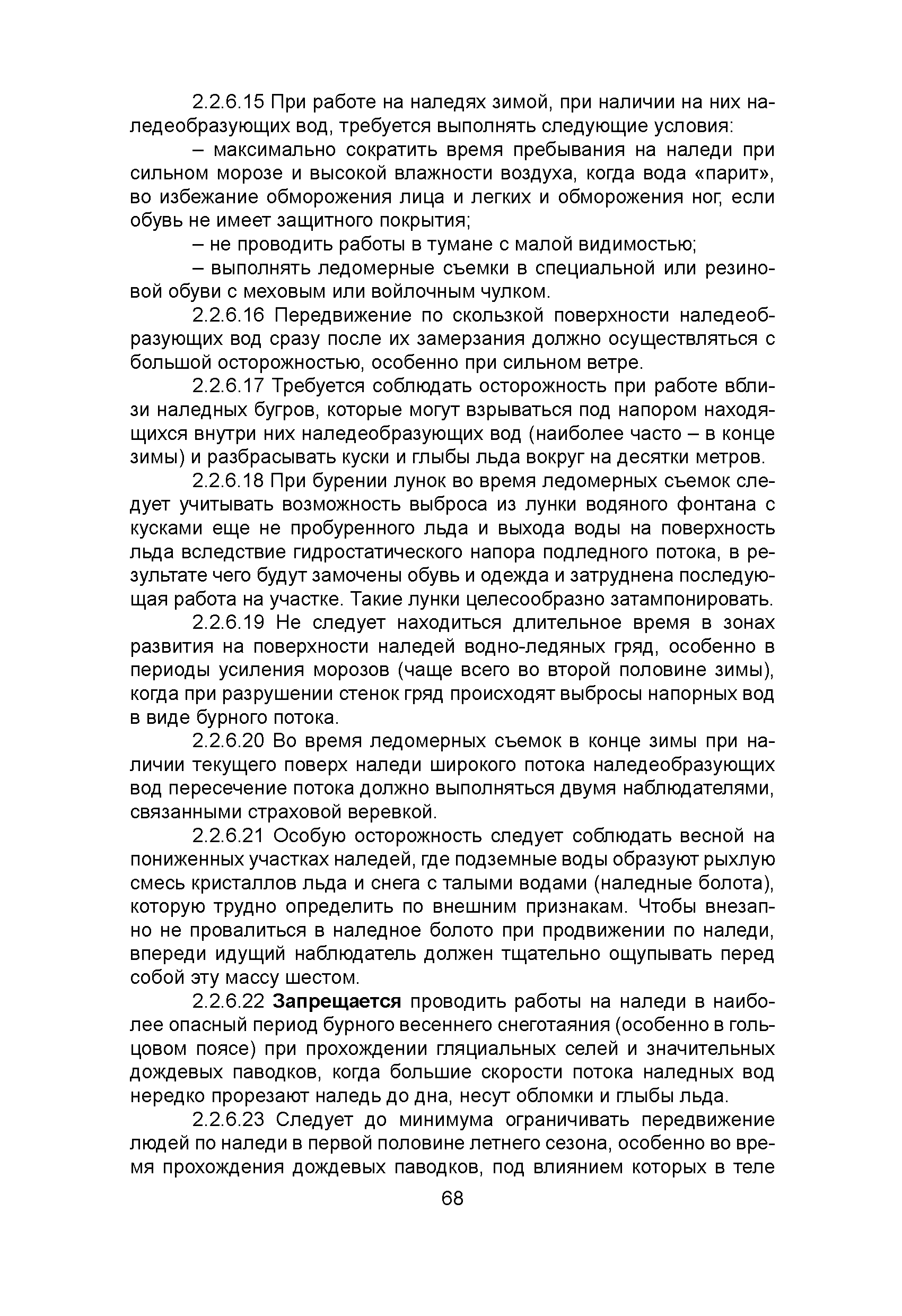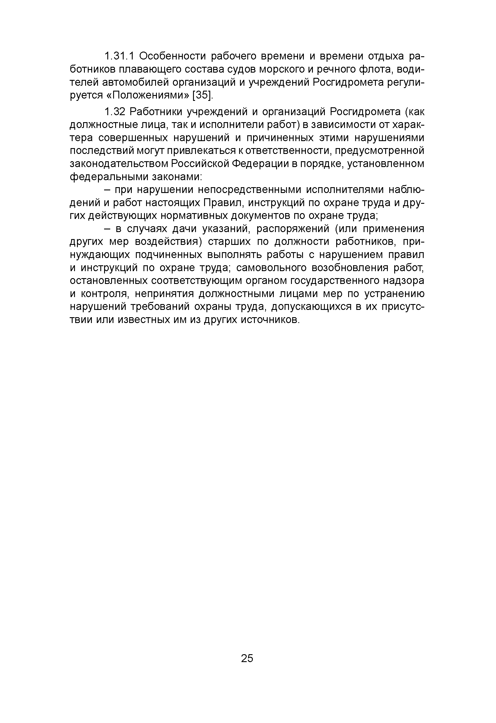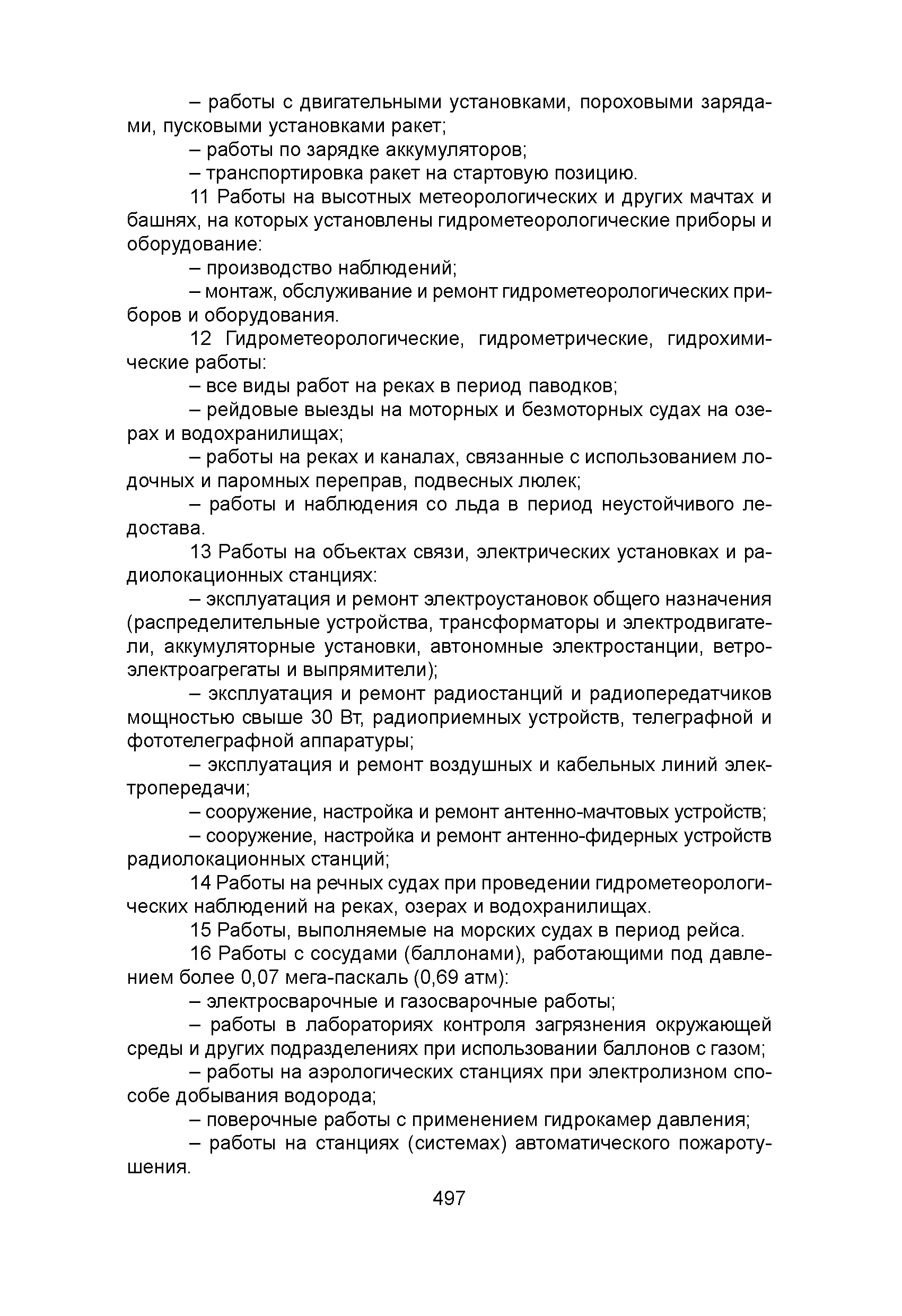 | Оглавление: | Введение 1 Общие положения 2 Гидрологические наблюдения и работы на реках и каналах 2.1 Общие требования 2.2 Требования охраны труда работников при организации и проведении гидрологических наблюдений и работ 2.2.1 Требования безопасности при проведении наблюдений за уровнем воды 2.2.2 Требования безопасности при проведении наблюдений за ледовыми явлениями и толщиной льда 2.2.3 Требования безопасности при проведении уровенных и ледовых наблюдений в случае возникновения заторов и зажоров льда 2.2.4 Требования безопасности при проведении гидрометрических работ по измерению расходов воды и наблюдений за наносами 2.2.5 Требования безопасности при проведении работ на горных и таежных реках, а также в период прохождения весеннего половодья и высоких дождевых паводков 2.2.6 Требования безопасности при организации специализированных гидрологических наблюдений и работ (болотных, воднобалансовых, на наледях) 2.2.7 Требования безопасности при проведении аэрогидрометрических наблюдений и работ 2.2.8 Средства индивидуальной защиты работников 2.2.9 Меры по защите работников при возникновении аварийных ситуаций 2.3 Требования к производственным площадкам, оборудованию, приборам и условиям их эксплуатации 2.3.1 Общие требования 2.3.2 Требования при проведении наблюдений за уровнем воды 2.3.3 Требования при проведении наблюдений за продольным уклоном водной поверхности 2.3.4 Требования при проведении наблюдений за температурой воды 2.3.5 Требования при проведении наблюдений за ледовыми явлениями, толщиной льда, снежным покровом 2.3.6 Требования при проведении измерений расходов воды и взвешенных наносов, при отборе проб донных отложений 3 Гидрометеорологические наблюдения и работы на озерах и водохранилищах 3.1 Общие требования 3.2 Требования охраны труда работников при организации и проведении гидрометеорологических наблюдений и работ 3.2.1 Общие требования 3.2.2 Требования безопасности при проведении гидрометеорологических наблюдений и работ в прибрежной зоне водоемов 3.2.3 Требования безопасности при проведении гидрометеорологических наблюдений и работ на открытой акватории водоемов 3.2.4 Требования безопасности при проведении наблюдений за ледяным покровом 3.2.5 Средства индивидуальной защиты работников 3.2.6 Защита работников при возникновении аварийных ситуаций 3.3 Требования к производственным площадкам 3.3.1 Требования к площадкам для производства гидрометеорологических наблюдений и работ в прибрежной зоне водоемов 3.3.2 Требования к площадкам для гидрометеорологических наблюдений и работ на открытой акватории водоемов 3.3.3 Требования к площадкам для наблюдений за ледяным покровом 3.4 Требования к приборам, оборудованию и условиям их эксплуатации 4 Гидрографические обследования 4.1 Общие требования 4.2 Требования охраны труда работников при организации и проведении гидрографических обследований 4.2.1 Требования безопасности при движении по маршрутам 4.2.2 Требования безопасности при переправах через реки, озера, другие водные преграды и лавины 4.2.3 Требования безопасности при проведении маршрутных снегомерных съемок на равнинной территории 4.2.4 Требования безопасности при применении авиационного транспорта 4.2.5 Средства индивидуальной защиты работников 4.2.6 Защита работников при возникновении аварийных ситуаций 4.3 Требования к пло