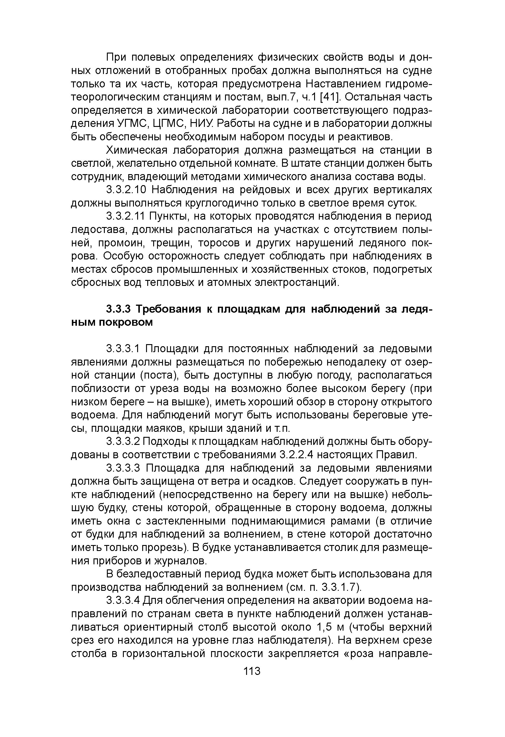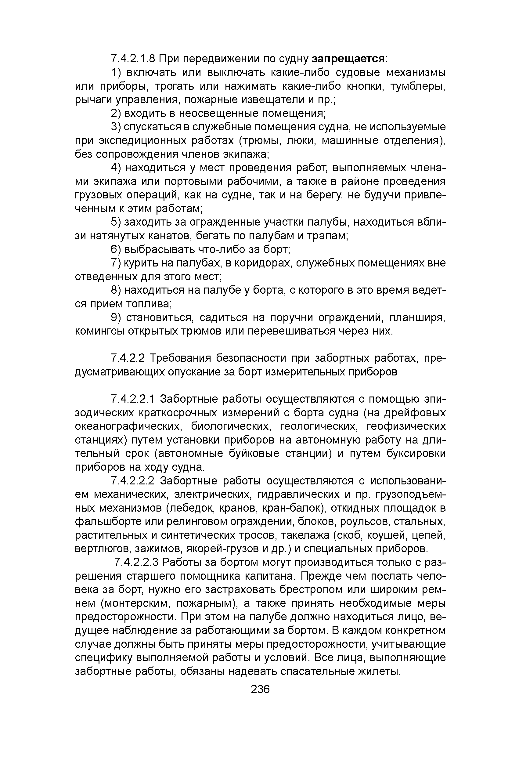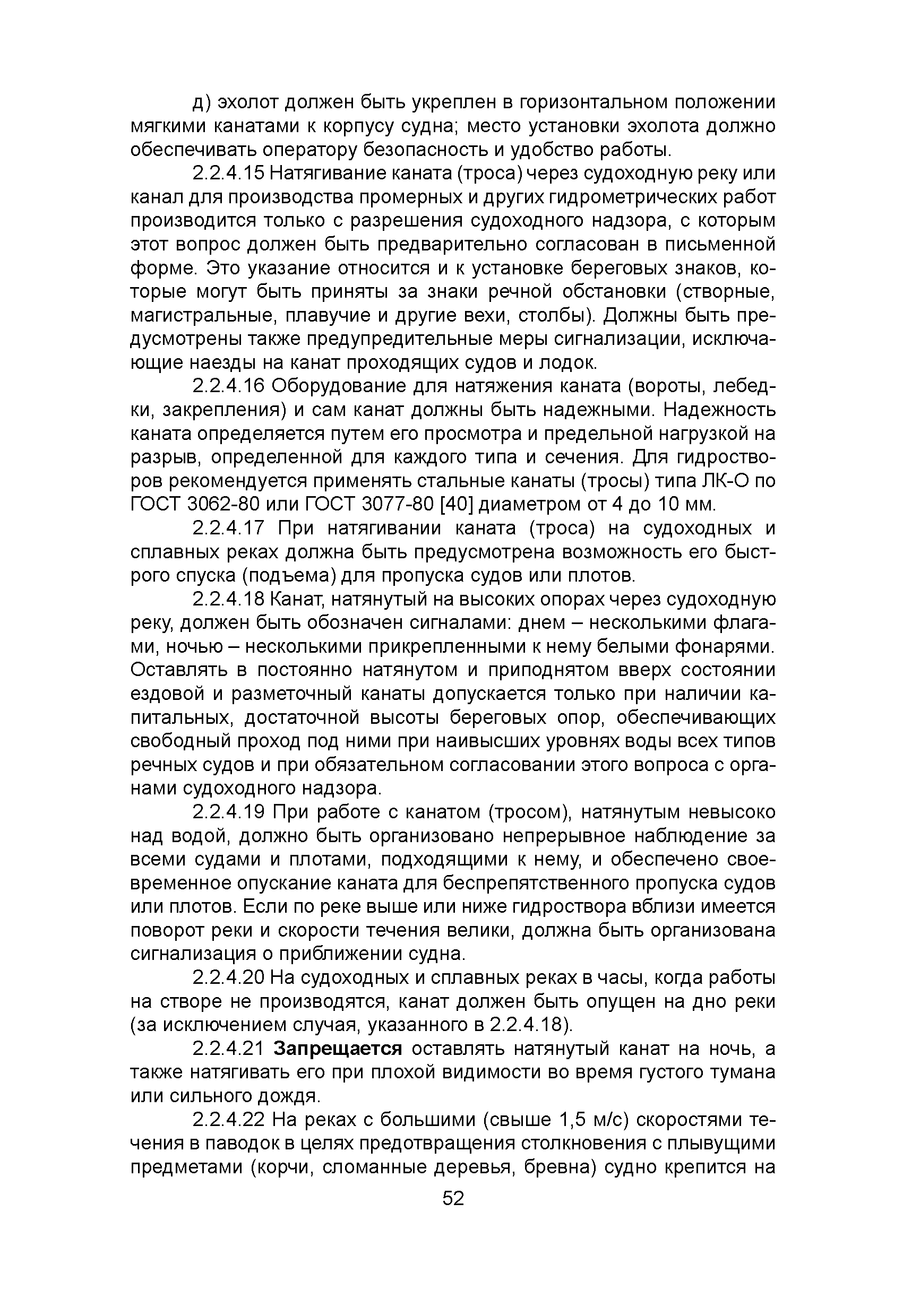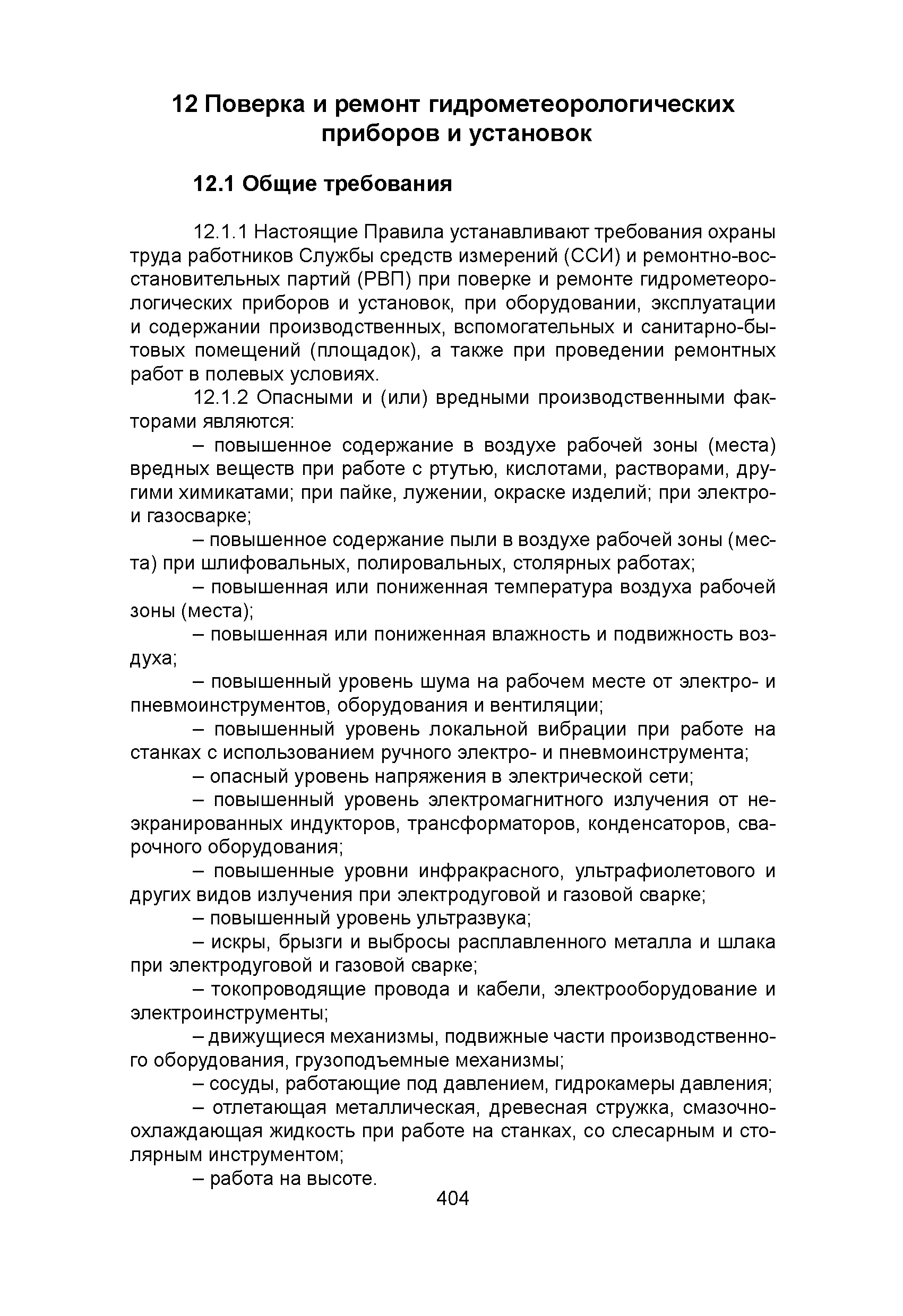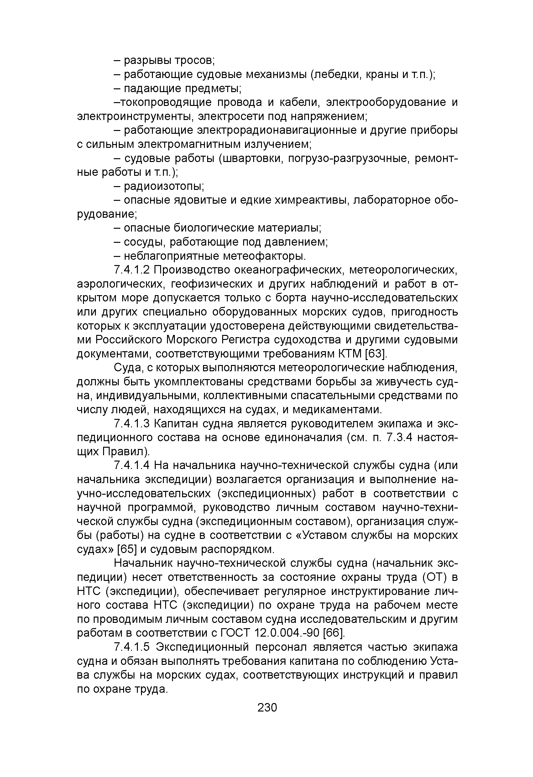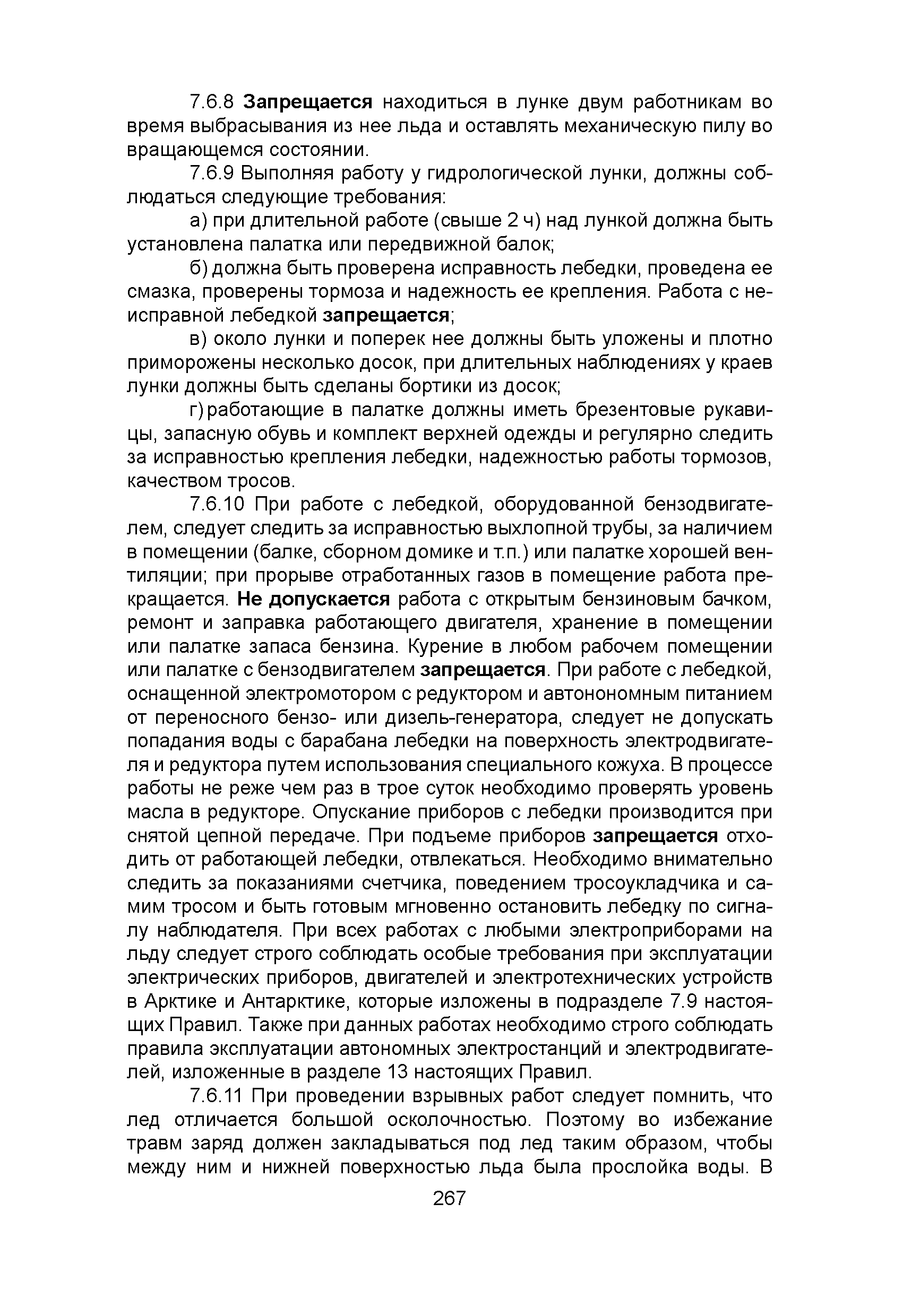 | Оглавление: | Введение 1 Общие положения 2 Гидрологические наблюдения и работы на реках и каналах 2.1 Общие требования 2.2 Требования охраны труда работников при организации и проведении гидрологических наблюдений и работ 2.2.1 Требования безопасности при проведении наблюдений за уровнем воды 2.2.2 Требования безопасности при проведении наблюдений за ледовыми явлениями и толщиной льда 2.2.3 Требования безопасности при проведении уровенных и ледовых наблюдений в случае возникновения заторов и зажоров льда 2.2.4 Требования безопасности при проведении гидрометрических работ по измерению расходов воды и наблюдений за наносами 2.2.5 Требования безопасности при проведении работ на горных и таежных реках, а также в период прохождения весеннего половодья и высоких дождевых паводков 2.2.6 Требования безопасности при организации специализированных гидрологических наблюдений и работ (болотных, воднобалансовых, на наледях) 2.2.7 Требования безопасности при проведении аэрогидрометрических наблюдений и работ 2.2.8 Средства индивидуальной защиты работников 2.2.9 Меры по защите работников при возникновении аварийных ситуаций 2.3 Требования к производственным площадкам, оборудованию, приборам и условиям их эксплуатации 2.3.1 Общие требования 2.3.2 Требования при проведении наблюдений за уровнем воды 2.3.3 Требования при проведении наблюдений за продольным уклоном водной поверхности 2.3.4 Требования при проведении наблюдений за температурой воды 2.3.5 Требования при проведении наблюдений за ледовыми явлениями, толщиной льда, снежным покровом 2.3.6 Требования при проведении измерений расходов воды и взвешенных наносов, при отборе проб донных отложений 3 Гидрометеорологические наблюдения и работы на озерах и водохранилищах 3.1 Общие требования 3.2 Требования охраны труда работников при организации и проведении гидрометеорологических наблюдений и работ 3.2.1 Общие требования 3.2.2 Требования безопасности при проведении гидрометеорологических наблюдений и работ в прибрежной зоне водоемов 3.2.3 Требования безопасности при проведении гидрометеорологических наблюдений и работ на открытой акватории водоемов 3.2.4 Требования безопасности при проведении наблюдений за ледяным покровом 3.2.5 Средства индивидуальной защиты работников 3.2.6 Защита работников при возникновении аварийных ситуаций 3.3 Требования к производственным площадкам 3.3.1 Требования к площадкам для производства гидрометеорологических наблюдений и работ в прибрежной зоне водоемов 3.3.2 Требования к площадкам для гидрометеорологических наблюдений и работ на открытой акватории водоемов 3.3.3 Требования к площадкам для наблюдений за ледяным покровом 3.4 Требования к приборам, оборудованию и условиям их эксплуатации 4 Гидрографические обследования 4.1 Общие требования 4.2 Требования охраны труда работников при организации и проведении гидрографических обследований 4.2.1 Требования безопасности при движении по маршрутам 4.2.2 Требования безопасности при переправах через реки, озера, другие водные преграды и лавины 4.2.3 Требования безопасности при проведении маршрутных снегомерных съемок на равнинной территории 4.2.4 Требования безопасности при применении авиационного транспорта 4.2.5 Средства индивидуальной защиты работников 4.2.6 Защита работников при возникновении аварийных ситуаций 4.3 Требования к пло