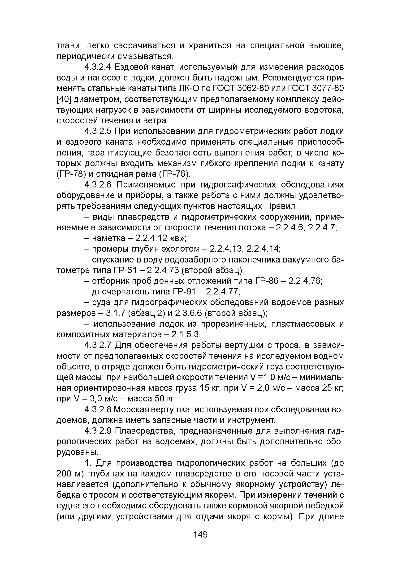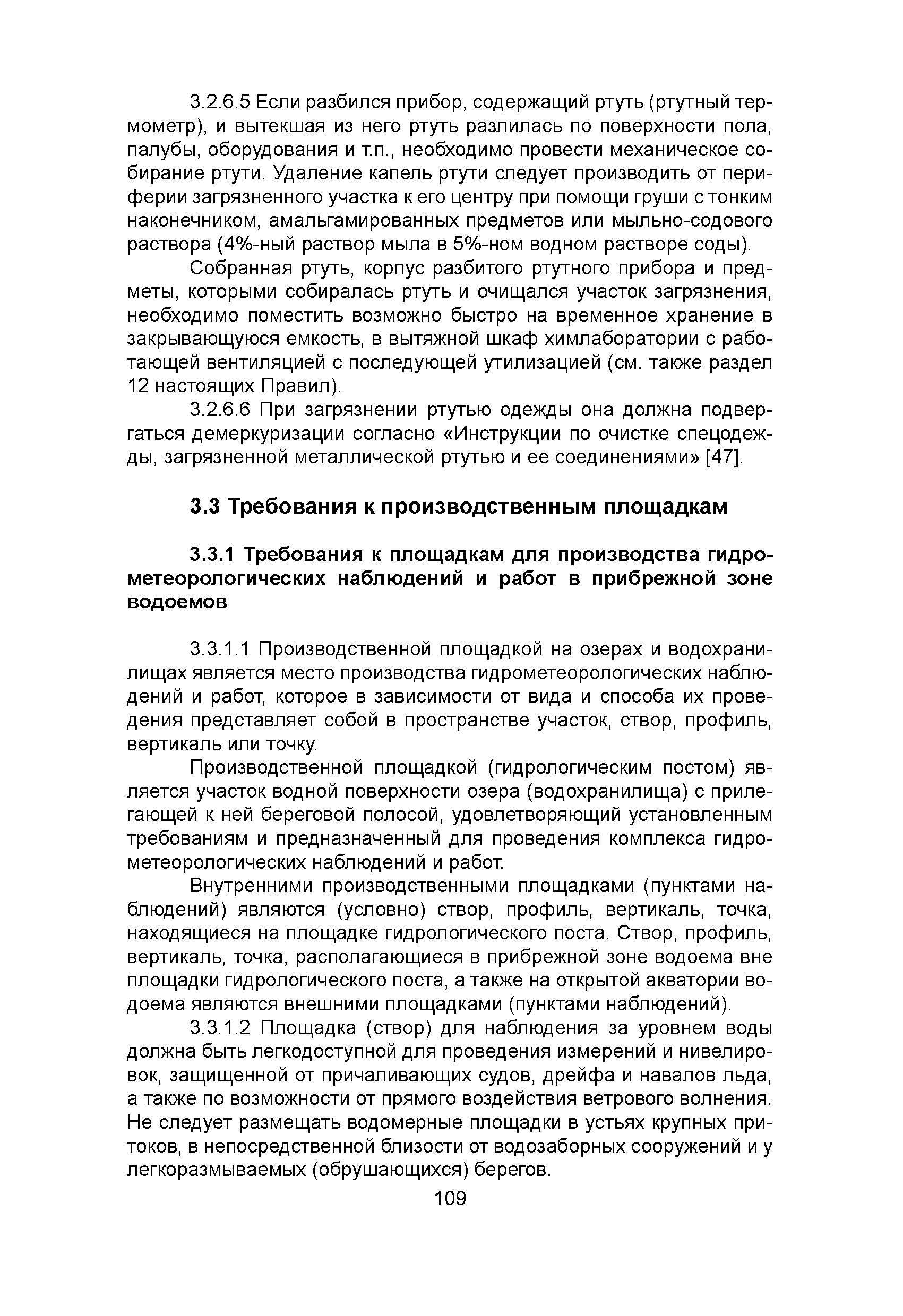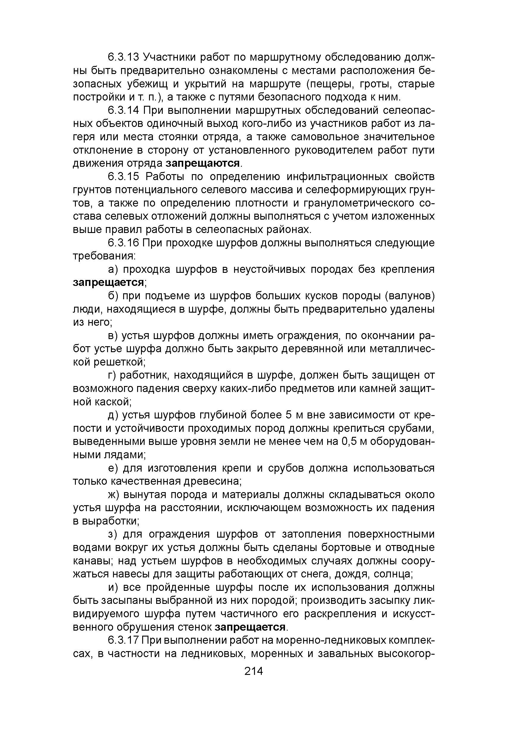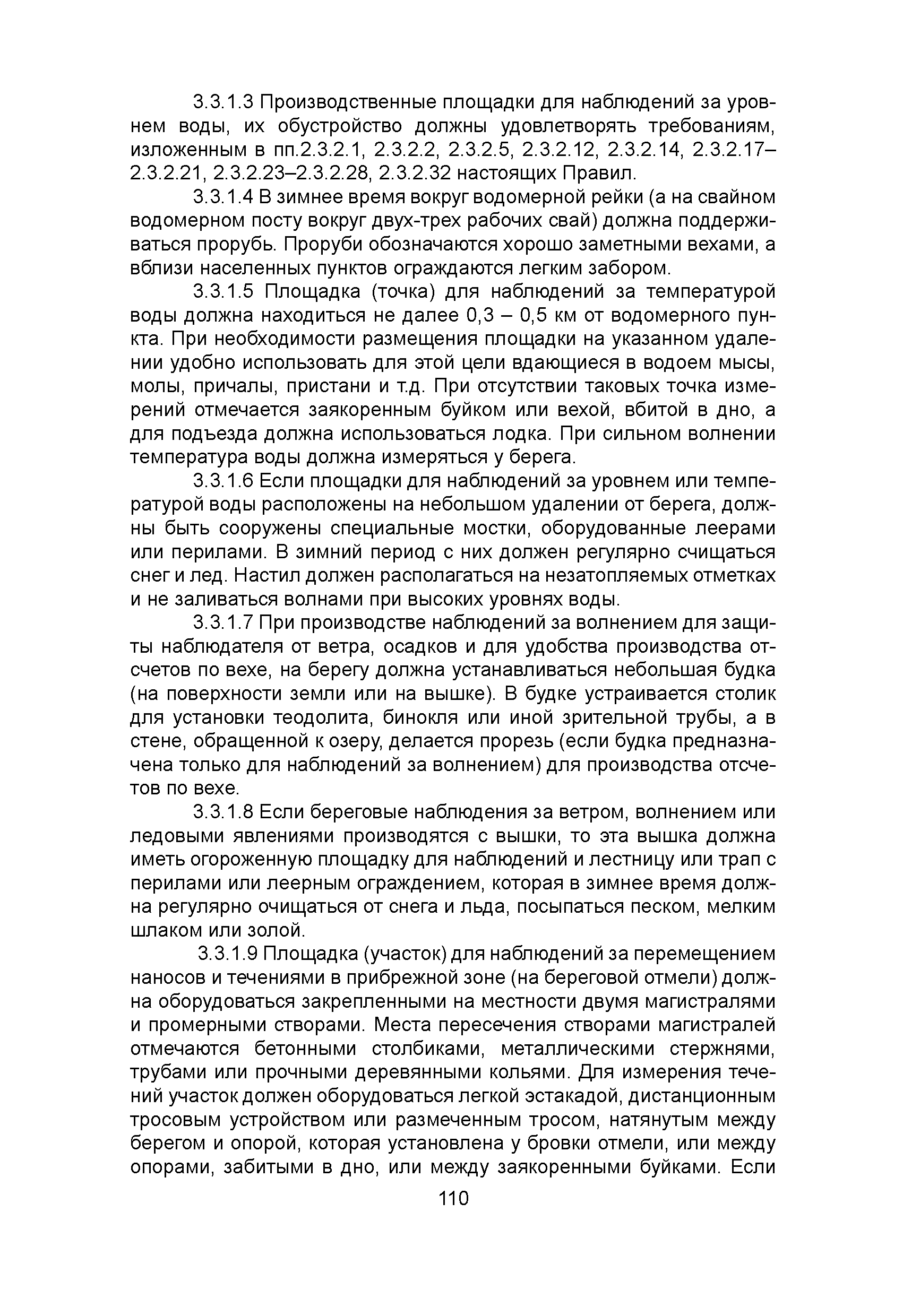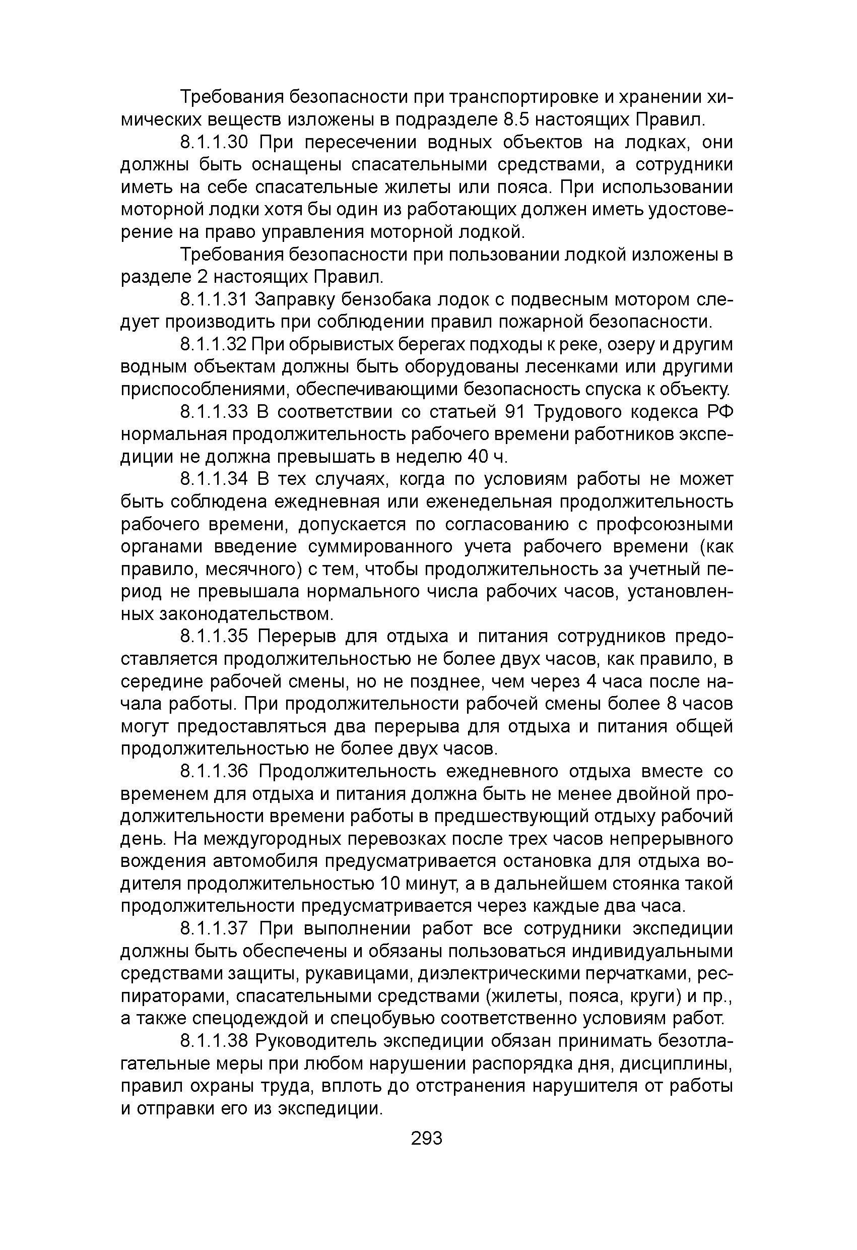 | Оглавление: | Введение 1 Общие положения 2 Гидрологические наблюдения и работы на реках и каналах 2.1 Общие требования 2.2 Требования охраны труда работников при организации и проведении гидрологических наблюдений и работ 2.2.1 Требования безопасности при проведении наблюдений за уровнем воды 2.2.2 Требования безопасности при проведении наблюдений за ледовыми явлениями и толщиной льда 2.2.3 Требования безопасности при проведении уровенных и ледовых наблюдений в случае возникновения заторов и зажоров льда 2.2.4 Требования безопасности при проведении гидрометрических работ по измерению расходов воды и наблюдений за наносами 2.2.5 Требования безопасности при проведении работ на горных и таежных реках, а также в период прохождения весеннего половодья и высоких дождевых паводков 2.2.6 Требования безопасности при организации специализированных гидрологических наблюдений и работ (болотных, воднобалансовых, на наледях) 2.2.7 Требования безопасности при проведении аэрогидрометрических наблюдений и работ 2.2.8 Средства индивидуальной защиты работников 2.2.9 Меры по защите работников при возникновении аварийных ситуаций 2.3 Требования к производственным площадкам, оборудованию, приборам и условиям их эксплуатации 2.3.1 Общие требования 2.3.2 Требования при проведении наблюдений за уровнем воды 2.3.3 Требования при проведении наблюдений за продольным уклоном водной поверхности 2.3.4 Требования при проведении наблюдений за температурой воды 2.3.5 Требования при проведении наблюдений за ледовыми явлениями, толщиной льда, снежным покровом 2.3.6 Требования при проведении измерений расходов воды и взвешенных наносов, при отборе проб донных отложений 3 Гидрометеорологические наблюдения и работы на озерах и водохранилищах 3.1 Общие требования 3.2 Требования охраны труда работников при организации и проведении гидрометеорологических наблюдений и работ 3.2.1 Общие требования 3.2.2 Требования безопасности при проведении гидрометеорологических наблюдений и работ в прибрежной зоне водоемов 3.2.3 Требования безопасности при проведении гидрометеорологических наблюдений и работ на открытой акватории водоемов 3.2.4 Требования безопасности при проведении наблюдений за ледяным покровом 3.2.5 Средства индивидуальной защиты работников 3.2.6 Защита работников при возникновении аварийных ситуаций 3.3 Требования к производственным площадкам 3.3.1 Требования к площадкам для производства гидрометеорологических наблюдений и работ в прибрежной зоне водоемов 3.3.2 Требования к площадкам для гидрометеорологических наблюдений и работ на открытой акватории водоемов 3.3.3 Требования к площадкам для наблюдений за ледяным покровом 3.4 Требования к приборам, оборудованию и условиям их эксплуатации 4 Гидрографические обследования 4.1 Общие требования 4.2 Требования охраны труда работников при организации и проведении гидрографических обследований 4.2.1 Требования безопасности при движении по маршрутам 4.2.2 Требования безопасности при переправах через реки, озера, другие водные преграды и лавины 4.2.3 Требования безопасности при проведении маршрутных снегомерных съемок на равнинной территории 4.2.4 Требования безопасности при применении авиационного транспорта 4.2.5 Средства индивидуальной защиты работников 4.2.6 Защита работников при возникновении аварийных ситуаций 4.3 Требования к пло