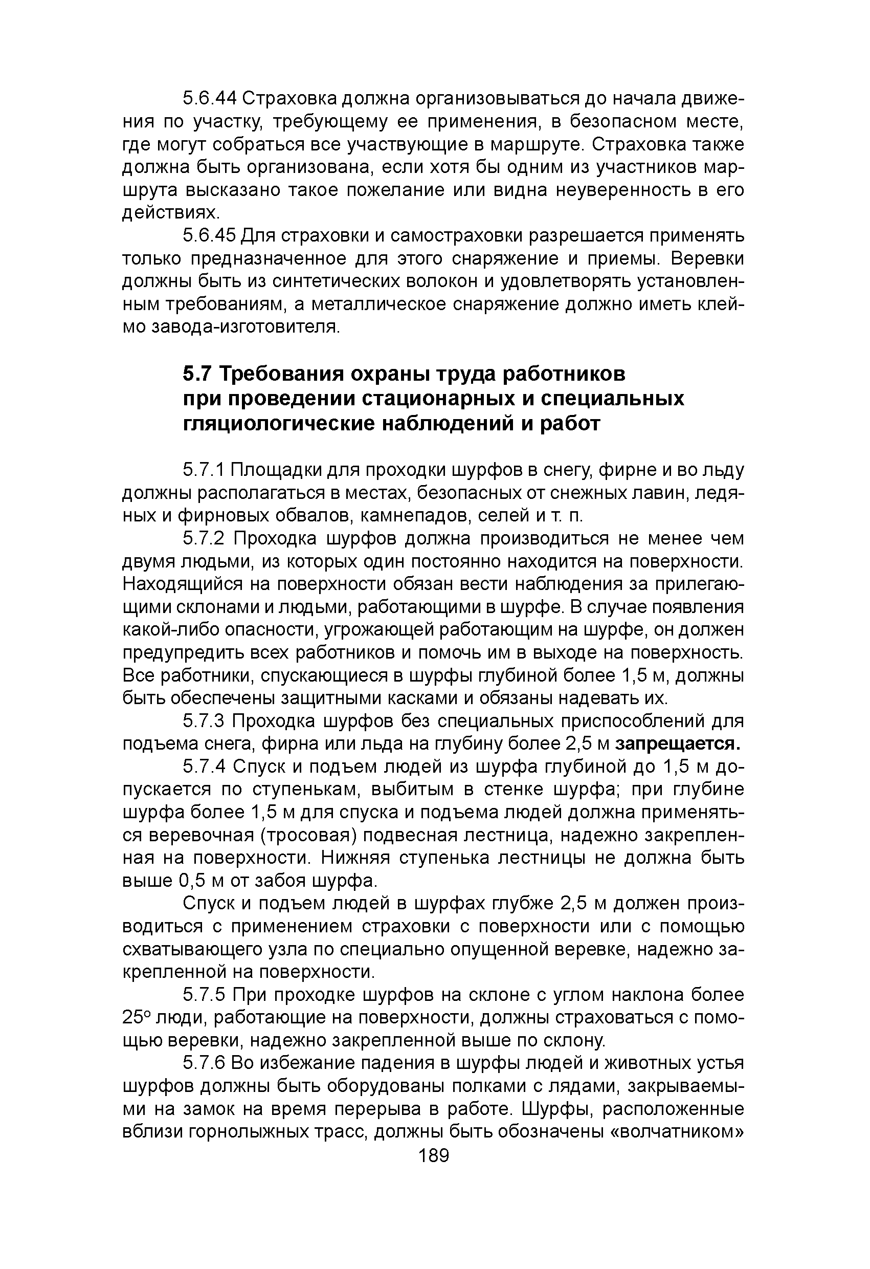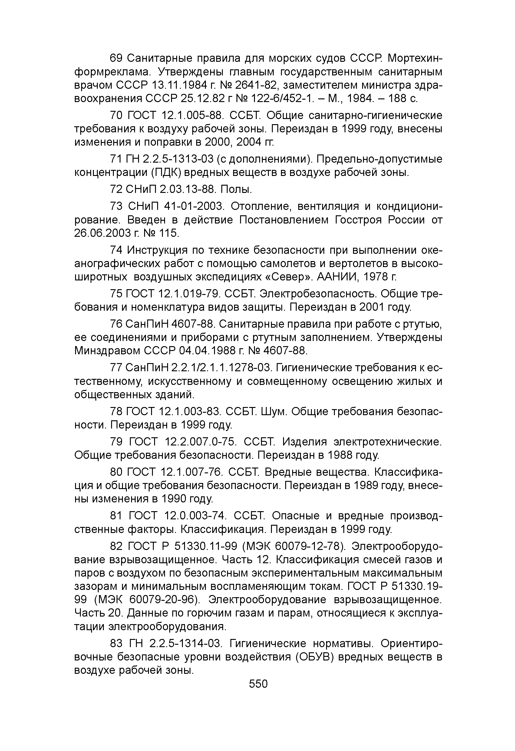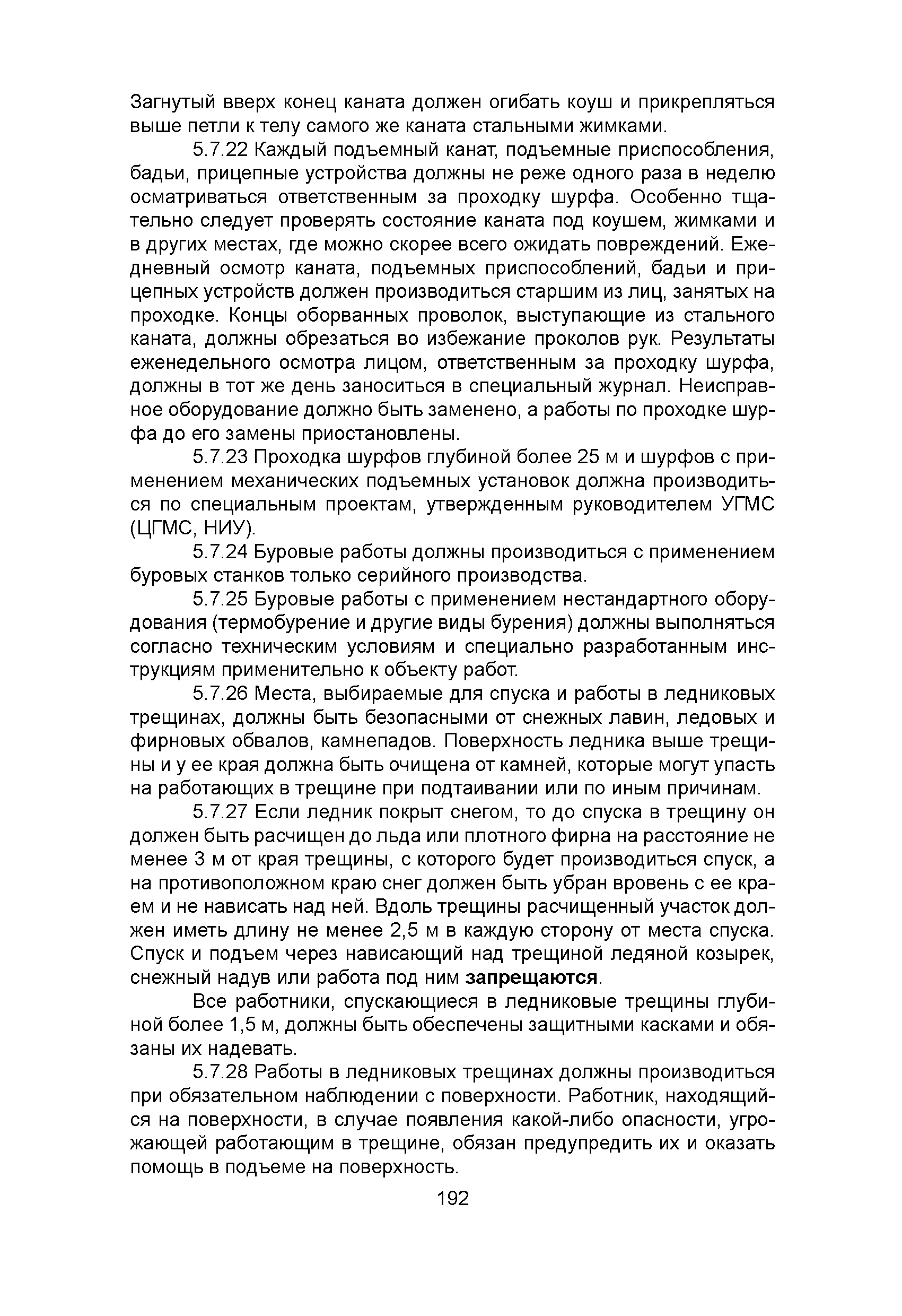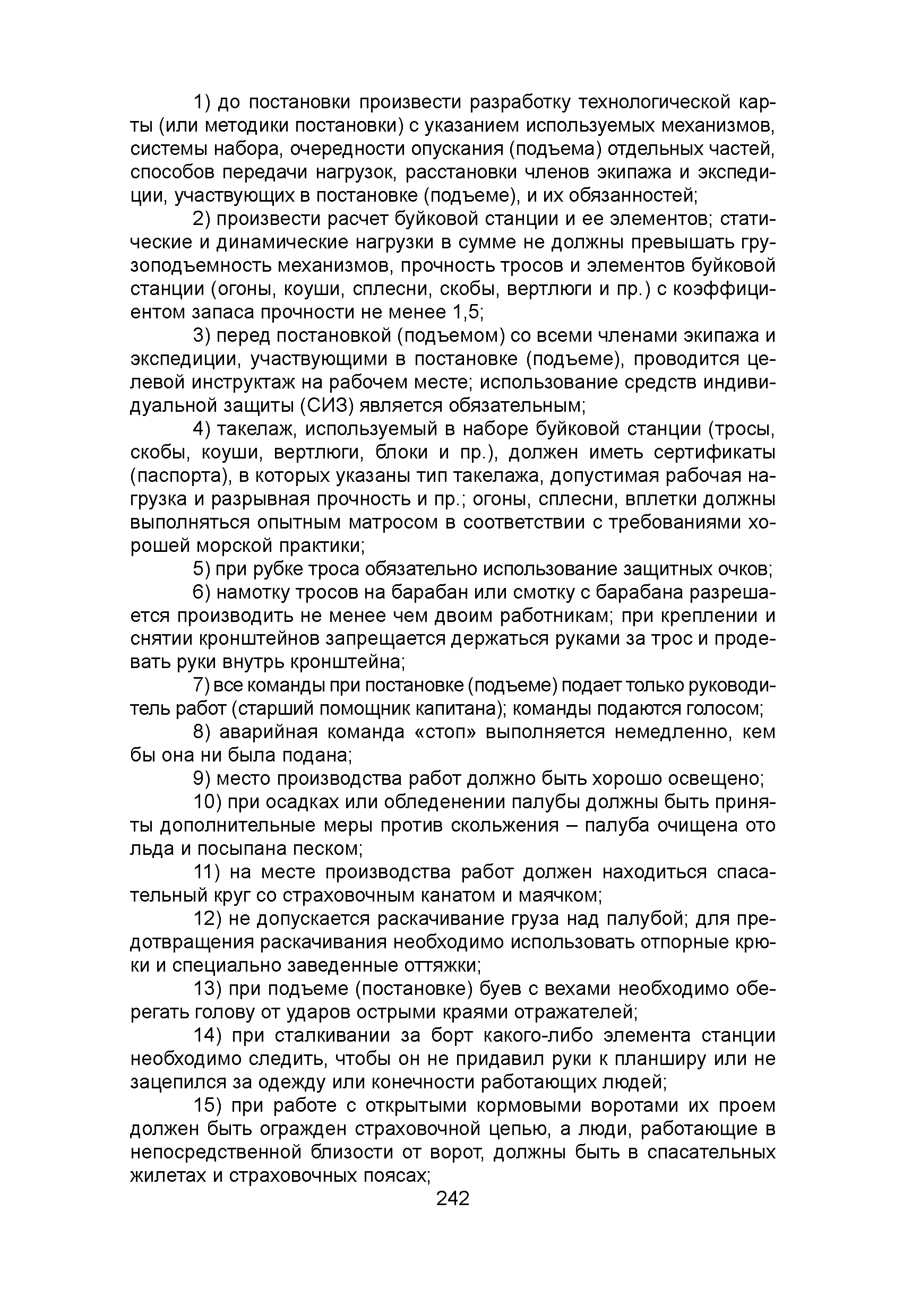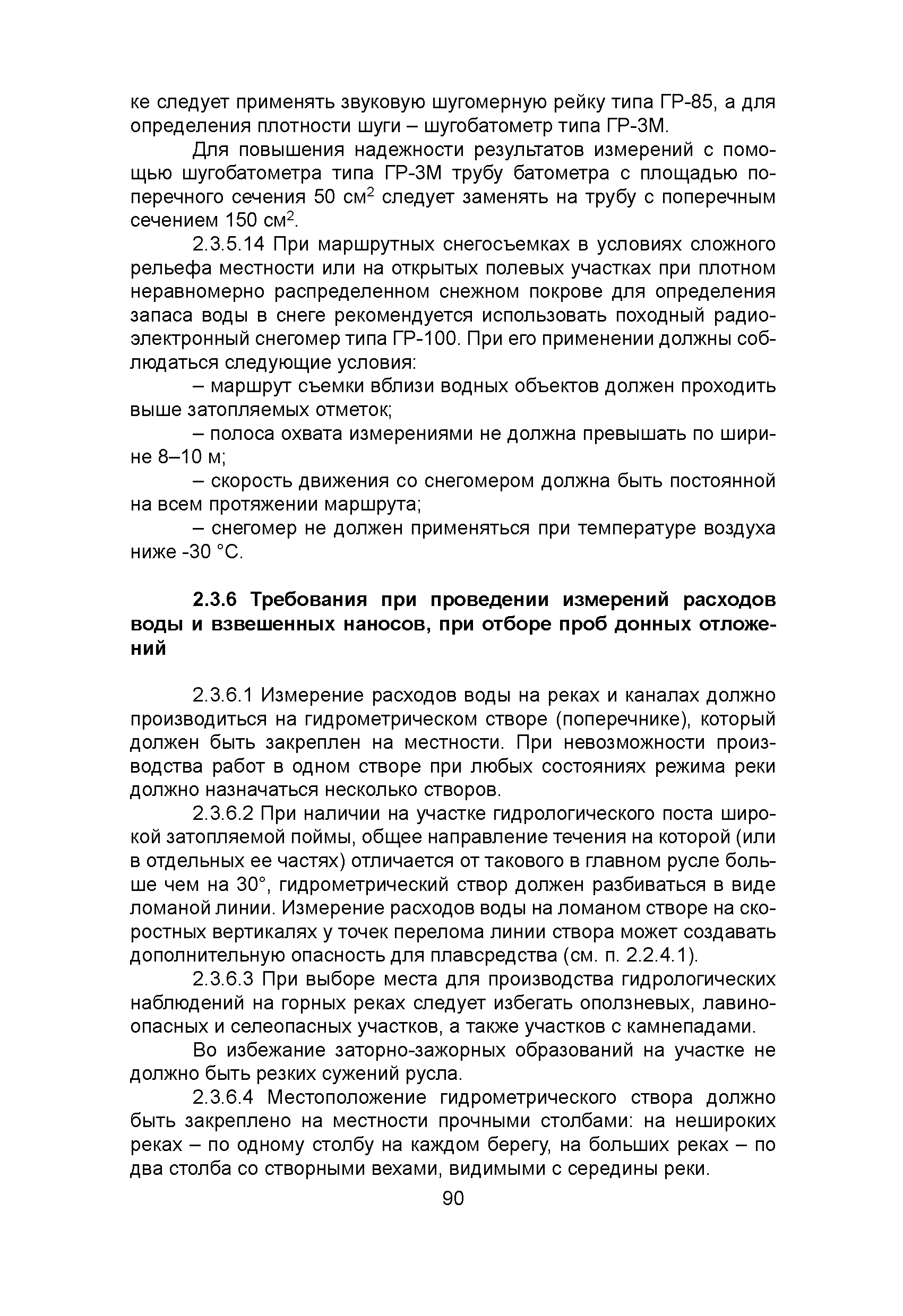 | Оглавление: | Введение 1 Общие положения 2 Гидрологические наблюдения и работы на реках и каналах 2.1 Общие требования 2.2 Требования охраны труда работников при организации и проведении гидрологических наблюдений и работ 2.2.1 Требования безопасности при проведении наблюдений за уровнем воды 2.2.2 Требования безопасности при проведении наблюдений за ледовыми явлениями и толщиной льда 2.2.3 Требования безопасности при проведении уровенных и ледовых наблюдений в случае возникновения заторов и зажоров льда 2.2.4 Требования безопасности при проведении гидрометрических работ по измерению расходов воды и наблюдений за наносами 2.2.5 Требования безопасности при проведении работ на горных и таежных реках, а также в период прохождения весеннего половодья и высоких дождевых паводков 2.2.6 Требования безопасности при организации специализированных гидрологических наблюдений и работ (болотных, воднобалансовых, на наледях) 2.2.7 Требования безопасности при проведении аэрогидрометрических наблюдений и работ 2.2.8 Средства индивидуальной защиты работников 2.2.9 Меры по защите работников при возникновении аварийных ситуаций 2.3 Требования к производственным площадкам, оборудованию, приборам и условиям их эксплуатации 2.3.1 Общие требования 2.3.2 Требования при проведении наблюдений за уровнем воды 2.3.3 Требования при проведении наблюдений за продольным уклоном водной поверхности 2.3.4 Требования при проведении наблюдений за температурой воды 2.3.5 Требования при проведении наблюдений за ледовыми явлениями, толщиной льда, снежным покровом 2.3.6 Требования при проведении измерений расходов воды и взвешенных наносов, при отборе проб донных отложений 3 Гидрометеорологические наблюдения и работы на озерах и водохранилищах 3.1 Общие требования 3.2 Требования охраны труда работников при организации и проведении гидрометеорологических наблюдений и работ 3.2.1 Общие требования 3.2.2 Требования безопасности при проведении гидрометеорологических наблюдений и работ в прибрежной зоне водоемов 3.2.3 Требования безопасности при проведении гидрометеорологических наблюдений и работ на открытой акватории водоемов 3.2.4 Требования безопасности при проведении наблюдений за ледяным покровом 3.2.5 Средства индивидуальной защиты работников 3.2.6 Защита работников при возникновении аварийных ситуаций 3.3 Требования к производственным площадкам 3.3.1 Требования к площадкам для производства гидрометеорологических наблюдений и работ в прибрежной зоне водоемов 3.3.2 Требования к площадкам для гидрометеорологических наблюдений и работ на открытой акватории водоемов 3.3.3 Требования к площадкам для наблюдений за ледяным покровом 3.4 Требования к приборам, оборудованию и условиям их эксплуатации 4 Гидрографические обследования 4.1 Общие требования 4.2 Требования охраны труда работников при организации и проведении гидрографических обследований 4.2.1 Требования безопасности при движении по маршрутам 4.2.2 Требования безопасности при переправах через реки, озера, другие водные преграды и лавины 4.2.3 Требования безопасности при проведении маршрутных снегомерных съемок на равнинной территории 4.2.4 Требования безопасности при применении авиационного транспорта 4.2.5 Средства индивидуальной защиты работников 4.2.6 Защита работников при возникновении аварийных ситуаций 4.3 Требования к пло