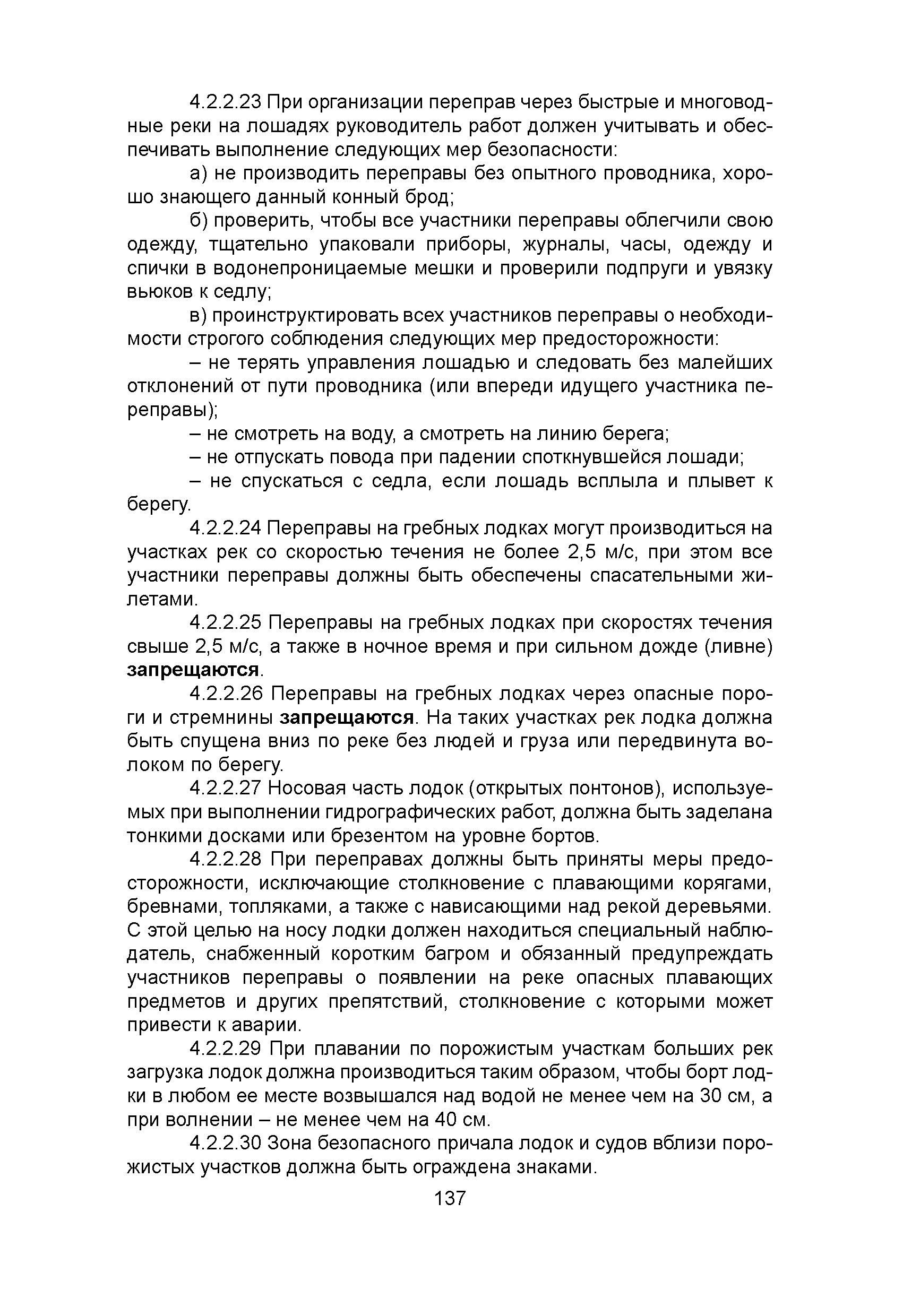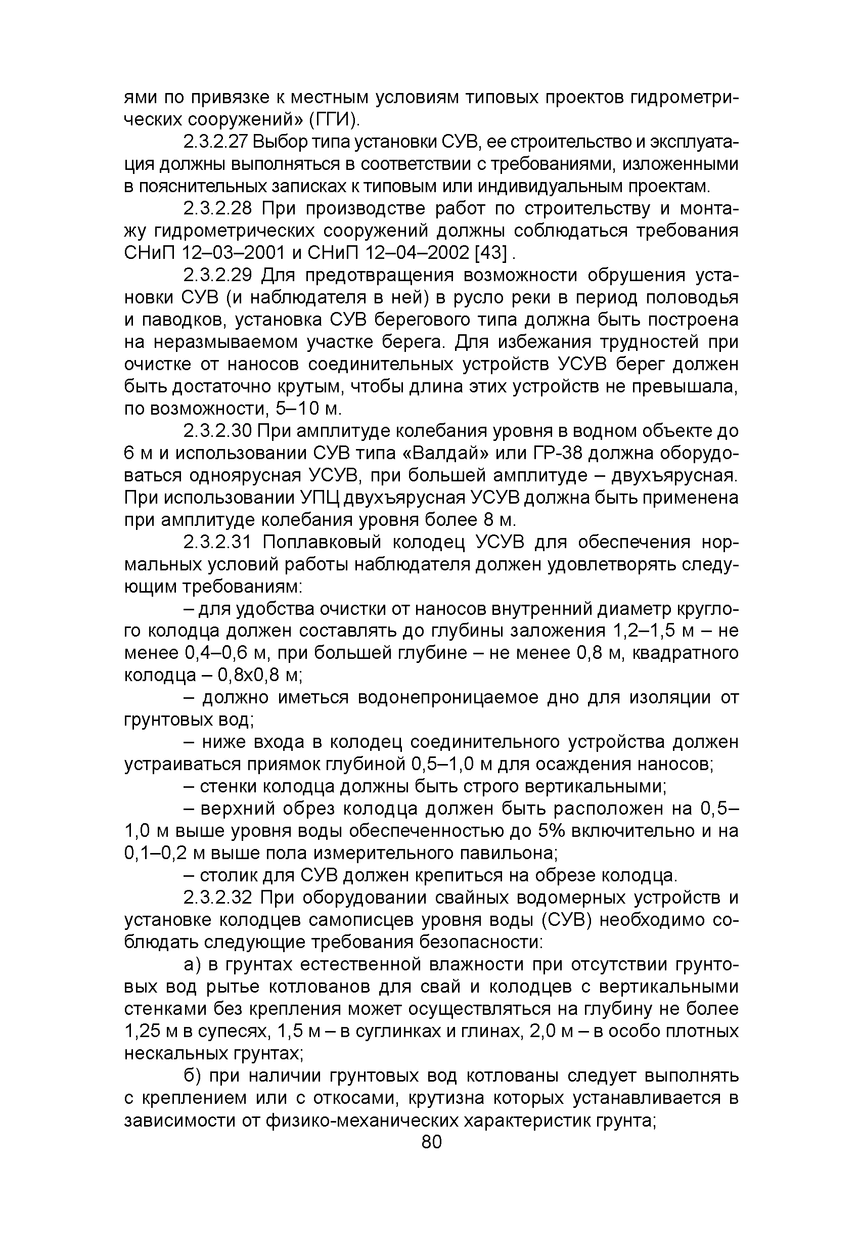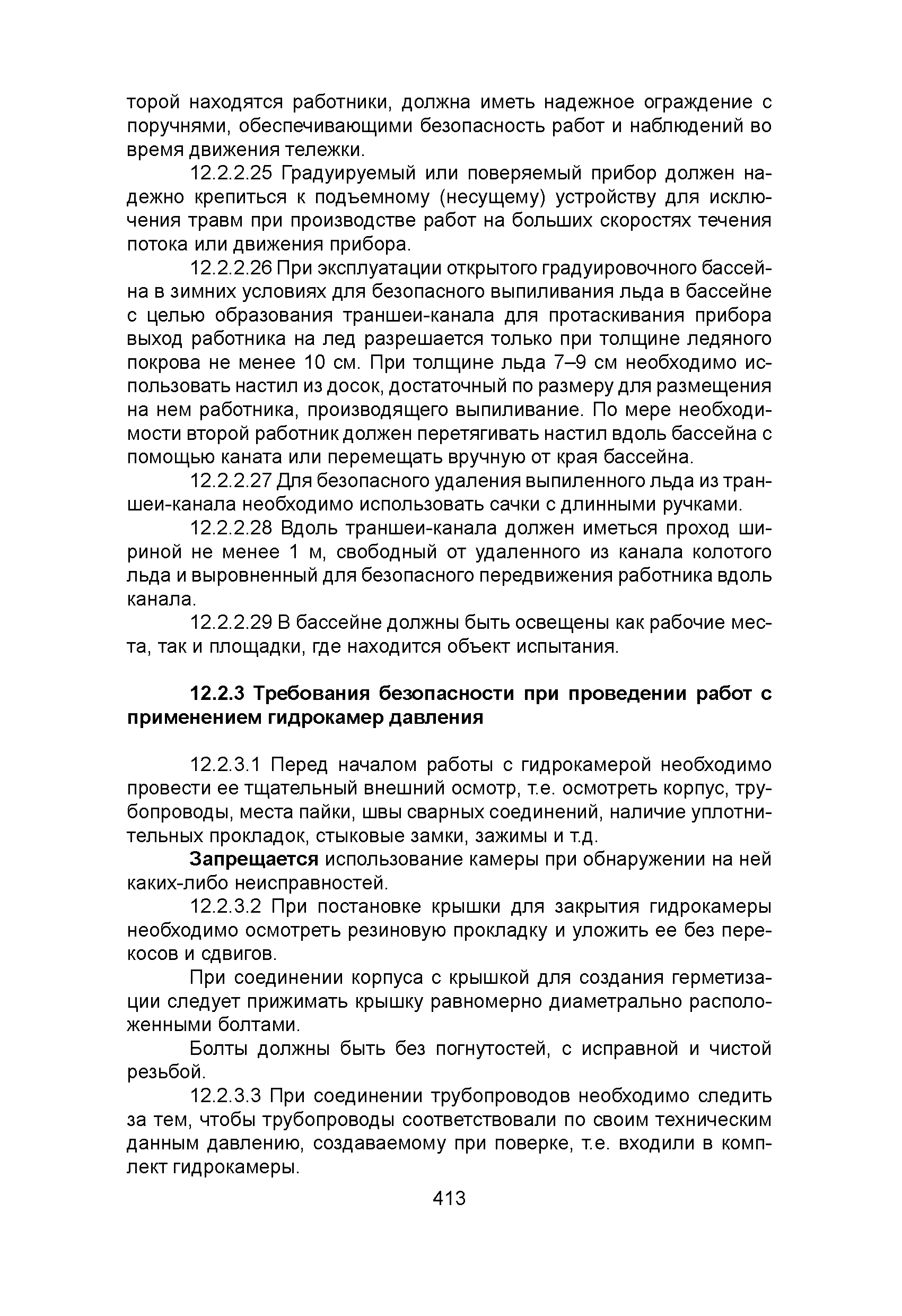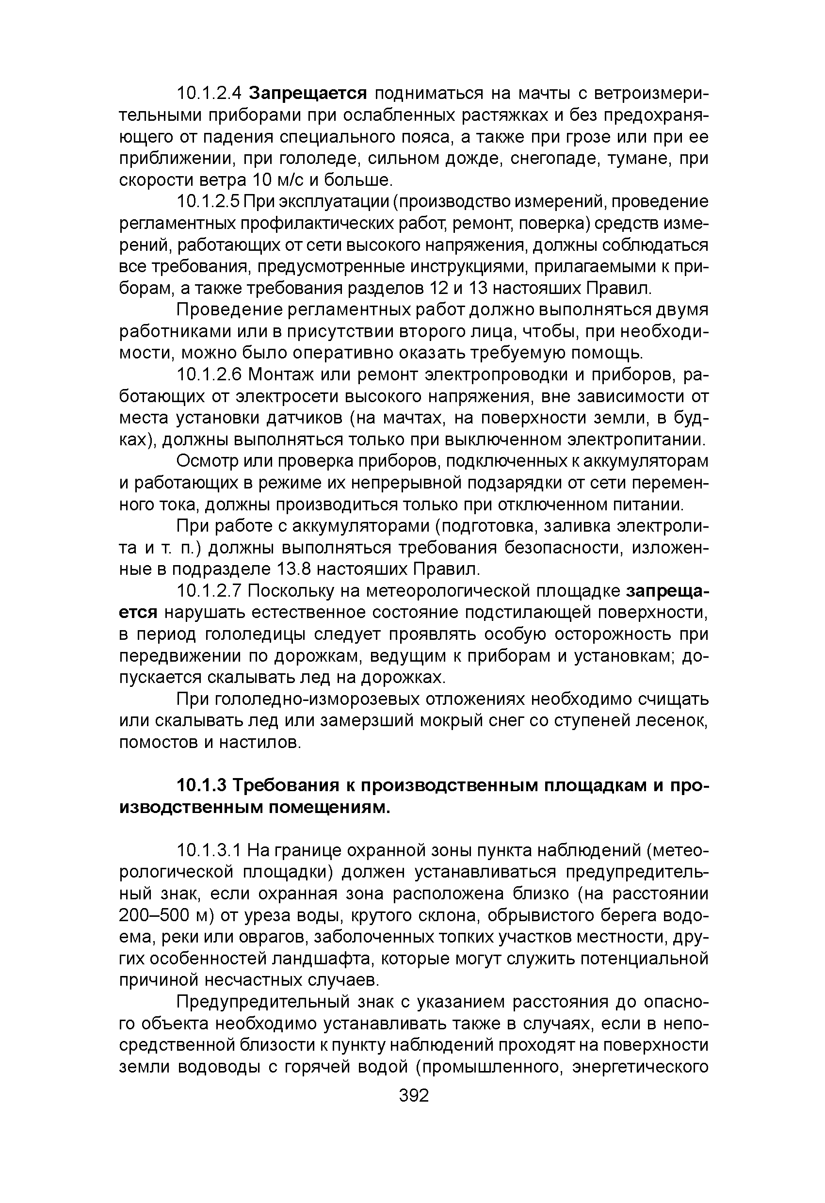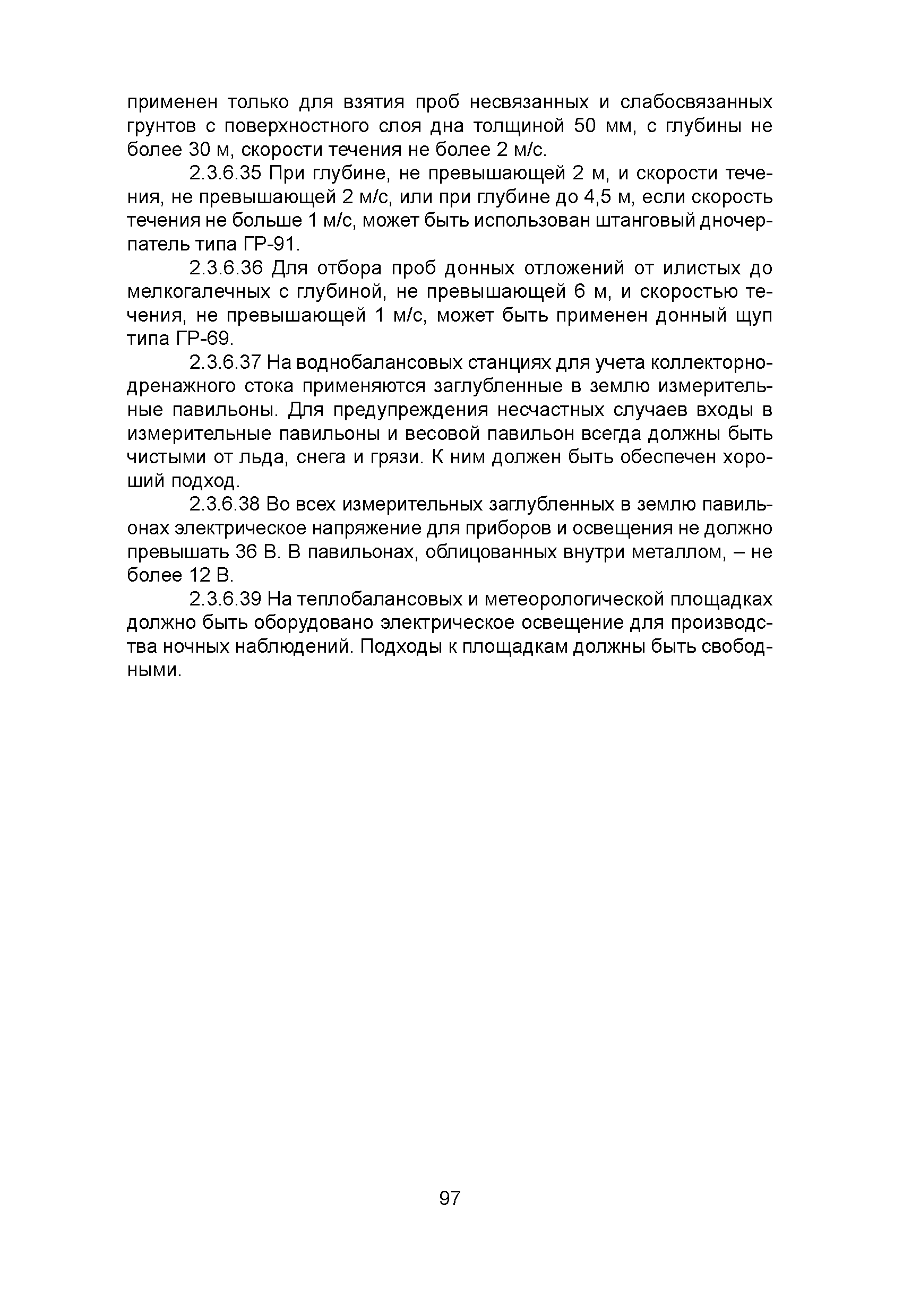 | Оглавление: | Введение 1 Общие положения 2 Гидрологические наблюдения и работы на реках и каналах 2.1 Общие требования 2.2 Требования охраны труда работников при организации и проведении гидрологических наблюдений и работ 2.2.1 Требования безопасности при проведении наблюдений за уровнем воды 2.2.2 Требования безопасности при проведении наблюдений за ледовыми явлениями и толщиной льда 2.2.3 Требования безопасности при проведении уровенных и ледовых наблюдений в случае возникновения заторов и зажоров льда 2.2.4 Требования безопасности при проведении гидрометрических работ по измерению расходов воды и наблюдений за наносами 2.2.5 Требования безопасности при проведении работ на горных и таежных реках, а также в период прохождения весеннего половодья и высоких дождевых паводков 2.2.6 Требования безопасности при организации специализированных гидрологических наблюдений и работ (болотных, воднобалансовых, на наледях) 2.2.7 Требования безопасности при проведении аэрогидрометрических наблюдений и работ 2.2.8 Средства индивидуальной защиты работников 2.2.9 Меры по защите работников при возникновении аварийных ситуаций 2.3 Требования к производственным площадкам, оборудованию, приборам и условиям их эксплуатации 2.3.1 Общие требования 2.3.2 Требования при проведении наблюдений за уровнем воды 2.3.3 Требования при проведении наблюдений за продольным уклоном водной поверхности 2.3.4 Требования при проведении наблюдений за температурой воды 2.3.5 Требования при проведении наблюдений за ледовыми явлениями, толщиной льда, снежным покровом 2.3.6 Требования при проведении измерений расходов воды и взвешенных наносов, при отборе проб донных отложений 3 Гидрометеорологические наблюдения и работы на озерах и водохранилищах 3.1 Общие требования 3.2 Требования охраны труда работников при организации и проведении гидрометеорологических наблюдений и работ 3.2.1 Общие требования 3.2.2 Требования безопасности при проведении гидрометеорологических наблюдений и работ в прибрежной зоне водоемов 3.2.3 Требования безопасности при проведении гидрометеорологических наблюдений и работ на открытой акватории водоемов 3.2.4 Требования безопасности при проведении наблюдений за ледяным покровом 3.2.5 Средства индивидуальной защиты работников 3.2.6 Защита работников при возникновении аварийных ситуаций 3.3 Требования к производственным площадкам 3.3.1 Требования к площадкам для производства гидрометеорологических наблюдений и работ в прибрежной зоне водоемов 3.3.2 Требования к площадкам для гидрометеорологических наблюдений и работ на открытой акватории водоемов 3.3.3 Требования к площадкам для наблюдений за ледяным покровом 3.4 Требования к приборам, оборудованию и условиям их эксплуатации 4 Гидрографические обследования 4.1 Общие требования 4.2 Требования охраны труда работников при организации и проведении гидрографических обследований 4.2.1 Требования безопасности при движении по маршрутам 4.2.2 Требования безопасности при переправах через реки, озера, другие водные преграды и лавины 4.2.3 Требования безопасности при проведении маршрутных снегомерных съемок на равнинной территории 4.2.4 Требования безопасности при применении авиационного транспорта 4.2.5 Средства индивидуальной защиты работников 4.2.6 Защита работников при возникновении аварийных ситуаций 4.3 Требования к пло