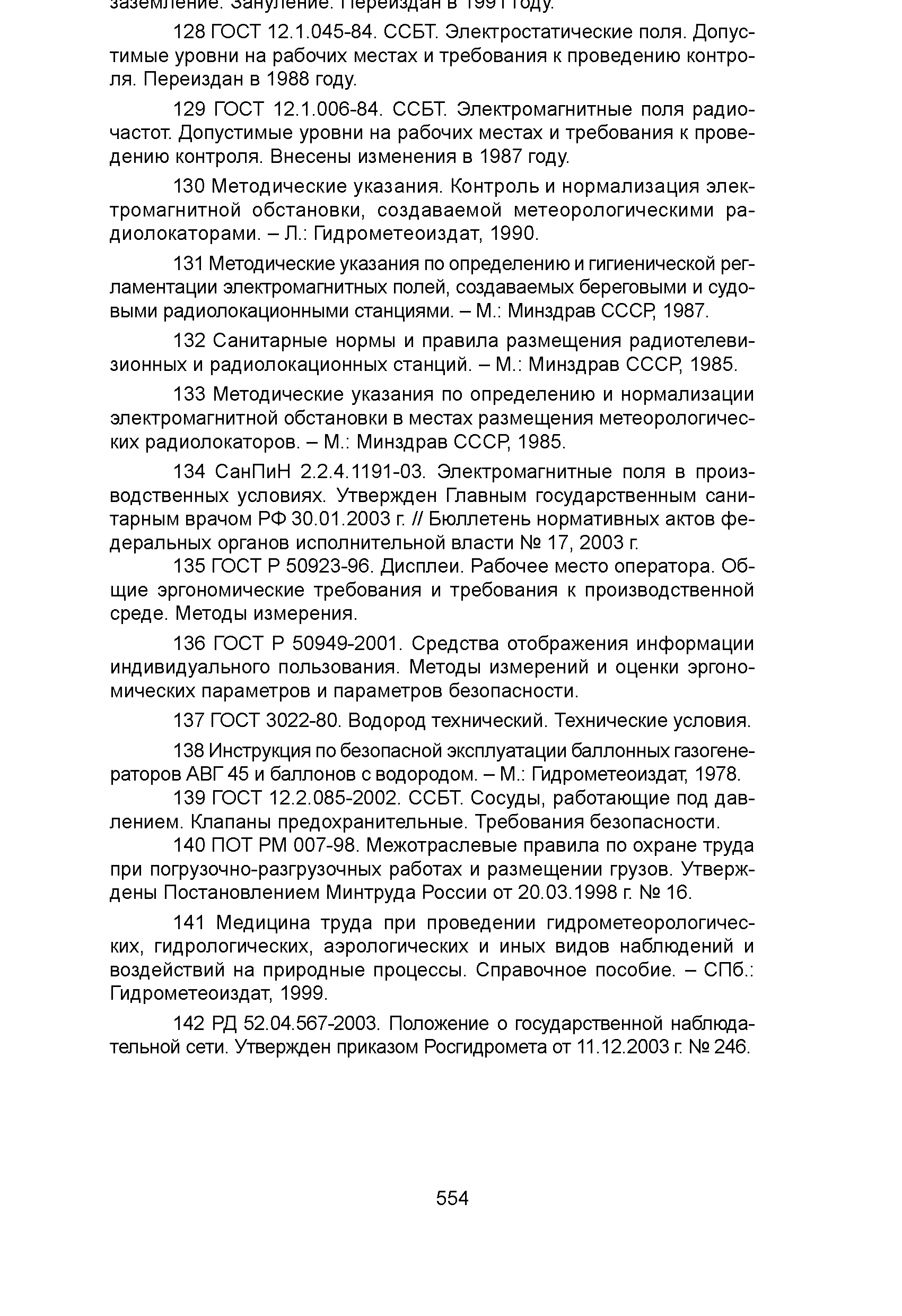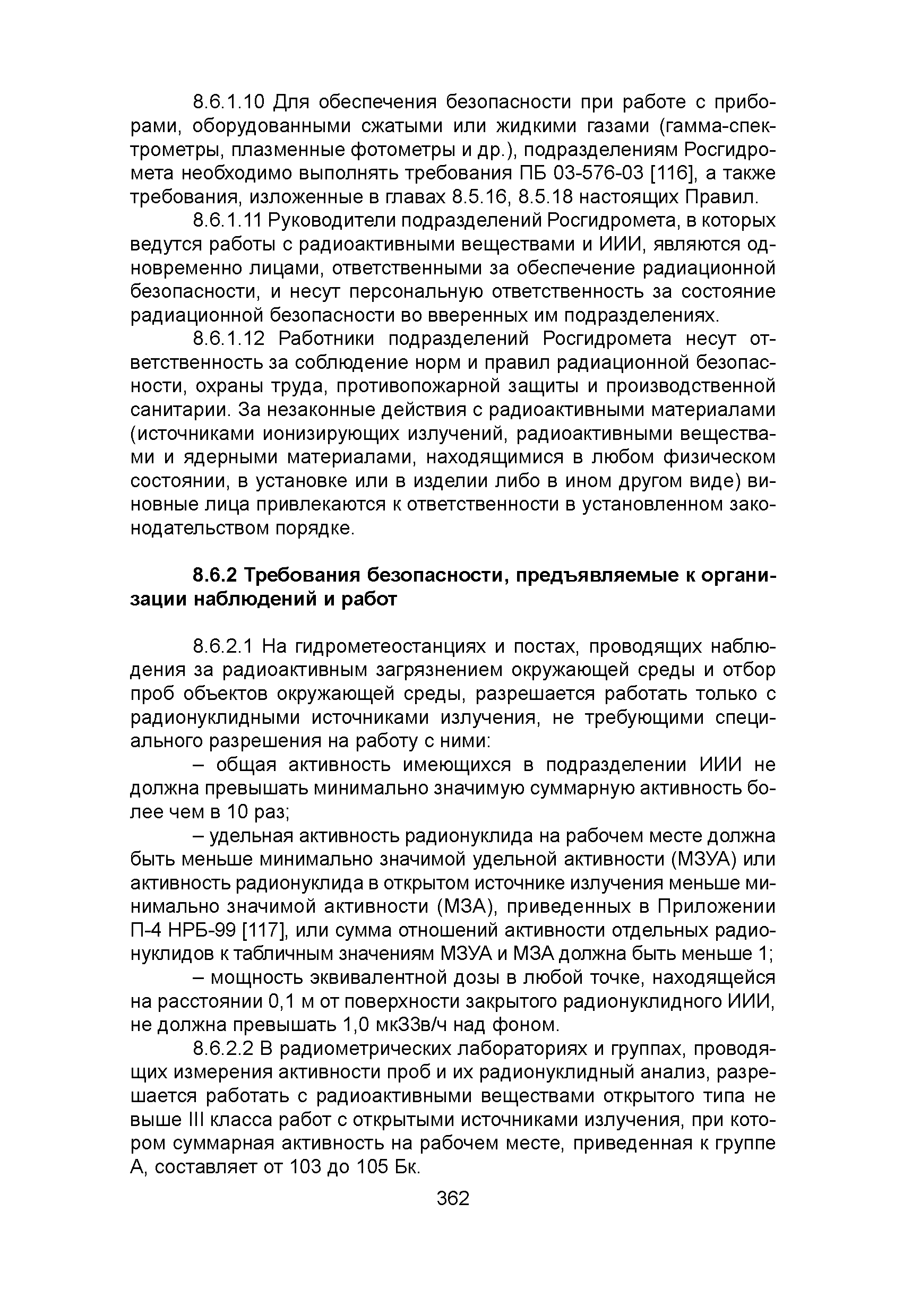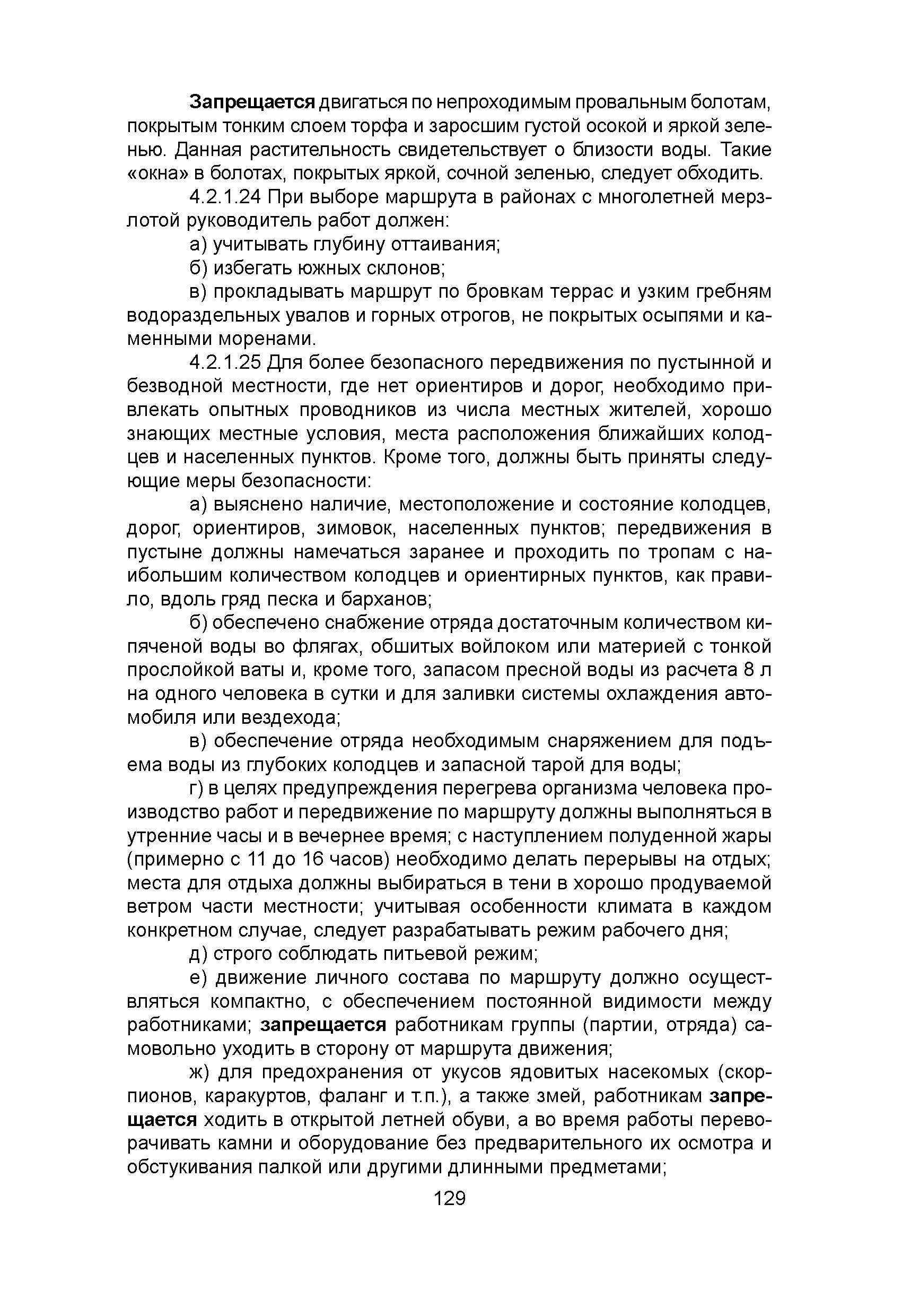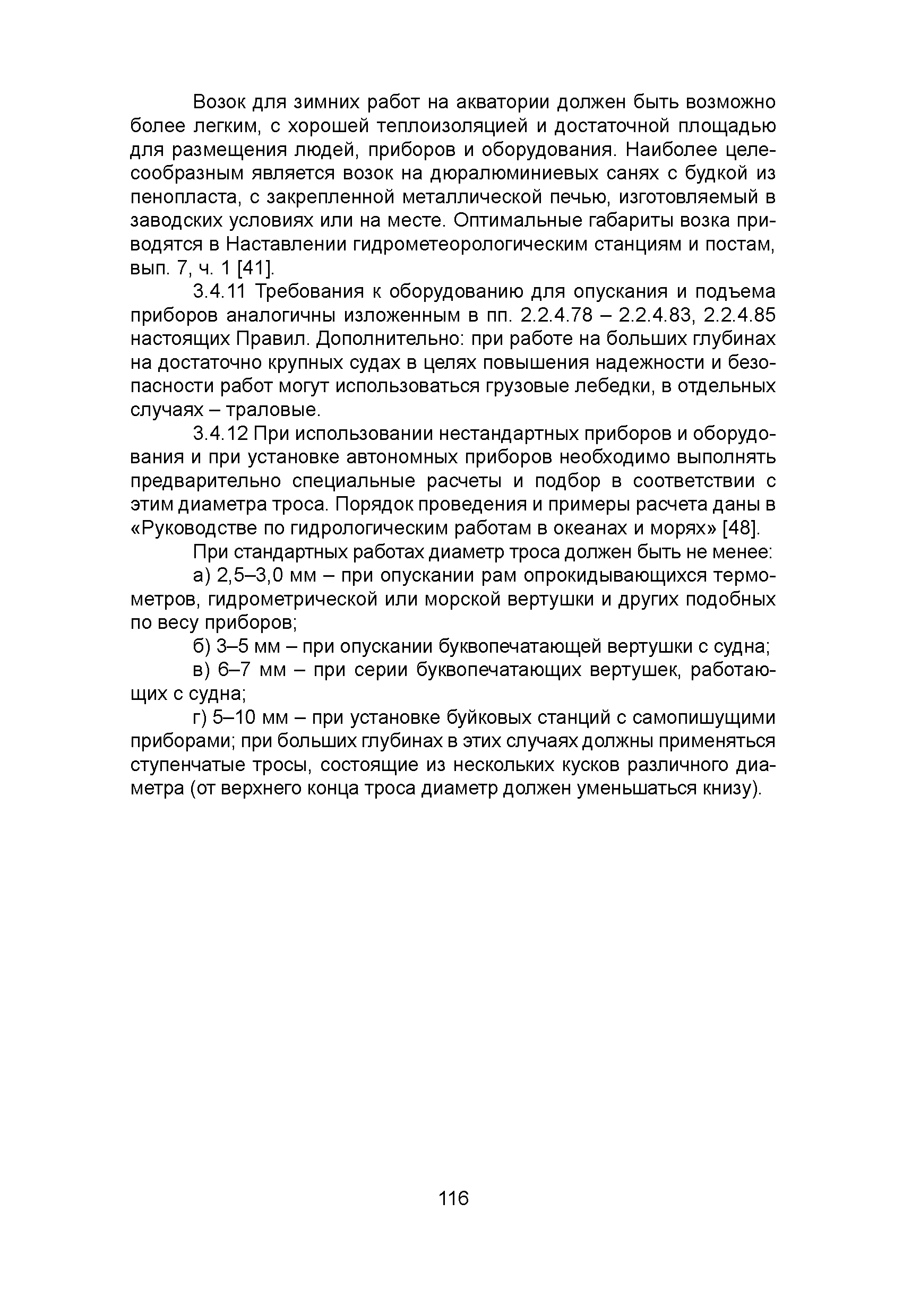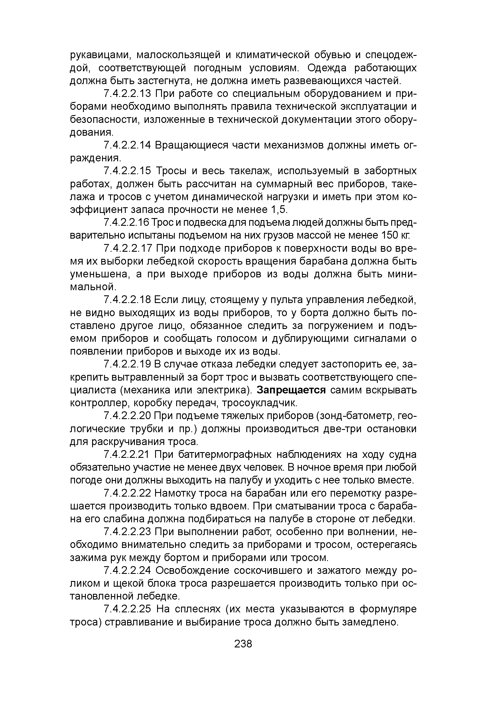 | Оглавление: | Введение 1 Общие положения 2 Гидрологические наблюдения и работы на реках и каналах 2.1 Общие требования 2.2 Требования охраны труда работников при организации и проведении гидрологических наблюдений и работ 2.2.1 Требования безопасности при проведении наблюдений за уровнем воды 2.2.2 Требования безопасности при проведении наблюдений за ледовыми явлениями и толщиной льда 2.2.3 Требования безопасности при проведении уровенных и ледовых наблюдений в случае возникновения заторов и зажоров льда 2.2.4 Требования безопасности при проведении гидрометрических работ по измерению расходов воды и наблюдений за наносами 2.2.5 Требования безопасности при проведении работ на горных и таежных реках, а также в период прохождения весеннего половодья и высоких дождевых паводков 2.2.6 Требования безопасности при организации специализированных гидрологических наблюдений и работ (болотных, воднобалансовых, на наледях) 2.2.7 Требования безопасности при проведении аэрогидрометрических наблюдений и работ 2.2.8 Средства индивидуальной защиты работников 2.2.9 Меры по защите работников при возникновении аварийных ситуаций 2.3 Требования к производственным площадкам, оборудованию, приборам и условиям их эксплуатации 2.3.1 Общие требования 2.3.2 Требования при проведении наблюдений за уровнем воды 2.3.3 Требования при проведении наблюдений за продольным уклоном водной поверхности 2.3.4 Требования при проведении наблюдений за температурой воды 2.3.5 Требования при проведении наблюдений за ледовыми явлениями, толщиной льда, снежным покровом 2.3.6 Требования при проведении измерений расходов воды и взвешенных наносов, при отборе проб донных отложений 3 Гидрометеорологические наблюдения и работы на озерах и водохранилищах 3.1 Общие требования 3.2 Требования охраны труда работников при организации и проведении гидрометеорологических наблюдений и работ 3.2.1 Общие требования 3.2.2 Требования безопасности при проведении гидрометеорологических наблюдений и работ в прибрежной зоне водоемов 3.2.3 Требования безопасности при проведении гидрометеорологических наблюдений и работ на открытой акватории водоемов 3.2.4 Требования безопасности при проведении наблюдений за ледяным покровом 3.2.5 Средства индивидуальной защиты работников 3.2.6 Защита работников при возникновении аварийных ситуаций 3.3 Требования к производственным площадкам 3.3.1 Требования к площадкам для производства гидрометеорологических наблюдений и работ в прибрежной зоне водоемов 3.3.2 Требования к площадкам для гидрометеорологических наблюдений и работ на открытой акватории водоемов 3.3.3 Требования к площадкам для наблюдений за ледяным покровом 3.4 Требования к приборам, оборудованию и условиям их эксплуатации 4 Гидрографические обследования 4.1 Общие требования 4.2 Требования охраны труда работников при организации и проведении гидрографических обследований 4.2.1 Требования безопасности при движении по маршрутам 4.2.2 Требования безопасности при переправах через реки, озера, другие водные преграды и лавины 4.2.3 Требования безопасности при проведении маршрутных снегомерных съемок на равнинной территории 4.2.4 Требования безопасности при применении авиационного транспорта 4.2.5 Средства индивидуальной защиты работников 4.2.6 Защита работников при возникновении аварийных ситуаций 4.3 Требования к пло