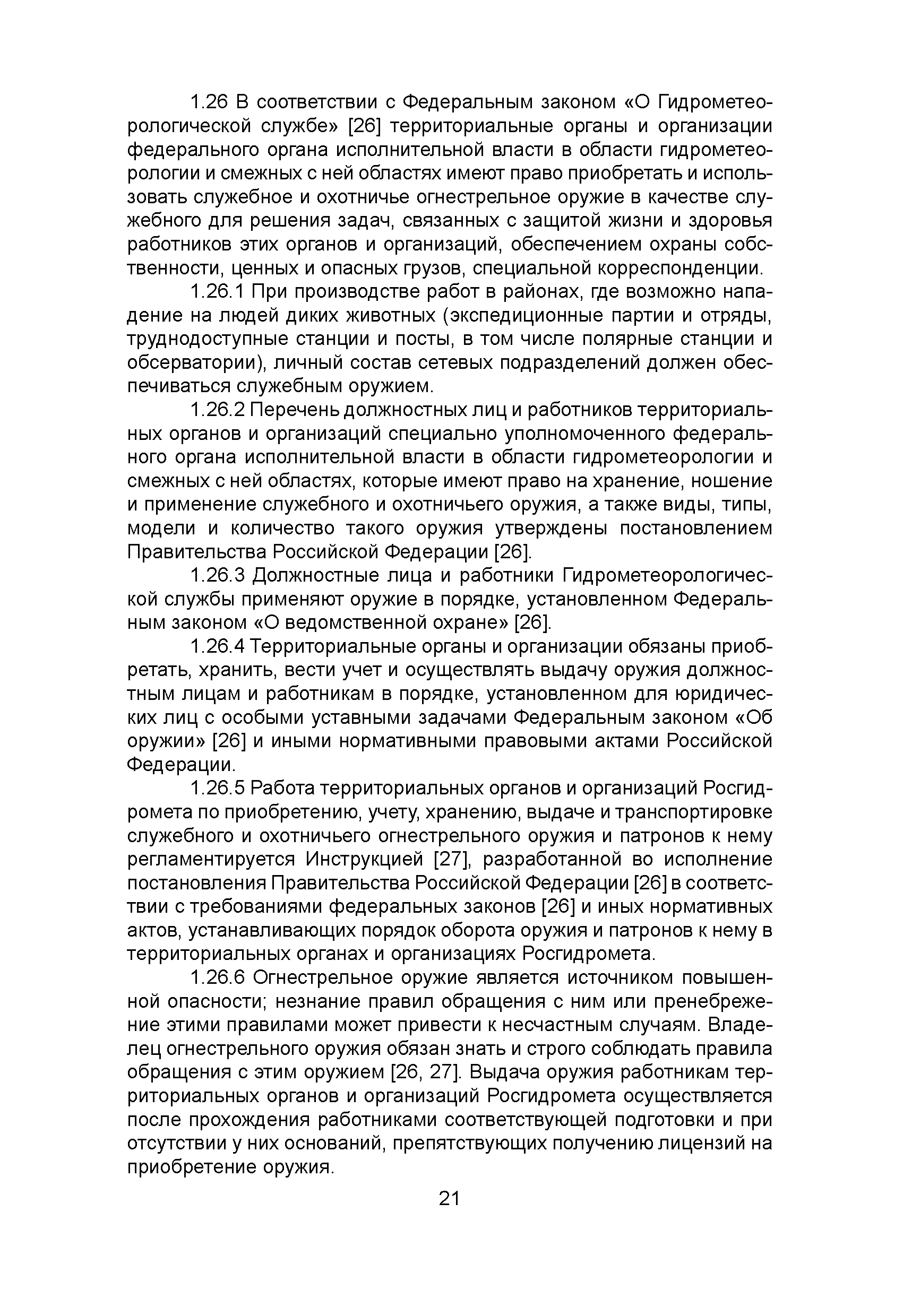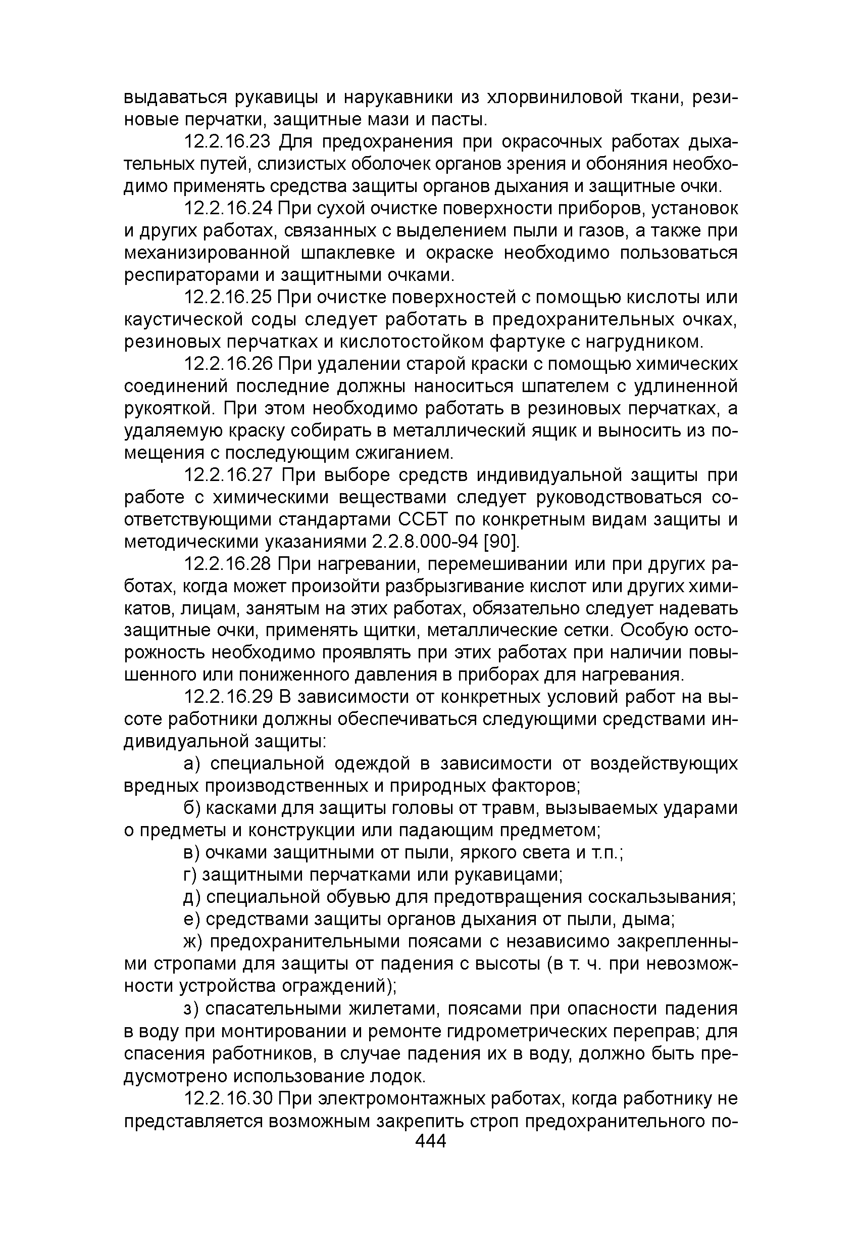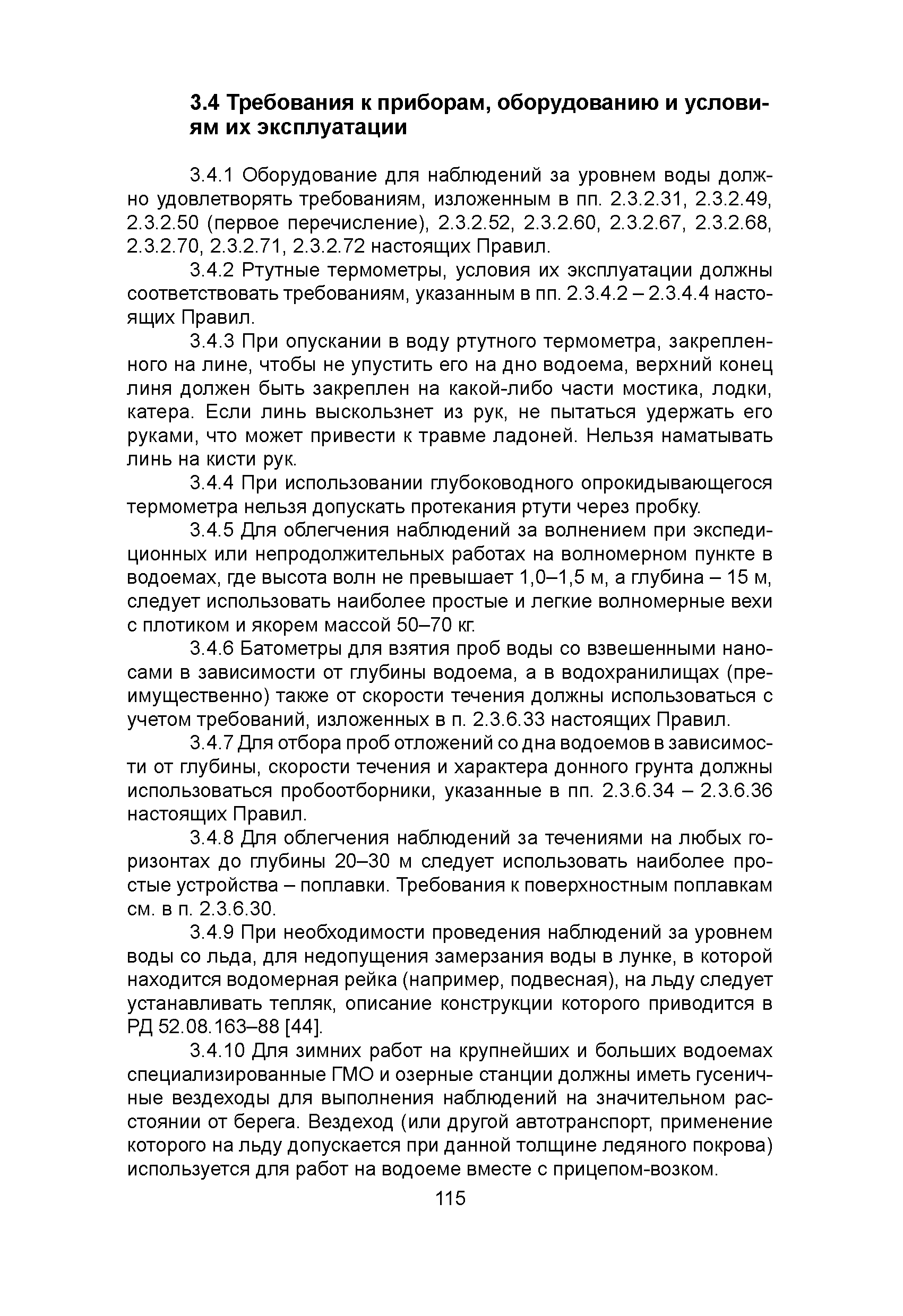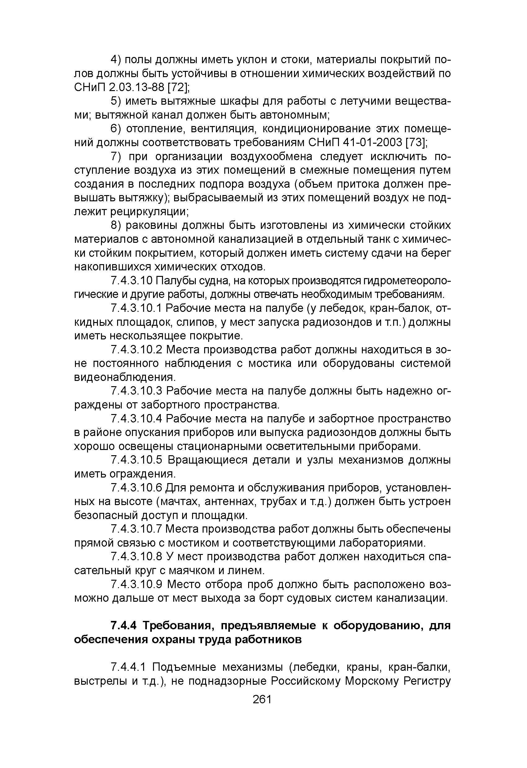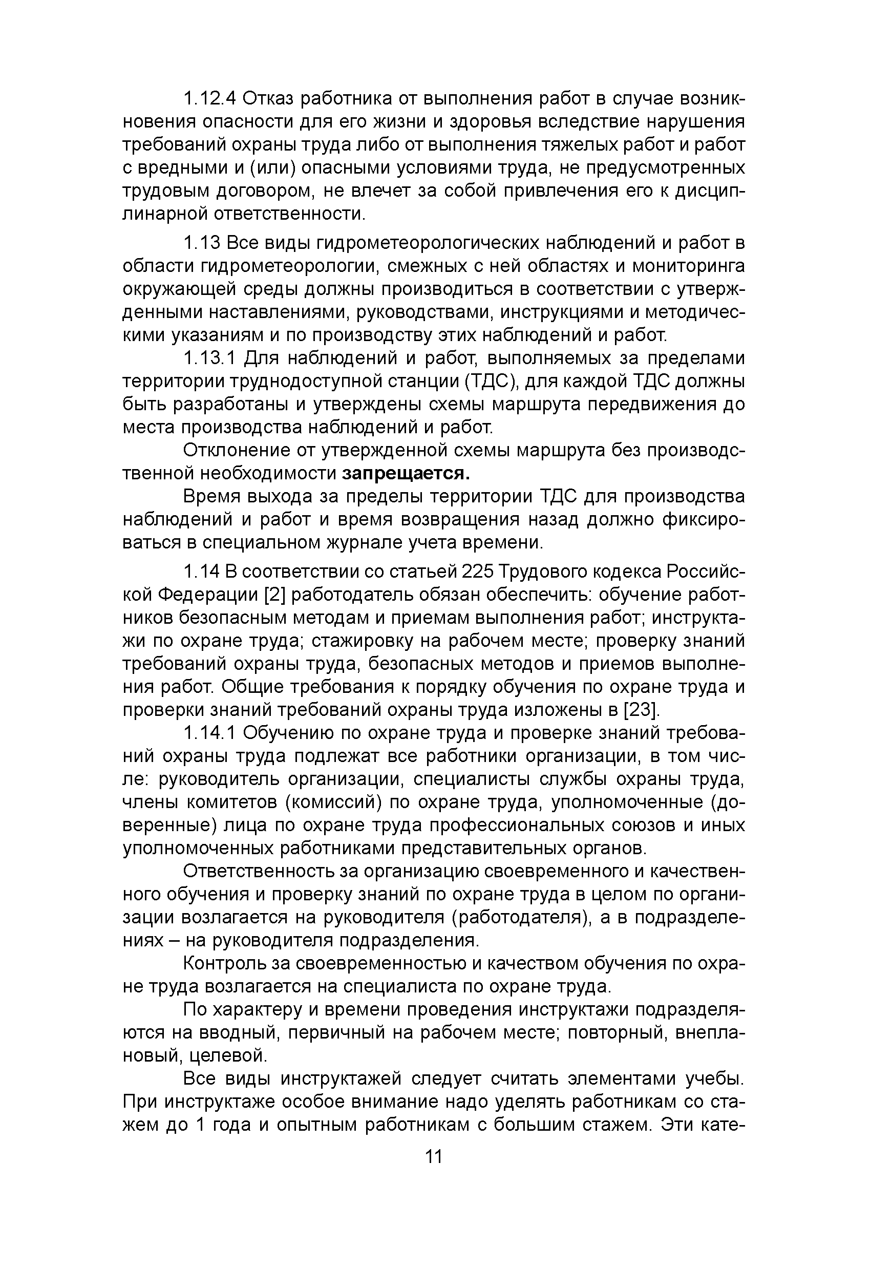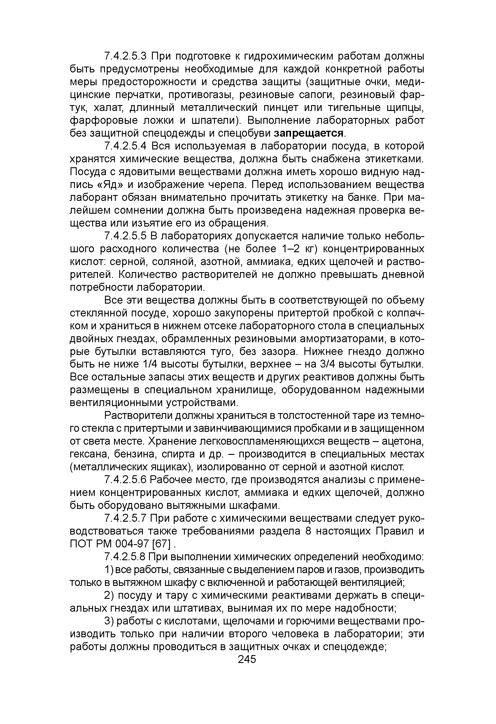 | Оглавление: | Введение 1 Общие положения 2 Гидрологические наблюдения и работы на реках и каналах 2.1 Общие требования 2.2 Требования охраны труда работников при организации и проведении гидрологических наблюдений и работ 2.2.1 Требования безопасности при проведении наблюдений за уровнем воды 2.2.2 Требования безопасности при проведении наблюдений за ледовыми явлениями и толщиной льда 2.2.3 Требования безопасности при проведении уровенных и ледовых наблюдений в случае возникновения заторов и зажоров льда 2.2.4 Требования безопасности при проведении гидрометрических работ по измерению расходов воды и наблюдений за наносами 2.2.5 Требования безопасности при проведении работ на горных и таежных реках, а также в период прохождения весеннего половодья и высоких дождевых паводков 2.2.6 Требования безопасности при организации специализированных гидрологических наблюдений и работ (болотных, воднобалансовых, на наледях) 2.2.7 Требования безопасности при проведении аэрогидрометрических наблюдений и работ 2.2.8 Средства индивидуальной защиты работников 2.2.9 Меры по защите работников при возникновении аварийных ситуаций 2.3 Требования к производственным площадкам, оборудованию, приборам и условиям их эксплуатации 2.3.1 Общие требования 2.3.2 Требования при проведении наблюдений за уровнем воды 2.3.3 Требования при проведении наблюдений за продольным уклоном водной поверхности 2.3.4 Требования при проведении наблюдений за температурой воды 2.3.5 Требования при проведении наблюдений за ледовыми явлениями, толщиной льда, снежным покровом 2.3.6 Требования при проведении измерений расходов воды и взвешенных наносов, при отборе проб донных отложений 3 Гидрометеорологические наблюдения и работы на озерах и водохранилищах 3.1 Общие требования 3.2 Требования охраны труда работников при организации и проведении гидрометеорологических наблюдений и работ 3.2.1 Общие требования 3.2.2 Требования безопасности при проведении гидрометеорологических наблюдений и работ в прибрежной зоне водоемов 3.2.3 Требования безопасности при проведении гидрометеорологических наблюдений и работ на открытой акватории водоемов 3.2.4 Требования безопасности при проведении наблюдений за ледяным покровом 3.2.5 Средства индивидуальной защиты работников 3.2.6 Защита работников при возникновении аварийных ситуаций 3.3 Требования к производственным площадкам 3.3.1 Требования к площадкам для производства гидрометеорологических наблюдений и работ в прибрежной зоне водоемов 3.3.2 Требования к площадкам для гидрометеорологических наблюдений и работ на открытой акватории водоемов 3.3.3 Требования к площадкам для наблюдений за ледяным покровом 3.4 Требования к приборам, оборудованию и условиям их эксплуатации 4 Гидрографические обследования 4.1 Общие требования 4.2 Требования охраны труда работников при организации и проведении гидрографических обследований 4.2.1 Требования безопасности при движении по маршрутам 4.2.2 Требования безопасности при переправах через реки, озера, другие водные преграды и лавины 4.2.3 Требования безопасности при проведении маршрутных снегомерных съемок на равнинной территории 4.2.4 Требования безопасности при применении авиационного транспорта 4.2.5 Средства индивидуальной защиты работников 4.2.6 Защита работников при возникновении аварийных ситуаций 4.3 Требования к пло