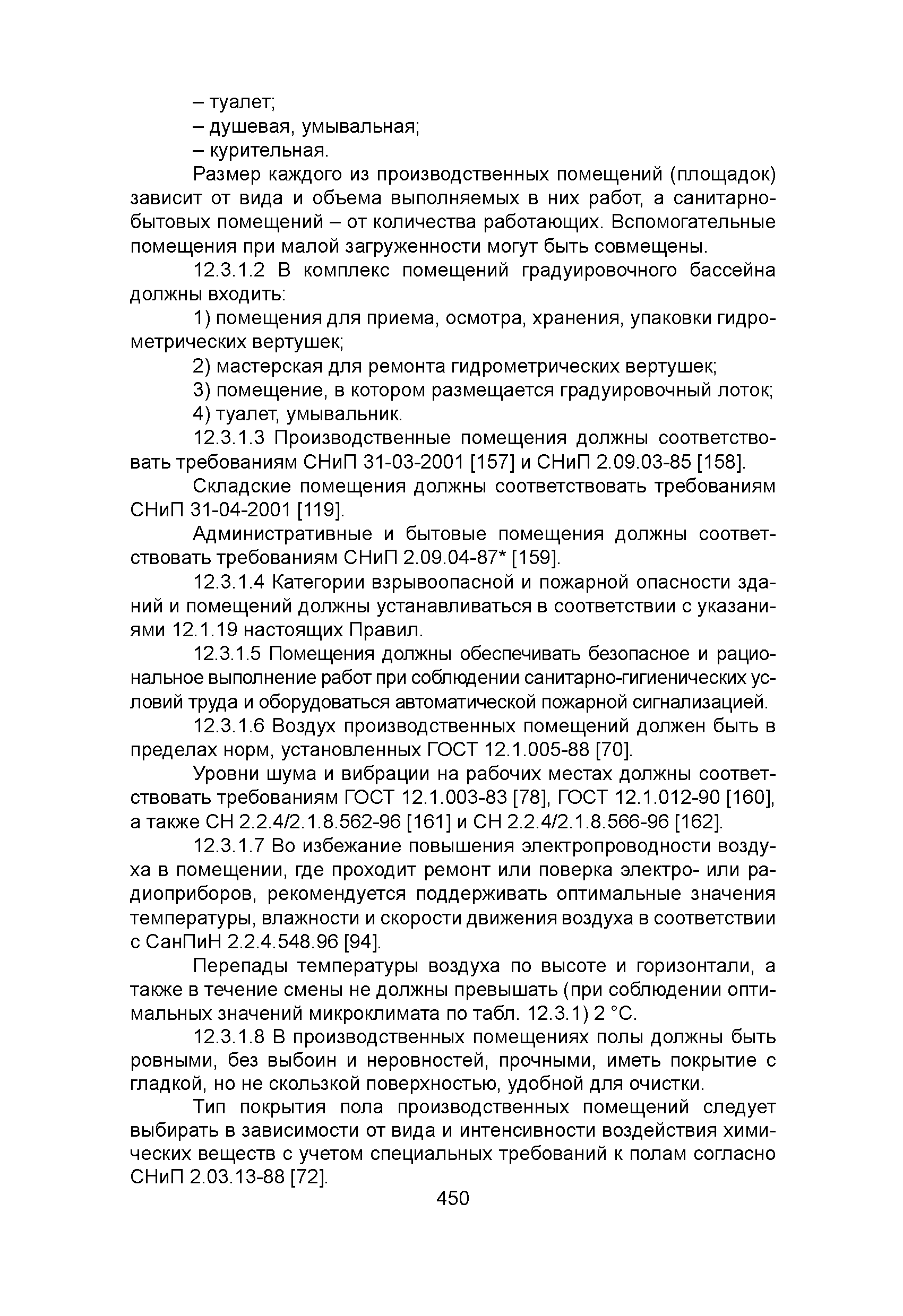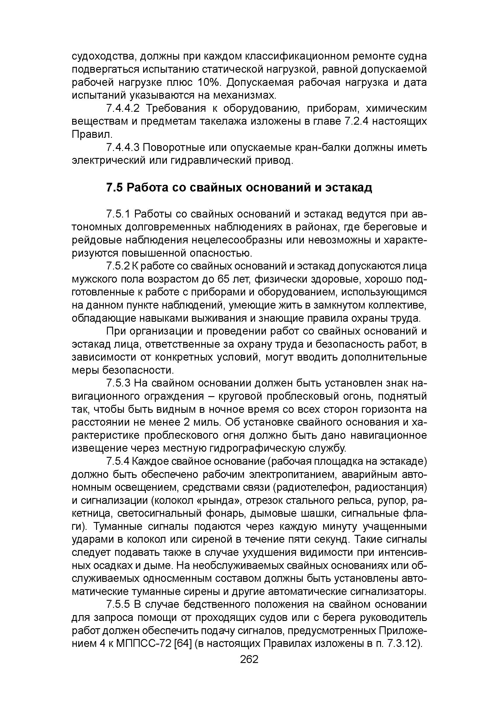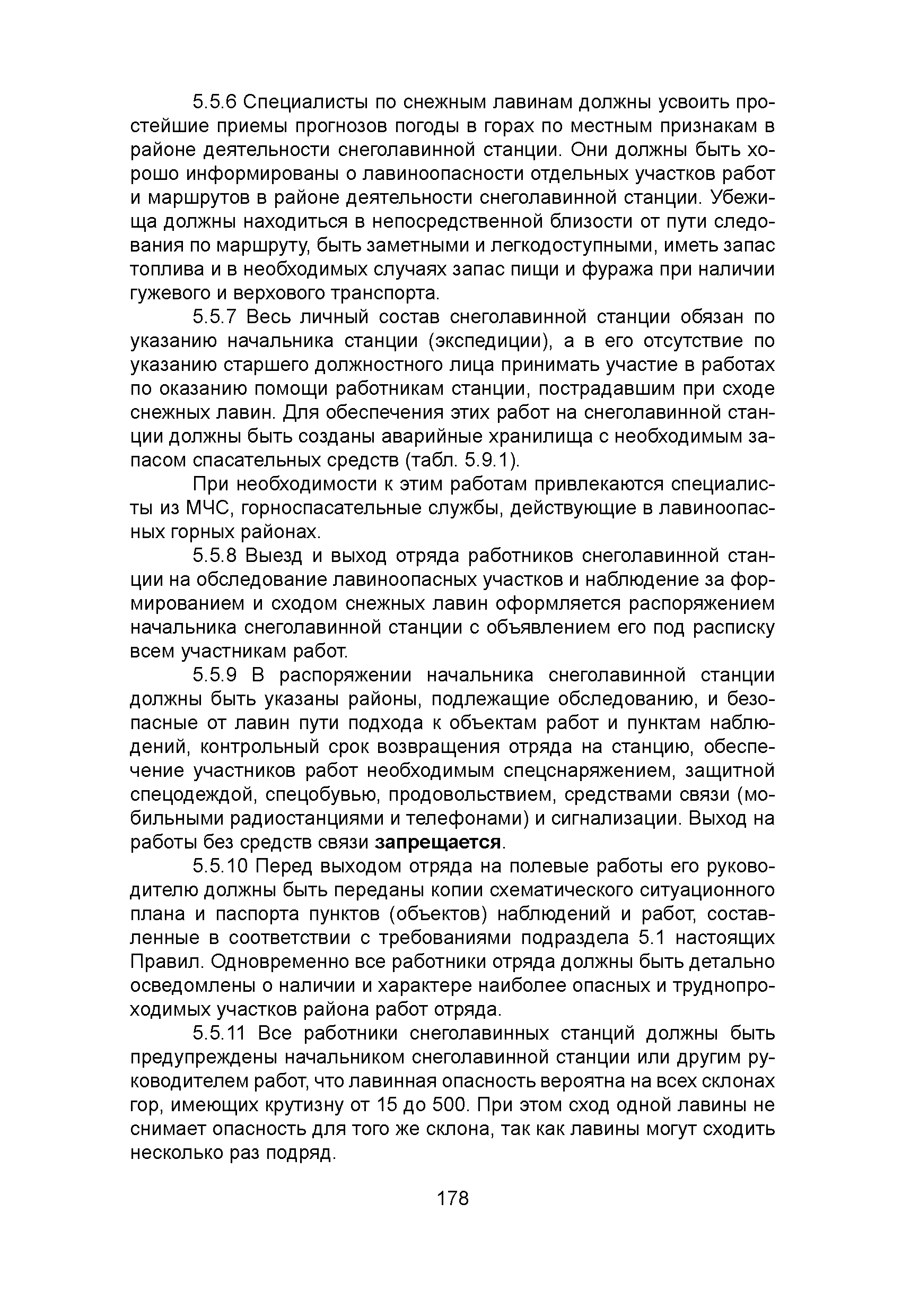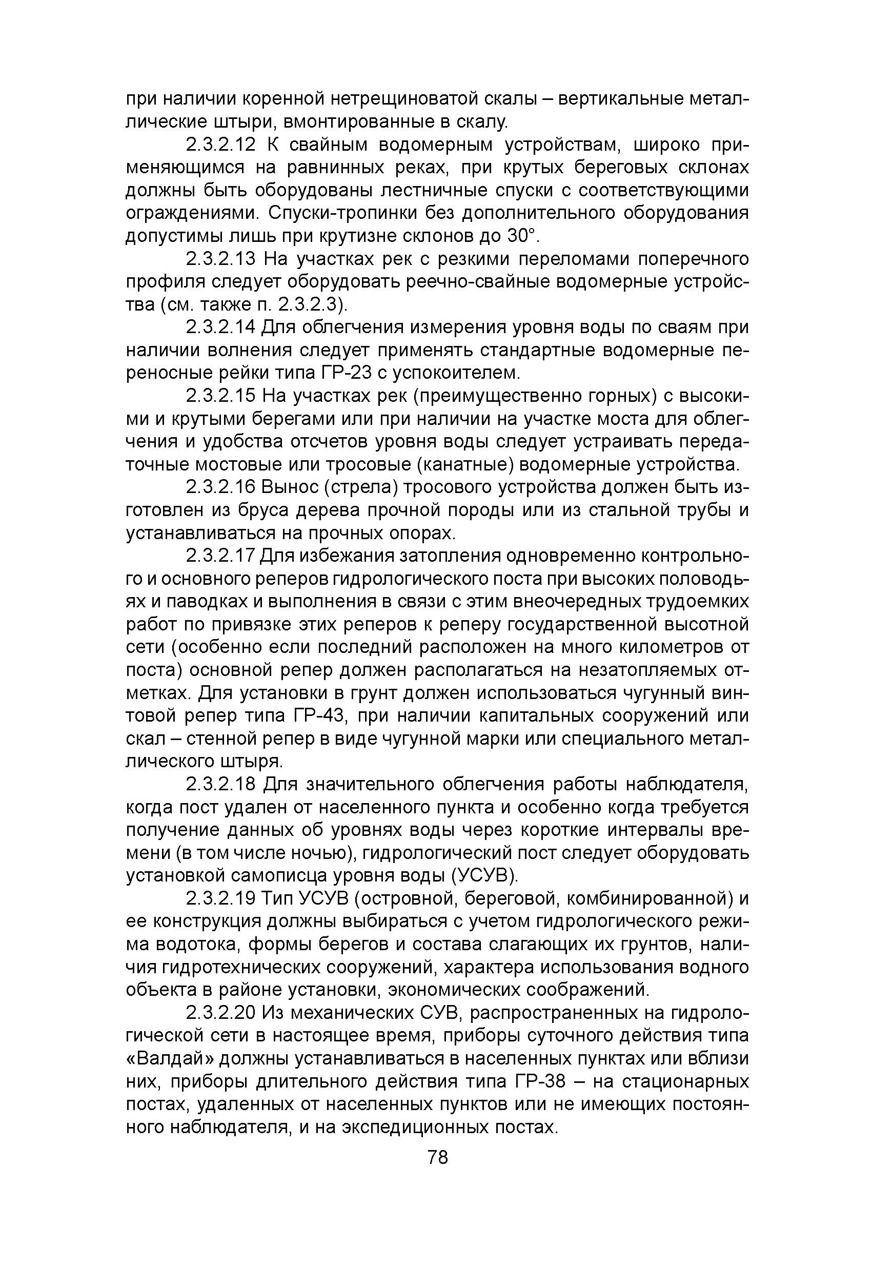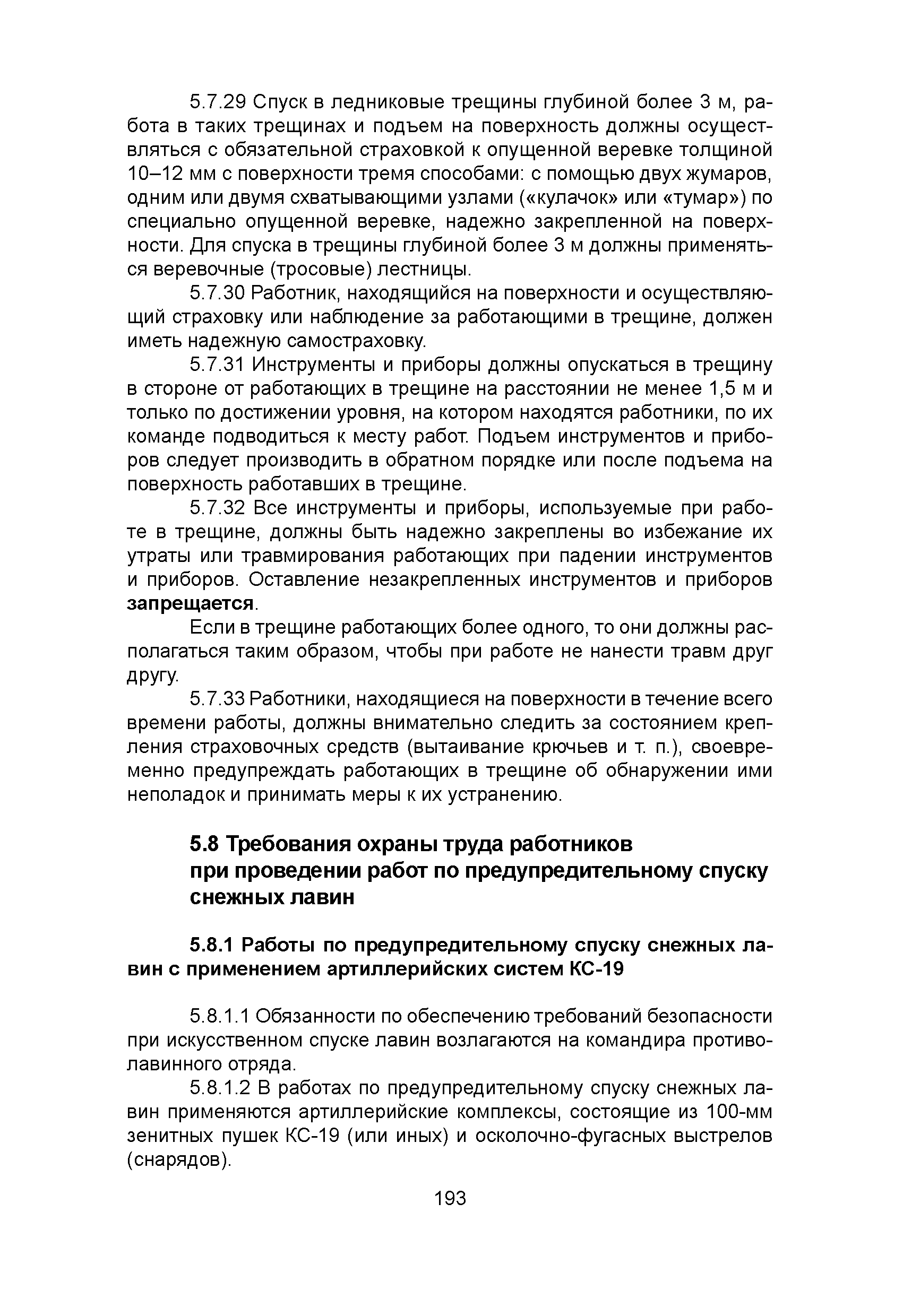 | Оглавление: | Введение 1 Общие положения 2 Гидрологические наблюдения и работы на реках и каналах 2.1 Общие требования 2.2 Требования охраны труда работников при организации и проведении гидрологических наблюдений и работ 2.2.1 Требования безопасности при проведении наблюдений за уровнем воды 2.2.2 Требования безопасности при проведении наблюдений за ледовыми явлениями и толщиной льда 2.2.3 Требования безопасности при проведении уровенных и ледовых наблюдений в случае возникновения заторов и зажоров льда 2.2.4 Требования безопасности при проведении гидрометрических работ по измерению расходов воды и наблюдений за наносами 2.2.5 Требования безопасности при проведении работ на горных и таежных реках, а также в период прохождения весеннего половодья и высоких дождевых паводков 2.2.6 Требования безопасности при организации специализированных гидрологических наблюдений и работ (болотных, воднобалансовых, на наледях) 2.2.7 Требования безопасности при проведении аэрогидрометрических наблюдений и работ 2.2.8 Средства индивидуальной защиты работников 2.2.9 Меры по защите работников при возникновении аварийных ситуаций 2.3 Требования к производственным площадкам, оборудованию, приборам и условиям их эксплуатации 2.3.1 Общие требования 2.3.2 Требования при проведении наблюдений за уровнем воды 2.3.3 Требования при проведении наблюдений за продольным уклоном водной поверхности 2.3.4 Требования при проведении наблюдений за температурой воды 2.3.5 Требования при проведении наблюдений за ледовыми явлениями, толщиной льда, снежным покровом 2.3.6 Требования при проведении измерений расходов воды и взвешенных наносов, при отборе проб донных отложений 3 Гидрометеорологические наблюдения и работы на озерах и водохранилищах 3.1 Общие требования 3.2 Требования охраны труда работников при организации и проведении гидрометеорологических наблюдений и работ 3.2.1 Общие требования 3.2.2 Требования безопасности при проведении гидрометеорологических наблюдений и работ в прибрежной зоне водоемов 3.2.3 Требования безопасности при проведении гидрометеорологических наблюдений и работ на открытой акватории водоемов 3.2.4 Требования безопасности при проведении наблюдений за ледяным покровом 3.2.5 Средства индивидуальной защиты работников 3.2.6 Защита работников при возникновении аварийных ситуаций 3.3 Требования к производственным площадкам 3.3.1 Требования к площадкам для производства гидрометеорологических наблюдений и работ в прибрежной зоне водоемов 3.3.2 Требования к площадкам для гидрометеорологических наблюдений и работ на открытой акватории водоемов 3.3.3 Требования к площадкам для наблюдений за ледяным покровом 3.4 Требования к приборам, оборудованию и условиям их эксплуатации 4 Гидрографические обследования 4.1 Общие требования 4.2 Требования охраны труда работников при организации и проведении гидрографических обследований 4.2.1 Требования безопасности при движении по маршрутам 4.2.2 Требования безопасности при переправах через реки, озера, другие водные преграды и лавины 4.2.3 Требования безопасности при проведении маршрутных снегомерных съемок на равнинной территории 4.2.4 Требования безопасности при применении авиационного транспорта 4.2.5 Средства индивидуальной защиты работников 4.2.6 Защита работников при возникновении аварийных ситуаций 4.3 Требования к пло