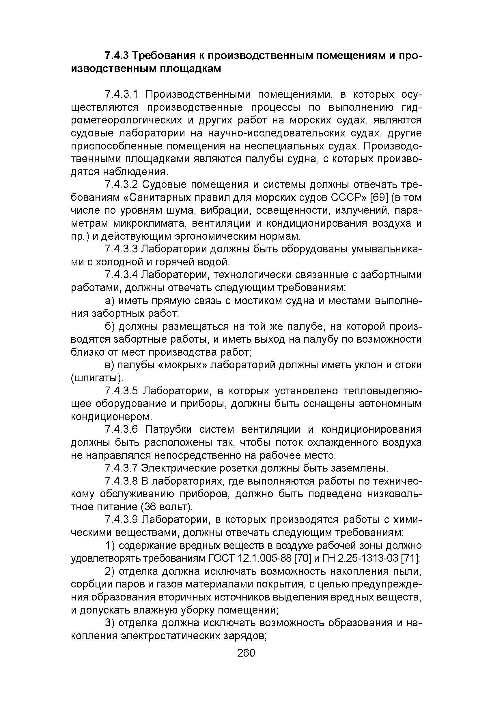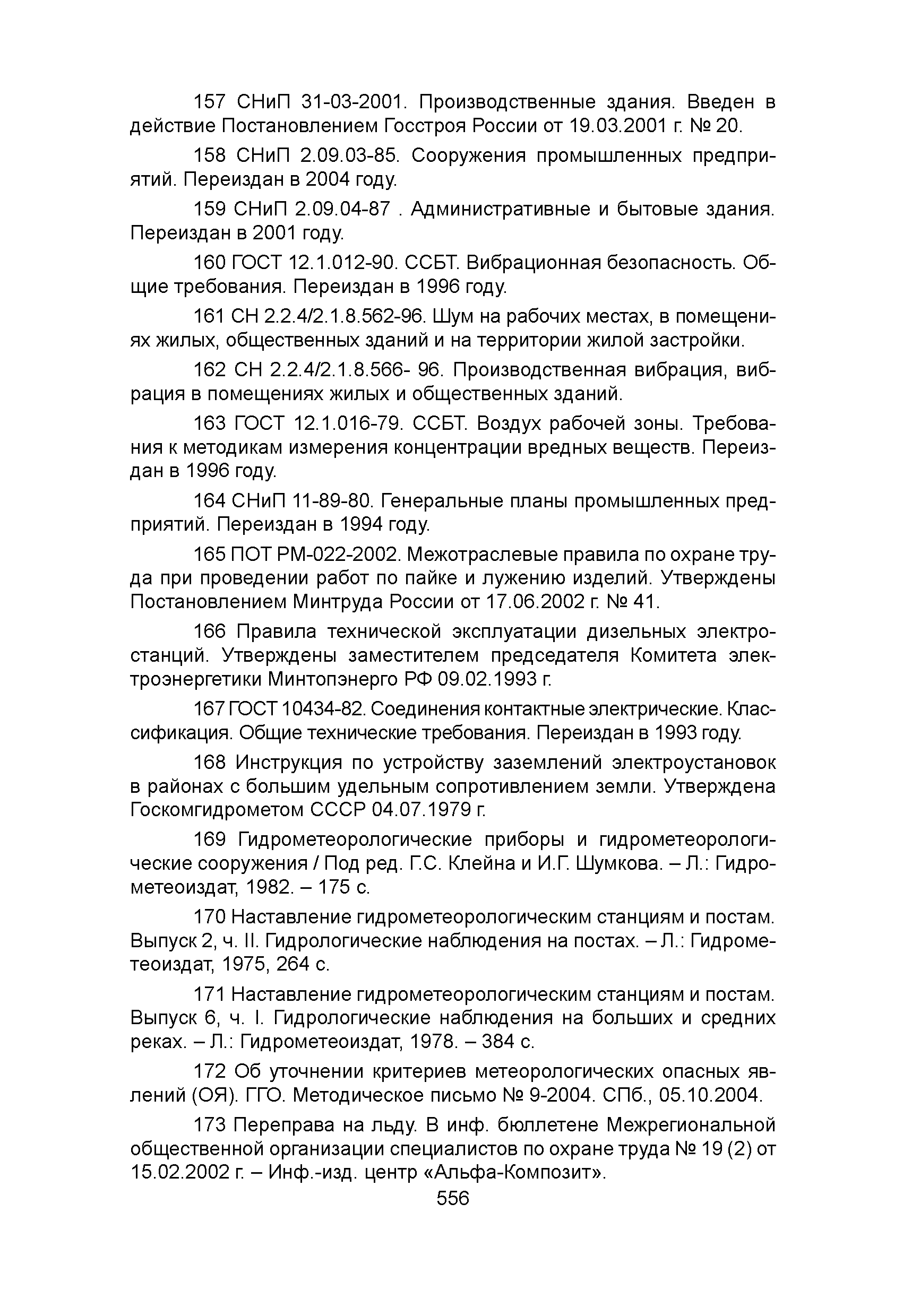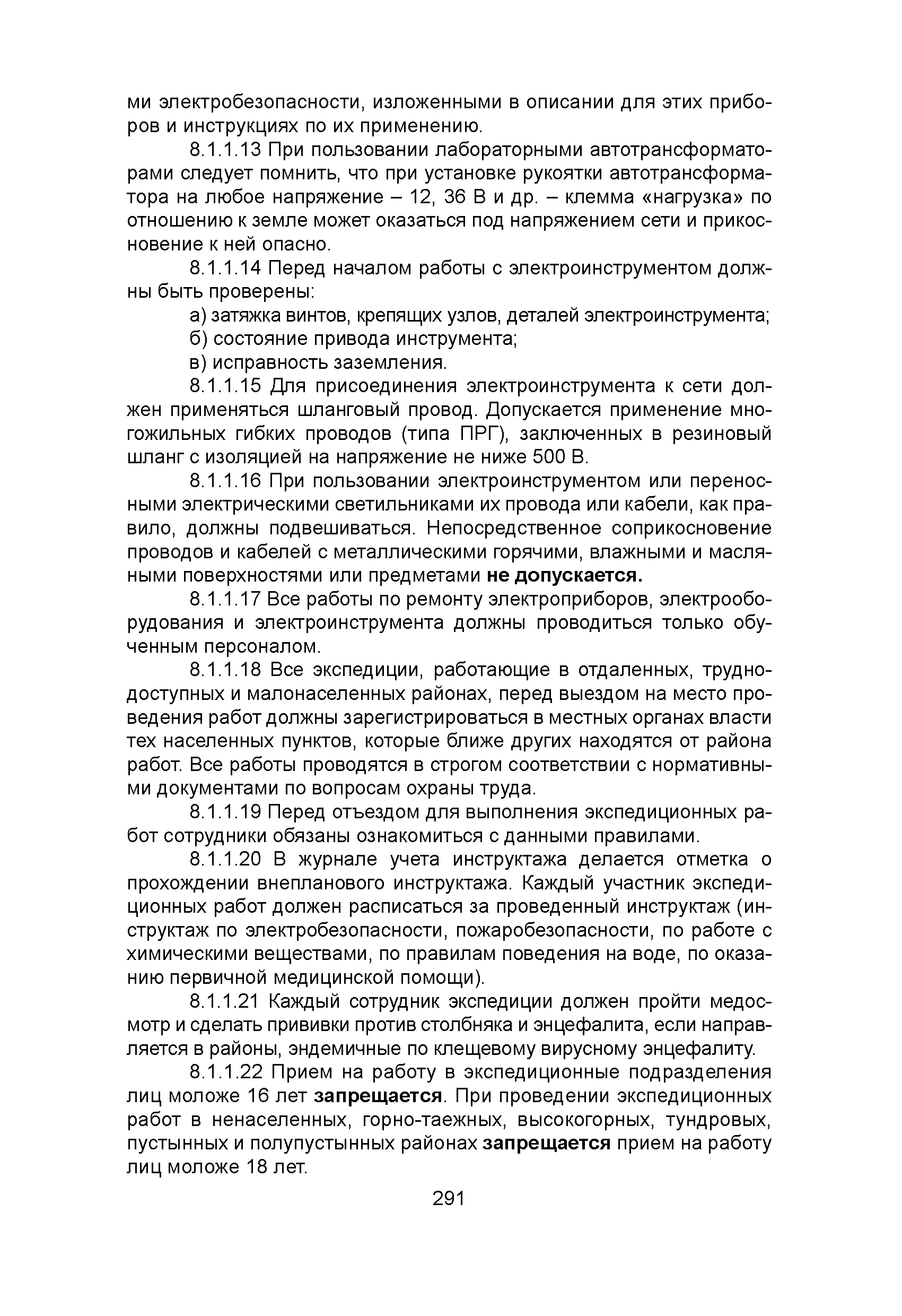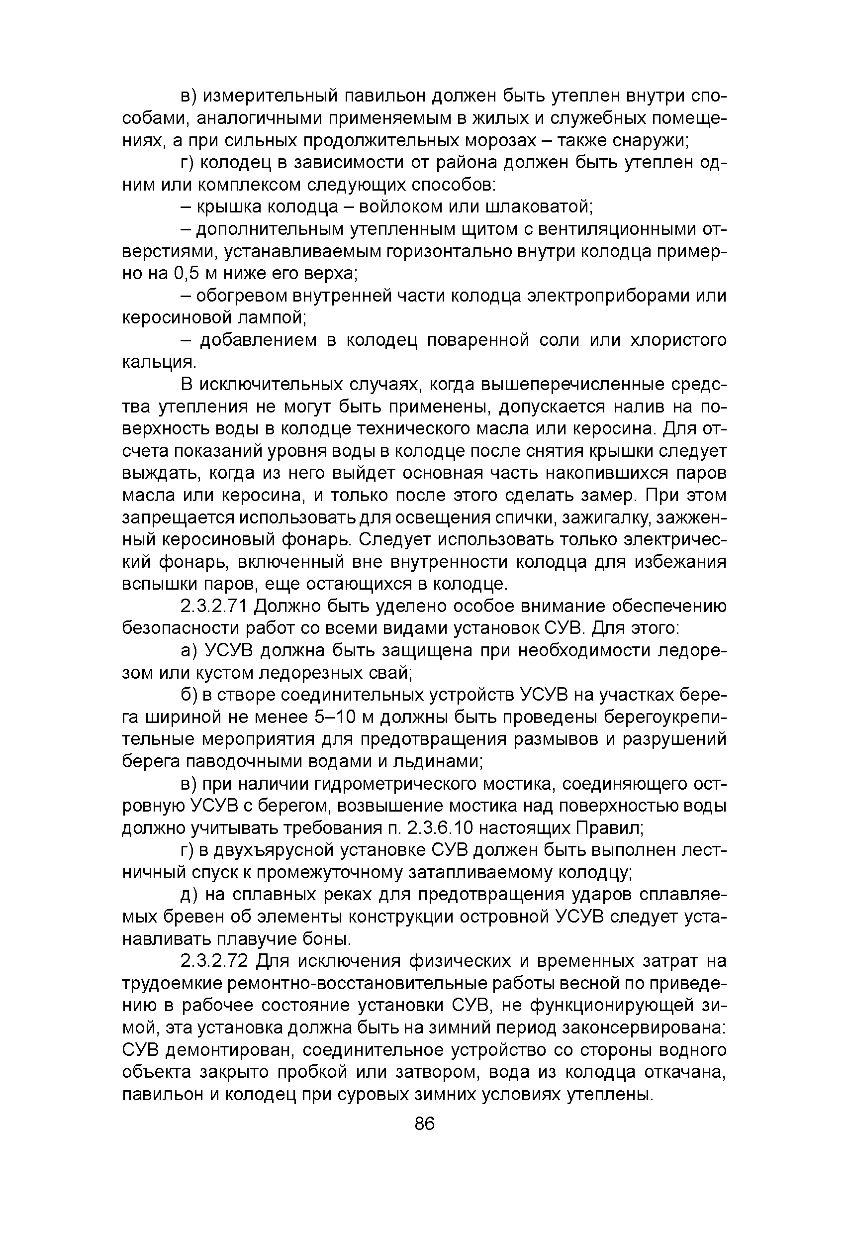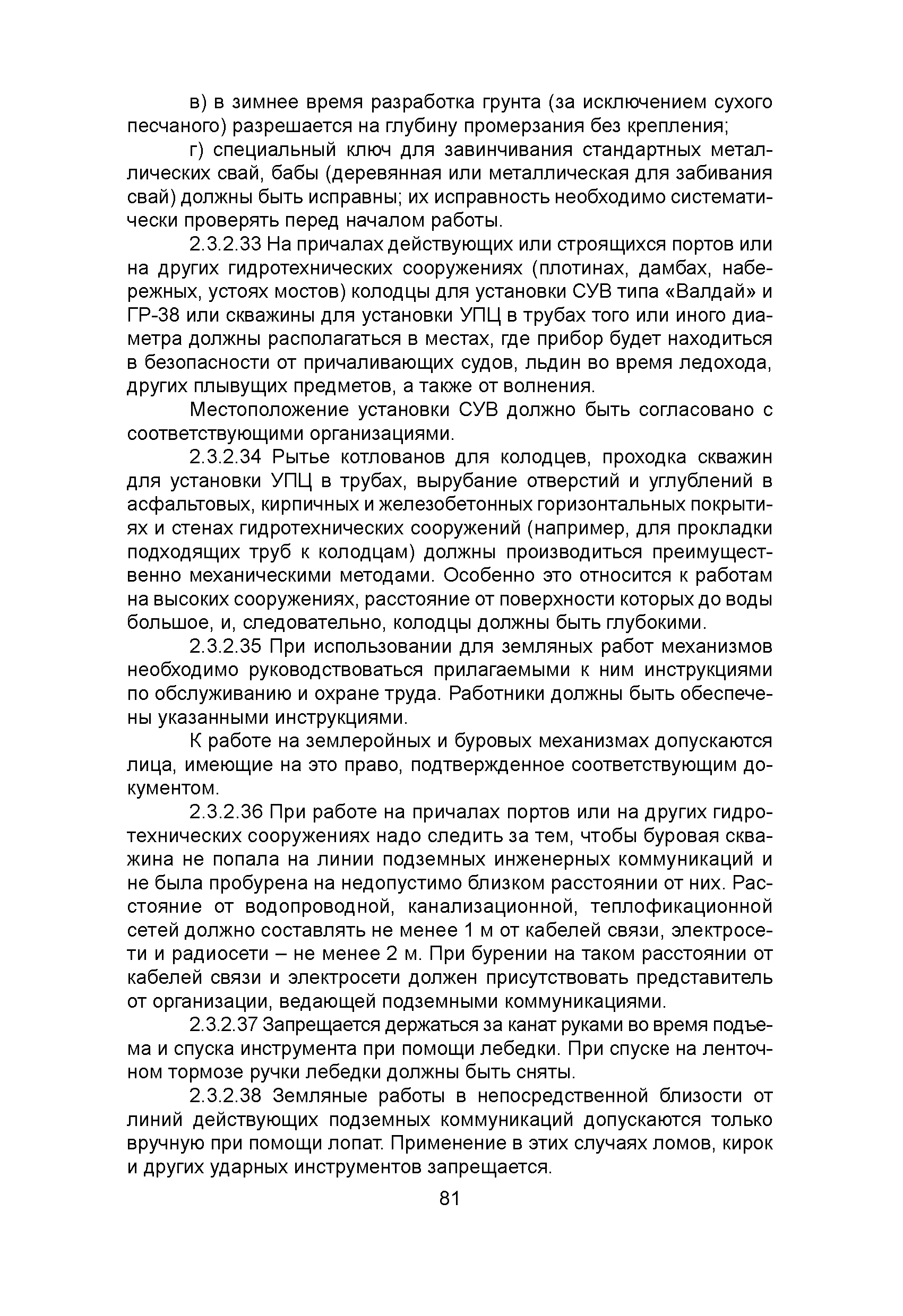 | Оглавление: | Введение 1 Общие положения 2 Гидрологические наблюдения и работы на реках и каналах 2.1 Общие требования 2.2 Требования охраны труда работников при организации и проведении гидрологических наблюдений и работ 2.2.1 Требования безопасности при проведении наблюдений за уровнем воды 2.2.2 Требования безопасности при проведении наблюдений за ледовыми явлениями и толщиной льда 2.2.3 Требования безопасности при проведении уровенных и ледовых наблюдений в случае возникновения заторов и зажоров льда 2.2.4 Требования безопасности при проведении гидрометрических работ по измерению расходов воды и наблюдений за наносами 2.2.5 Требования безопасности при проведении работ на горных и таежных реках, а также в период прохождения весеннего половодья и высоких дождевых паводков 2.2.6 Требования безопасности при организации специализированных гидрологических наблюдений и работ (болотных, воднобалансовых, на наледях) 2.2.7 Требования безопасности при проведении аэрогидрометрических наблюдений и работ 2.2.8 Средства индивидуальной защиты работников 2.2.9 Меры по защите работников при возникновении аварийных ситуаций 2.3 Требования к производственным площадкам, оборудованию, приборам и условиям их эксплуатации 2.3.1 Общие требования 2.3.2 Требования при проведении наблюдений за уровнем воды 2.3.3 Требования при проведении наблюдений за продольным уклоном водной поверхности 2.3.4 Требования при проведении наблюдений за температурой воды 2.3.5 Требования при проведении наблюдений за ледовыми явлениями, толщиной льда, снежным покровом 2.3.6 Требования при проведении измерений расходов воды и взвешенных наносов, при отборе проб донных отложений 3 Гидрометеорологические наблюдения и работы на озерах и водохранилищах 3.1 Общие требования 3.2 Требования охраны труда работников при организации и проведении гидрометеорологических наблюдений и работ 3.2.1 Общие требования 3.2.2 Требования безопасности при проведении гидрометеорологических наблюдений и работ в прибрежной зоне водоемов 3.2.3 Требования безопасности при проведении гидрометеорологических наблюдений и работ на открытой акватории водоемов 3.2.4 Требования безопасности при проведении наблюдений за ледяным покровом 3.2.5 Средства индивидуальной защиты работников 3.2.6 Защита работников при возникновении аварийных ситуаций 3.3 Требования к производственным площадкам 3.3.1 Требования к площадкам для производства гидрометеорологических наблюдений и работ в прибрежной зоне водоемов 3.3.2 Требования к площадкам для гидрометеорологических наблюдений и работ на открытой акватории водоемов 3.3.3 Требования к площадкам для наблюдений за ледяным покровом 3.4 Требования к приборам, оборудованию и условиям их эксплуатации 4 Гидрографические обследования 4.1 Общие требования 4.2 Требования охраны труда работников при организации и проведении гидрографических обследований 4.2.1 Требования безопасности при движении по маршрутам 4.2.2 Требования безопасности при переправах через реки, озера, другие водные преграды и лавины 4.2.3 Требования безопасности при проведении маршрутных снегомерных съемок на равнинной территории 4.2.4 Требования безопасности при применении авиационного транспорта 4.2.5 Средства индивидуальной защиты работников 4.2.6 Защита работников при возникновении аварийных ситуаций 4.3 Требования к пло