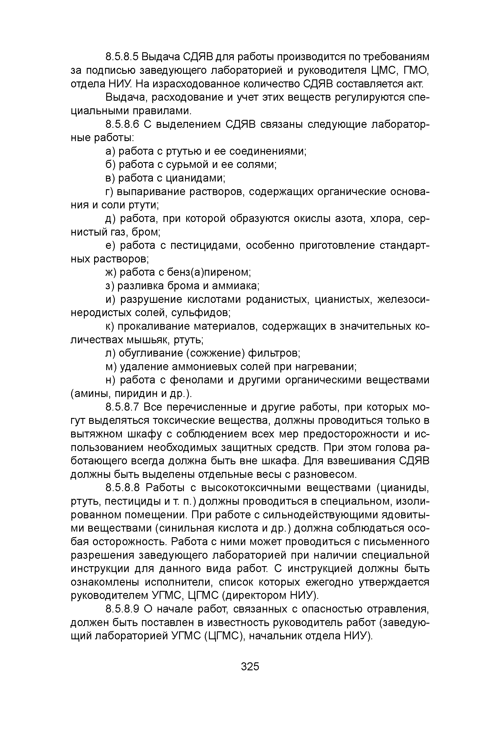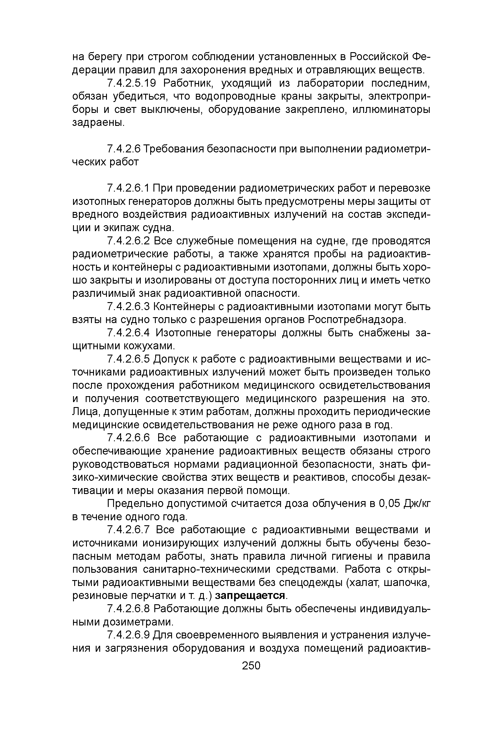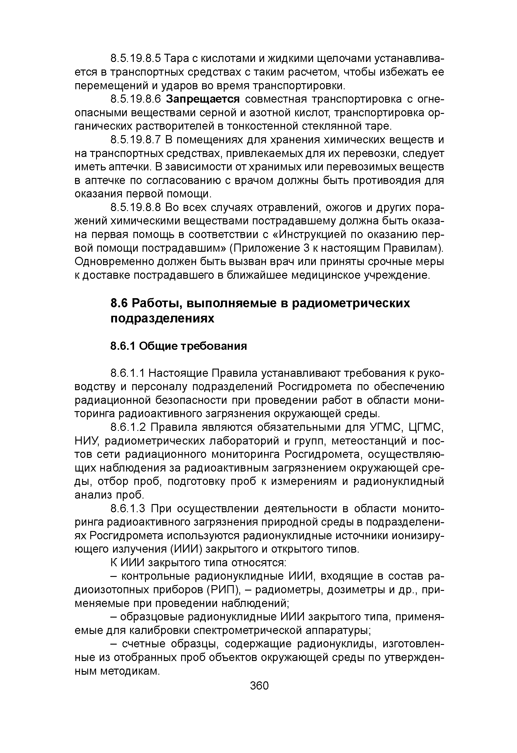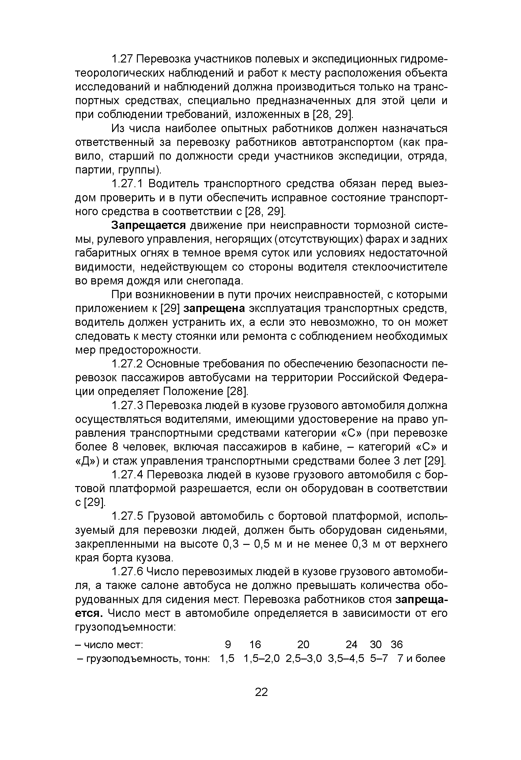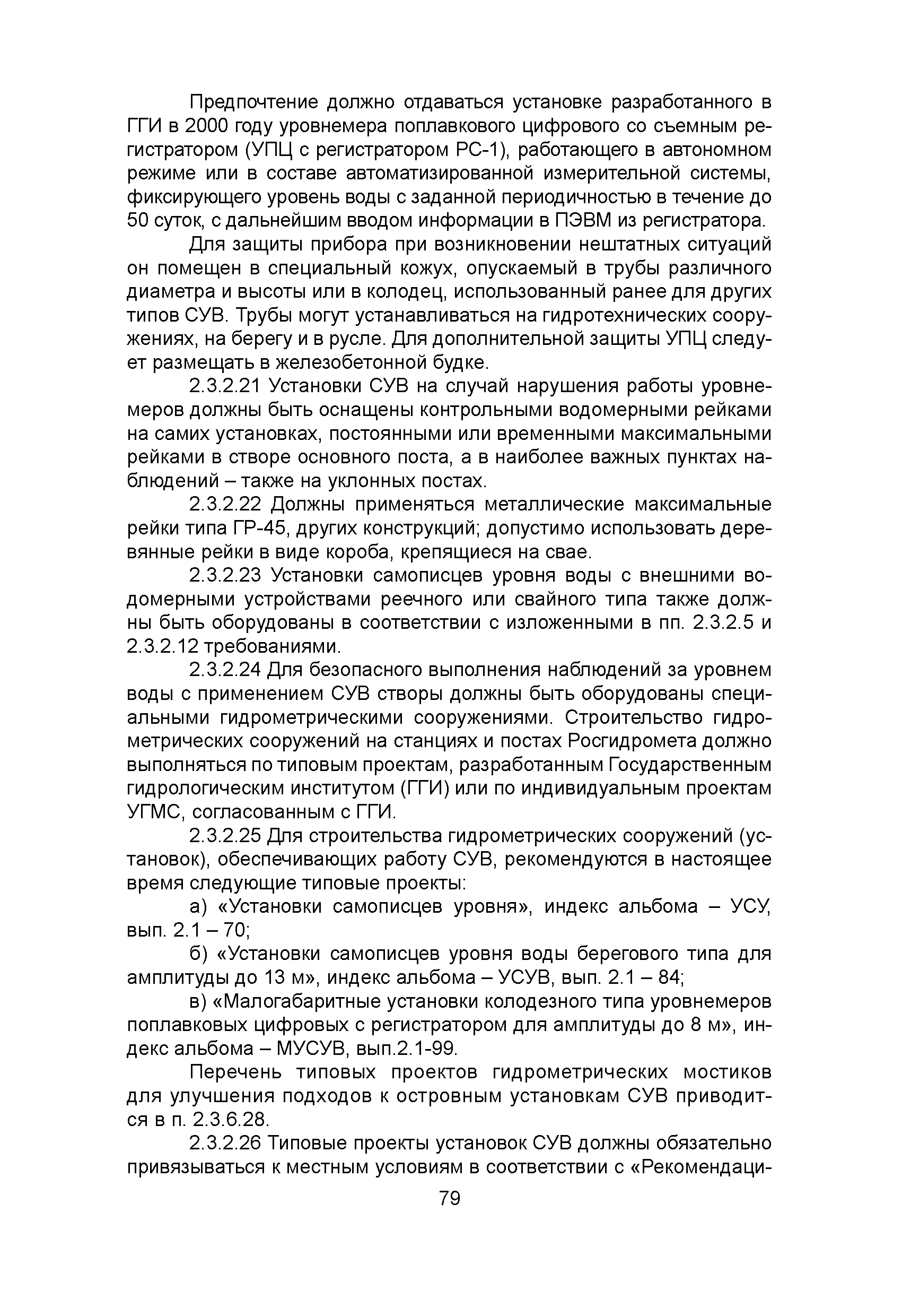 | Оглавление: | Введение 1 Общие положения 2 Гидрологические наблюдения и работы на реках и каналах 2.1 Общие требования 2.2 Требования охраны труда работников при организации и проведении гидрологических наблюдений и работ 2.2.1 Требования безопасности при проведении наблюдений за уровнем воды 2.2.2 Требования безопасности при проведении наблюдений за ледовыми явлениями и толщиной льда 2.2.3 Требования безопасности при проведении уровенных и ледовых наблюдений в случае возникновения заторов и зажоров льда 2.2.4 Требования безопасности при проведении гидрометрических работ по измерению расходов воды и наблюдений за наносами 2.2.5 Требования безопасности при проведении работ на горных и таежных реках, а также в период прохождения весеннего половодья и высоких дождевых паводков 2.2.6 Требования безопасности при организации специализированных гидрологических наблюдений и работ (болотных, воднобалансовых, на наледях) 2.2.7 Требования безопасности при проведении аэрогидрометрических наблюдений и работ 2.2.8 Средства индивидуальной защиты работников 2.2.9 Меры по защите работников при возникновении аварийных ситуаций 2.3 Требования к производственным площадкам, оборудованию, приборам и условиям их эксплуатации 2.3.1 Общие требования 2.3.2 Требования при проведении наблюдений за уровнем воды 2.3.3 Требования при проведении наблюдений за продольным уклоном водной поверхности 2.3.4 Требования при проведении наблюдений за температурой воды 2.3.5 Требования при проведении наблюдений за ледовыми явлениями, толщиной льда, снежным покровом 2.3.6 Требования при проведении измерений расходов воды и взвешенных наносов, при отборе проб донных отложений 3 Гидрометеорологические наблюдения и работы на озерах и водохранилищах 3.1 Общие требования 3.2 Требования охраны труда работников при организации и проведении гидрометеорологических наблюдений и работ 3.2.1 Общие требования 3.2.2 Требования безопасности при проведении гидрометеорологических наблюдений и работ в прибрежной зоне водоемов 3.2.3 Требования безопасности при проведении гидрометеорологических наблюдений и работ на открытой акватории водоемов 3.2.4 Требования безопасности при проведении наблюдений за ледяным покровом 3.2.5 Средства индивидуальной защиты работников 3.2.6 Защита работников при возникновении аварийных ситуаций 3.3 Требования к производственным площадкам 3.3.1 Требования к площадкам для производства гидрометеорологических наблюдений и работ в прибрежной зоне водоемов 3.3.2 Требования к площадкам для гидрометеорологических наблюдений и работ на открытой акватории водоемов 3.3.3 Требования к площадкам для наблюдений за ледяным покровом 3.4 Требования к приборам, оборудованию и условиям их эксплуатации 4 Гидрографические обследования 4.1 Общие требования 4.2 Требования охраны труда работников при организации и проведении гидрографических обследований 4.2.1 Требования безопасности при движении по маршрутам 4.2.2 Требования безопасности при переправах через реки, озера, другие водные преграды и лавины 4.2.3 Требования безопасности при проведении маршрутных снегомерных съемок на равнинной территории 4.2.4 Требования безопасности при применении авиационного транспорта 4.2.5 Средства индивидуальной защиты работников 4.2.6 Защита работников при возникновении аварийных ситуаций 4.3 Требования к пло