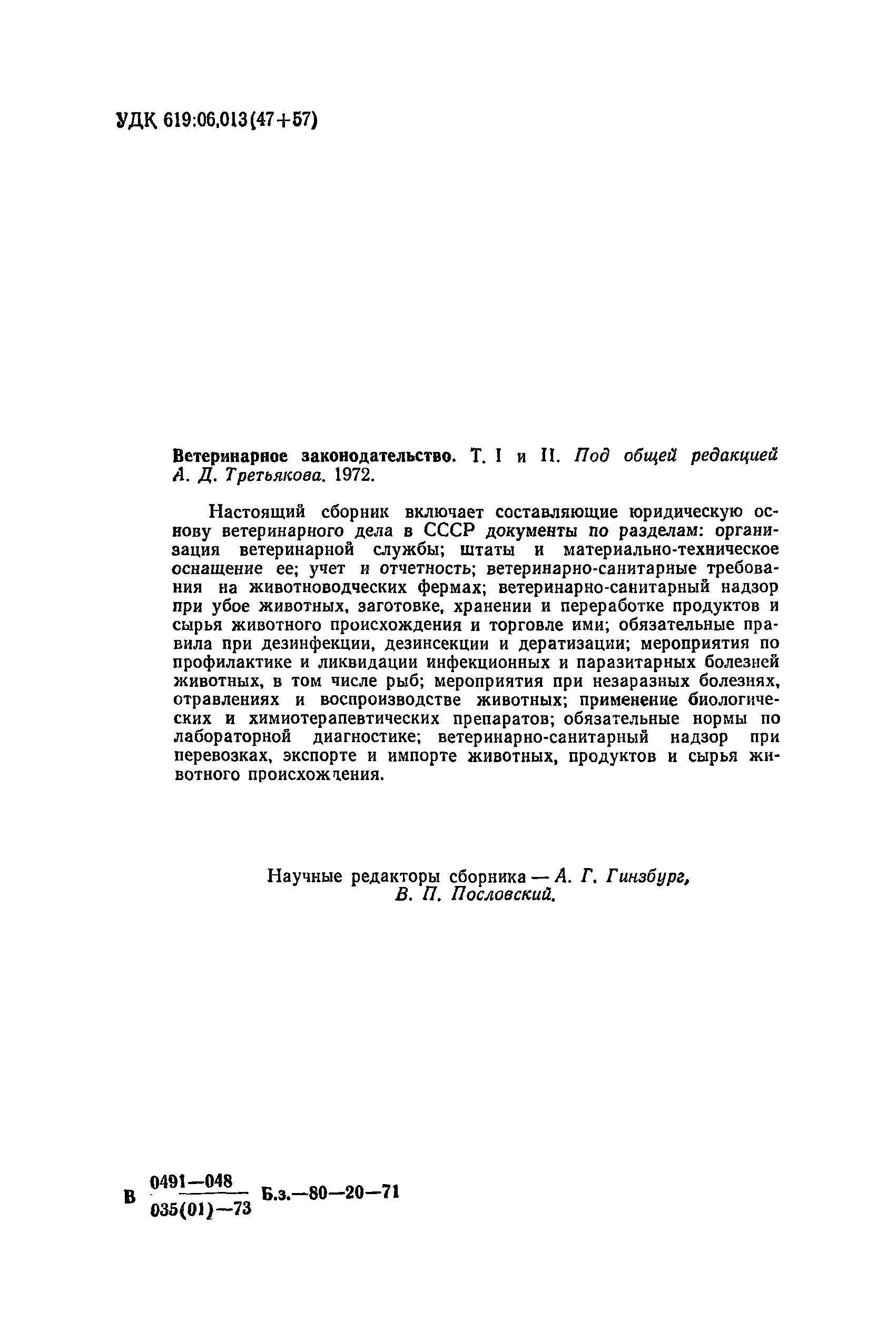 | Утверждён: | 07.04.1971 Главное управление ветеринарии Министерства сельского хозяйства СССР