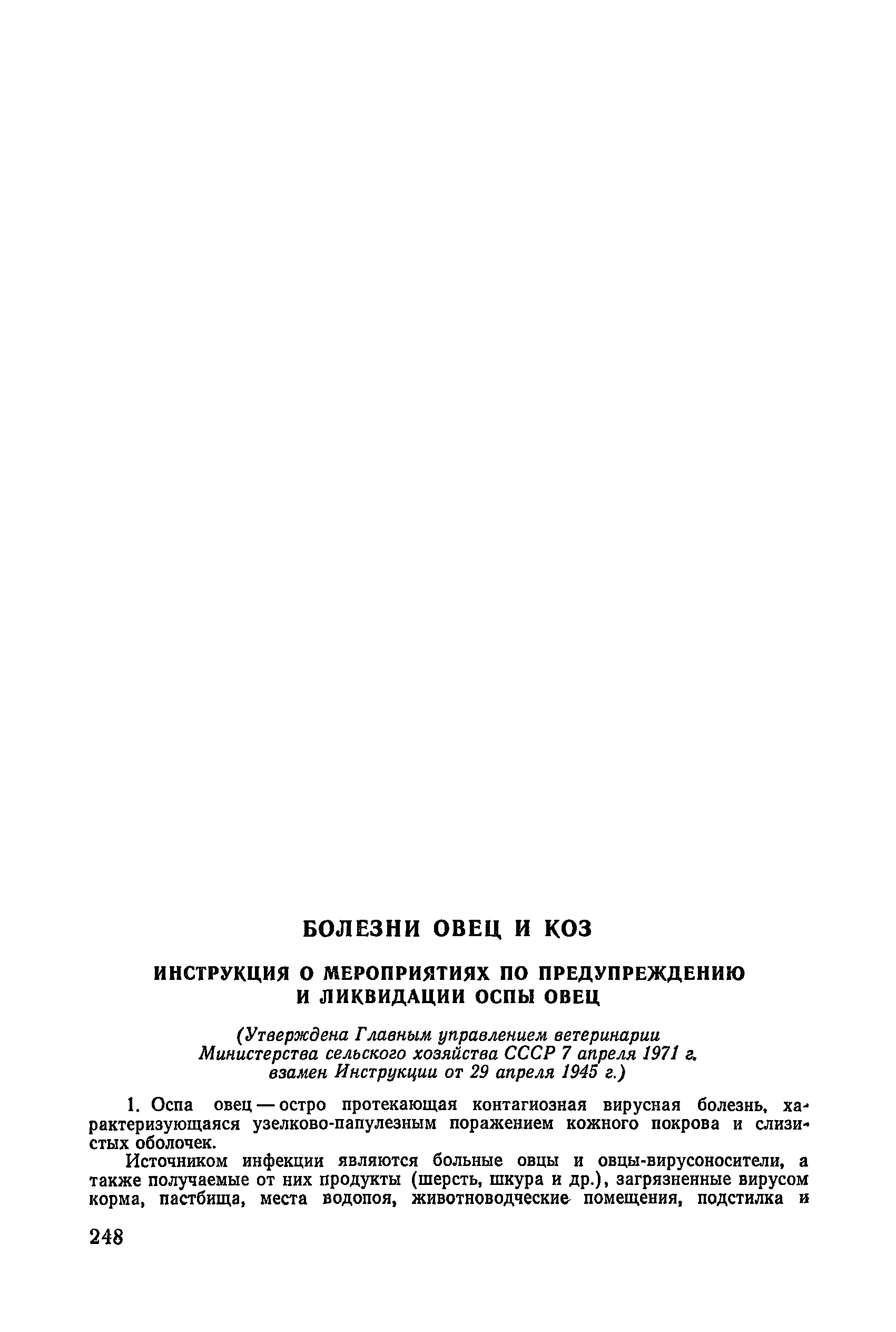 | Название рус.: | Инструкция о мероприятиях по предупреждению и ликвидации оспы овец |