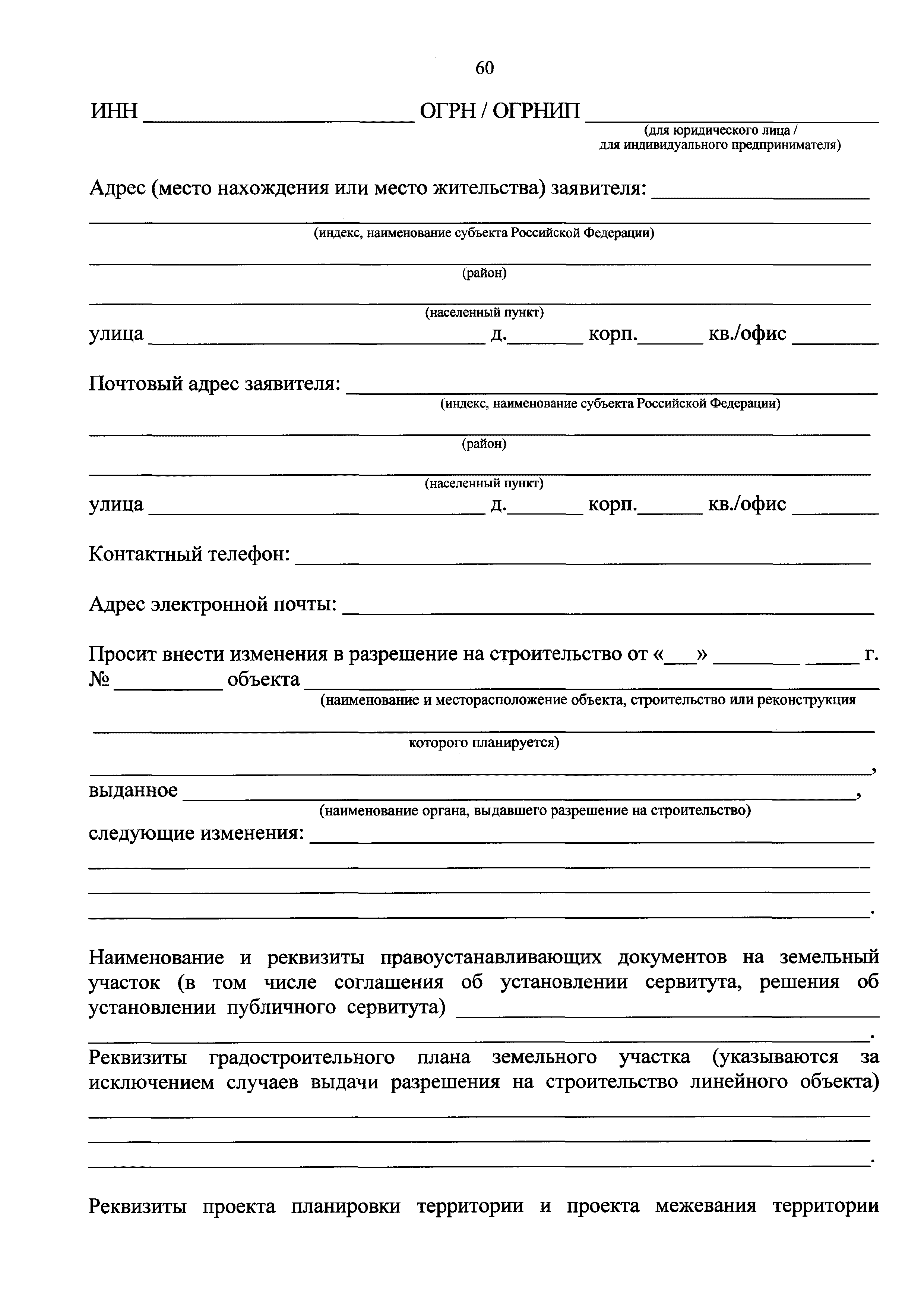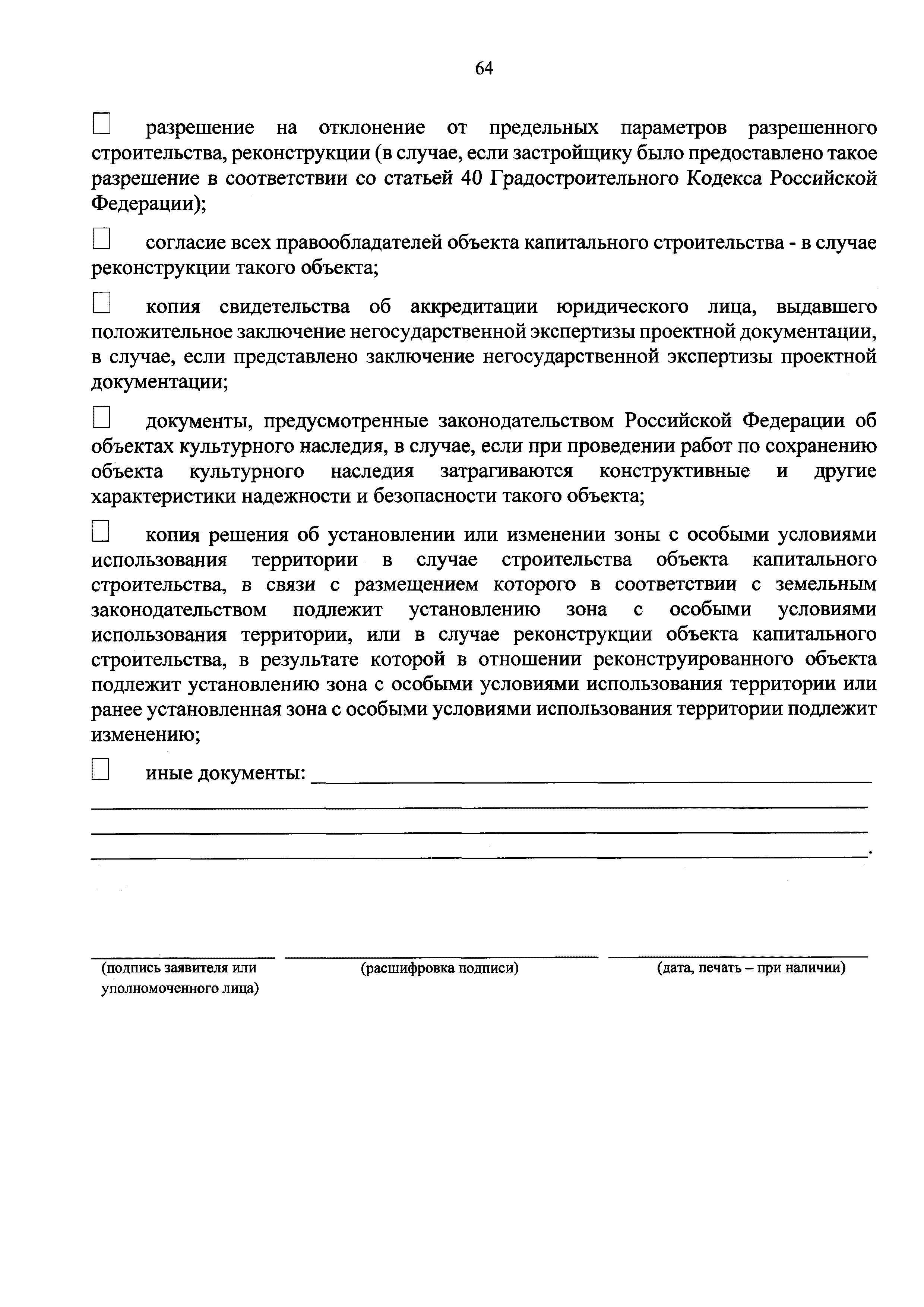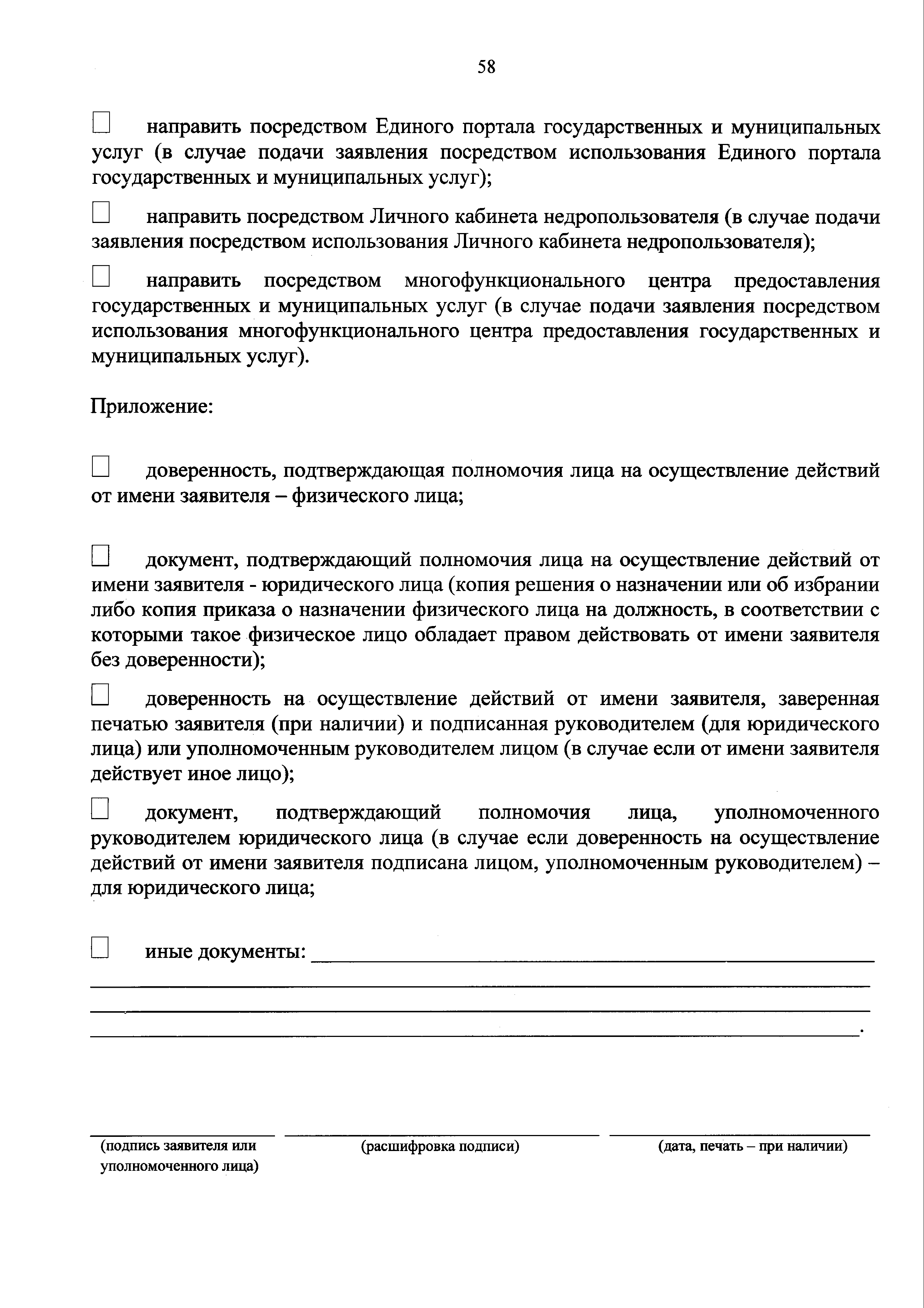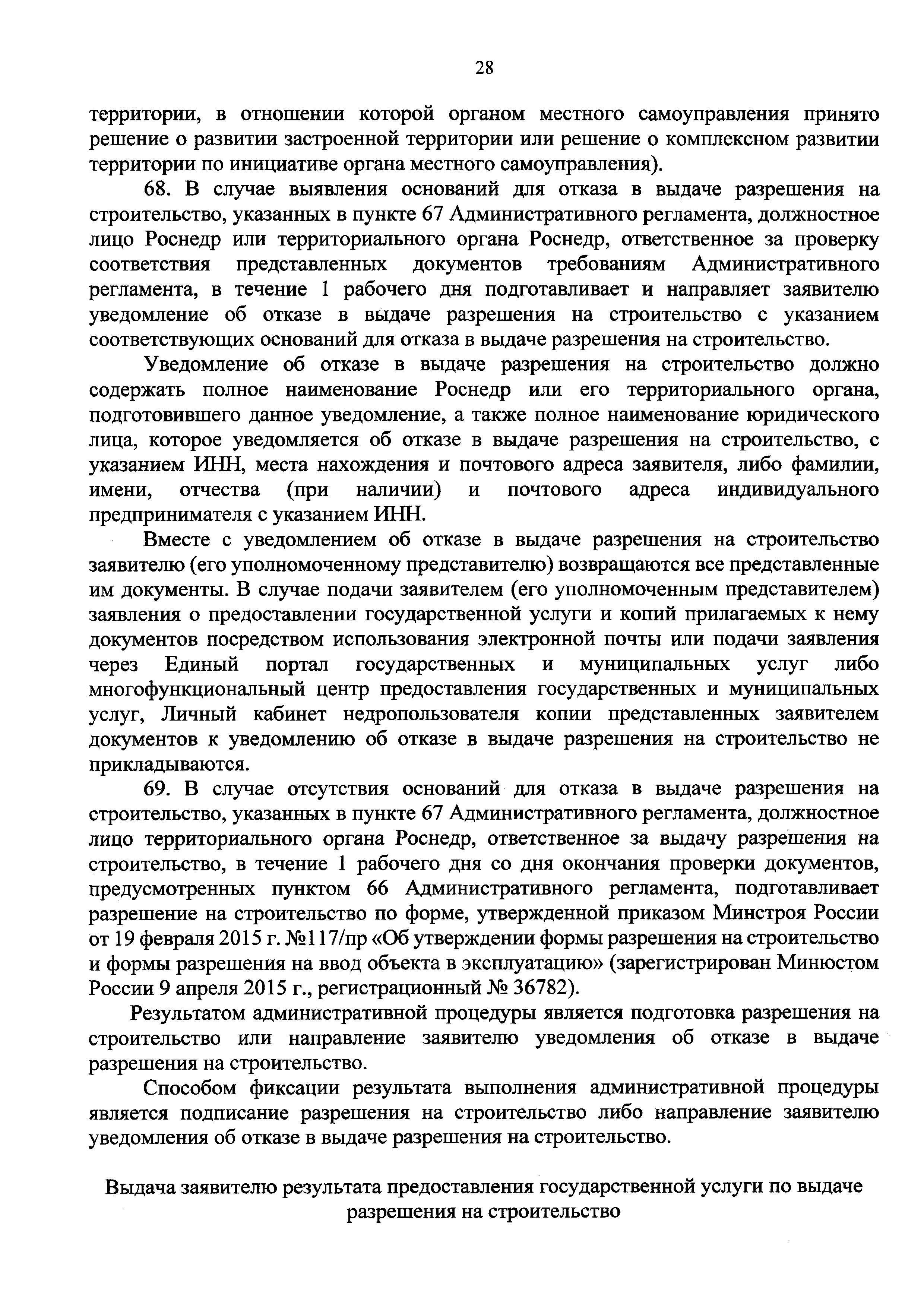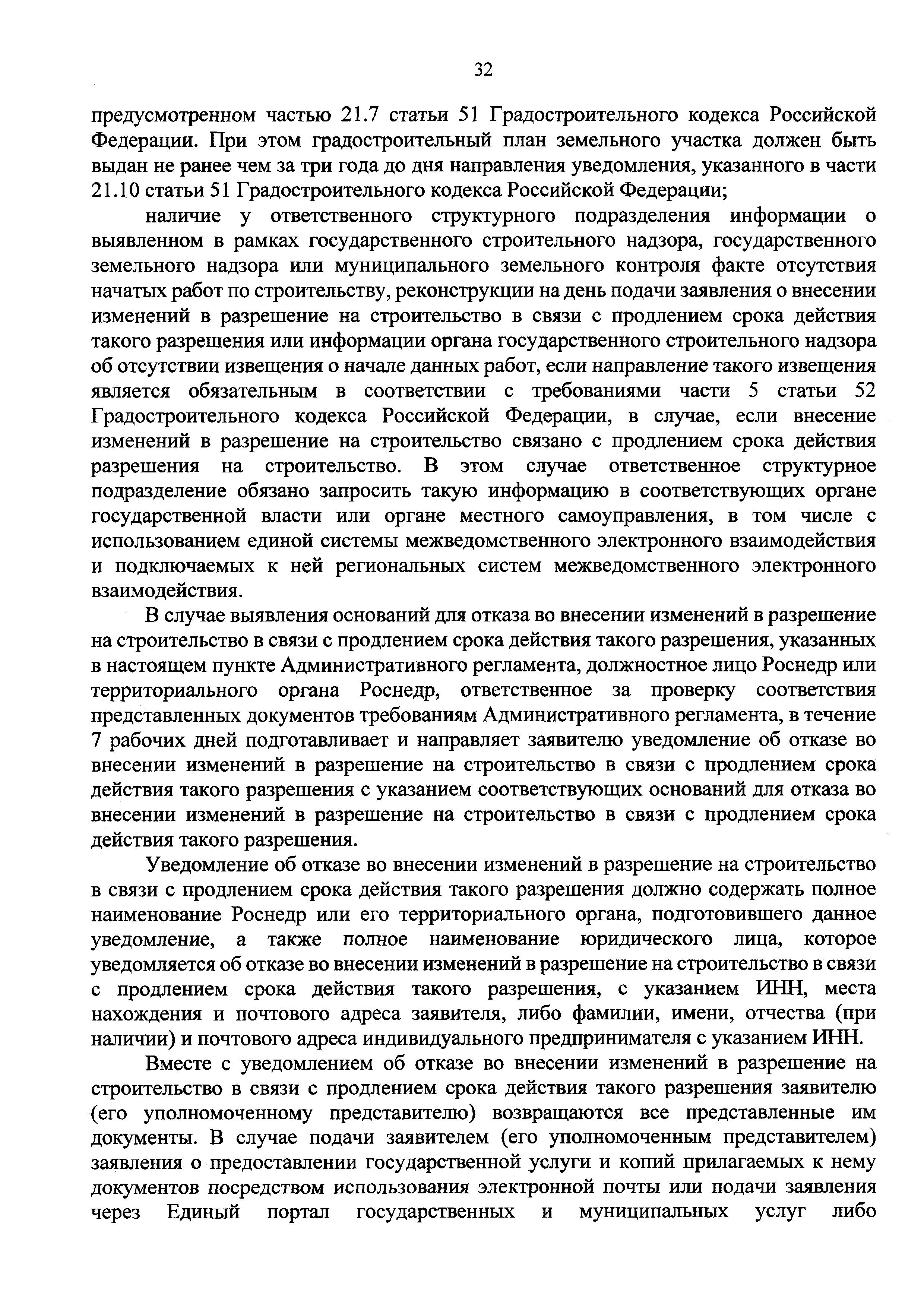 | Оглавление: | I. Общие положения II. Стандарт предоставления государственной услуги III. Состав, последовательность и сроки выполнения административных процедур (действий), требования к порядку их выполнения, в том числе особенности выполнения административных процедур (действий) в электронной форме IV. Формы контроля за предоставлением государственной услуги V. Досудебный (внесудебный) порядок обжалования решений и действий (бездействия) Роснедр и территориальных органов Роснедр, предоставляющих государственную услугу, а также их должностных лиц VI. Особенности выполнения административных процедур (действий) в многофункциональных центрах предоставления государственных и муниципальных услуг Приложение № 1. Образец заявления о выдаче разрешения на строительство объекта капитального строительства, строительство или реконструкция которого осуществляется на земельном участке, предоставленном пользователю недр и необходимом для ведения работ, связанных с пользованием недрами (за исключением работ, связанных с пользованием участками недр местного значения) Приложение № 2. Образец заявления о внесении изменений в разрешение на строительство объекта капитального строительства, строительство или реконструкция которого осуществляется на земельном участке, предоставленном пользователю недр и необходимом для ведения работ, связанных с пользованием недрами (за исключением работ, связанных с пользованием участками недр местного значения), в связи с изменением срока действия такого разрешения Приложение № 3. Образец заявления о выдаче разрешения на строительство объекта капитального строительства, строительство или реконструкция которого осуществляется на земельном участке, предоставленном пользователю недр и необходимом для ведения работ, связанных с пользованием недрами (за исключением работ, связанных с пользованием участками недр местного значения), кроме внесения изменений в разрешение на строительство исключительно в связи с продлением срока действия такого разрешения Приложение № 4. Образец заявления о выдаче дубликата разрешения на строительство объекта капитального строительства, строительство или реконструкция которого осуществляется на земельном участке, предоставленном пользователю недр и необходимом для ведения работ, связанных с пользованием недрами (за исключением работ, связанных с пользованием участками недр местного значения) Приложение № 5. Образец штампа дубликата разрешения на строительство Приложение № 6. Образец заявления об исправлении допущенных опечаток и ошибок в разрешении на строительство |