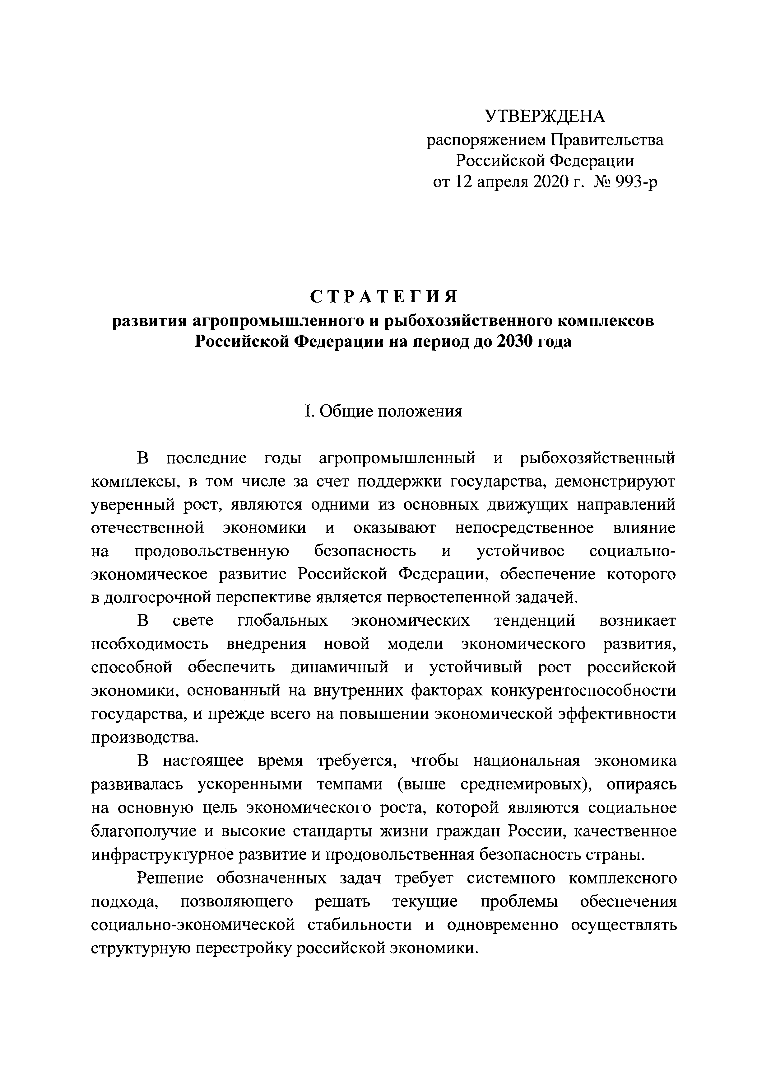 | Утверждён: | 12.04.2020 Правительство Российской Федерации (993-р) |