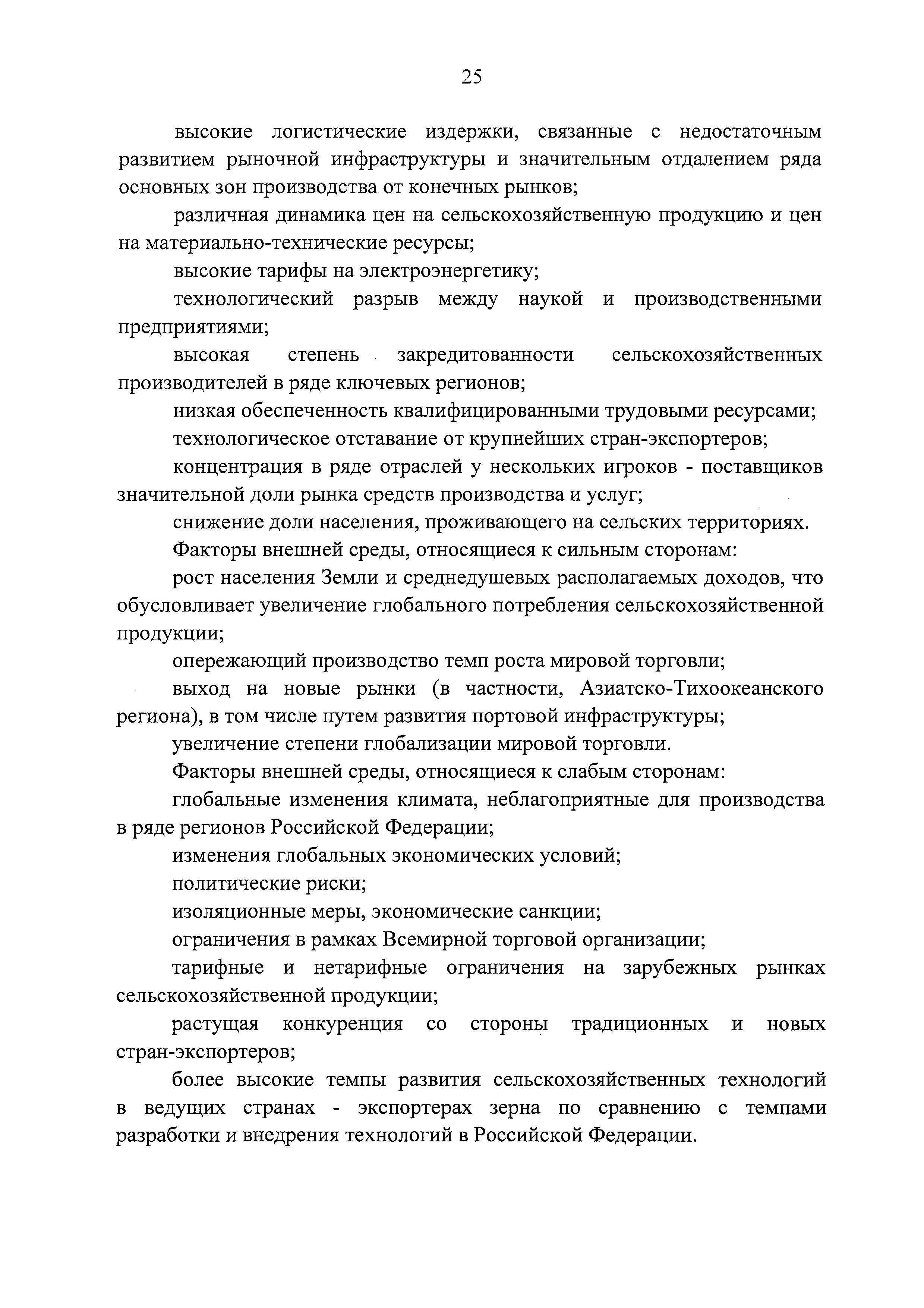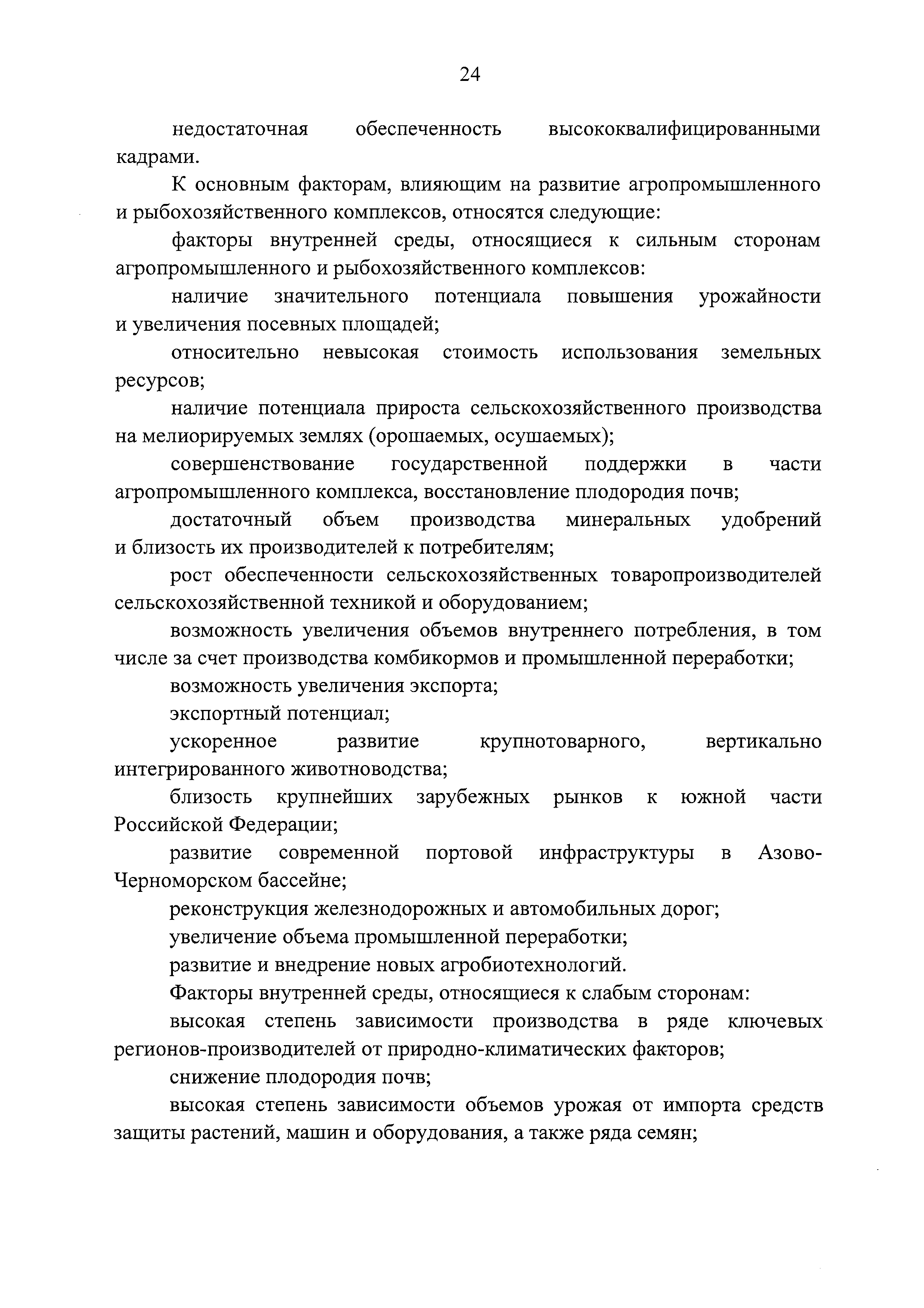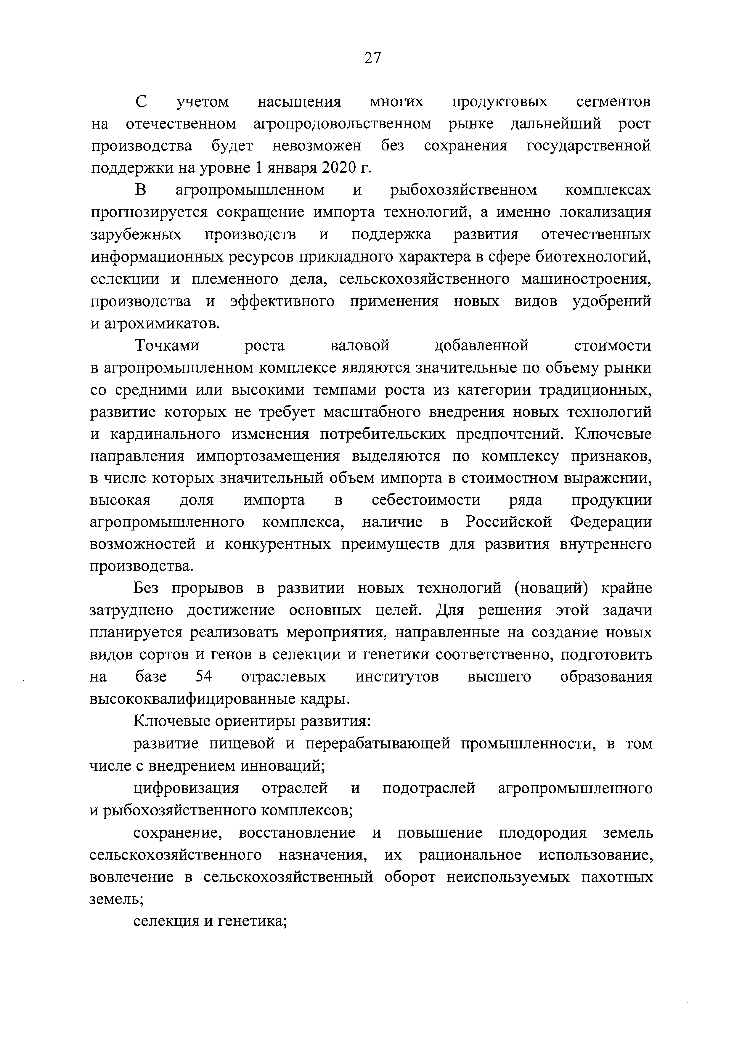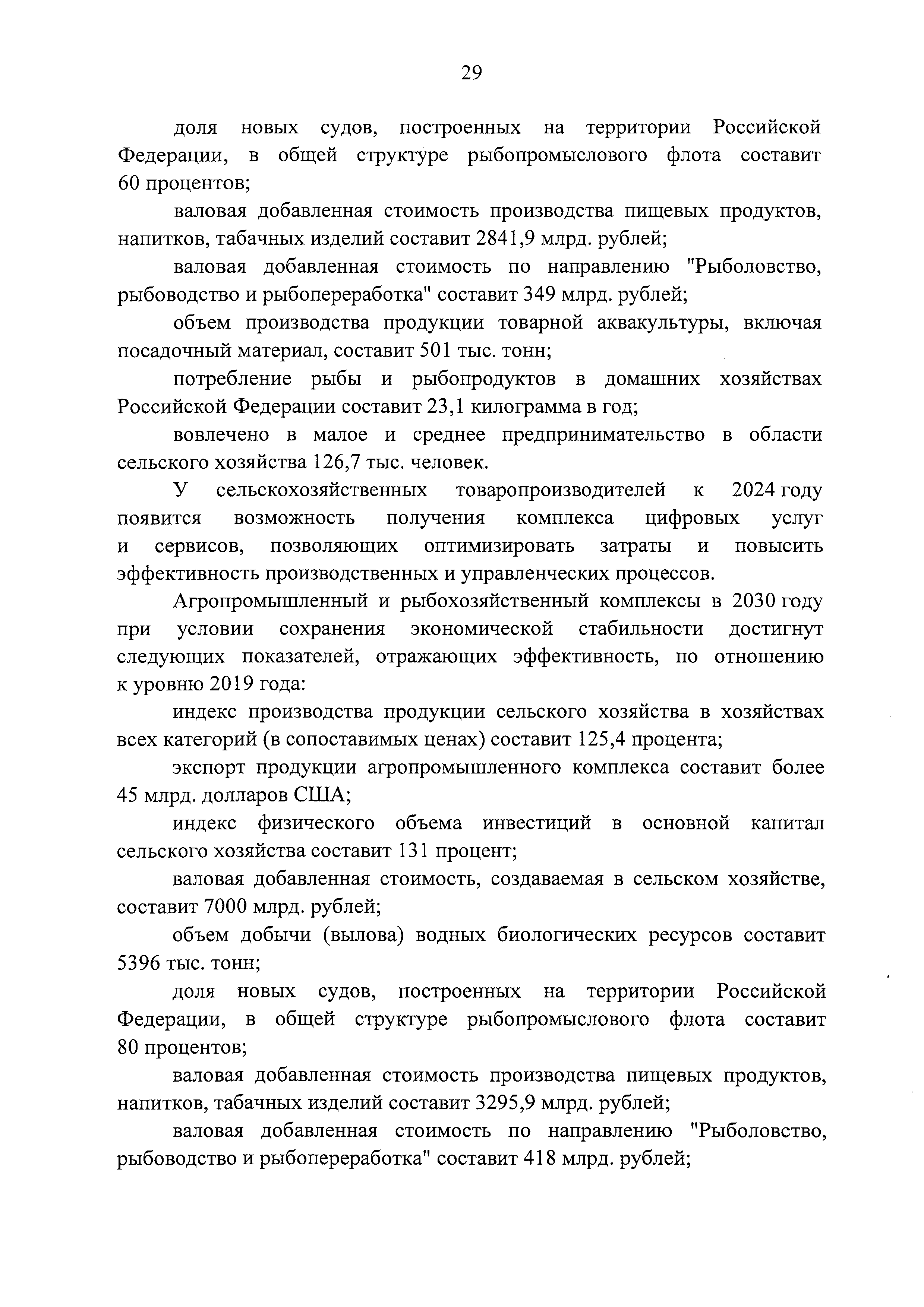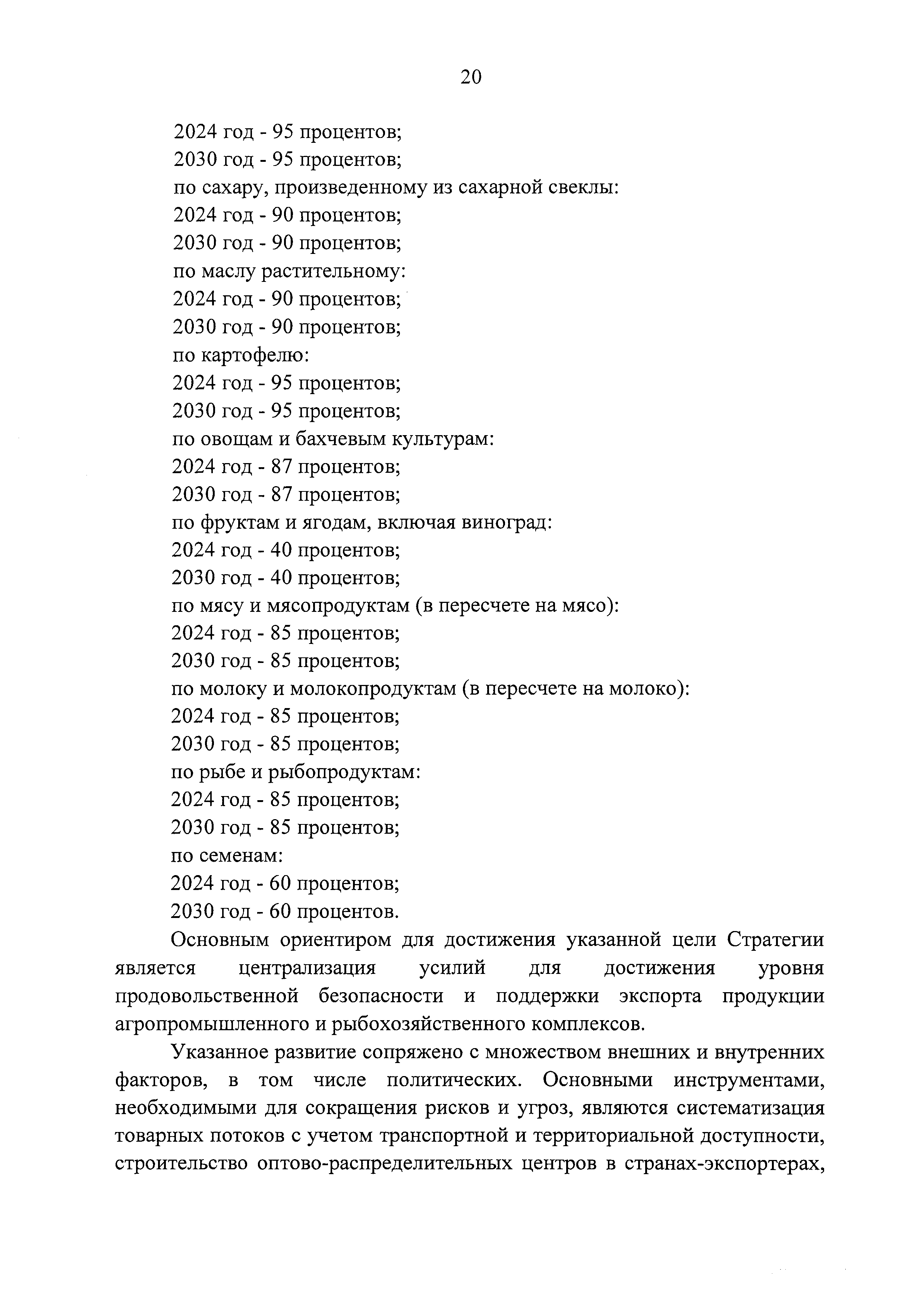 | Оглавление: | I. Общие положения II. Текущее состояние агропромышленного и рыбохозяйственного комплексов III. Цели, задачи, мероприятия и показатели (индикаторы) государственной политики в сферах агропромышленного и рыбохозяйственного комплексов IV. Ключевые риски в сферах агропромышленного и рыбохозяйственного комплексов V. Вызовы, угрозы и факторы, влияющие на развитие агропромышленного и рыбохозяйственного комплексов VI. Прогноз развития агропромышленного и рыбохозяйственного комплексов Приложение. Целевые показатели Стратегии развития агропромышленного и рыбохозяйственного комплексов Российской Федерации на период до 2030 года |