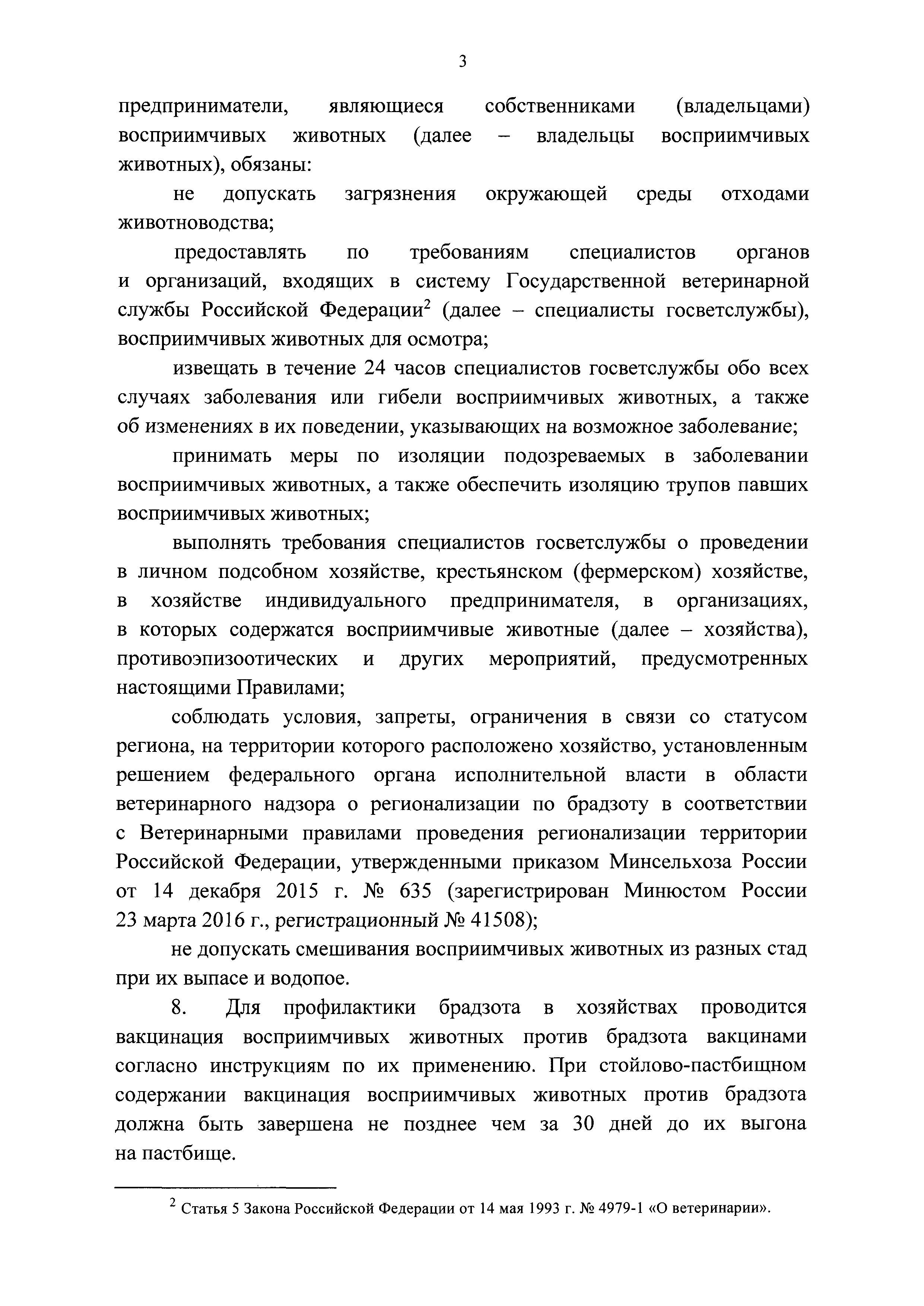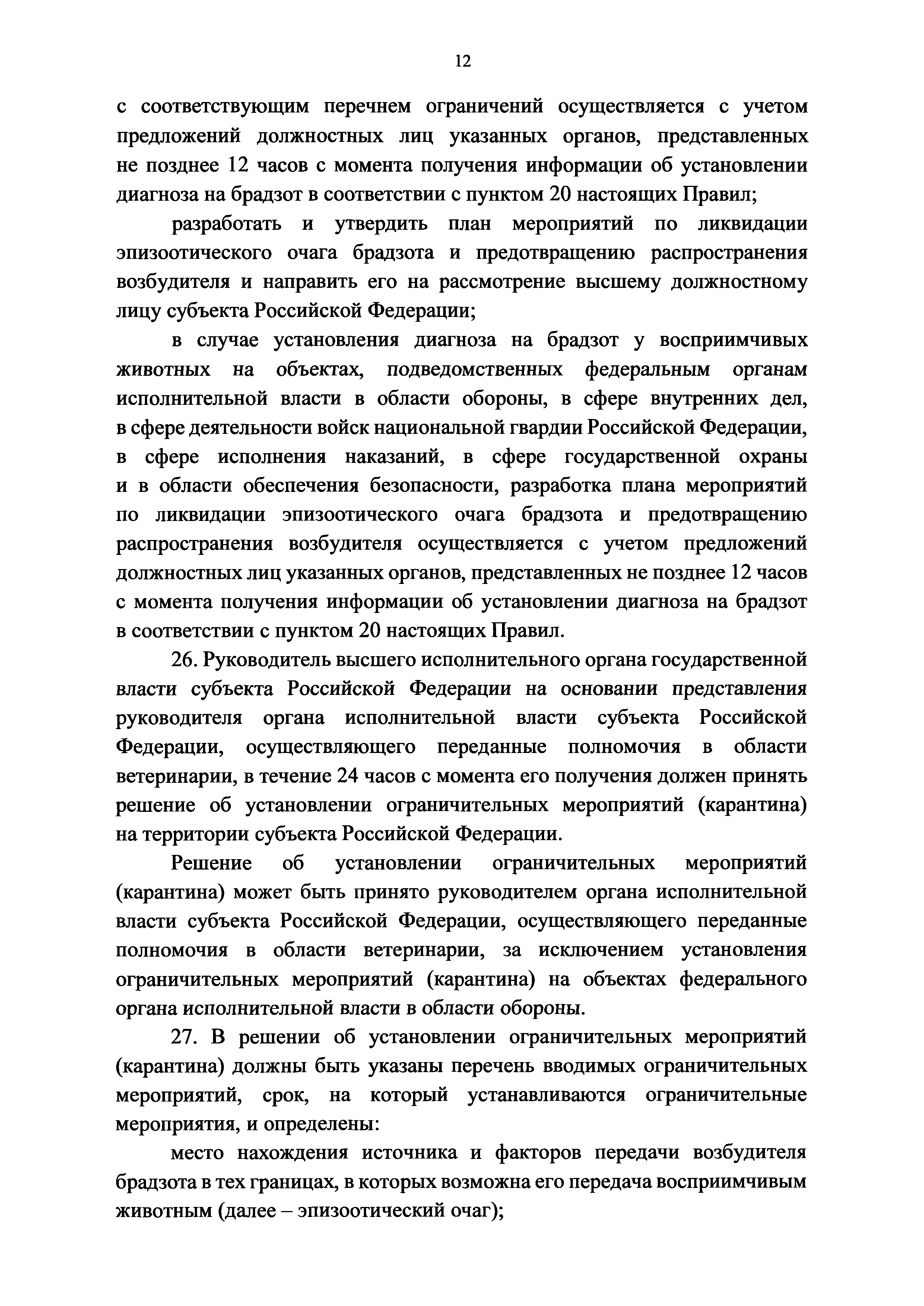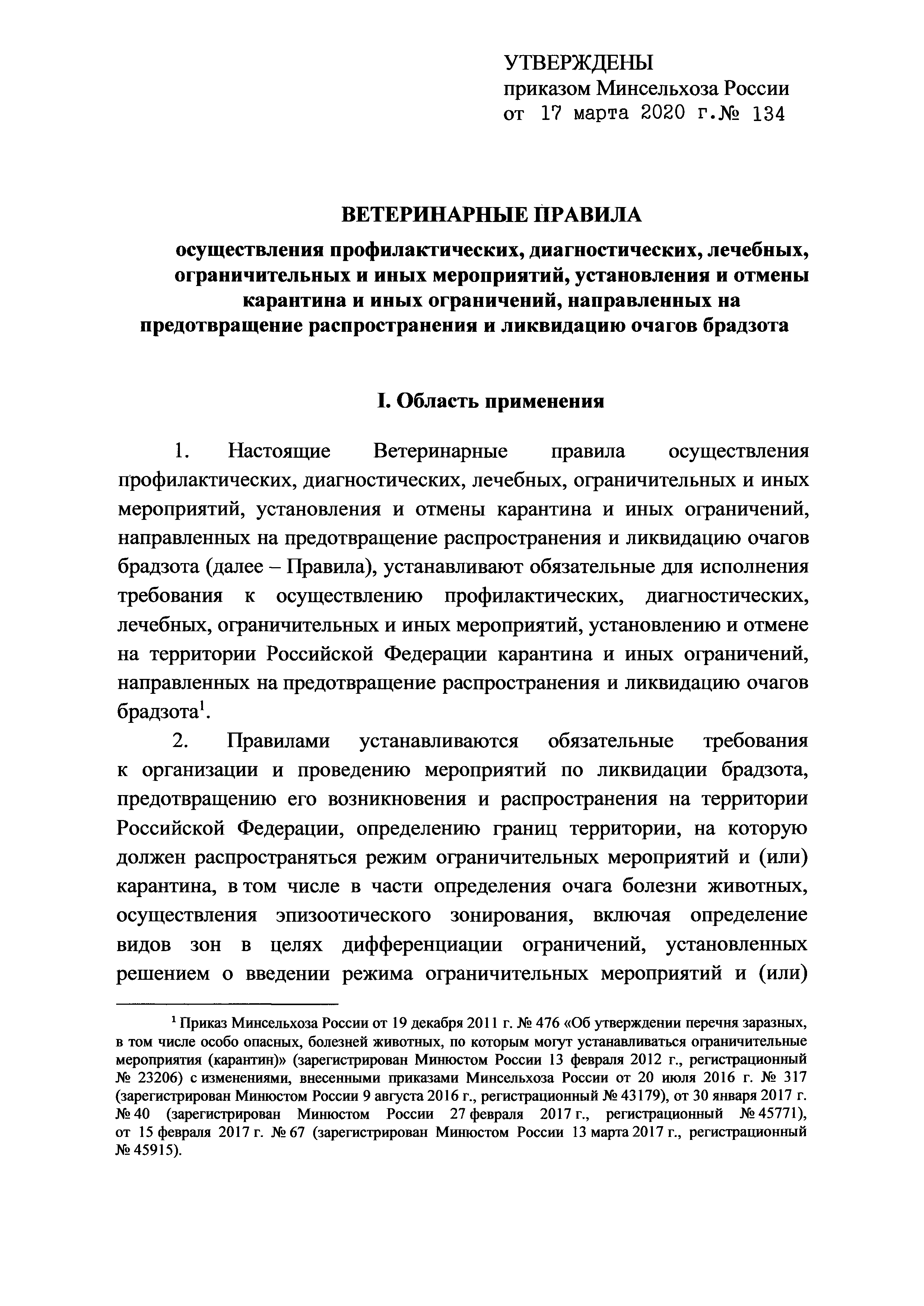 Скачать Ветеринарные правила осуществления профилактических, диагностических, лечебных, ограничительных и иных мероприятий, установления и отмены карантина и иных ограничений, направленных на предотвращение распространения и ликвидацию очагов брадзотаДата актуализации: 01.01.2021