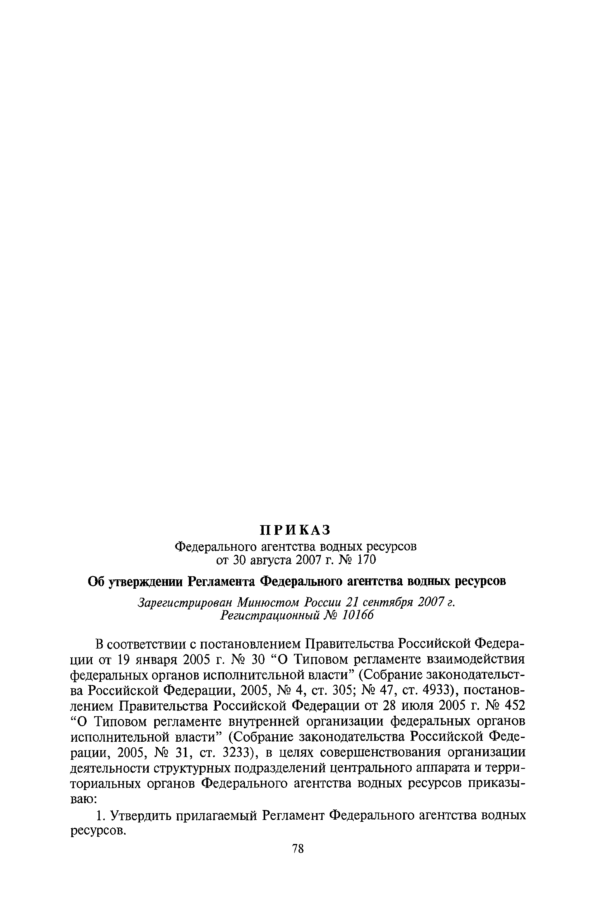 | Утверждён: | 30.08.2007 Федеральное агентство водных ресурсов (Росводресурсы) (170) |
