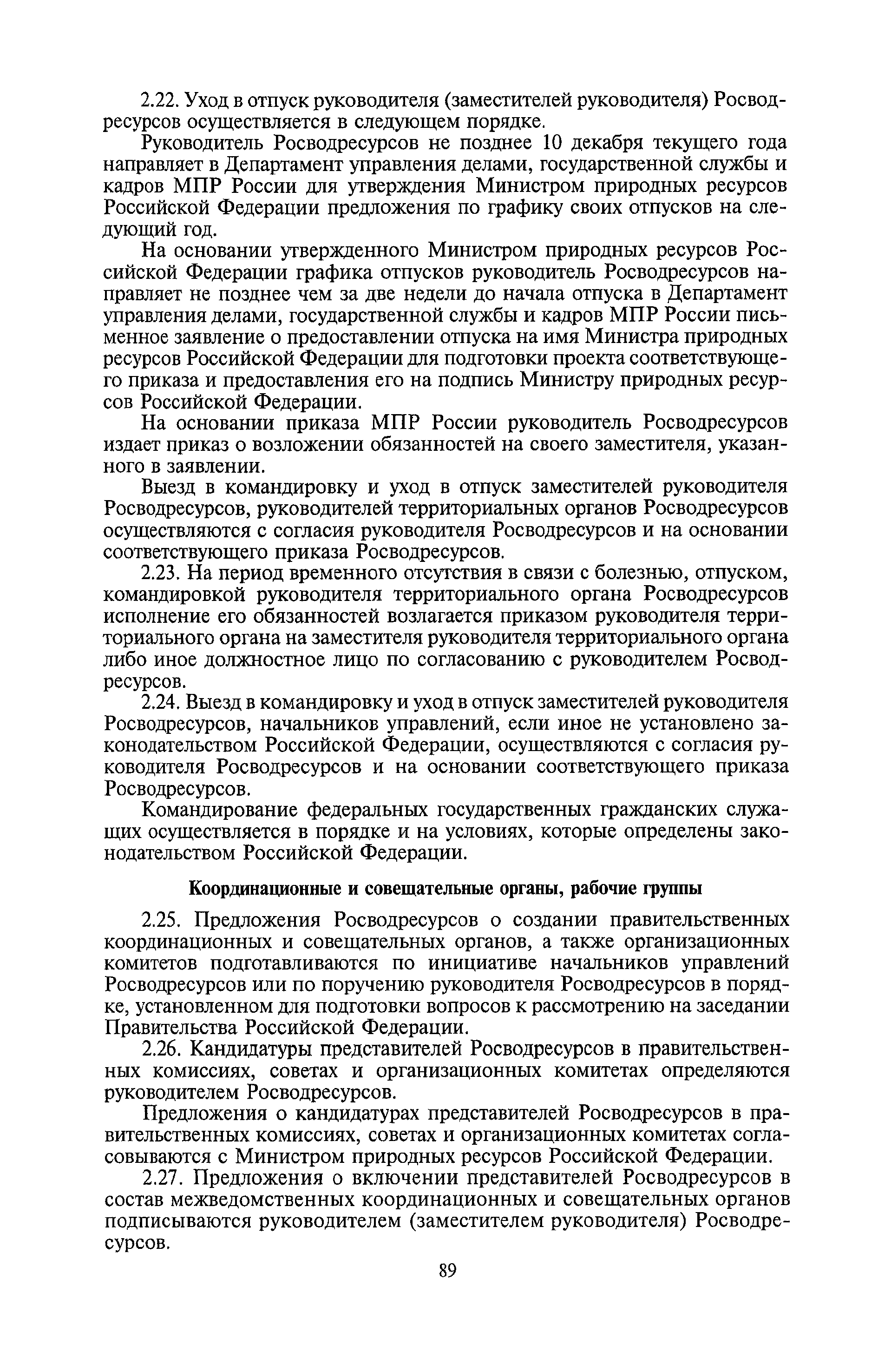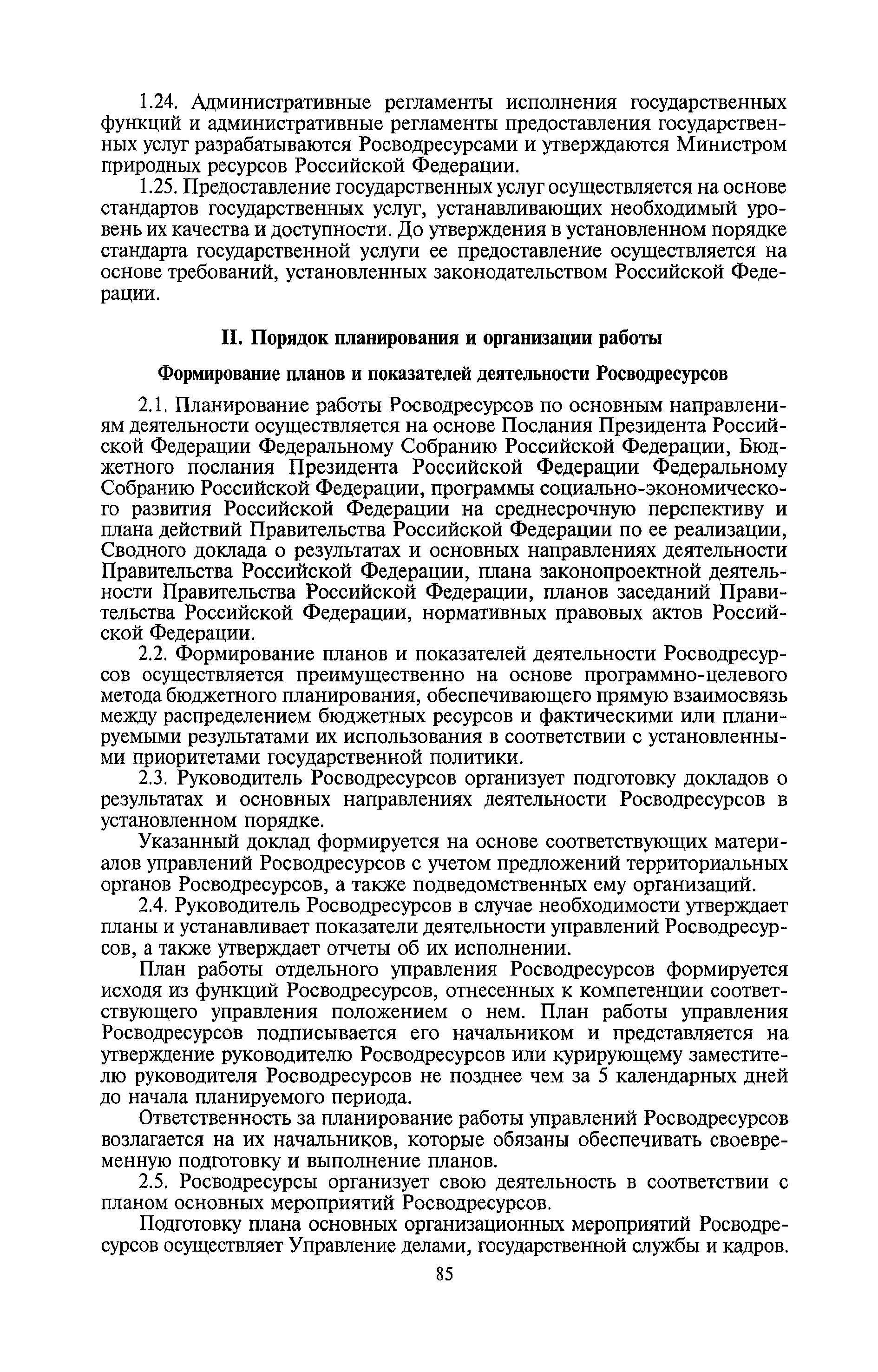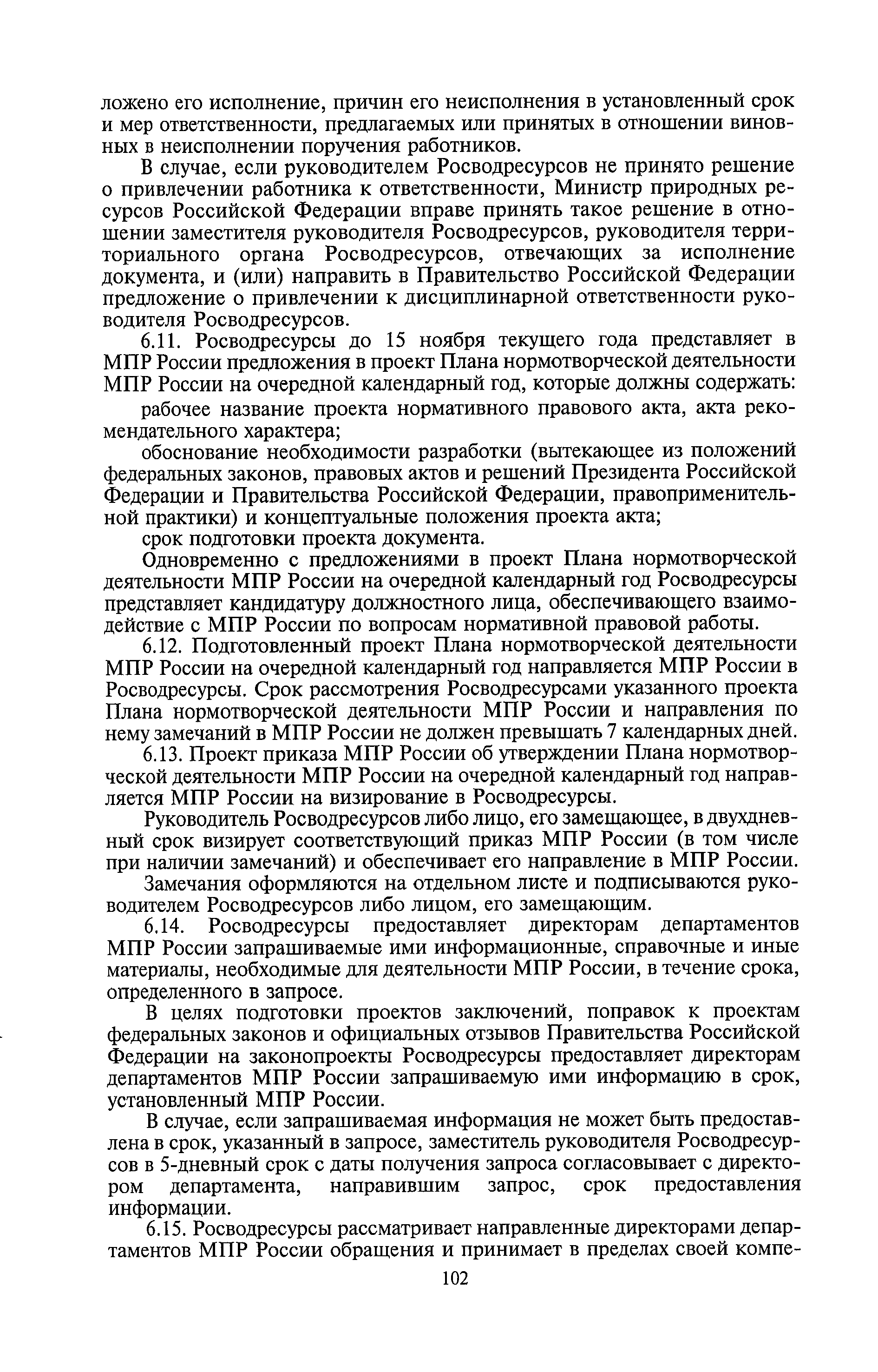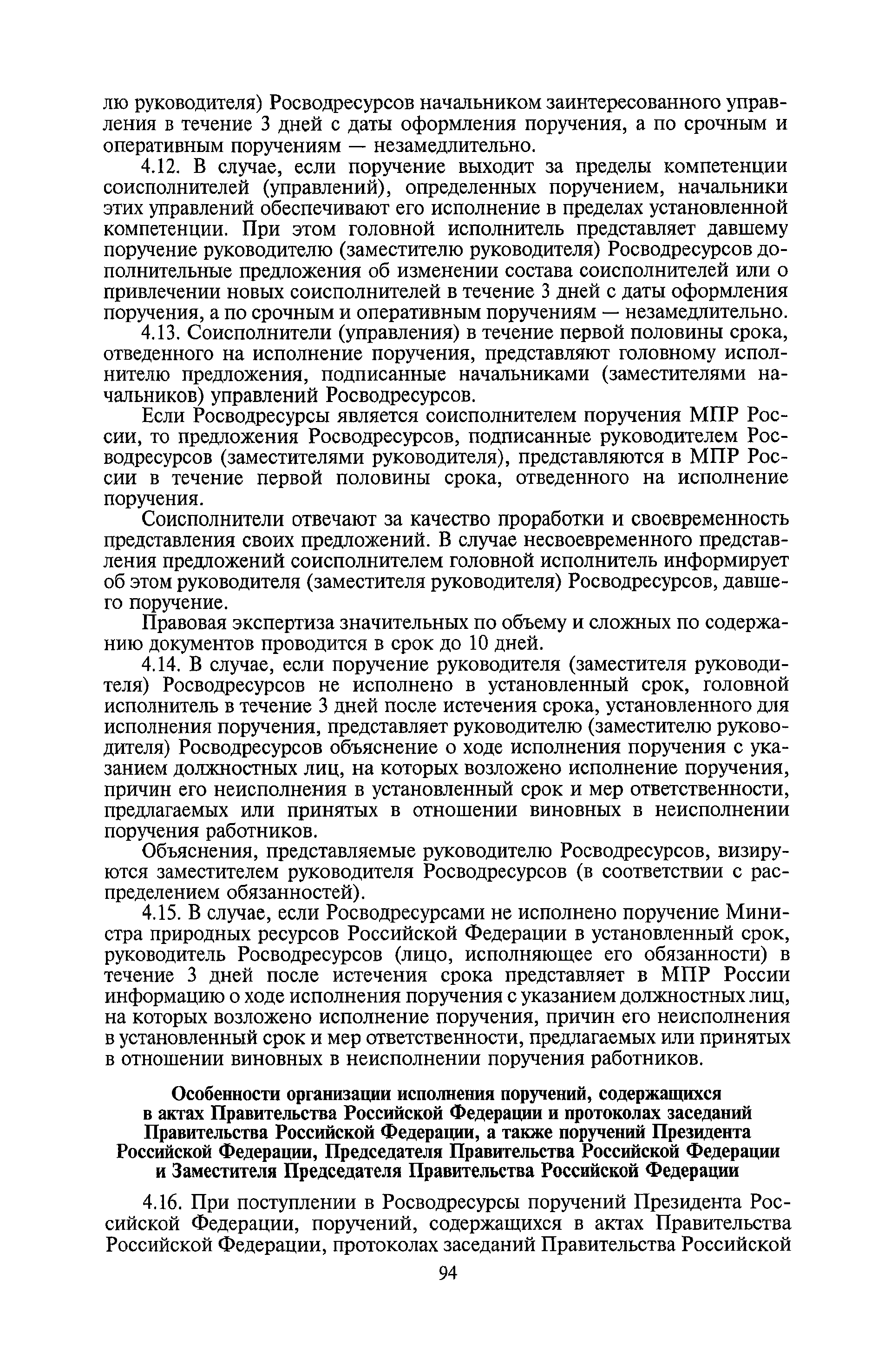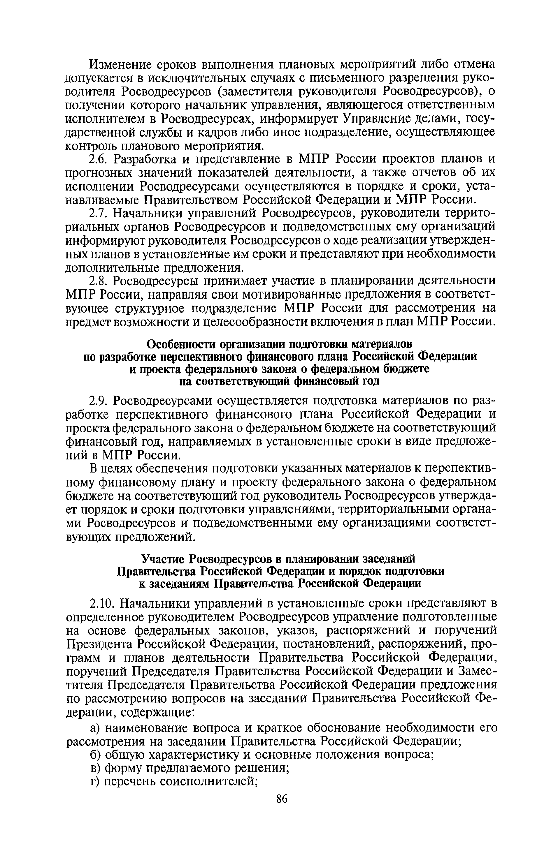 | Оглавление: | I. Общие положения II. Порядок планирования и организации работы III. Порядок подготовки и оформления решений Росводресурсов IV. Порядок исполнения поручений в Росводресурсах V. Порядок участия в деятельности ФС РФ VI. Порядок взаимодействия Росводресурсов и Минприроды России VII. Правила организации деятельности территориальных органов Росводресурсов VIII. Порядок деятельности и взаимодействия управлений центрального аппарата Росводресурсов при осуществлении возложенных на него функций IX. Правила организации взаимодействия Росводресурсов и подведомственных ему организаций X. Порядок взаимоотношений с органами судебной власти XI. Порядок рассмотрения отдельных видов обращений ХII. Порядок работы с обращениями граждан и организаций, прием граждан XIII. Доступ к информации о деятельности Росводресурсов |