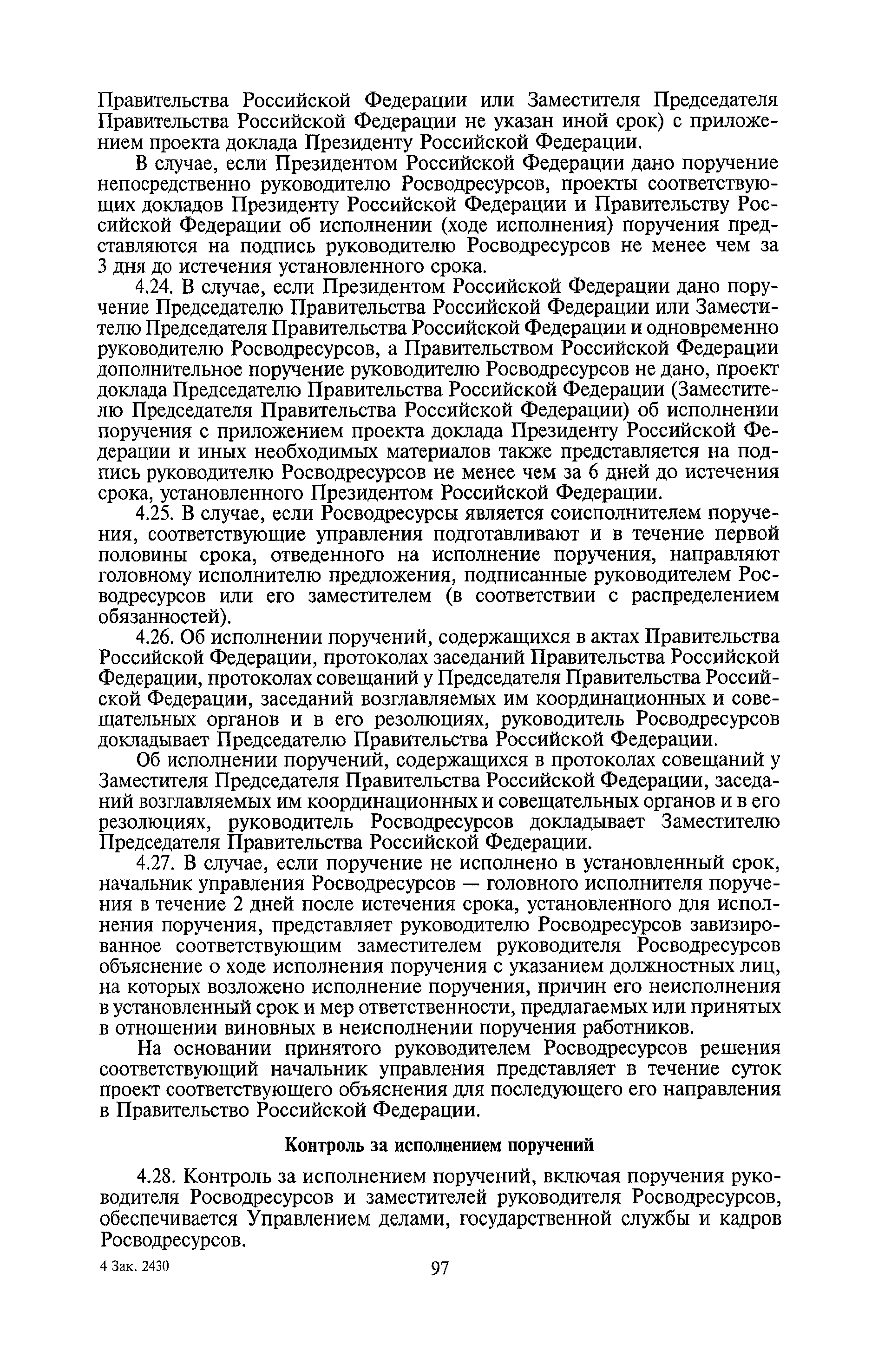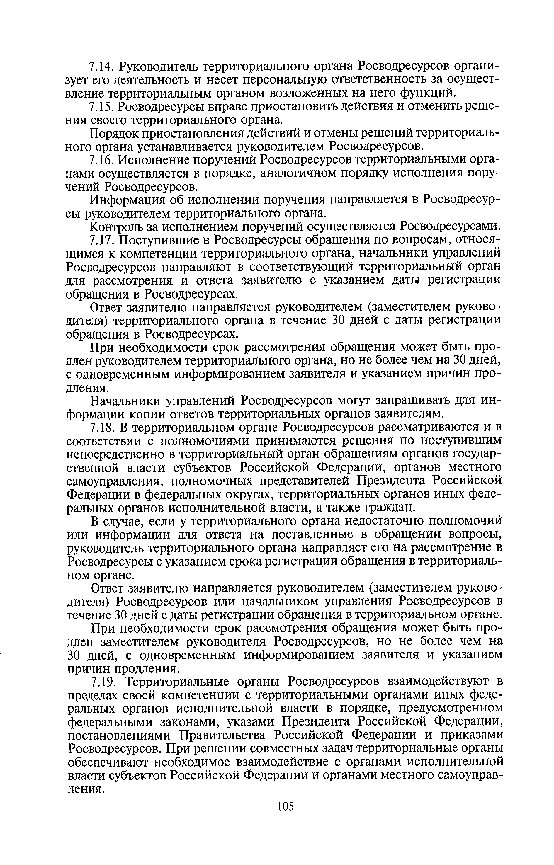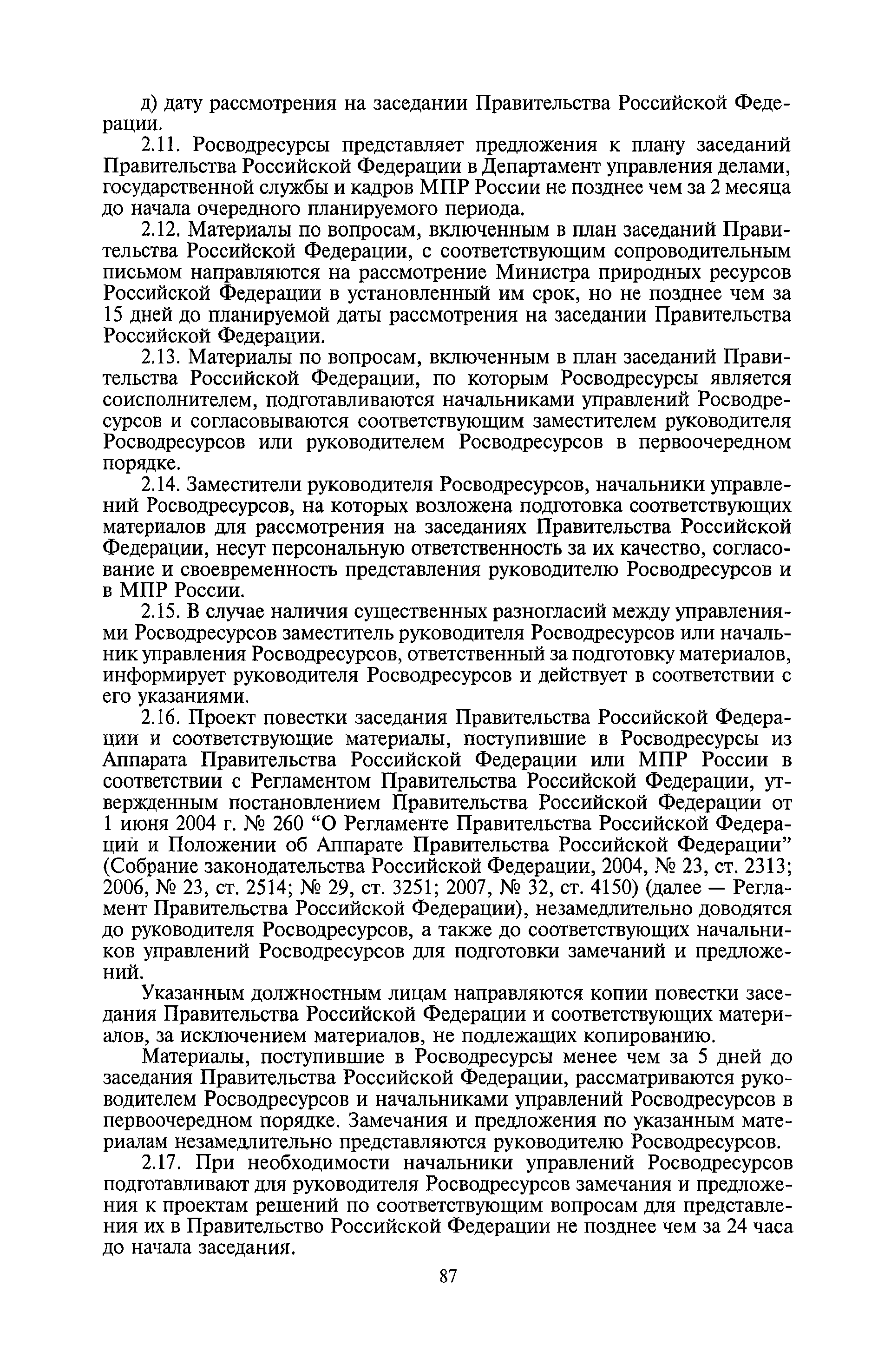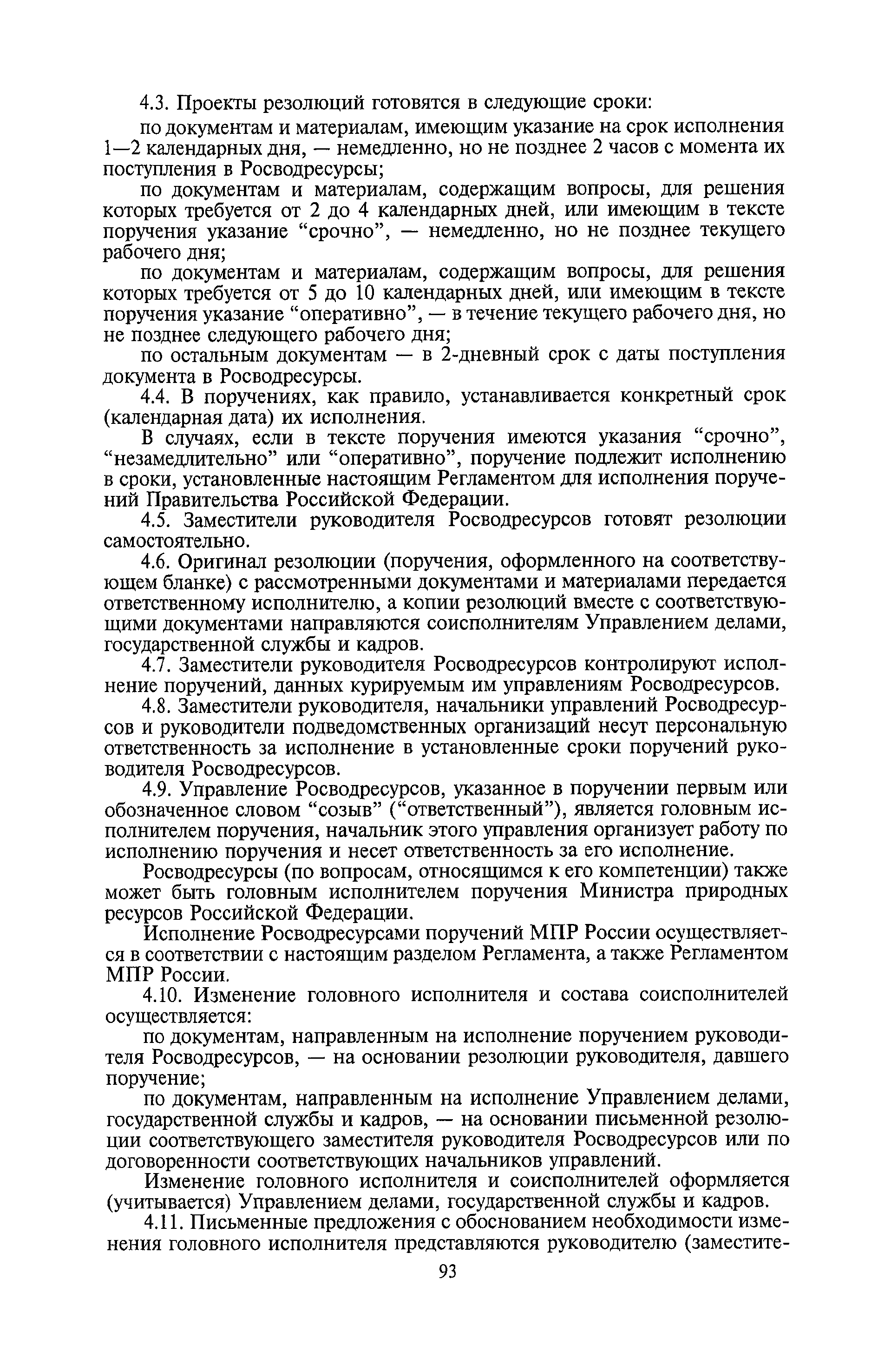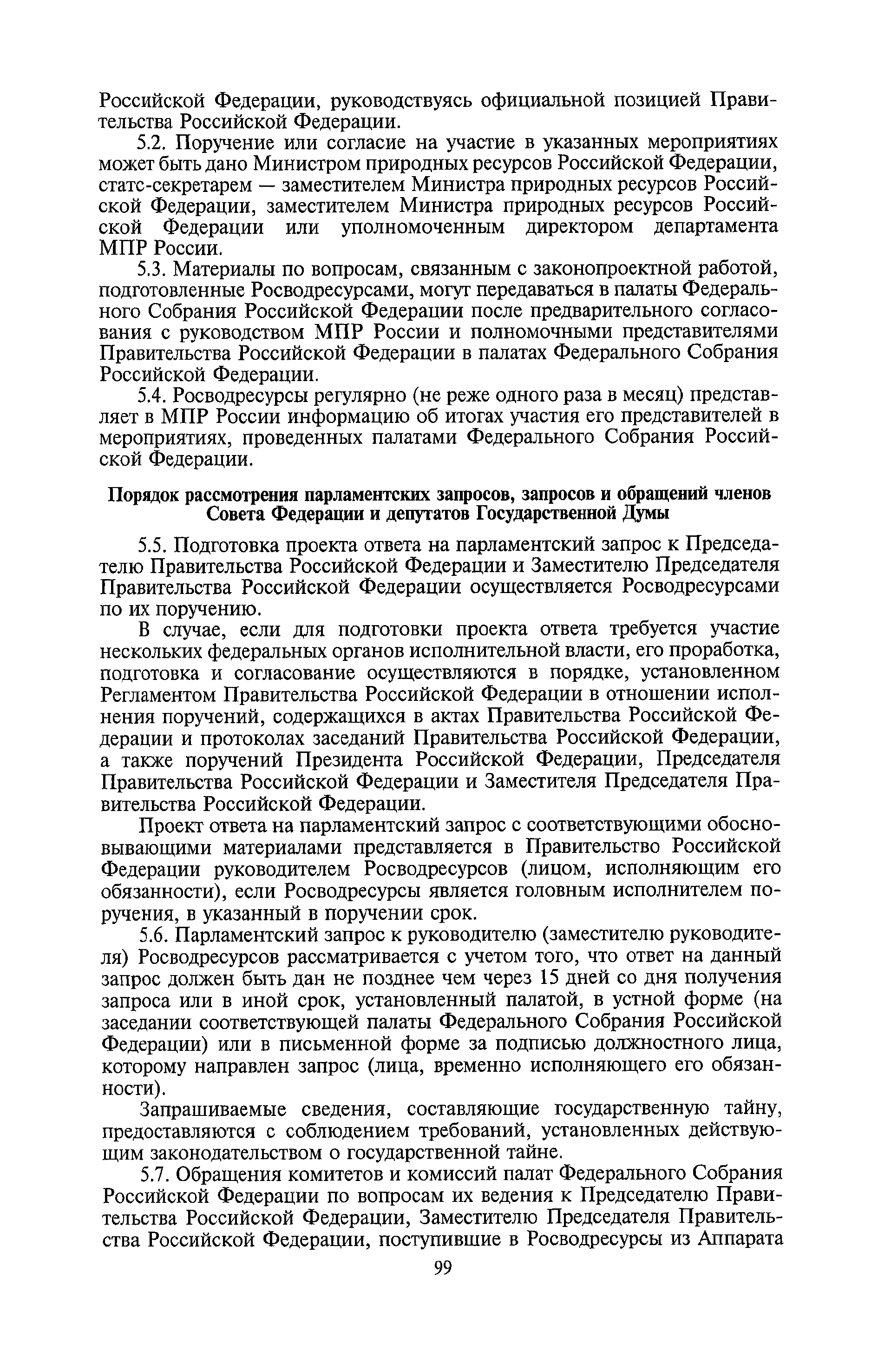 | Оглавление: | I. Общие положения II. Порядок планирования и организации работы III. Порядок подготовки и оформления решений Росводресурсов IV. Порядок исполнения поручений в Росводресурсах V. Порядок участия в деятельности ФС РФ VI. Порядок взаимодействия Росводресурсов и Минприроды России VII. Правила организации деятельности территориальных органов Росводресурсов VIII. Порядок деятельности и взаимодействия управлений центрального аппарата Росводресурсов при осуществлении возложенных на него функций IX. Правила организации взаимодействия Росводресурсов и подведомственных ему организаций X. Порядок взаимоотношений с органами судебной власти XI. Порядок рассмотрения отдельных видов обращений ХII. Порядок работы с обращениями граждан и организаций, прием граждан XIII. Доступ к информации о деятельности Росводресурсов |