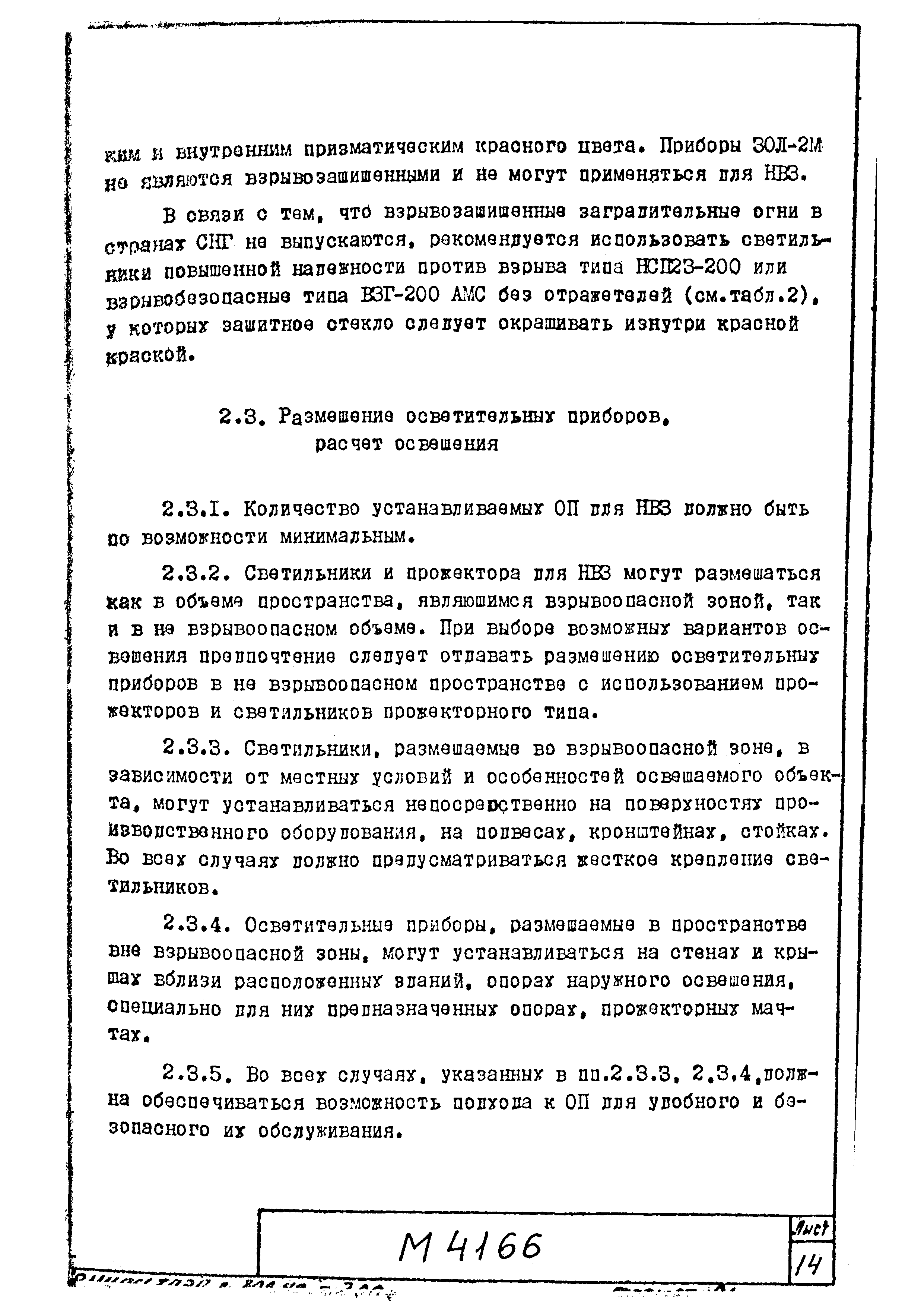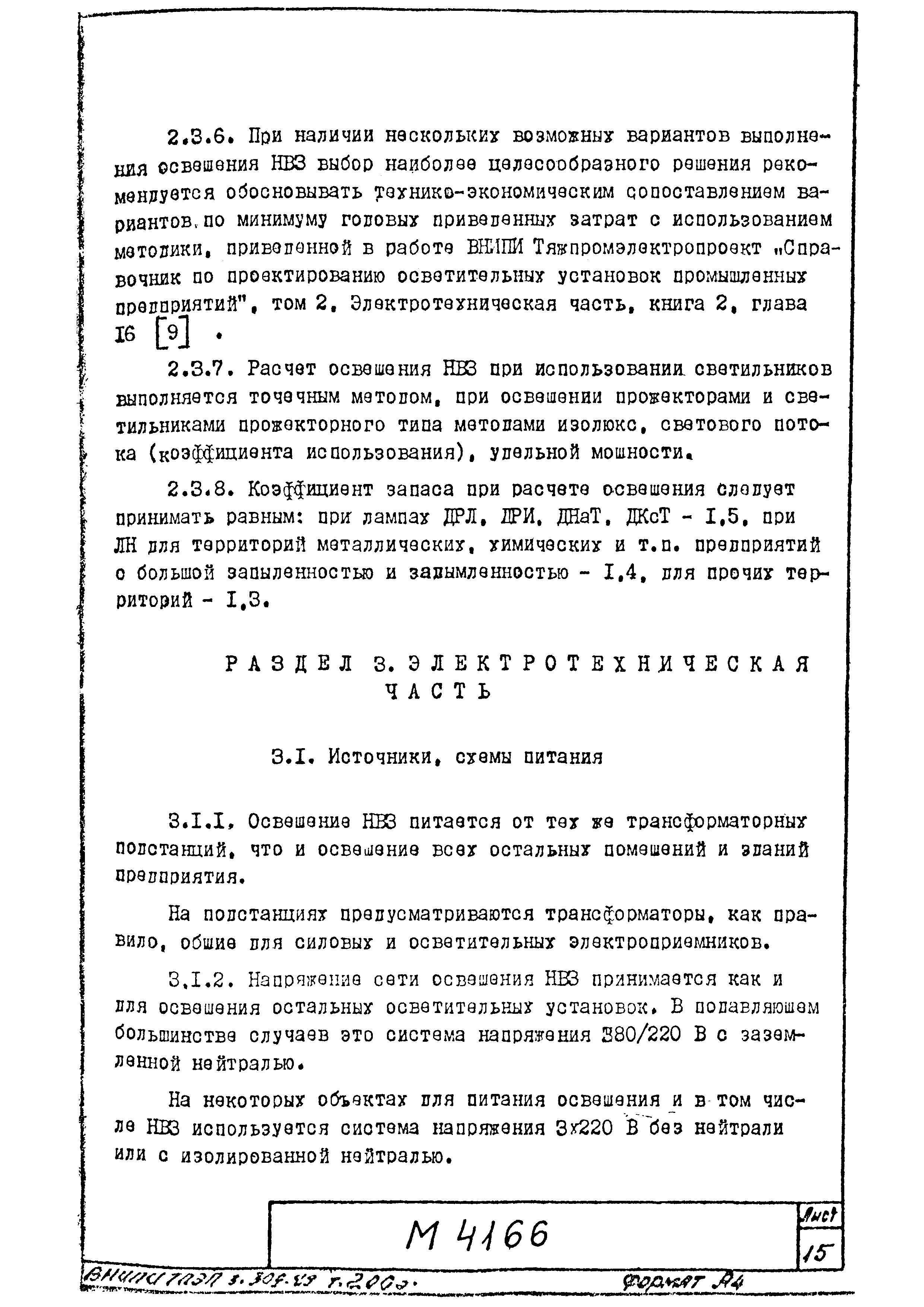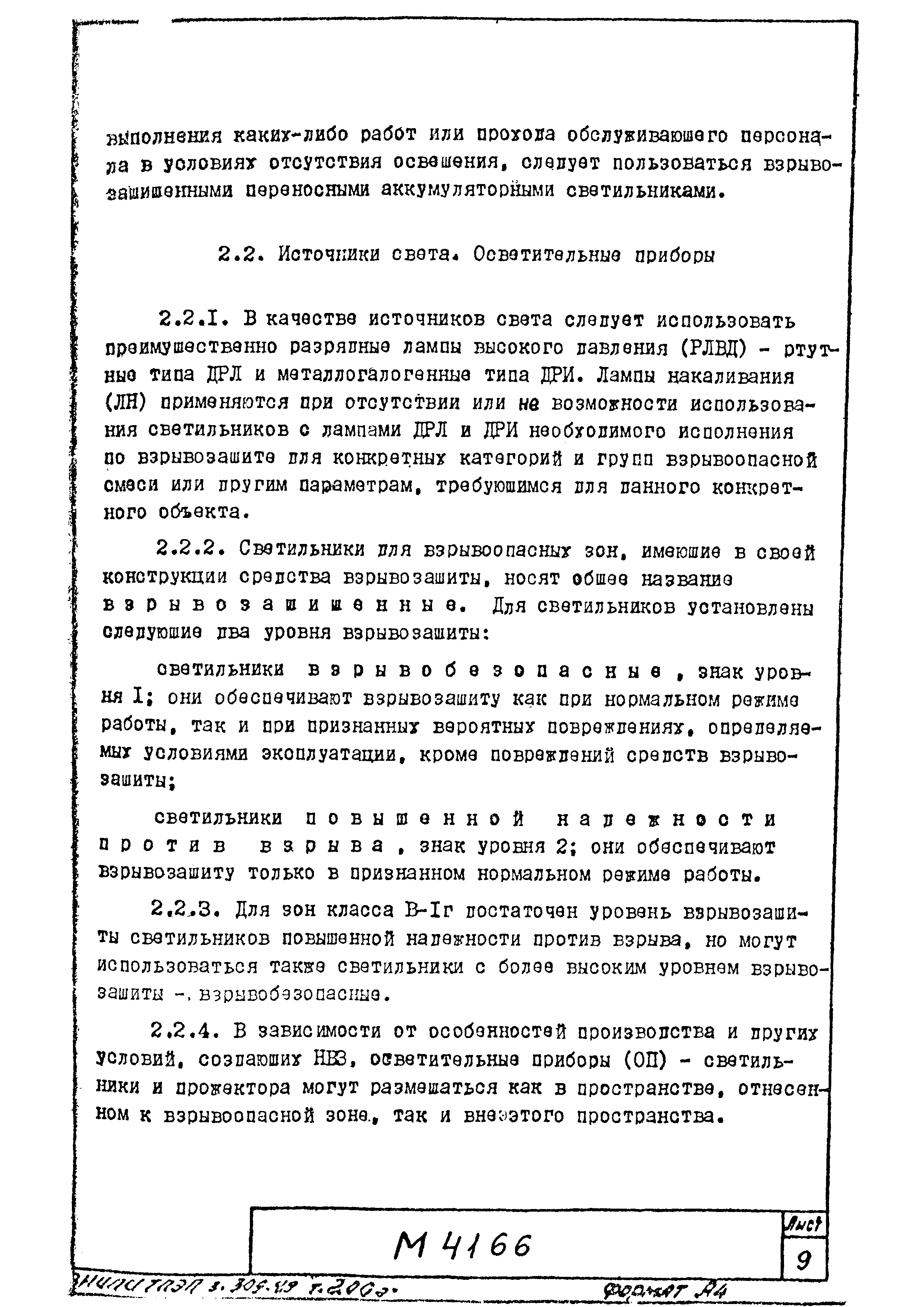 Рекомендации по освещению наружных установок во взрывоопасных зонах. Материалы для проектирования| Статус: | справочные материалы, мп, тпр | | Название рус.: | Рекомендации по освещению наружных установок во взрывоопасных зонах. Материалы для проектирования | | Дата добавления в базу: | 01.01.2021 | | Дата актуализации: | 01.01.2021 | | Область применения: | В работе содержатся указания по проектированию освещения наружных установок со взрывоопасными зонами. Приводятся рекомендации по величинам освещенности, системам и видам освещения, выбору источников света и осветительных приборов, расчету освещения. Рассматриваются вопросы выбора источников и схем питания, управления освещением, защите, расчету и выполнения осветительных сетей. Работа предназначена для проектировщиков осветительных установок промышленных предприятий и может быть полезной для специалистов, работающих в области монтажа и эксплуатации электроустановок во взрывоопасных производствах, а также студентам высших и средних учебных заведений энергетических специальностей | | Оглавление: | Титульный лист Заглавный лист Аннотация Раздел 1. Общие положения 1.1 Область применения 1.2 Характеристике наружных взрывоопасных зон Раздел 2. Светотехническая часть 2.1 Нормы освещенности, системы, виды освещения 2.2 Источники света. Осветительные приборы 2.3 Размещение осветительных приборов, рсчет освещения Раздел 3. Электротехническая часть 3.1 Источники, схемы питания 3.2 Защита сетей 3.3 Управление освещением 3.4 Расчеты сетей 3.5 Выполнение сетей 3.6 Зануление и заземление Принятые сокращения Список литерауры | | Разработан: | ПКИ Тяжпромэлектропроект