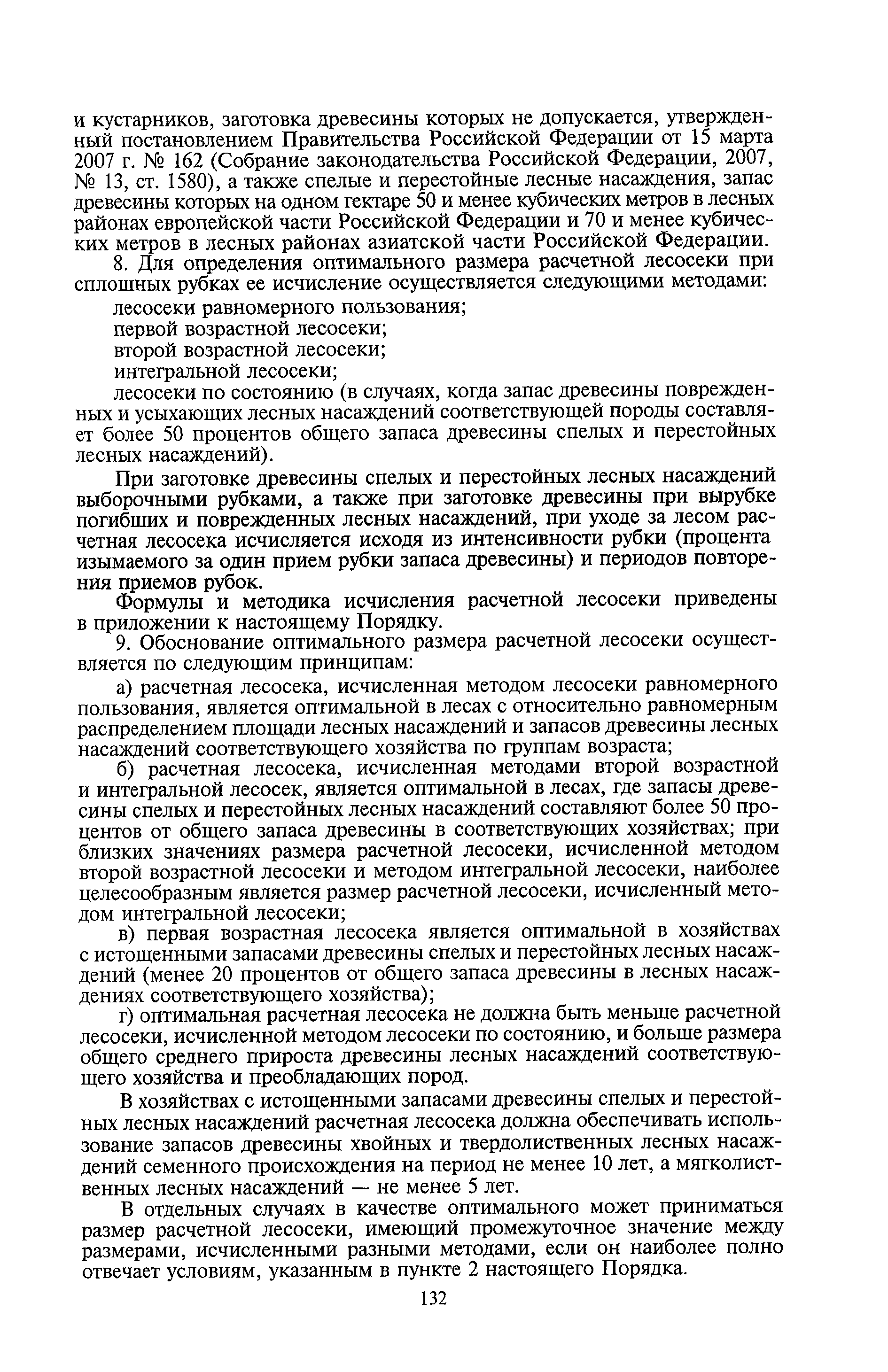 Исчисление и установление расчетной лесосеки осуществляются при разработке и утверждении лесохозяйственных регламентов лесничеств и лесопарков в установленном порядке уполномоченными федеральными органами исполнительной власти, органами государственной власти субъектов Российской Федерации, органами местного самоуправления | | Оглавление: | I. Общие положения II. Исчисление расчетной лесосеки Приложение 1. Для заготовки древесины в спелых и перестойных лесных насаждениях 2. Для заготовки древесины, при вырубке погибших и поврежденных лесных насаждений, уходе за лесом | | Утверждён: | 08.06.2007 Министерство природных ресурсов и экологии Российской Федерации (148)