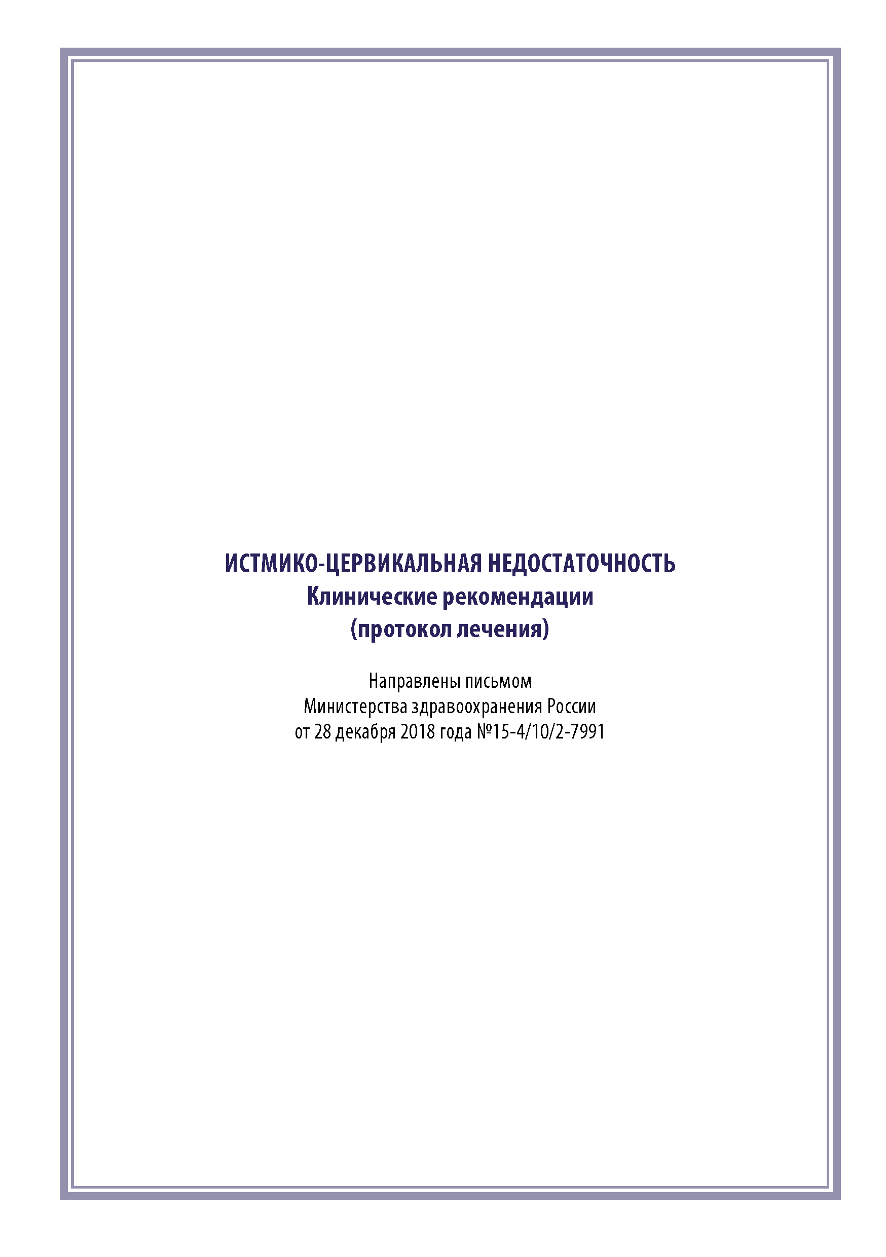 | Название рус.: | Истмико-цервикальная недостаточность. Клинические рекомендации (протокол лечения) |