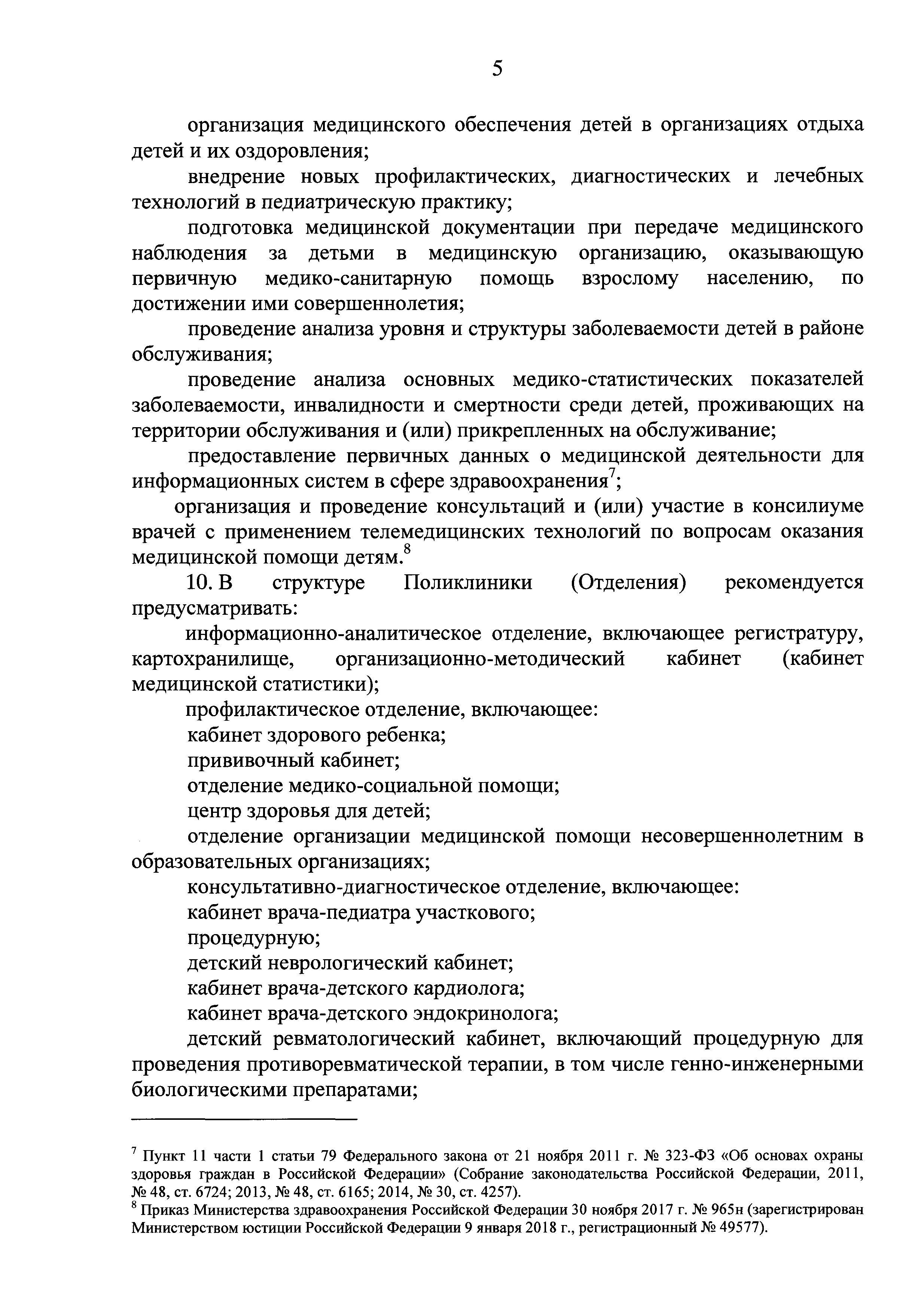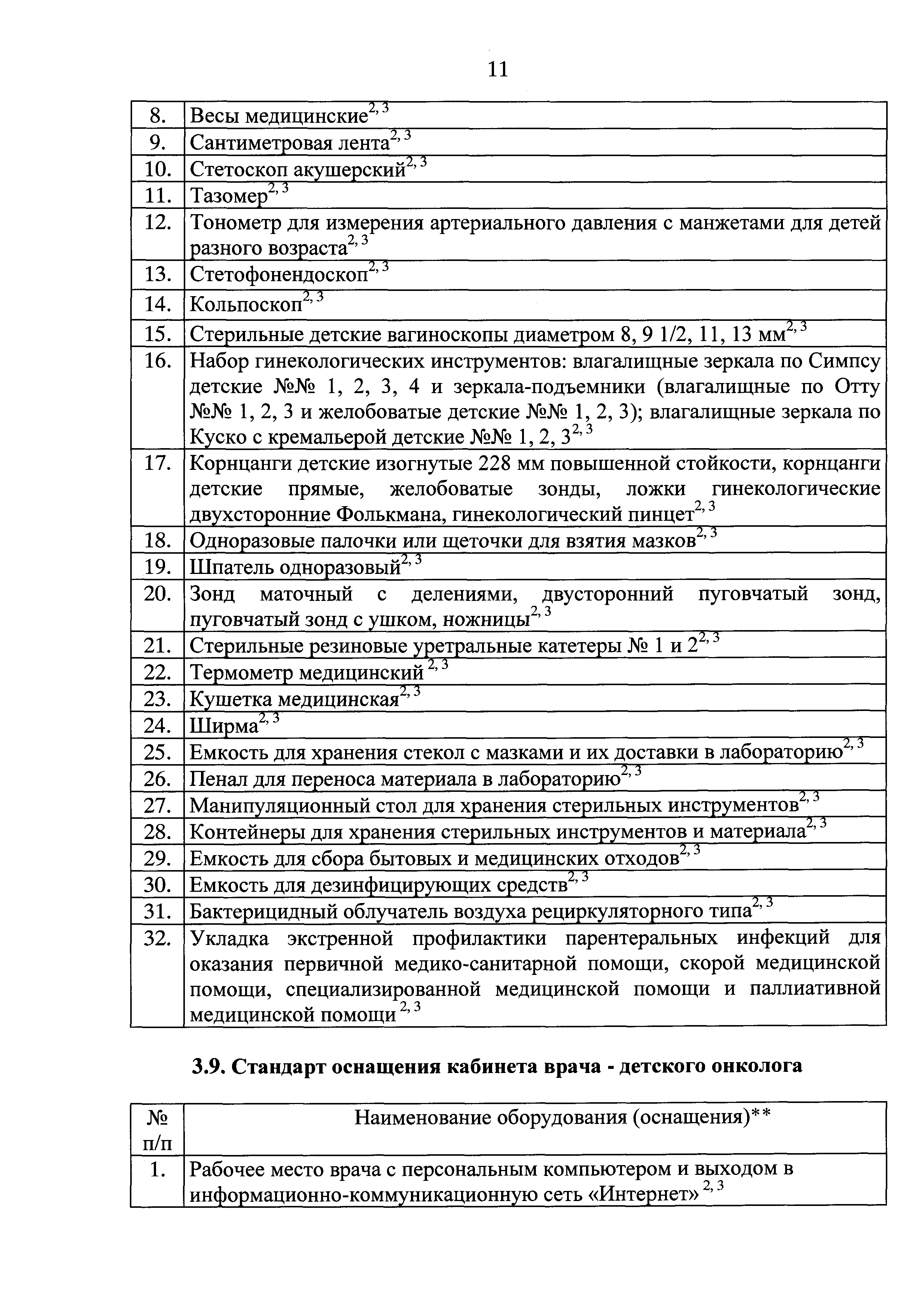 | Оглавление: | Приложение № 1. Правила организации деятельности кабинета врача-педиатра участкового Приложение № 2. Рекомендуемые штатные нормативы кабинета врача-педиатра участкового Приложение № 3. Стандарт оснащения кабинета врача-педиатра участкового Приложение № 4. Правила организации деятельности детской поликлиники (детского поликлинического отделения) Приложение № 5. Рекомендуемые штатные нормативы детской поликлиники (детского поликлинического отделения) (на 10 тыс. детей) Приложение № 6. Стандарт оснащения детской поликлиники (детского поликлинического отделения) Приложение № 7. Правила организации деятельности детского консультативно-диагностического центра Приложение № 8. Рекомендуемые штатные нормативы детского консультативно-диагностического центра (на 100 тыс. детей) Приложение № 9. Правила организации деятельности дневного стационара детской поликлиники (детского поликлинического отделения) Приложение № 10. Рекомендуемые штатные нормативы дневного стационара детской поликлиники (детского поликлинического отделения) (из расчета 30 коек для обеспечения двусменной работы) Приложение № 11. Стандарт оснащения дневного стационара детской поликлиники (детского поликлинического отделения) |
