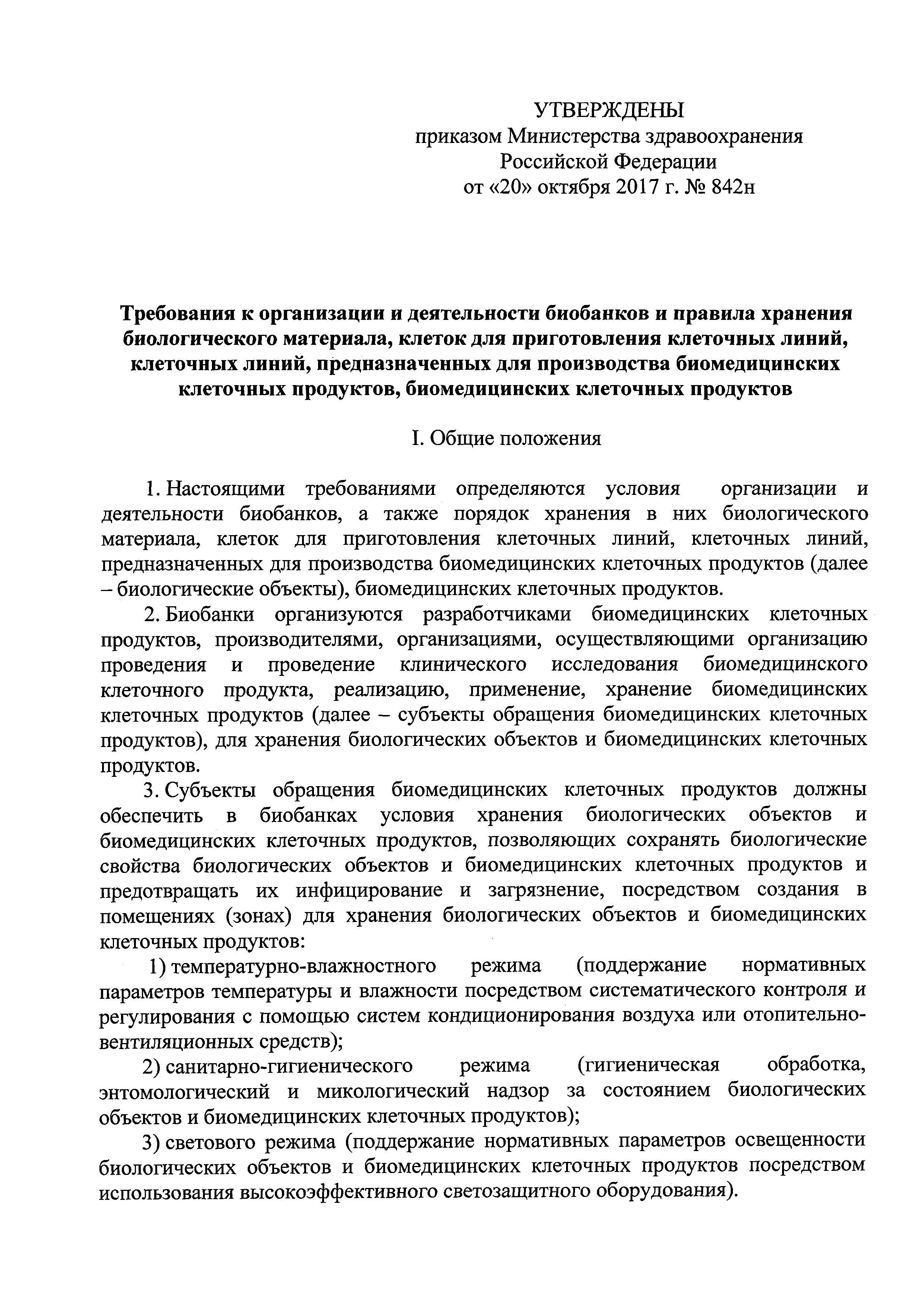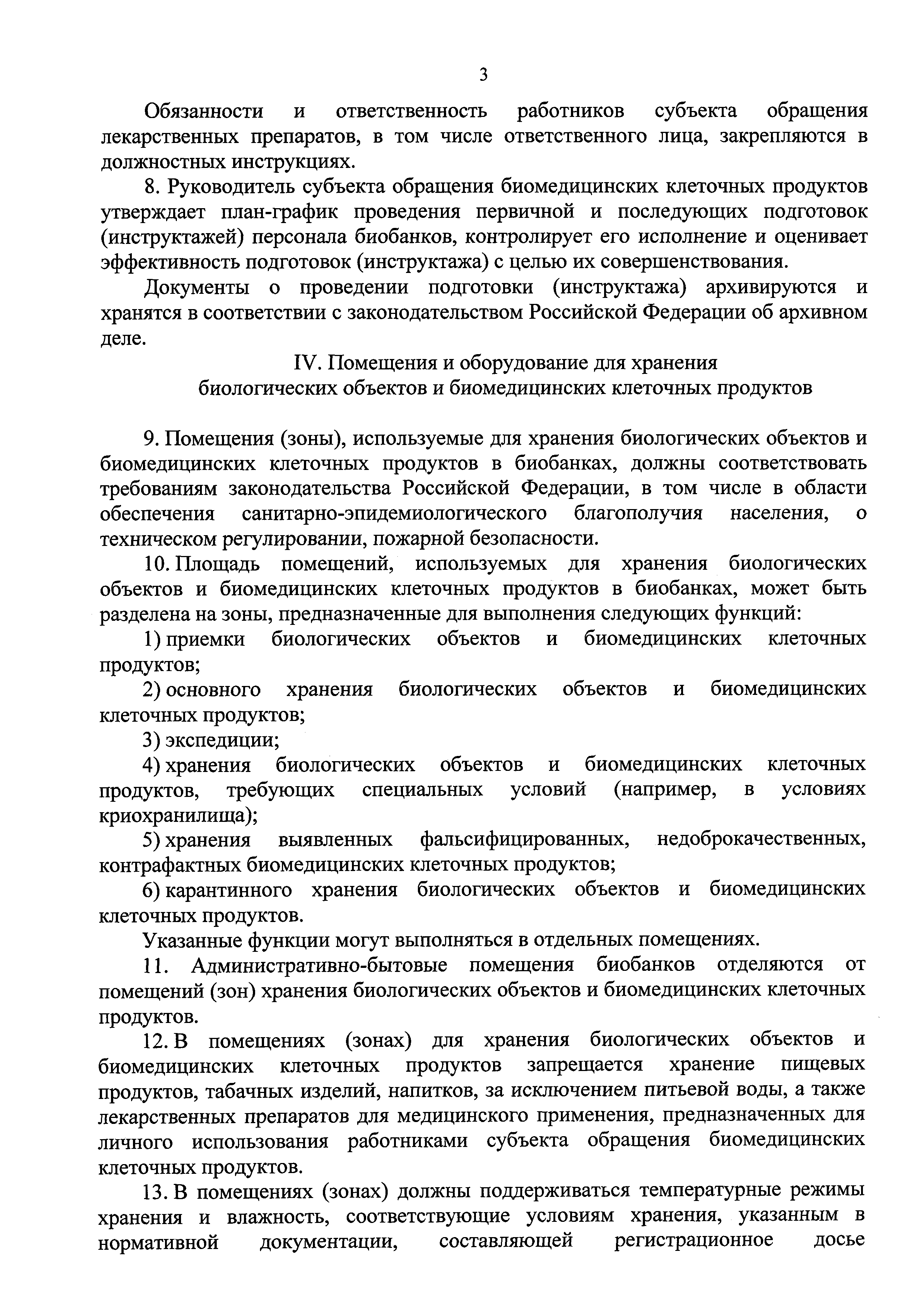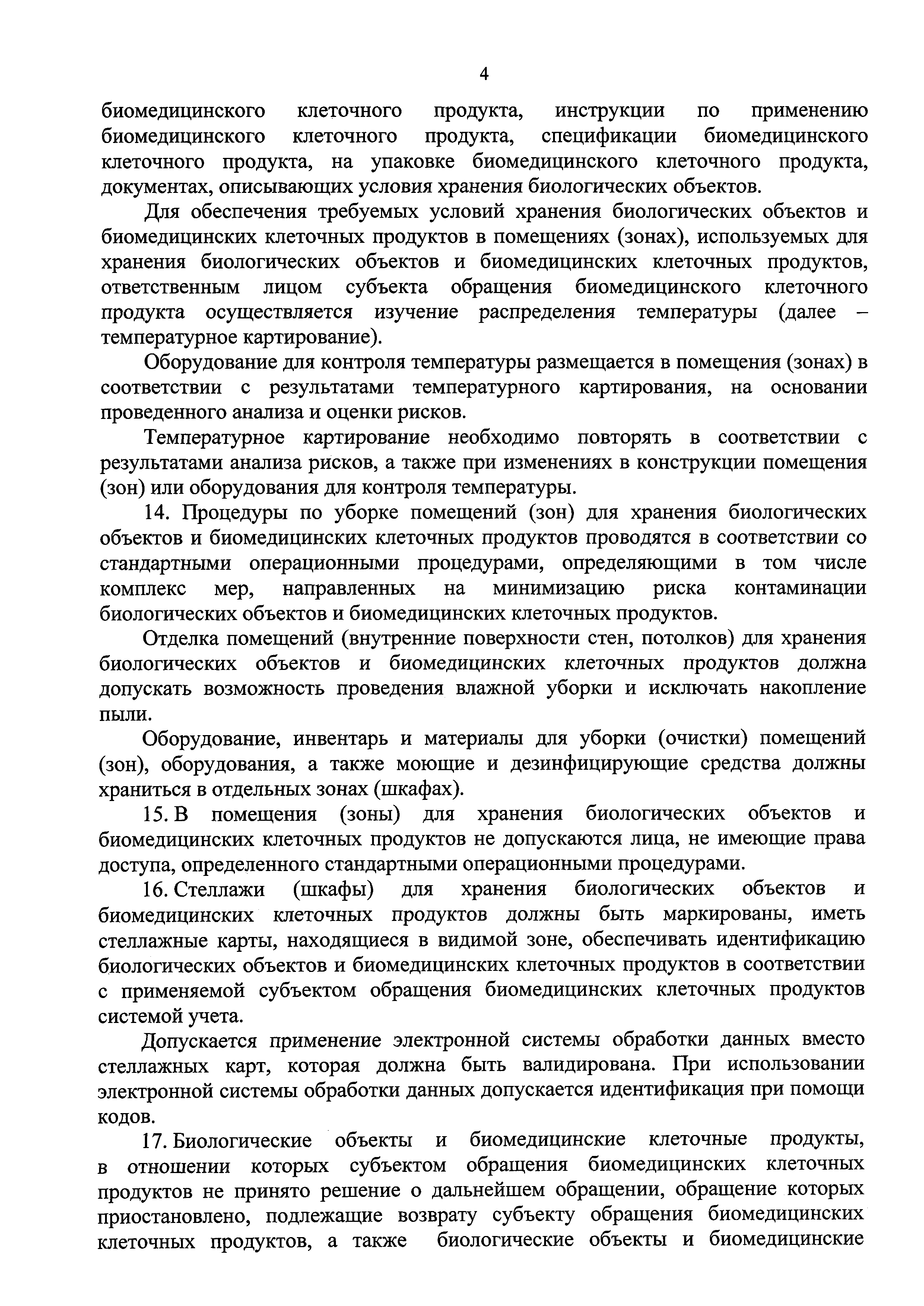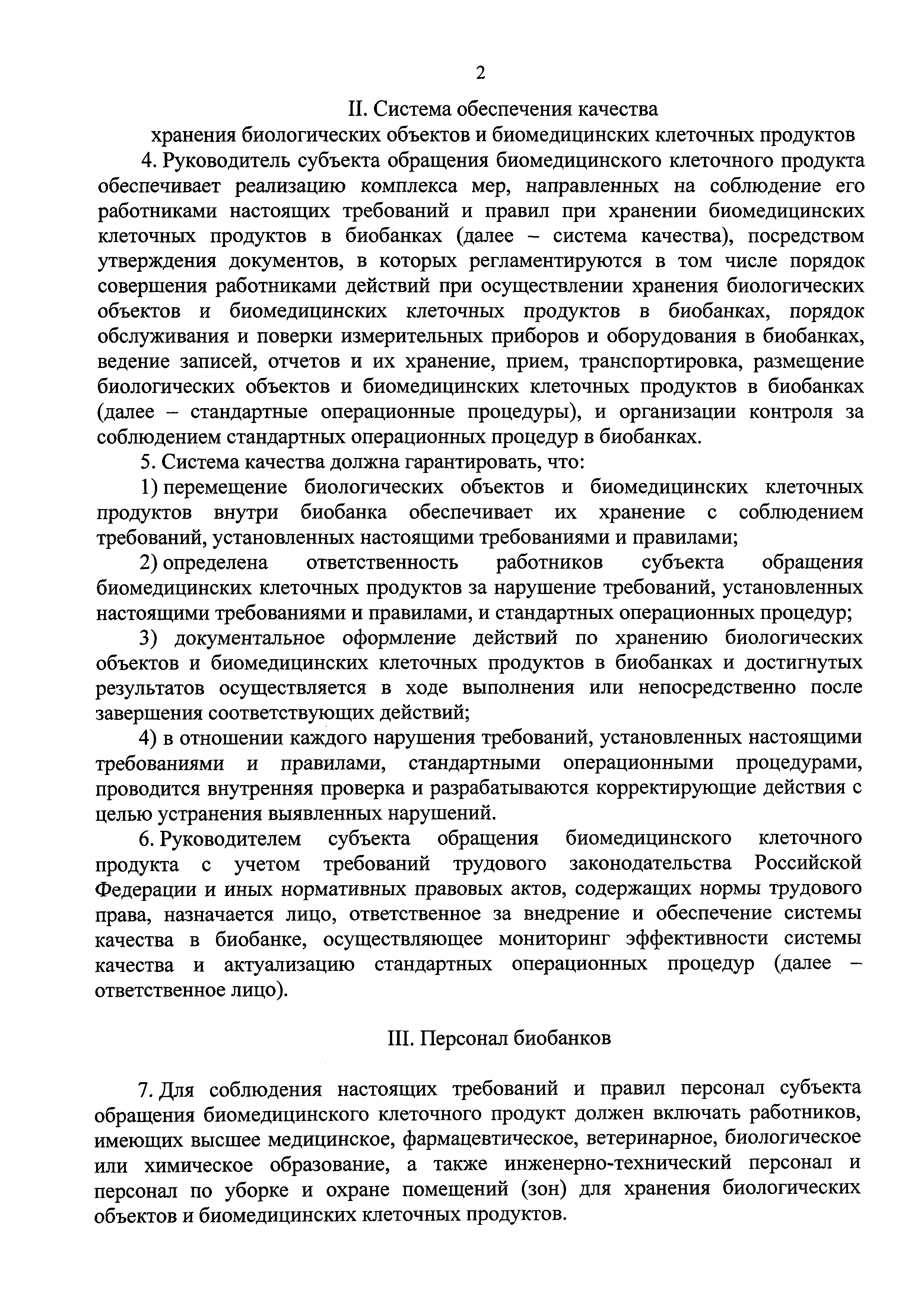 | Оглавление: | I. Общие положения II. Система обеспечения качества хранения биологических объектов и биомедицинских клеточных продуктов III. Персонал биобанков IV. Помещения и оборудование для хранения биологических объектов и биомедицинских клеточных продуктов V. Документы по хранению биологических объектов и биомедицинских клеточных продуктов в биобанках и действия субъекта обращения биомедицинских клеточных продуктов по хранению биологических объектов и биомедицинских клеточных продуктов в биобанках |