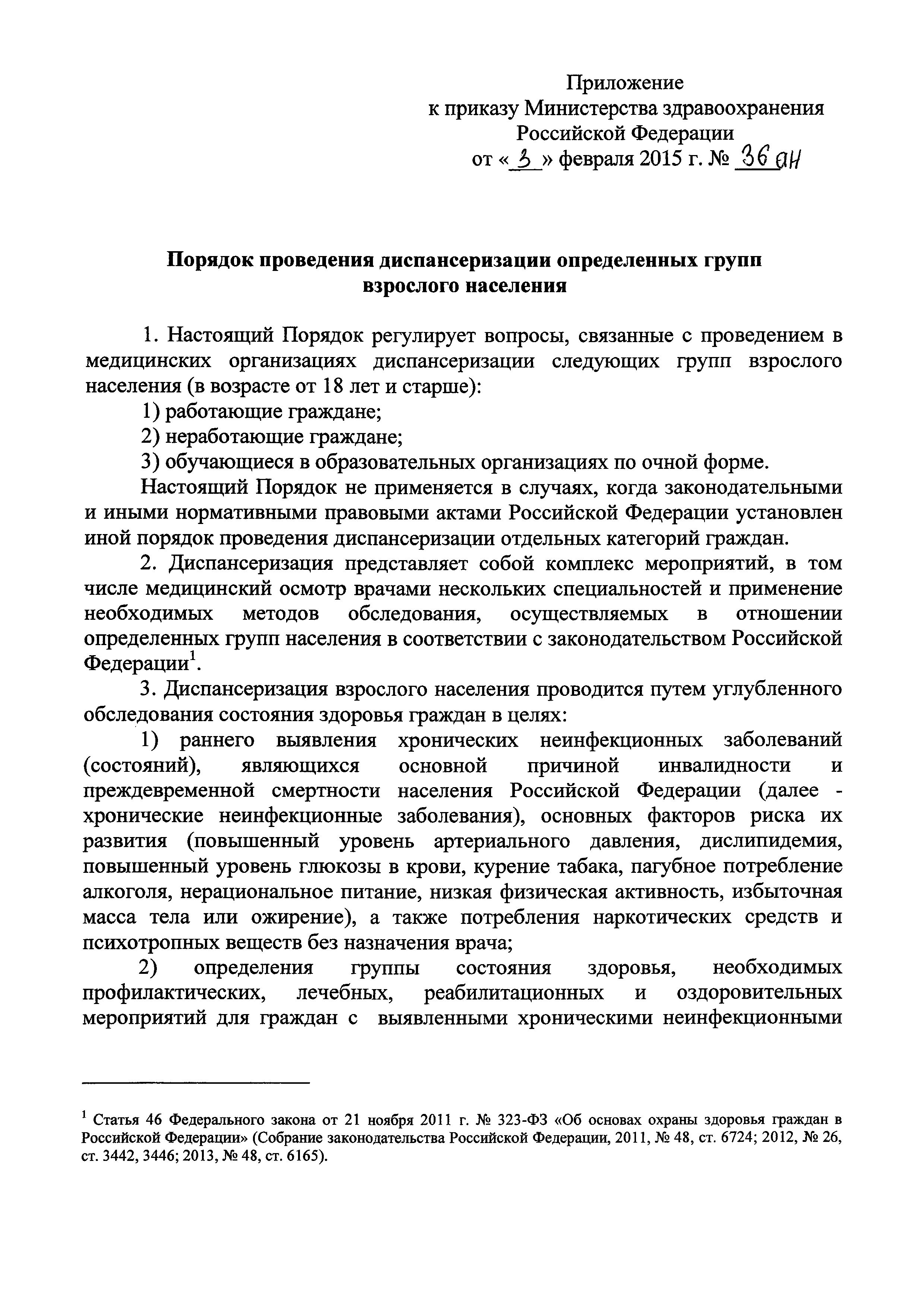 | Название рус.: | Порядок проведения диспансеризации определенных групп взрослого населения |