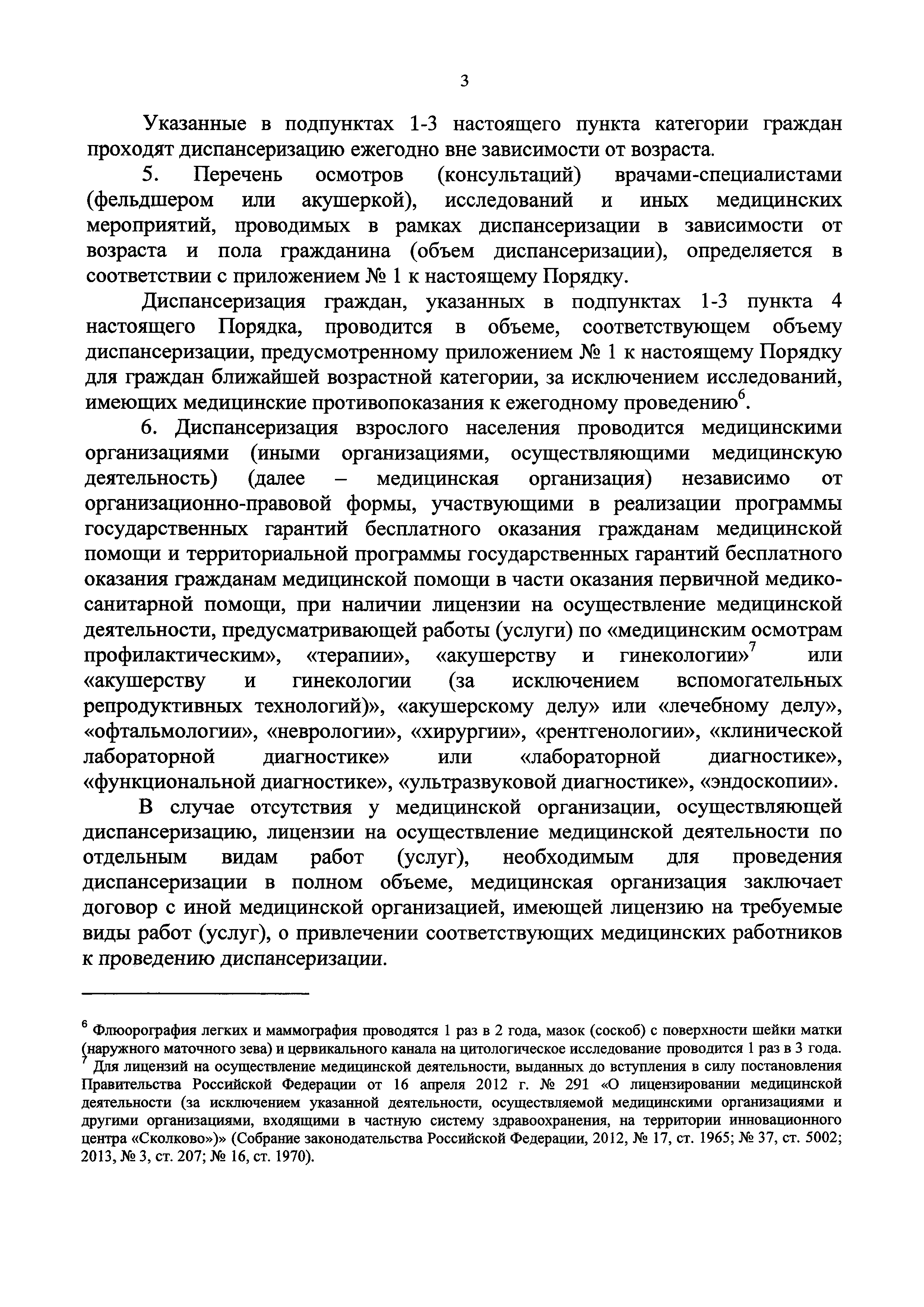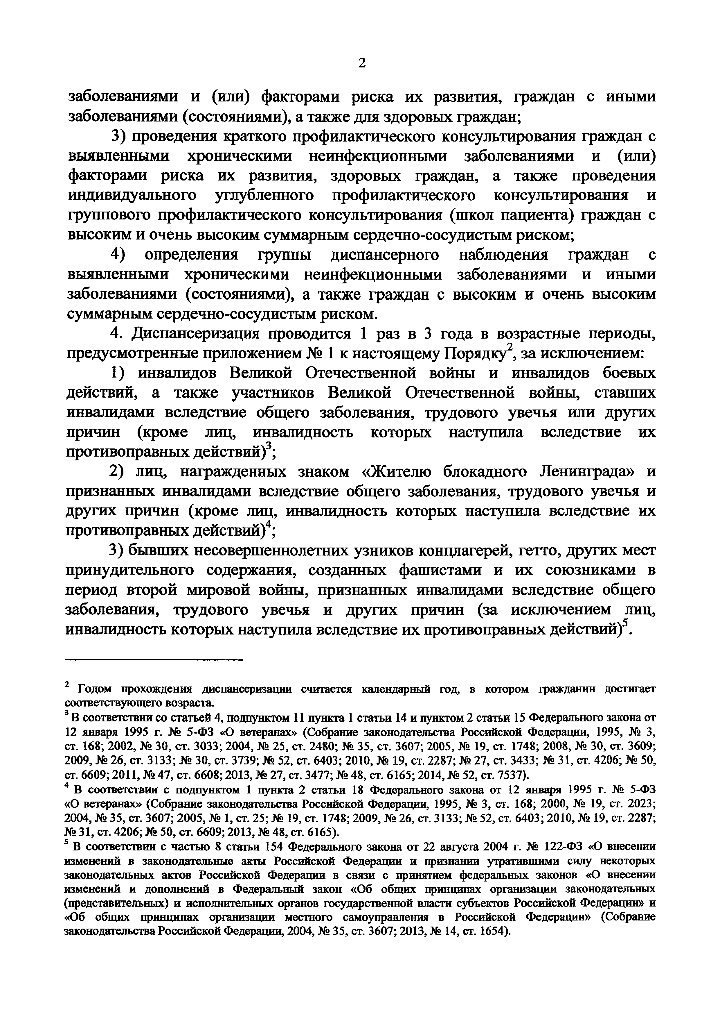 Порядок не применяется в случаях, когда законодательными и иными нормативными правовыми актами Российской Федерации установлен иной порядок проведения диспансеризации отдельных категорий граждан |