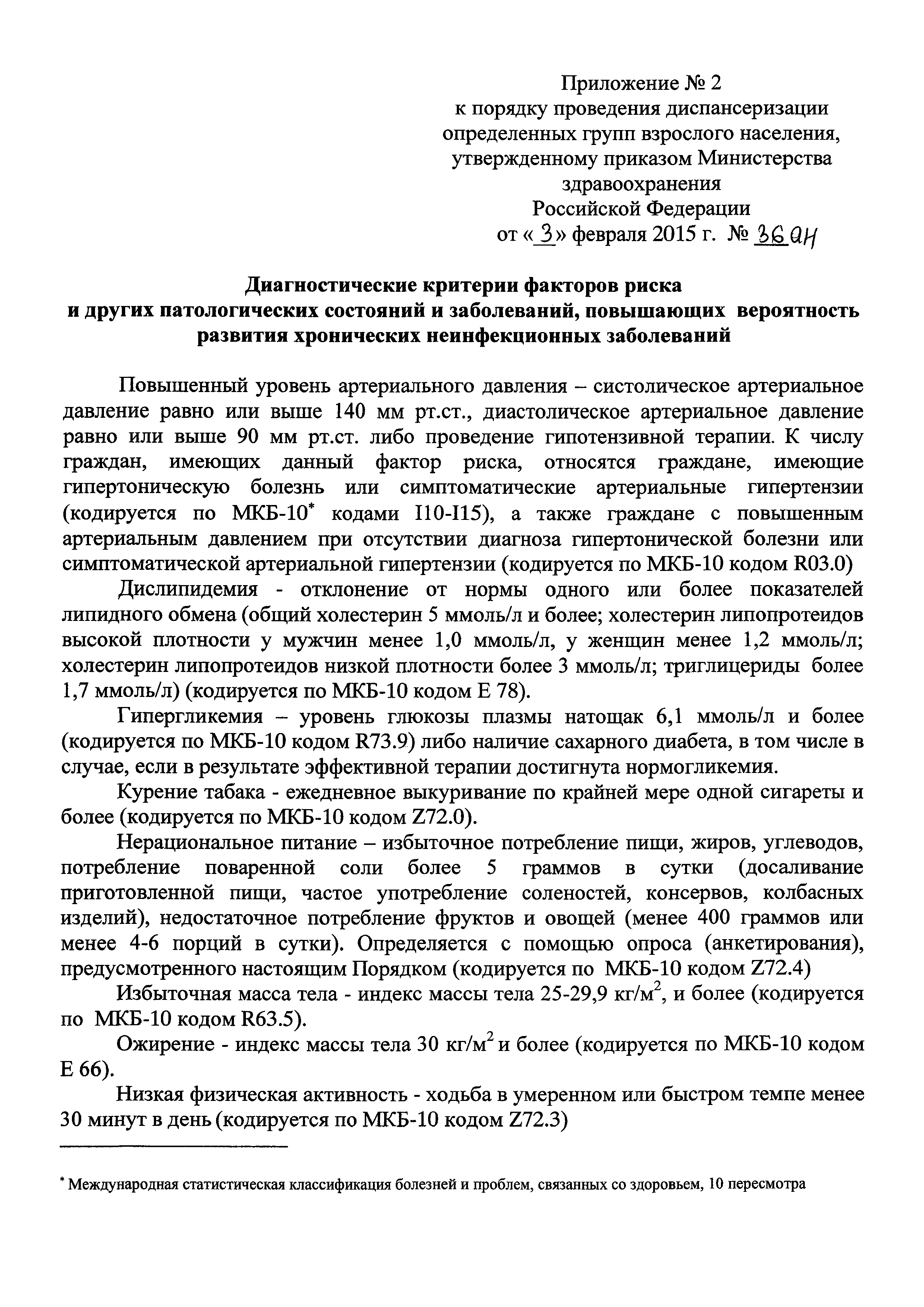 | Оглавление: | Приложение № 1. Объем диспансеризации Приложение № 2. Диагностические критерии факторов риска и других патологических состояний и заболеваний, повышающих вероятность развития хронических неинфекционных заболеваний |