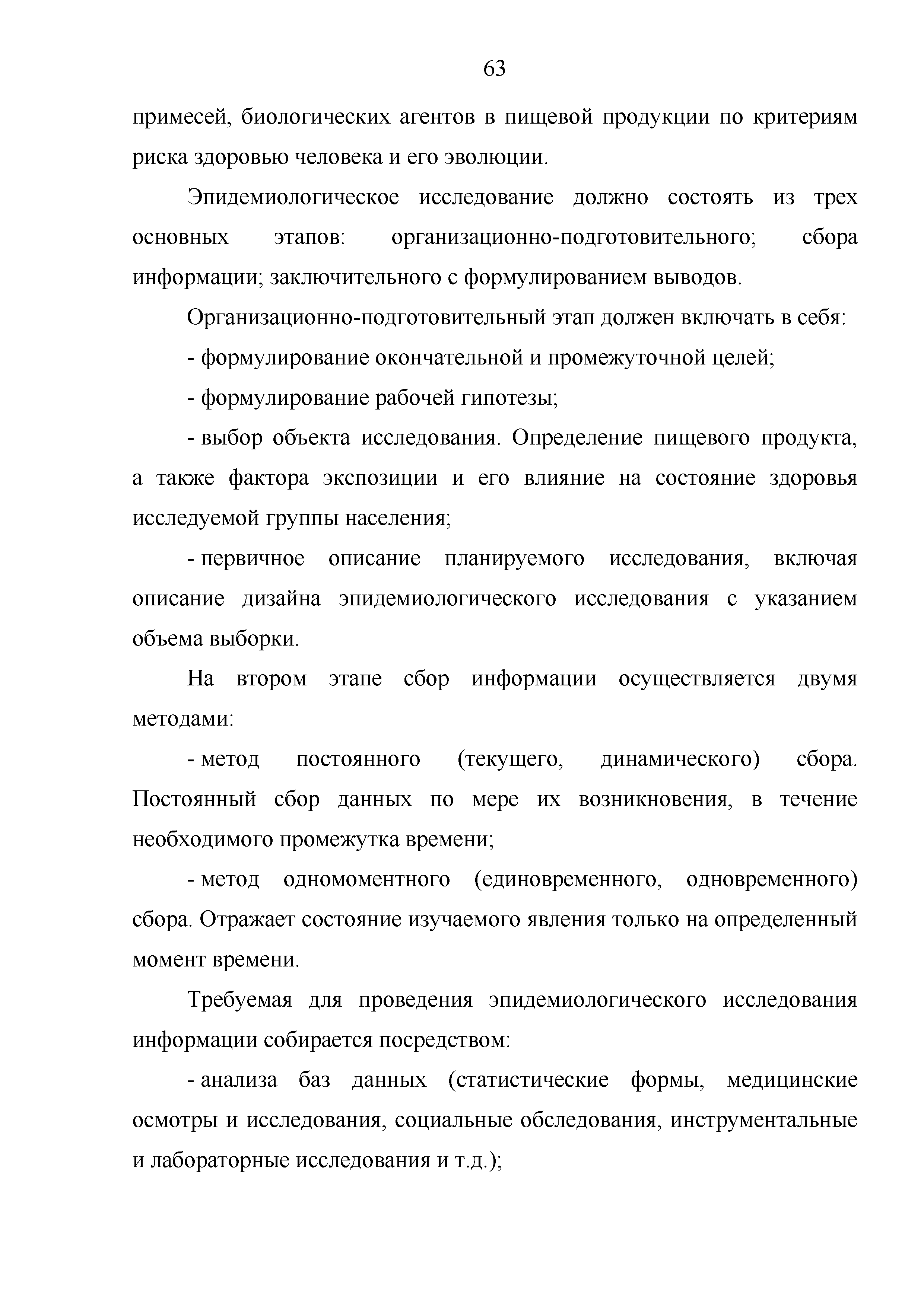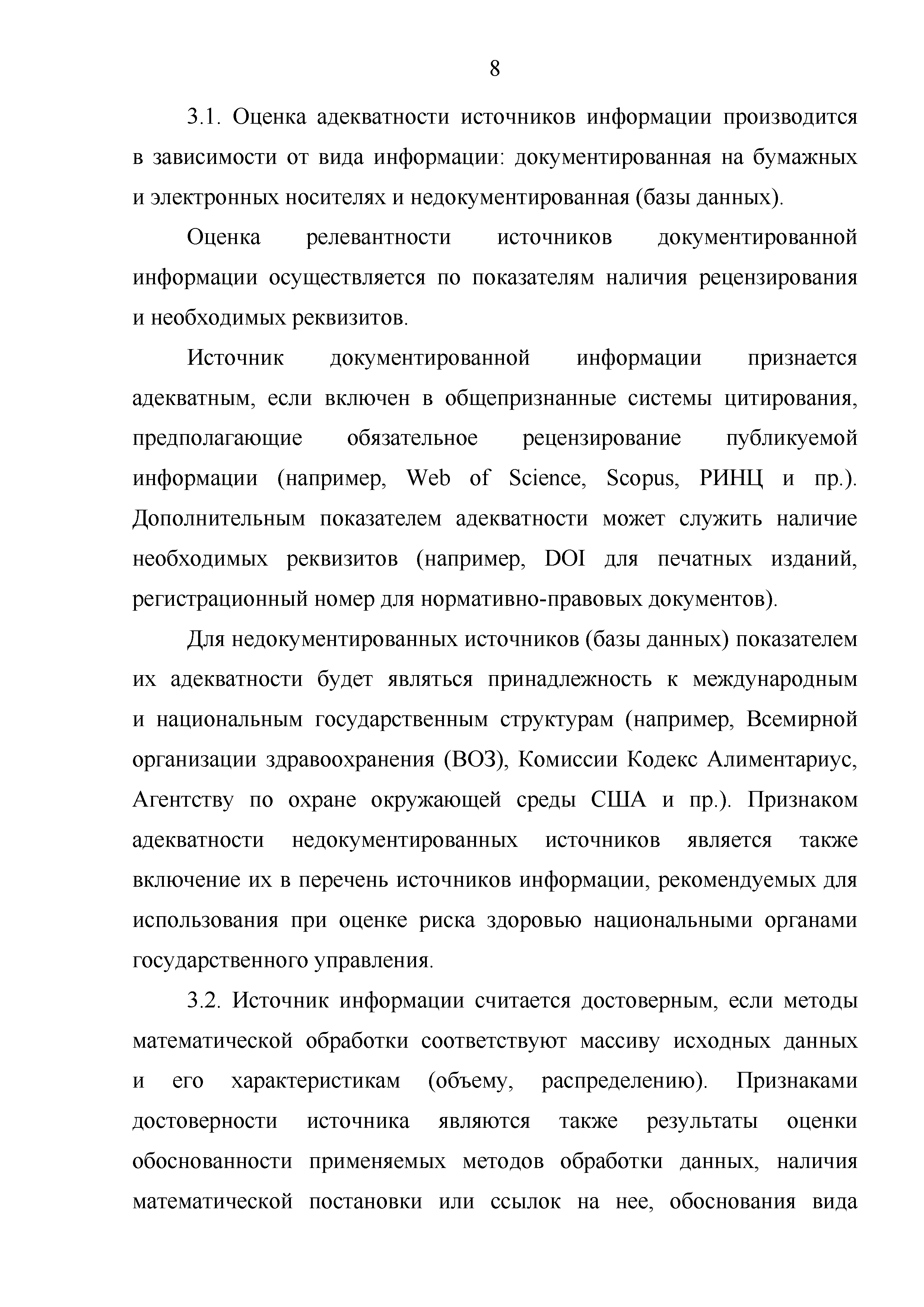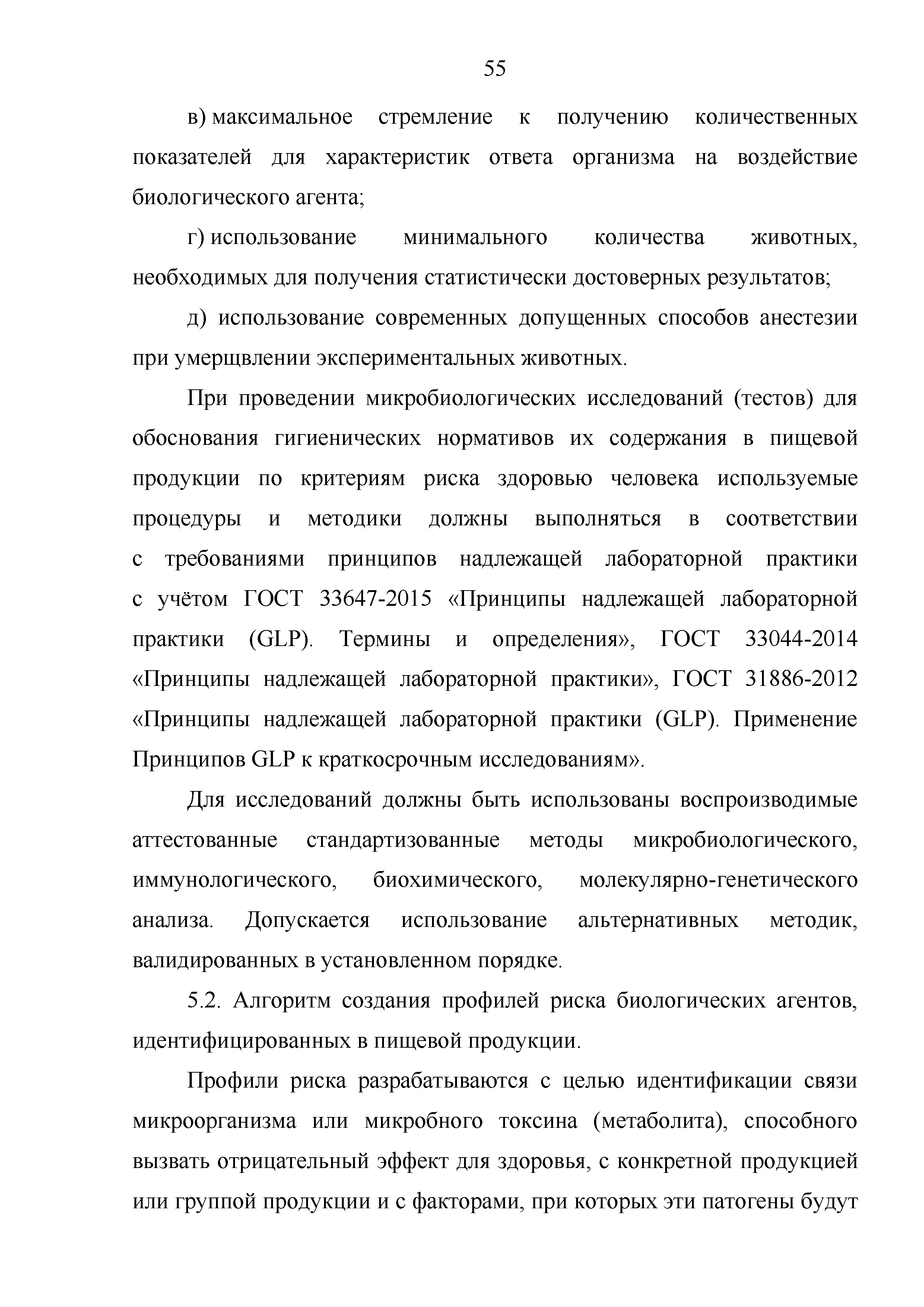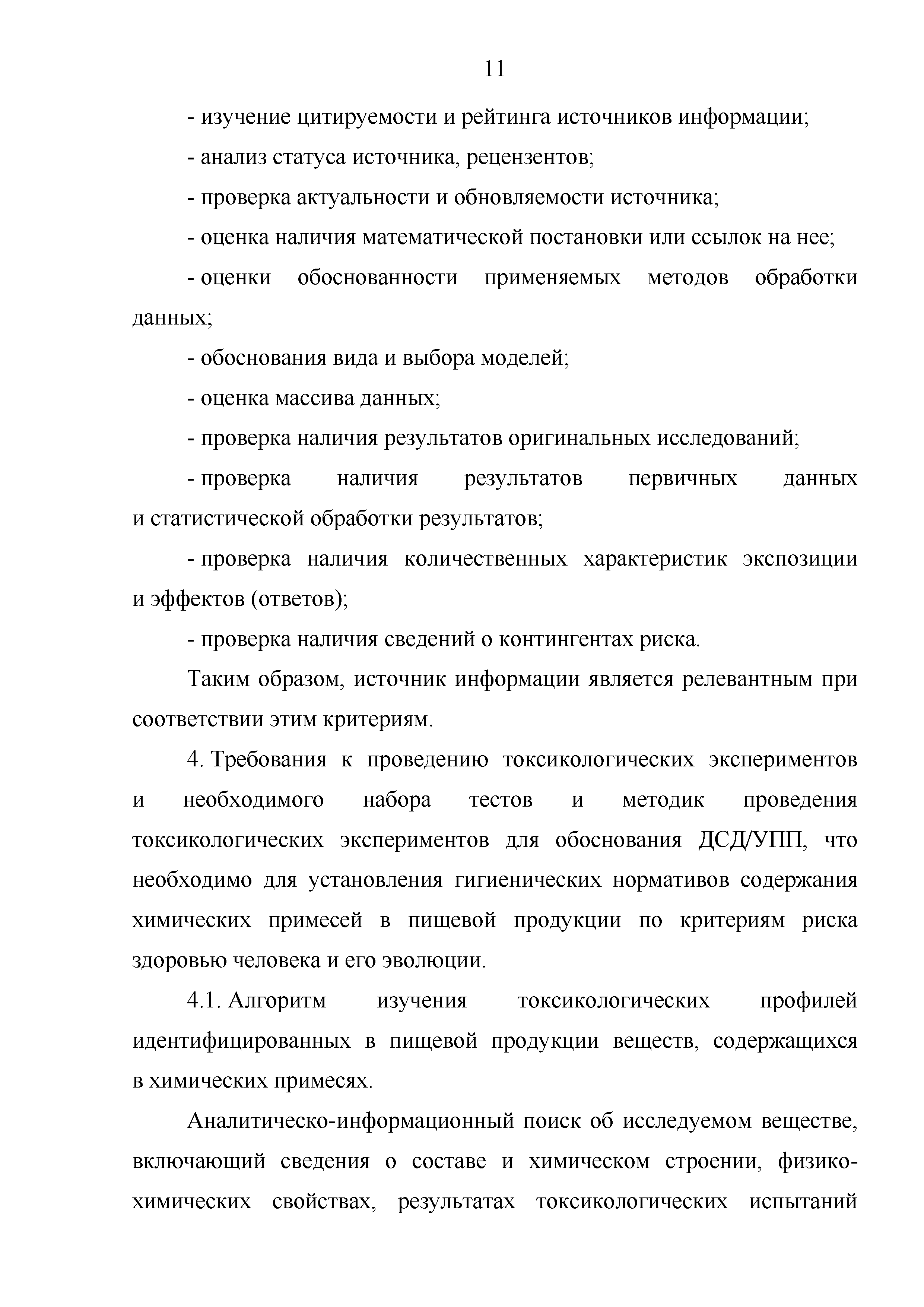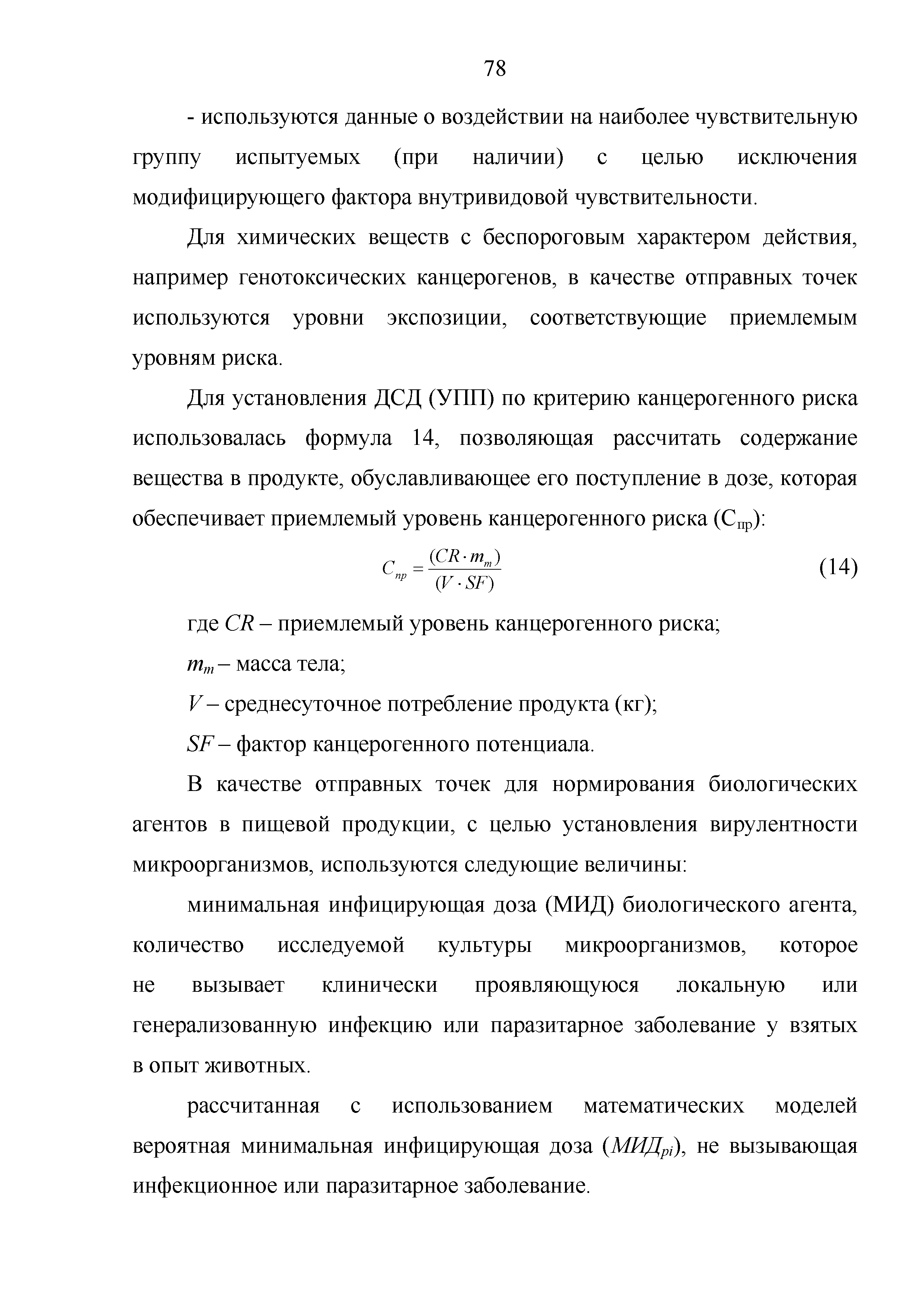 Методические указания по установлению и обоснованию гигиенических нормативов содержания химических примесей, биологических агентов в пищевой продукции по критериям риска для здоровья человека| Статус: | справочные материалы, мп, тпр | | Название рус.: | Методические указания по установлению и обоснованию гигиенических нормативов содержания химических примесей, биологических агентов в пищевой продукции по критериям риска для здоровья человека | | Дата добавления в базу: | 01.01.2021 | | Дата актуализации: | 01.01.2021 | | Область применения: | Документ разработан в целях унификации исходной информации, способов ее обработки и методического обеспечения процедуры разработки новых и планового пересмотра существующих гигиенических нормативов содержания химических примесей, биологических агентов в пищевой продукции по критериям риска для здоровья человека, включенных в Единые санитарно-эпидемиологические и гигиенические требования к продукции (товарам), подлежащей санитарно-эпидемиологическому надзору (контролю), и технические регламенты Таможенного союза (Евразийского экономического союза). | | Оглавление: | 2 Общие положения 3 Выбор релевантной информации для установления гигиенических нормативов содержания химических примесей, биологических агентов в пищевой продукции по критериям риска. 4 Требования к проведению токсикологических экспериментов и необходимого набора тестов и методик проведения токсикологических экспериментов для обоснования ДСД/УПП 5 Требования к проведению экспериментов и необходимого набора методик проведения экспериментов для обоснования гигиенических нормативов содержания биологических агентов в пищевой продукции по критериям риска здоровью человека 6 Требования к проведению эпидемиологических исследований для обоснования гигиенических нормативов содержания химических примесей биологических агентов в пищевой продукции по критериям риска здоровью человека и его эволюции 7 Установление максимально допустимых уровней содержания химических примесей и биологических агентов в пищевой продукции. 8 Верификация ДСД/УПП, химических веществ, поступающих с пищевой продукцией, и уровней экспозиции биологических агентов, соответствующих приемлемому риску, с использованием методологии оценки рисков здоровью населения при воздействии химических и биологических факторов для определения показателей безопасности продукции (товаров) 9 Определение объема потребления пищевой продукции для расчета МДУ 10 Определение максимально допустимых уровней (МДУ) химических примесей и биологических агентов в пищевой продукции. | | Утверждён: | 26.02.2020 Евразийская экономическая комиссия (4)