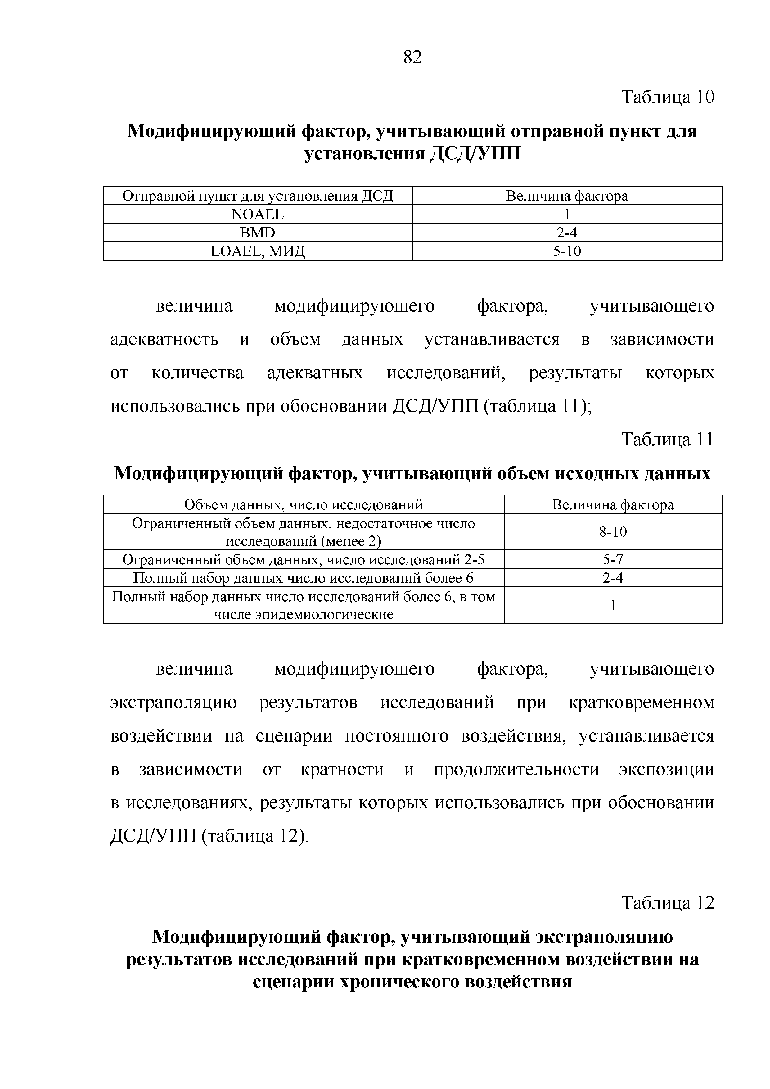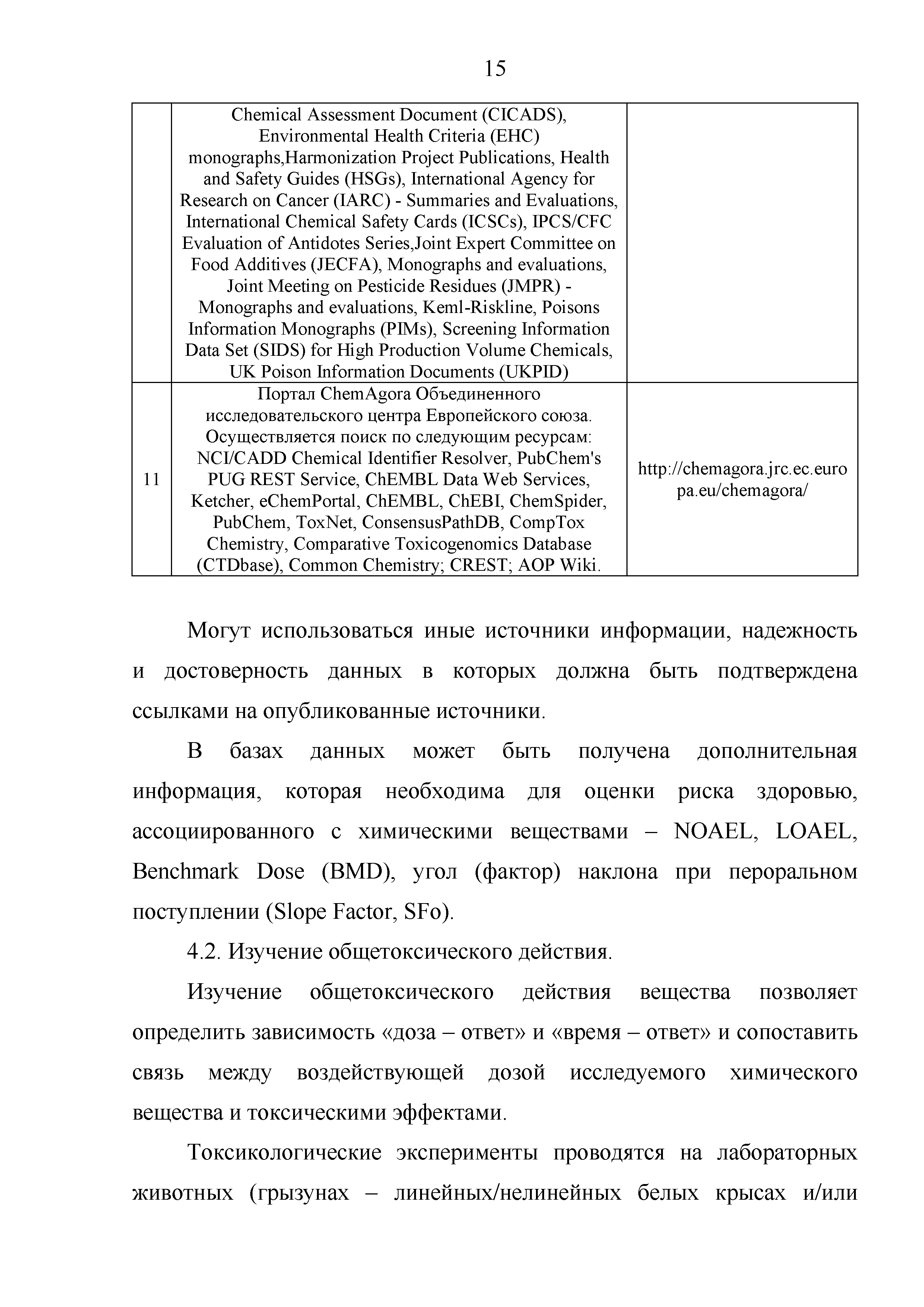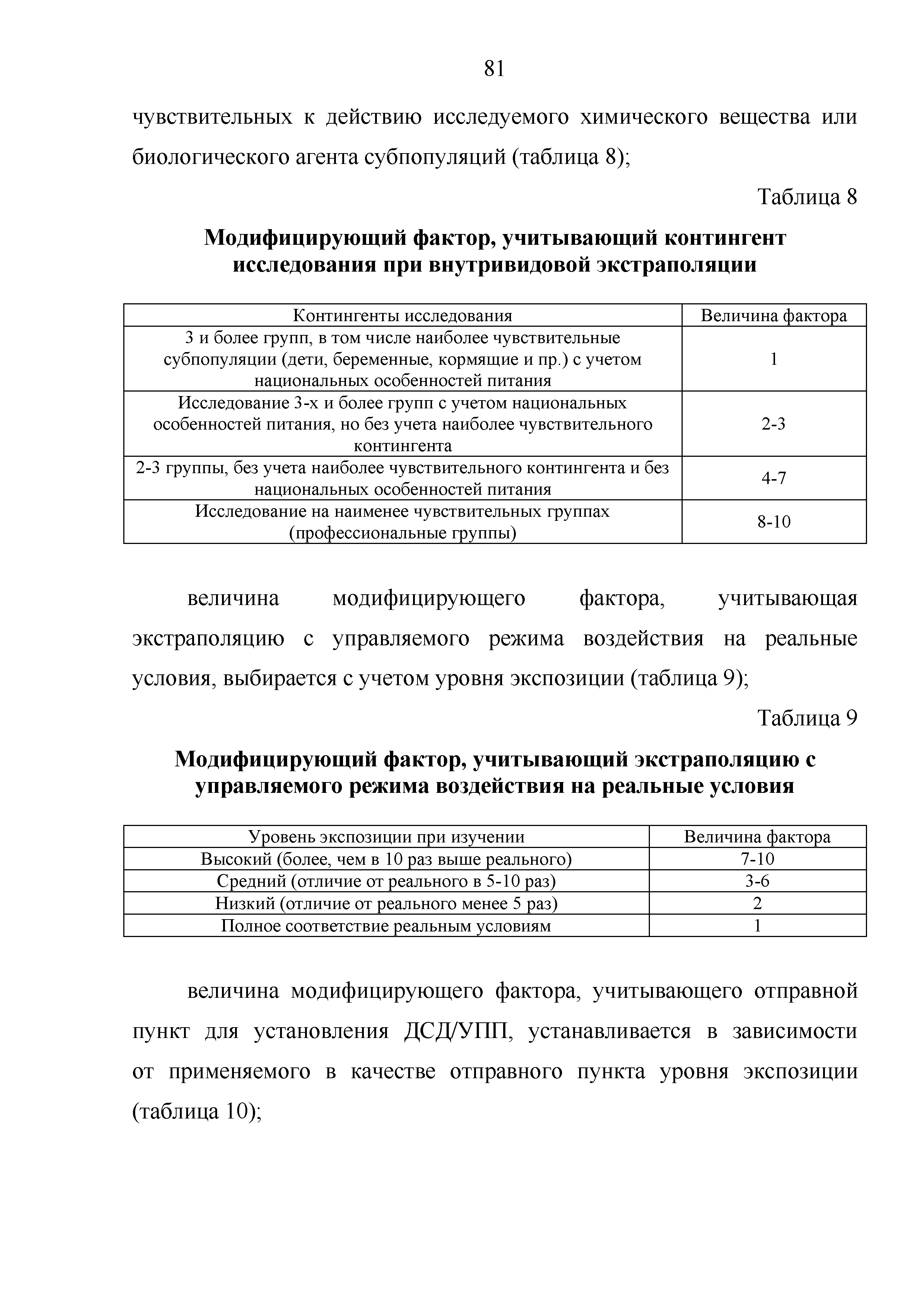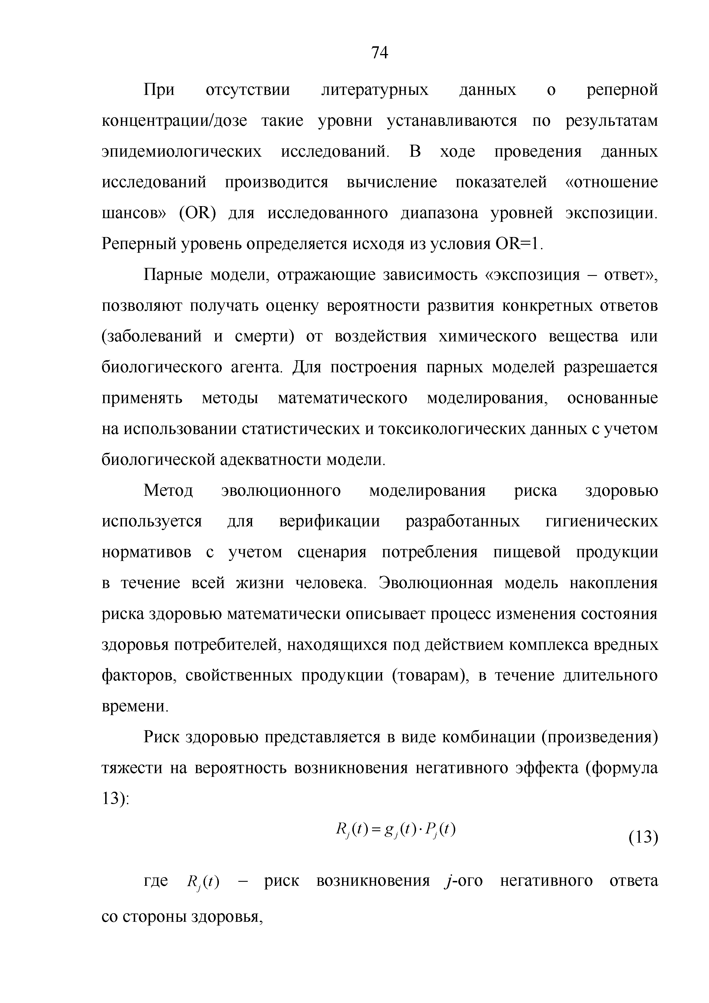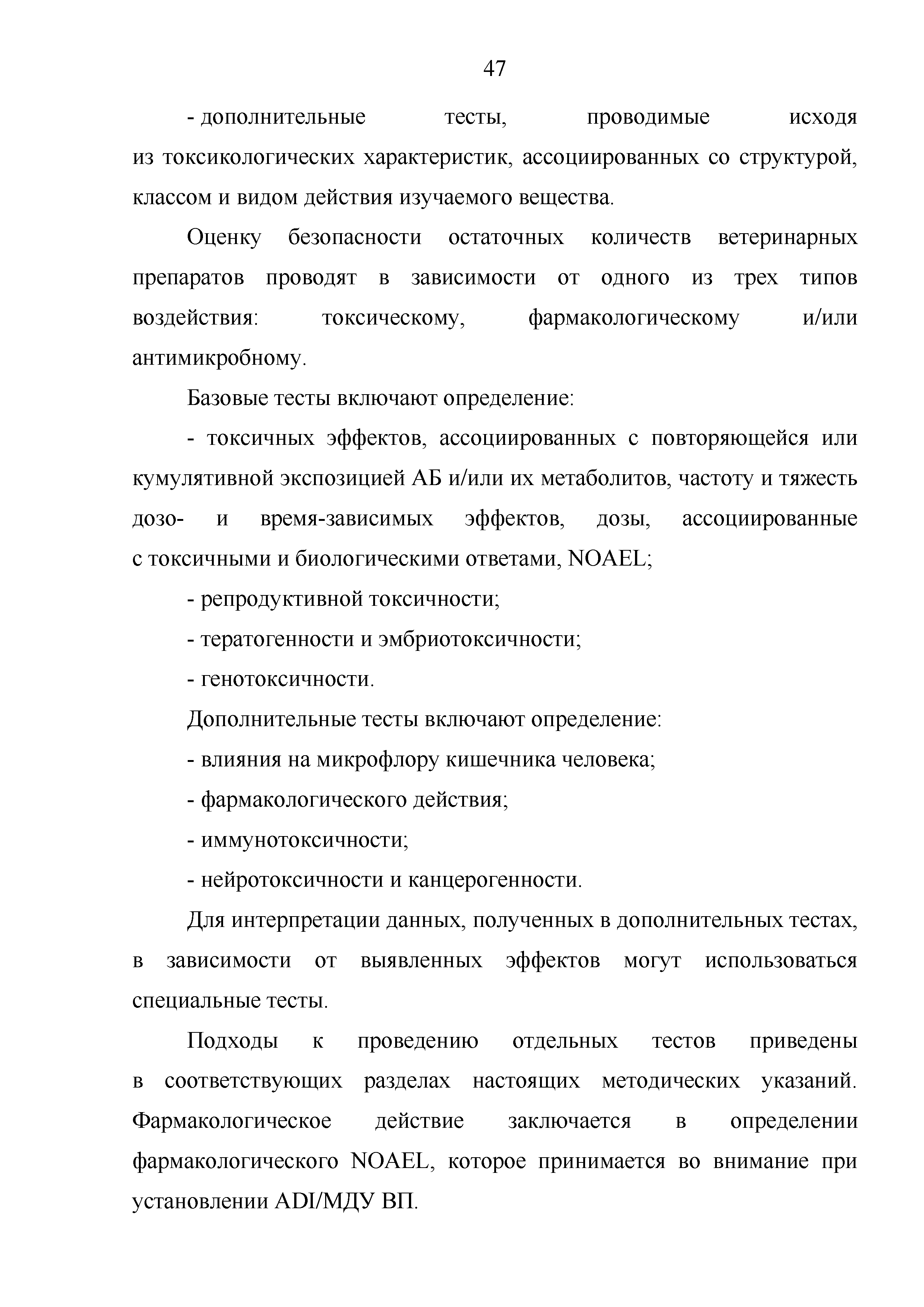 Методические указания по установлению и обоснованию гигиенических нормативов содержания химических примесей, биологических агентов в пищевой продукции по критериям риска для здоровья человека| Статус: | справочные материалы, мп, тпр | | Название рус.: | Методические указания по установлению и обоснованию гигиенических нормативов содержания химических примесей, биологических агентов в пищевой продукции по критериям риска для здоровья человека | | Дата добавления в базу: | 01.01.2021 | | Дата актуализации: | 01.01.2021 | | Область применения: | Документ разработан в целях унификации исходной информации, способов ее обработки и методического обеспечения процедуры разработки новых и планового пересмотра существующих гигиенических нормативов содержания химических примесей, биологических агентов в пищевой продукции по критериям риска для здоровья человека, включенных в Единые санитарно-эпидемиологические и гигиенические требования к продукции (товарам), подлежащей санитарно-эпидемиологическому надзору (контролю), и технические регламенты Таможенного союза (Евразийского экономического союза). | | Оглавление: | 2 Общие положения 3 Выбор релевантной информации для установления гигиенических нормативов содержания химических примесей, биологических агентов в пищевой продукции по критериям риска. 4 Требования к проведению токсикологических экспериментов и необходимого набора тестов и методик проведения токсикологических экспериментов для обоснования ДСД/УПП 5 Требования к проведению экспериментов и необходимого набора методик проведения экспериментов для обоснования гигиенических нормативов содержания биологических агентов в пищевой продукции по критериям риска здоровью человека 6 Требования к проведению эпидемиологических исследований для обоснования гигиенических нормативов содержания химических примесей биологических агентов в пищевой продукции по критериям риска здоровью человека и его эволюции 7 Установление максимально допустимых уровней содержания химических примесей и биологических агентов в пищевой продукции. 8 Верификация ДСД/УПП, химических веществ, поступающих с пищевой продукцией, и уровней экспозиции биологических агентов, соответствующих приемлемому риску, с использованием методологии оценки рисков здоровью населения при воздействии химических и биологических факторов для определения показателей безопасности продукции (товаров) 9 Определение объема потребления пищевой продукции для расчета МДУ 10 Определение максимально допустимых уровней (МДУ) химических примесей и биологических агентов в пищевой продукции. | | Утверждён: | 26.02.2020 Евразийская экономическая комиссия (4)