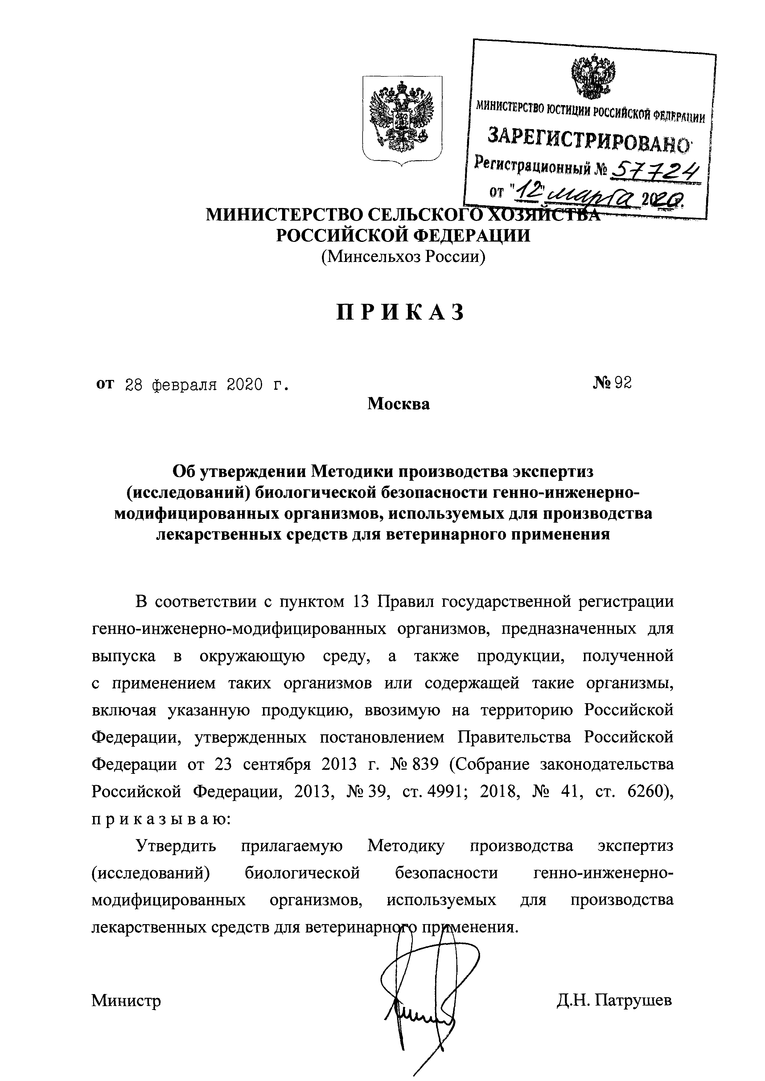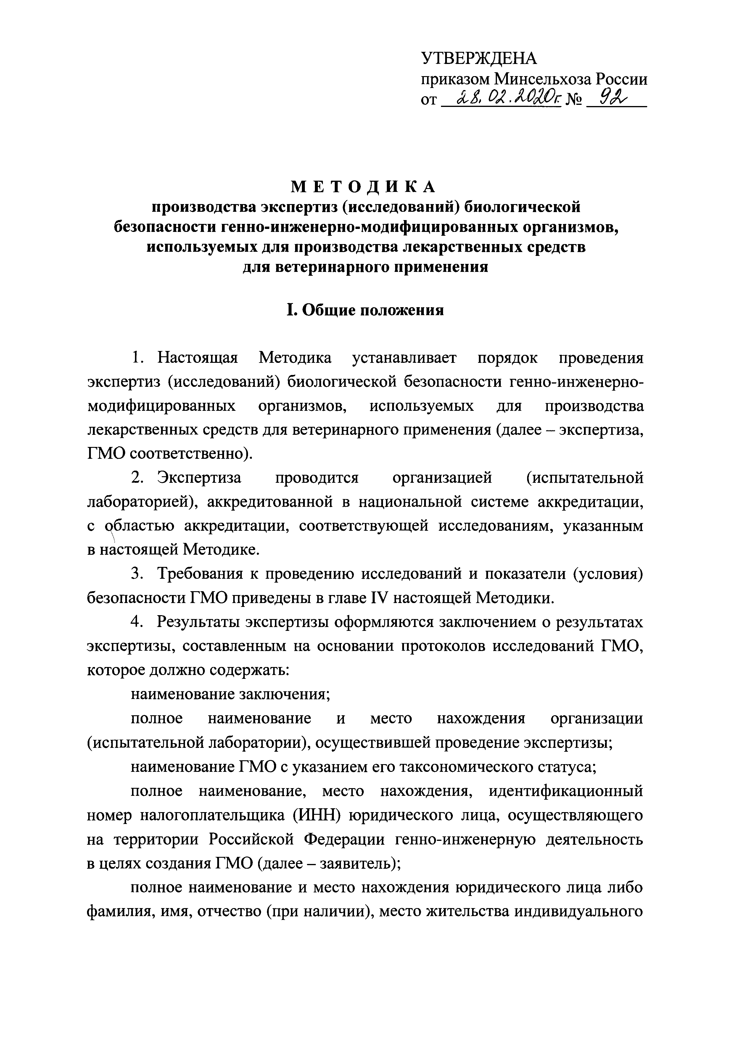 Методика производства экспертиз (исследований) биологической безопасности генно-инженерно-модифицированных организмов, используемых для производства лекарственных средств для ветеринарного применения| Статус: | действует | | Название рус.: | Методика производства экспертиз (исследований) биологической безопасности генно-инженерно-модифицированных организмов, используемых для производства лекарственных средств для ветеринарного применения | | Дата добавления в базу: | 01.01.2021 | | Дата актуализации: | 01.01.2021 | | Дата введения: | 24.03.2020 | | Оглавление: | I. Общие положения II. Экспертиза ГМО, используемых для производства лекарственных средств для ветеринарного применения, содержащих жизнеспособный ГМО III. Экспертиза ГМО, используемых для производства лекарственных средств для ветеринарного применения, содержащих нежизнеспособный ГМО IV. Требования к проведению исследований и показатели (условия) безопасности ГМО | | Утверждён: | 28.02.2020 Министерство сельского хозяйства Российской Федерации (92)