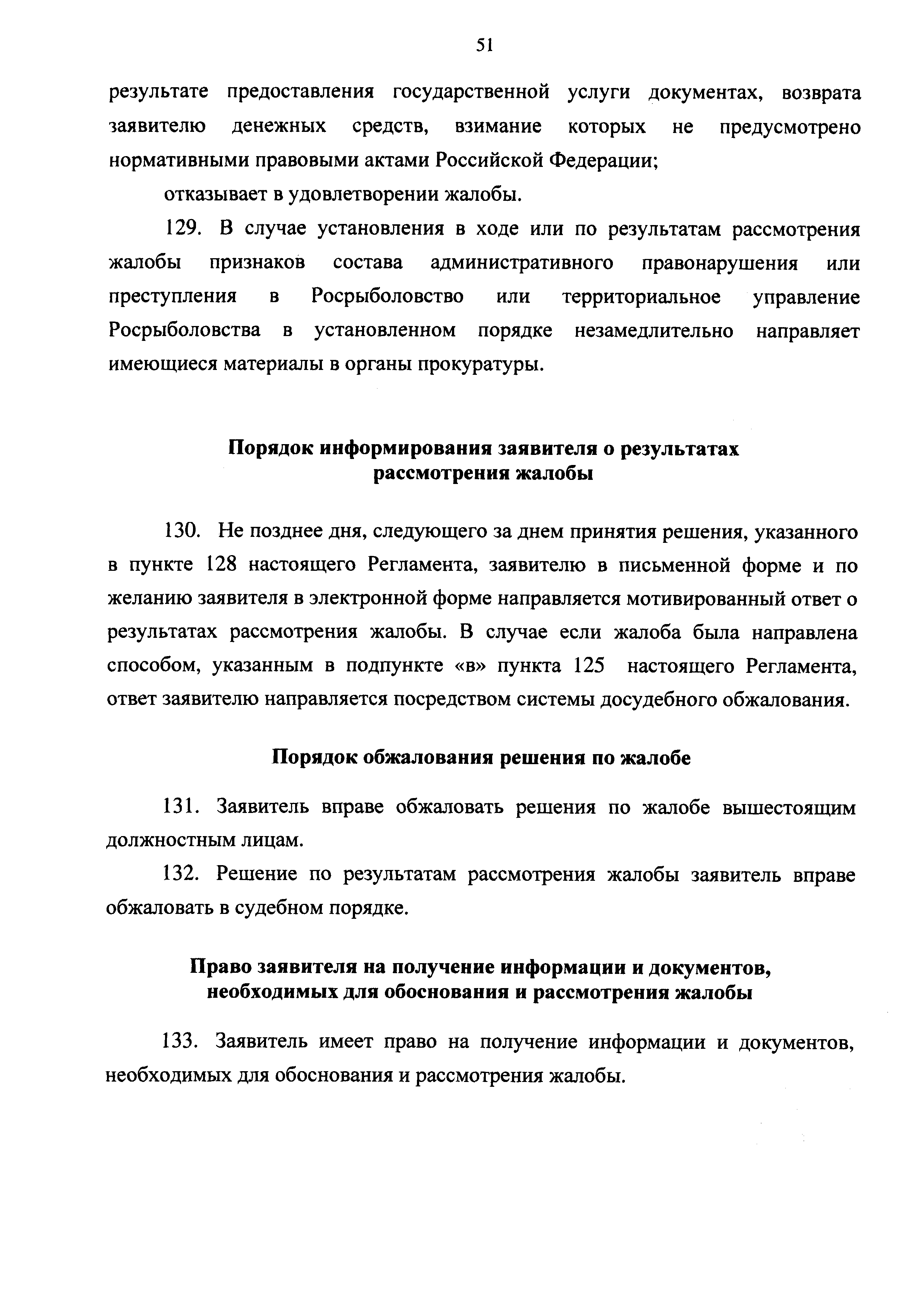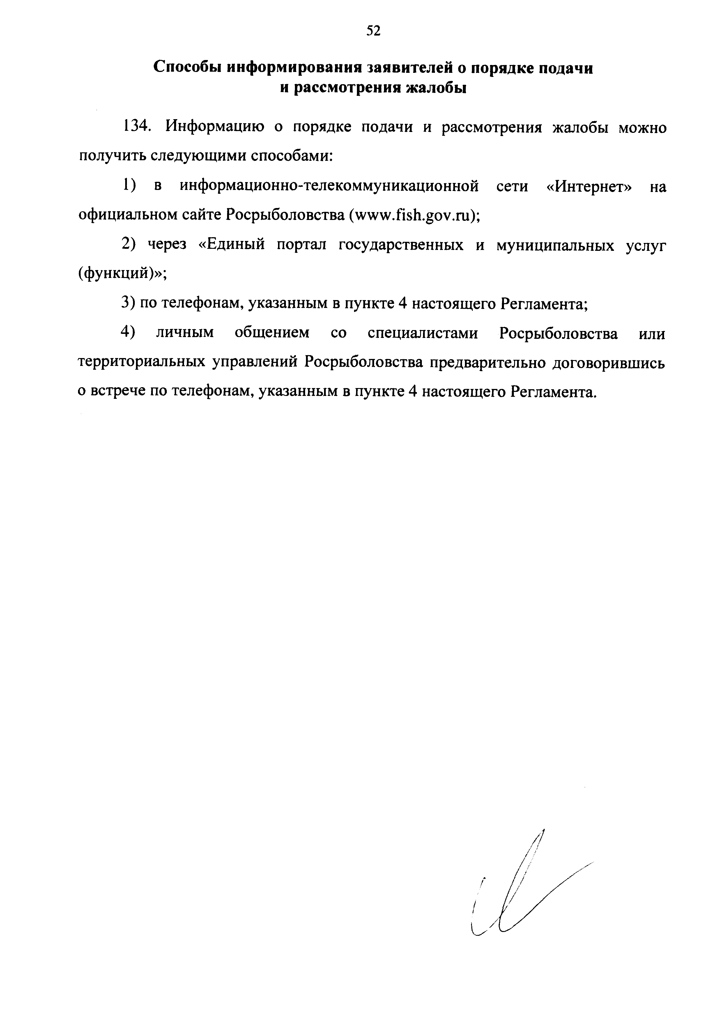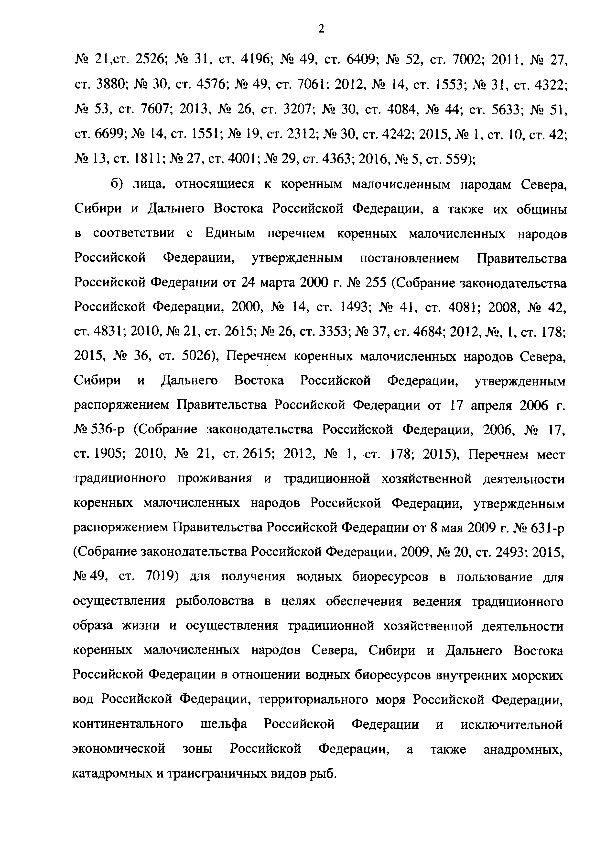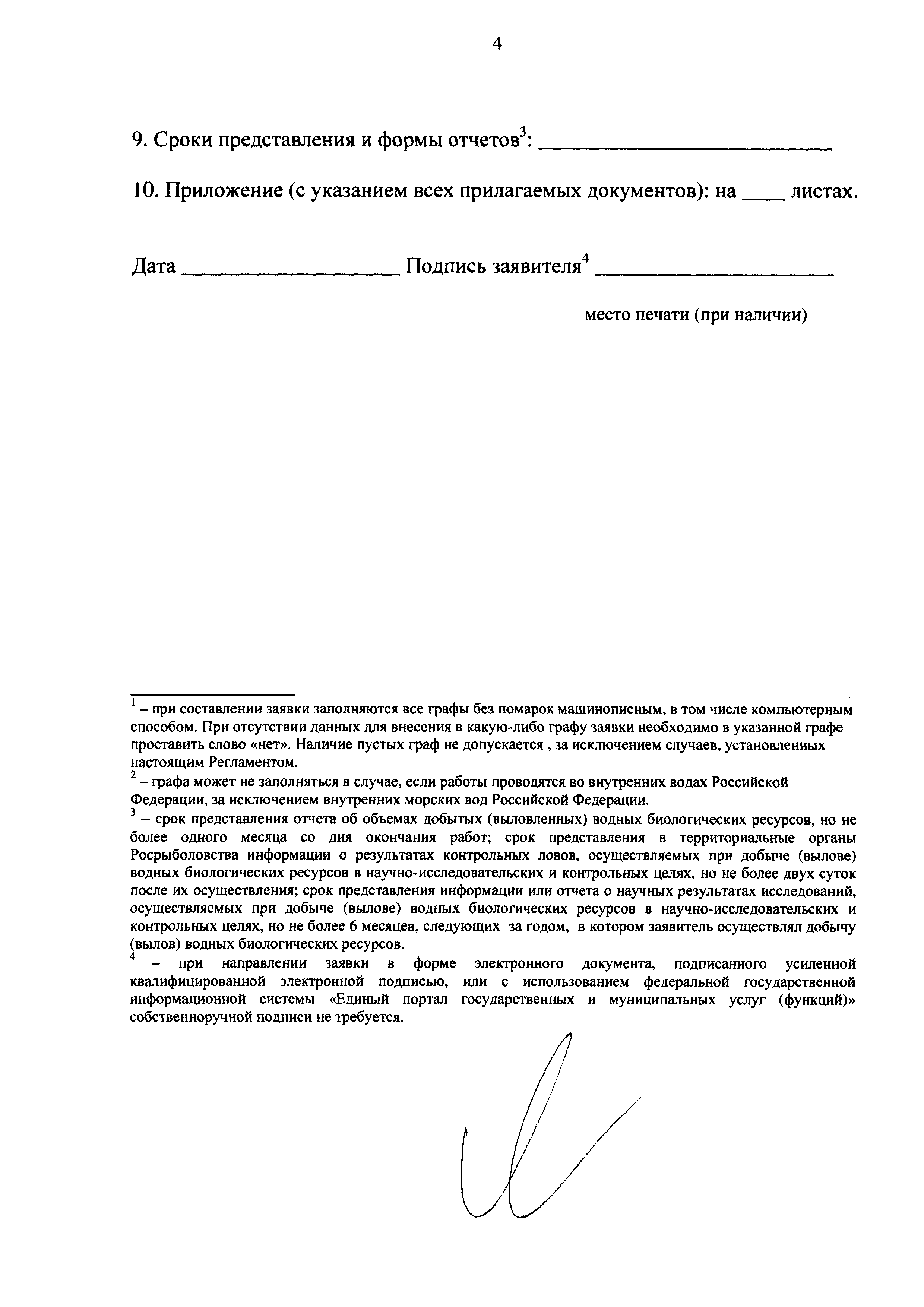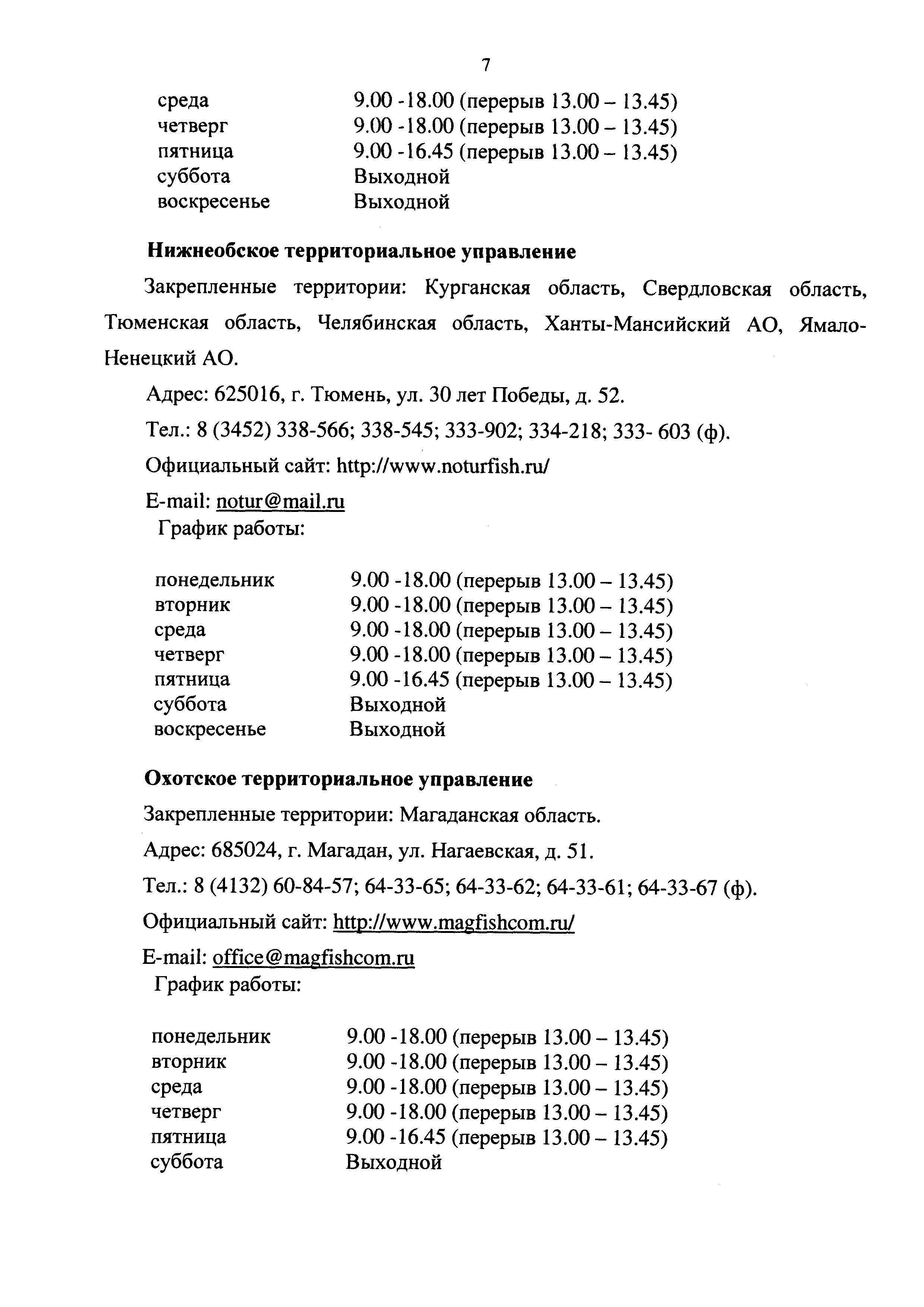 | | Нормативные ссылки: |   Федеральный закон 181-ФЗ «О социальной защите инвалидов в Российской Федерации» Кодекс «Кодекс внутреннего водного транспорта Российской Федерации» «Правила подготовки и принятия решения о предоставлении водных биологических ресурсов в пользование»  Федеральный закон 152-ФЗ «О персональных данных»  Федеральный закон 59-ФЗ «О порядке рассмотрения обращений граждан Российской Федерации»  Федеральный закон 63-ФЗ «Об электронной подписи»  Федеральный закон 166-ФЗ «О рыболовстве и сохранении водных биологических ресурсов» Постановление 373 «О разработке и утверждении административных регламентов осуществления государственного контроля (надзора) и административных регламентов предоставления государственных услуг»  «Требования к предоставлению в электронной форме государственных и муниципальных услуг» Распоряжение 631-р «Об утверждении перечня мест традиционного проживания и традиционной хозяйственной деятельности коренных малочисленных народов Российской Федерации и перечня видов традиционной хозяйственной деятельности коренных малочисленных народов Российской Федерации»  Федеральный закон 57-ФЗ «О порядке осуществления иностранных инвестиций в хозяйственные общества, имеющие стратегическое значение для обеспечения обороны страны и безопасности государства» Постановление 352 «Об утверждении перечня услуг, которые являются необходимыми и обязательными для предоставления федеральными органами исполнительной власти, Государственной корпорацией по атомной энергии "Росатом" государственных услуг и предоставляются организациями, участвующими в предоставлении государственных услуг, и определении размера платы за их оказание» «Положение о единой системе межведомственного электронного взаимодействия» «Правила подачи и рассмотрения жалоб на решения и действия (бездействие) федеральных органов исполнительной власти и их должностных лиц, федеральных государственных служащих, должностных лиц государственных внебюджетных фондов Российской Федерации, государственных корпораций, наделенных в соответствии с федеральными законами полномочиями по предоставлению государственных услуг в установленной сфере деятельности, и их должностных лиц, организаций, предусмотренных частью 1.1 статьи 16 Федерального закона "Об организации предоставления государственных и муниципальных услуг", и их работников, а также многофункциональных центров предоставления государственных и муниципальных услуг и их работников»  «Правила использования усиленной квалифицированной электронной подписи при обращении за получением государственных и муниципальных услуг»  Постановление 444 «О Федеральном агентстве по рыболовству» «Правила организации искусственного воспроизводства водных биологических ресурсов»