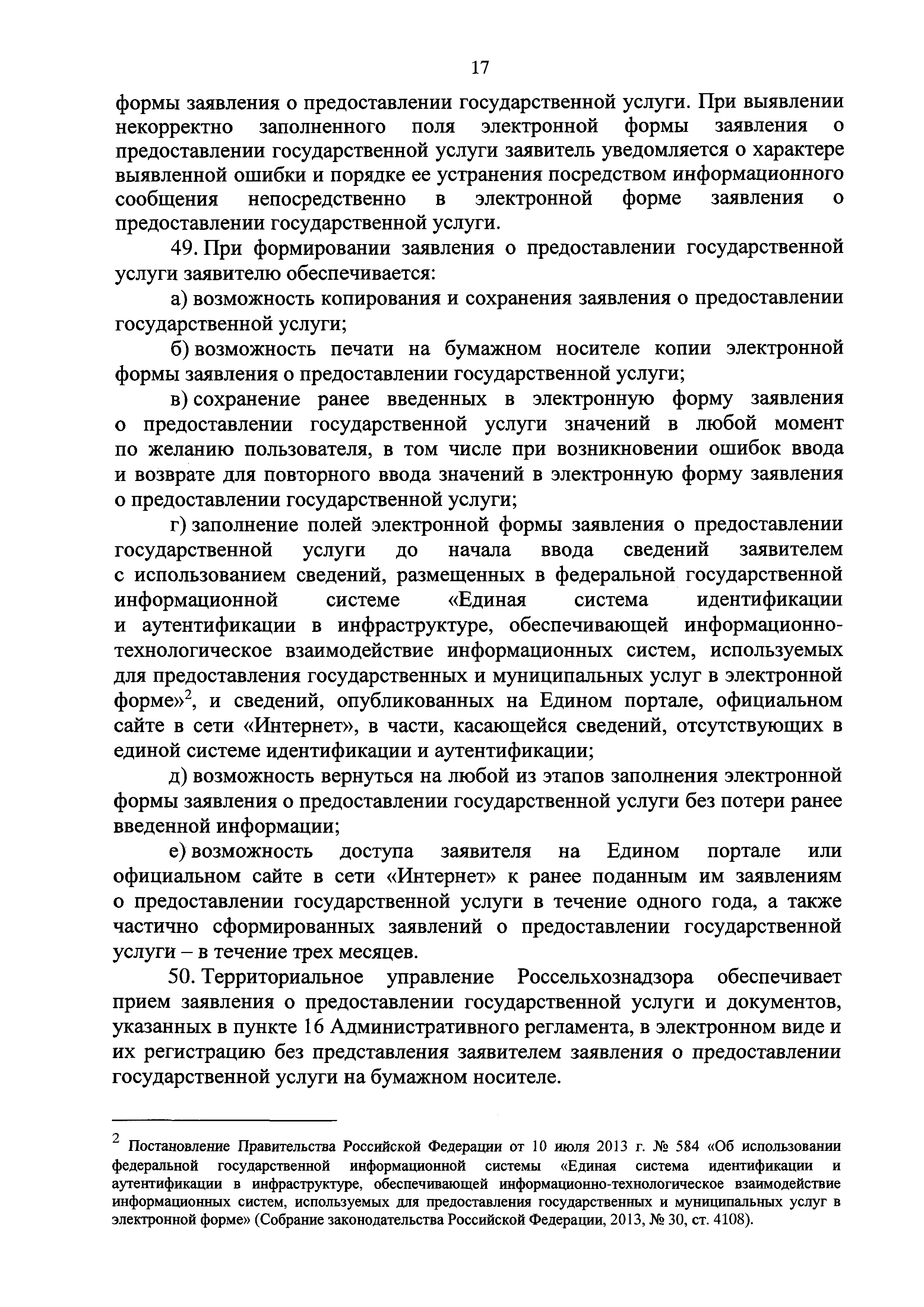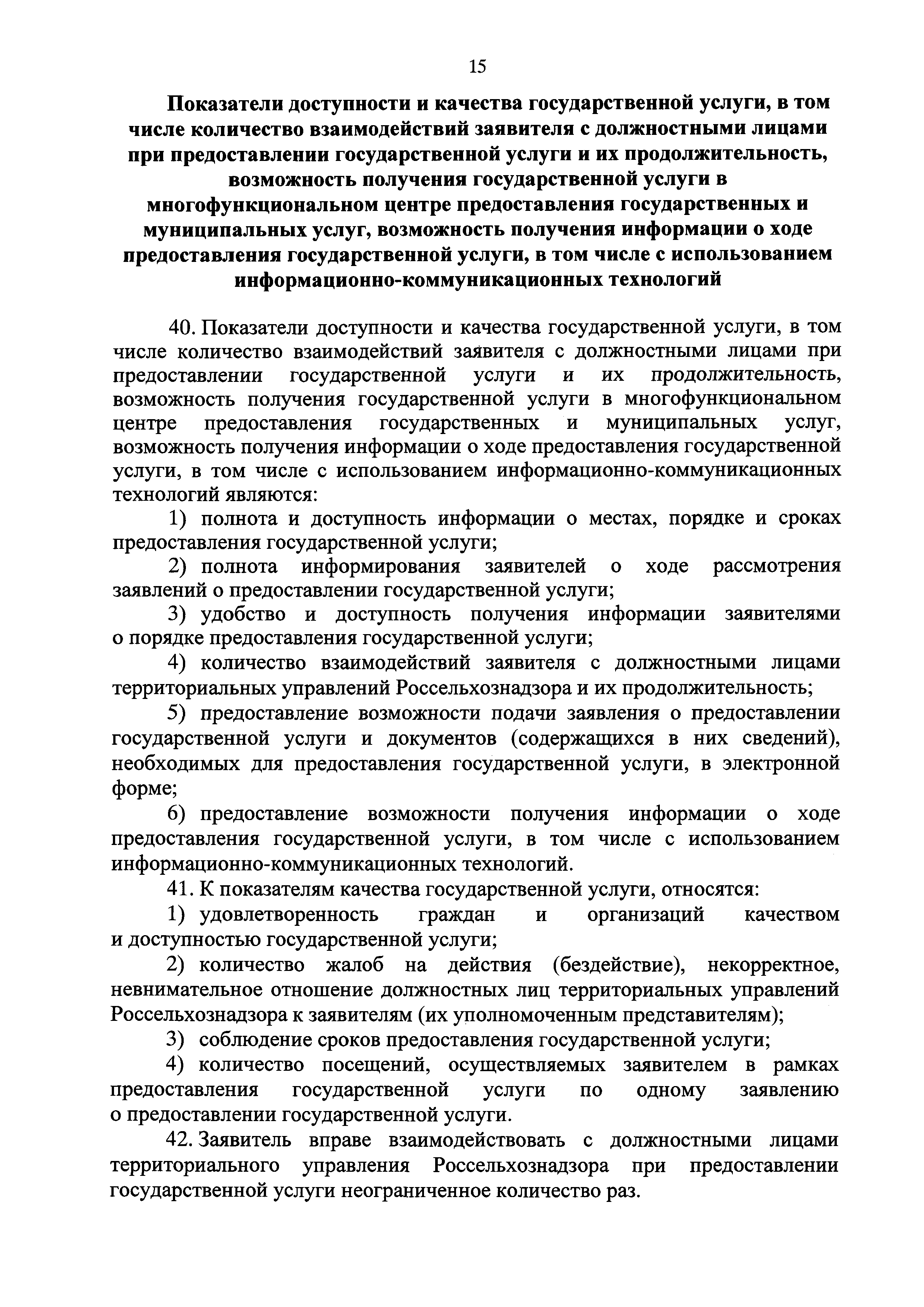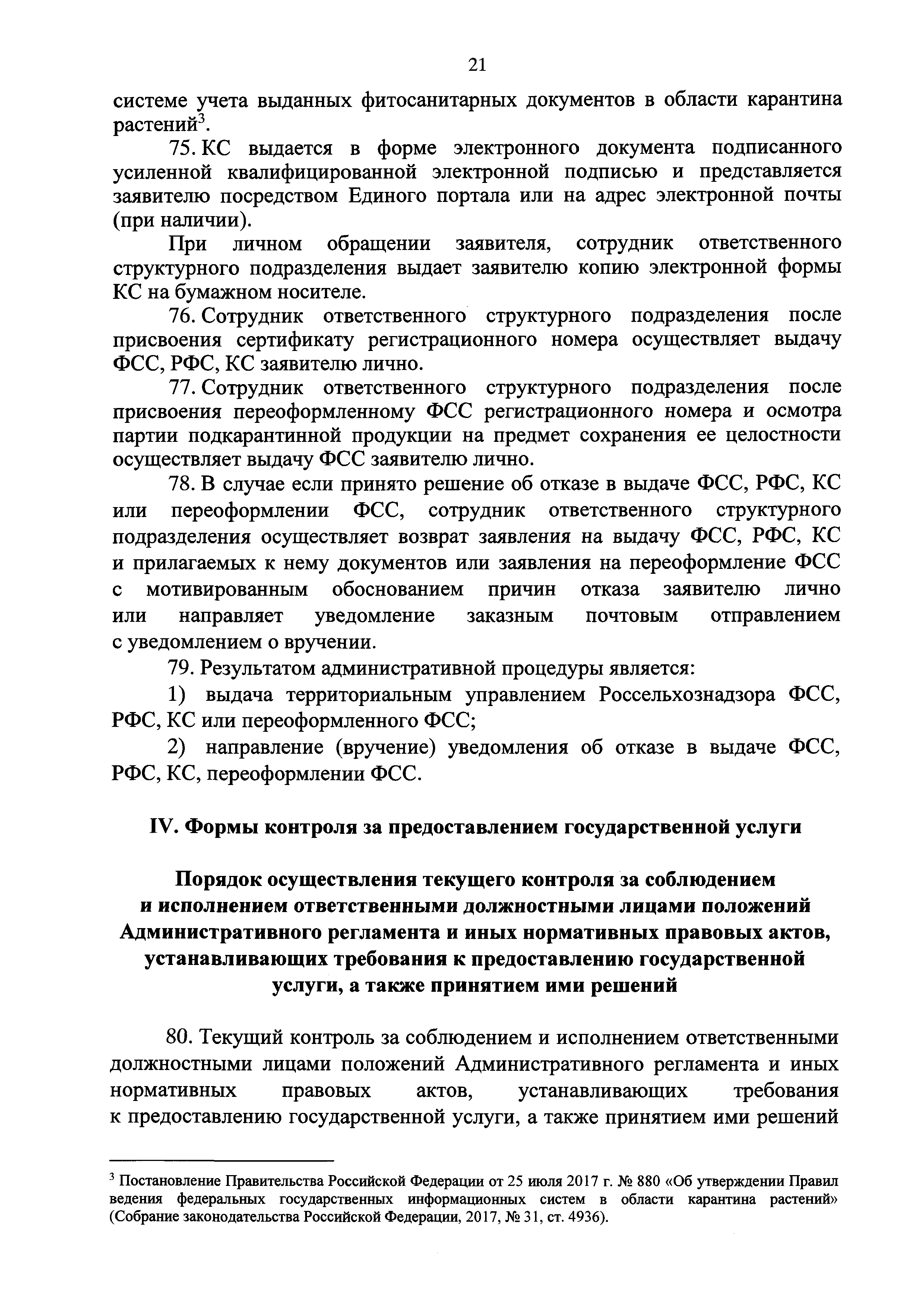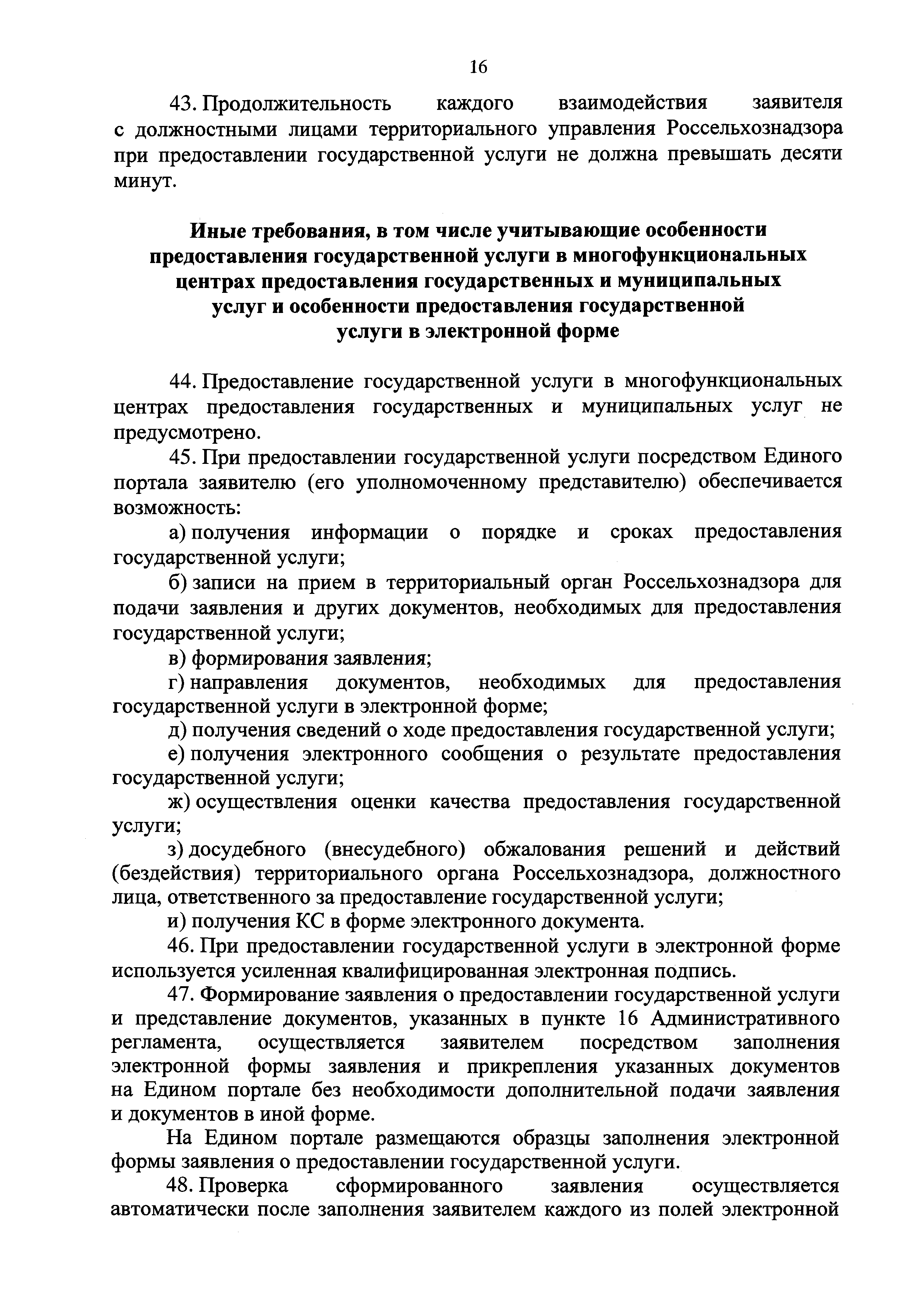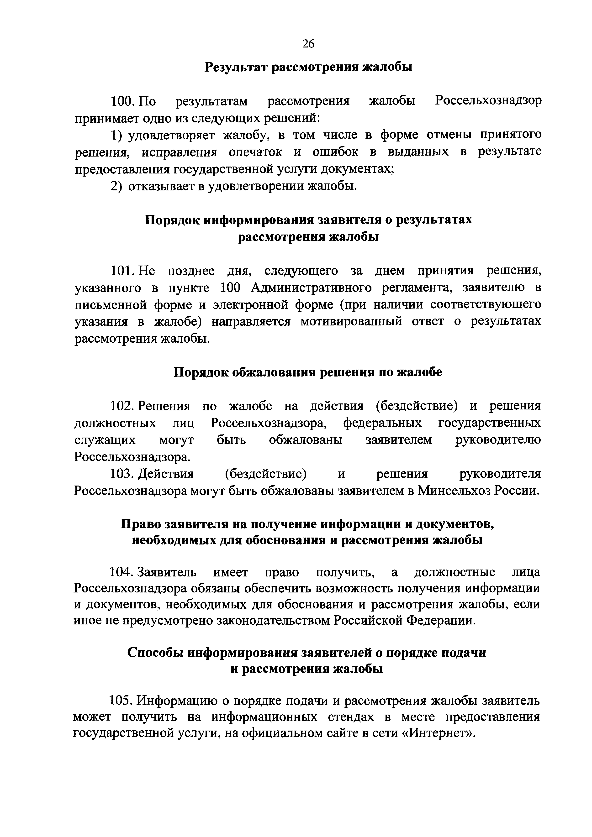 | | Нормативные ссылки: |   Федеральный закон 181-ФЗ «О социальной защите инвалидов в Российской Федерации»  Федеральный закон 152-ФЗ «О персональных данных»  Федеральный закон 63-ФЗ «Об электронной подписи» Постановление 373 «О разработке и утверждении административных регламентов осуществления государственного контроля (надзора) и административных регламентов предоставления государственных услуг»  Федеральный закон 210-ФЗ «Об организации предоставления государственных и муниципальных услуг»  Федеральный закон 8-ФЗ «Об обеспечении доступа к информации о деятельности государственных органов и органов местного самоуправления»  «Требования к предоставлению в электронной форме государственных и муниципальных услуг» Приказ 478 «Об утверждении форм фитосанитарного сертификата, реэкспортного фитосанитарного сертификата, карантинного сертификата» Постановление 352 «Об утверждении перечня услуг, которые являются необходимыми и обязательными для предоставления федеральными органами исполнительной власти, Государственной корпорацией по атомной энергии "Росатом" государственных услуг и предоставляются организациями, участвующими в предоставлении государственных услуг, и определении размера платы за их оказание»  Федеральный закон 206-ФЗ «О карантине растений» «Правила подачи и рассмотрения жалоб на решения и действия (бездействие) федеральных органов исполнительной власти и их должностных лиц, федеральных государственных служащих, должностных лиц государственных внебюджетных фондов Российской Федерации, государственных корпораций, наделенных в соответствии с федеральными законами полномочиями по предоставлению государственных услуг в установленной сфере деятельности, и их должностных лиц, организаций, предусмотренных частью 1.1 статьи 16 Федерального закона "Об организации предоставления государственных и муниципальных услуг", и их работников, а также многофункциональных центров предоставления государственных и муниципальных услуг и их работников»  «Правила использования усиленной квалифицированной электронной подписи при обращении за получением государственных и муниципальных услуг» «Правила определения видов электронной подписи, использование которых допускается при обращении за получением государственных и муниципальных услуг» «Порядок выдачи фитосанитарного сертификата, реэкспортного фитосанитарного сертификата, карантинного сертификата»