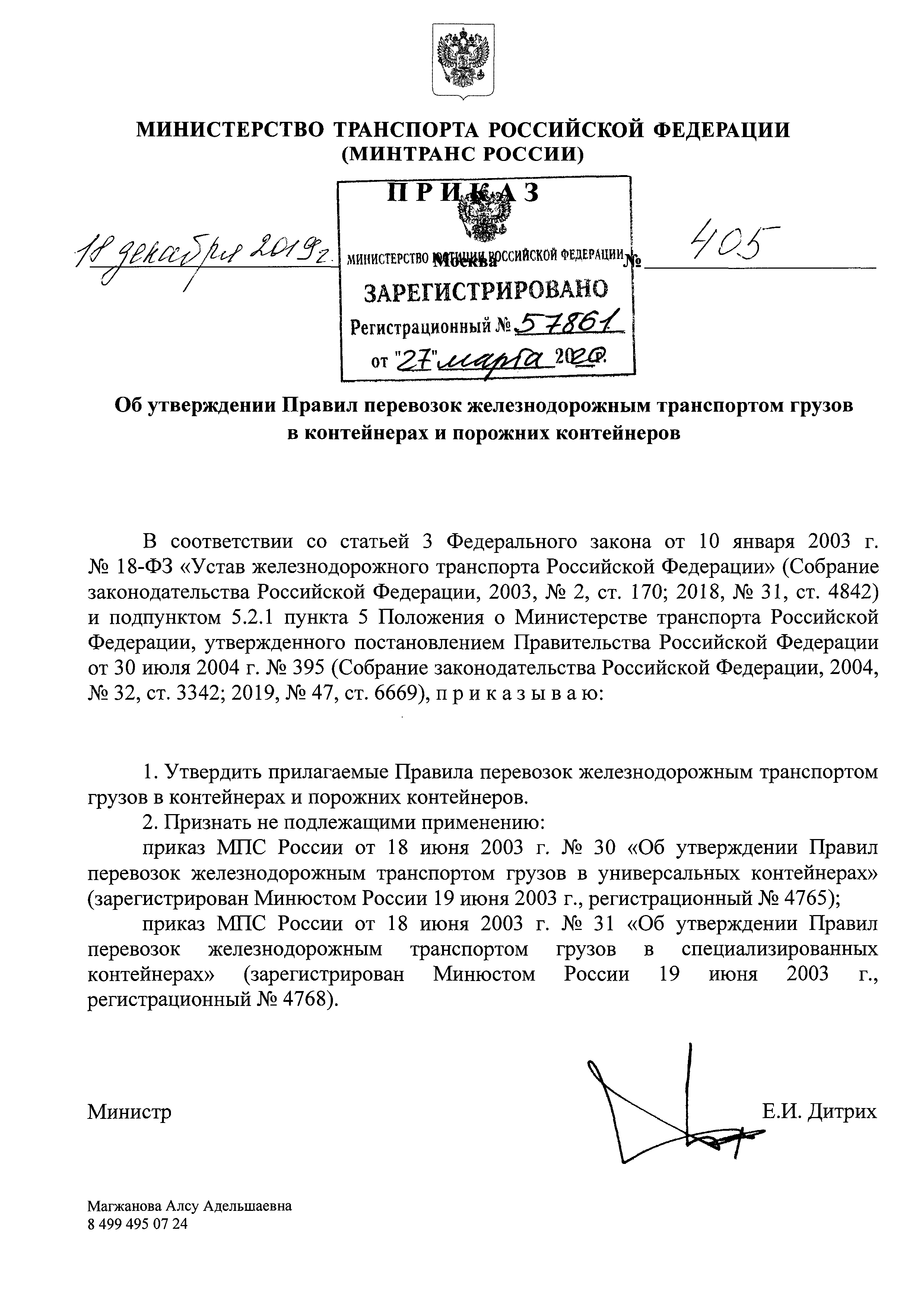 | Утверждён: | 18.12.2019 Министерство транспорта Российской Федерации (Russian Federation Ministry of Transportation 405) |