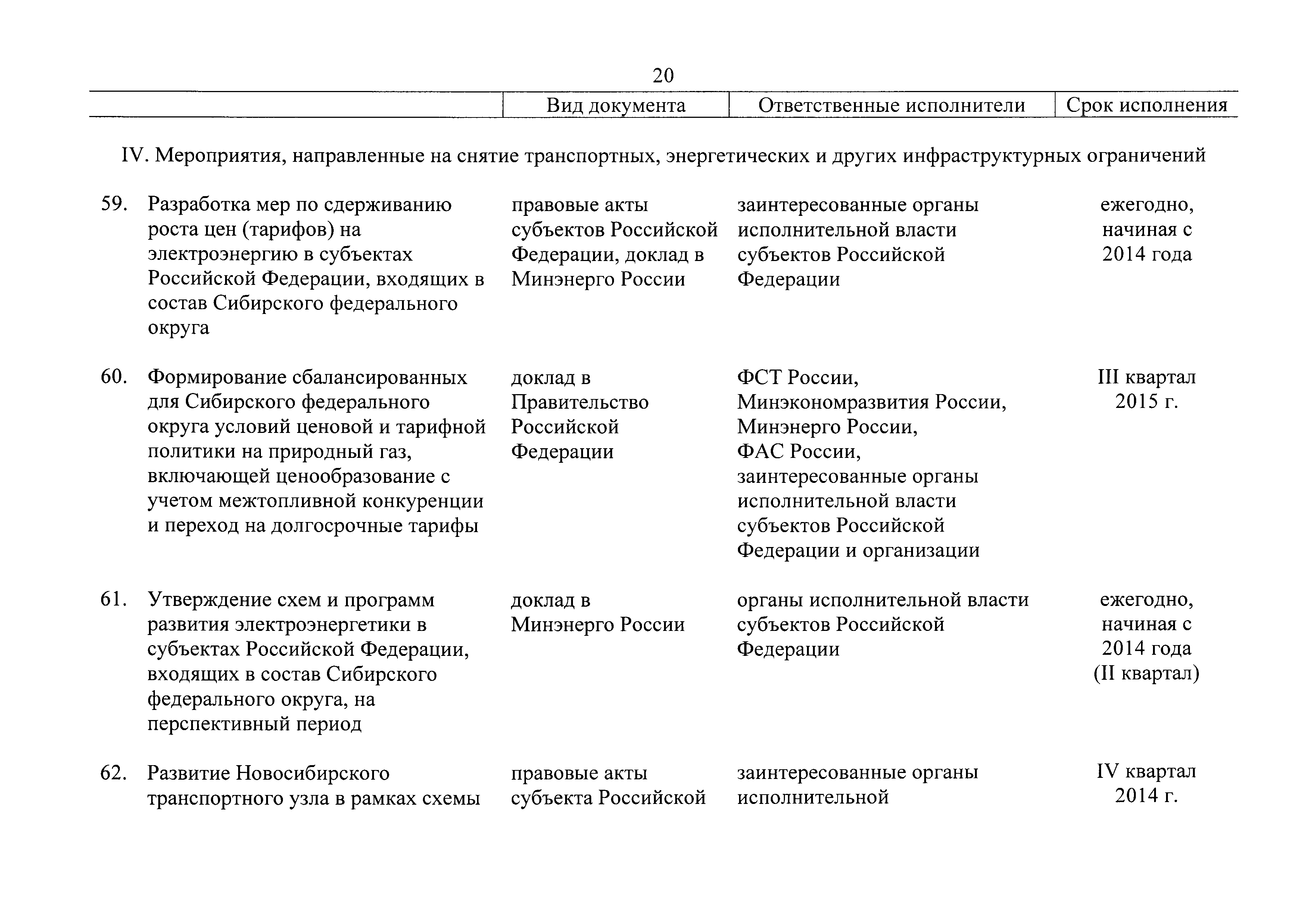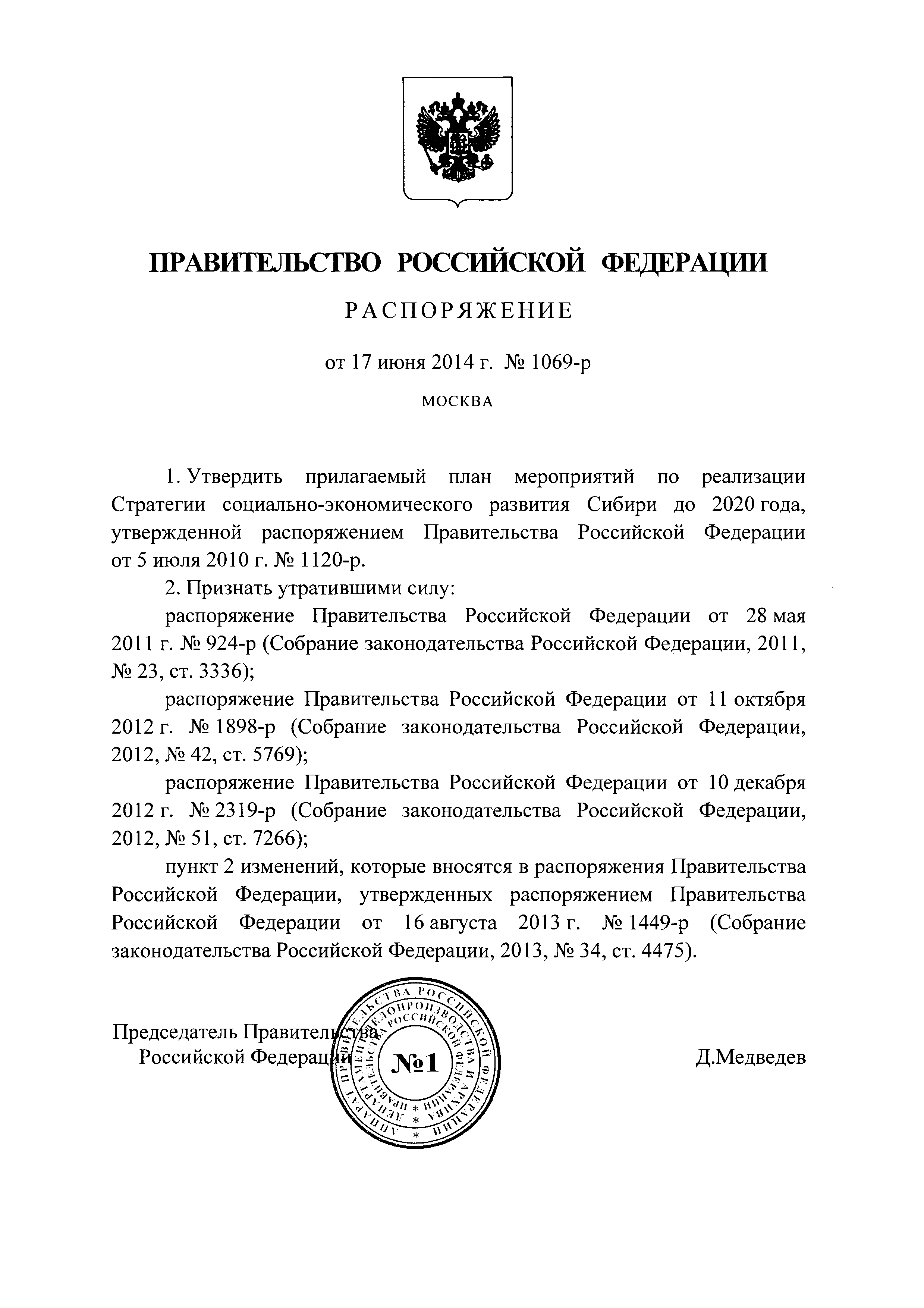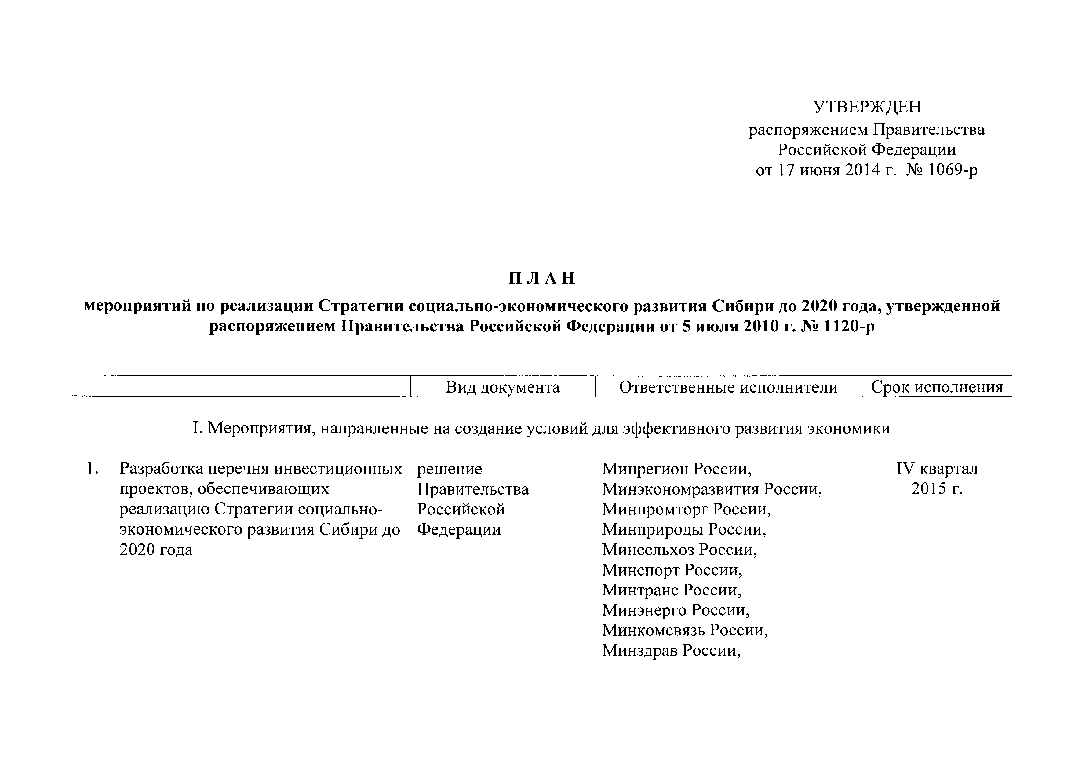 | Название рус.: | План мероприятий по реализации Стратегии социально-экономического развития Сибири до 2020 года, утвержденной распоряжением Правительства Российской Федерации от 5 июля 2010 г. № 1120-р |