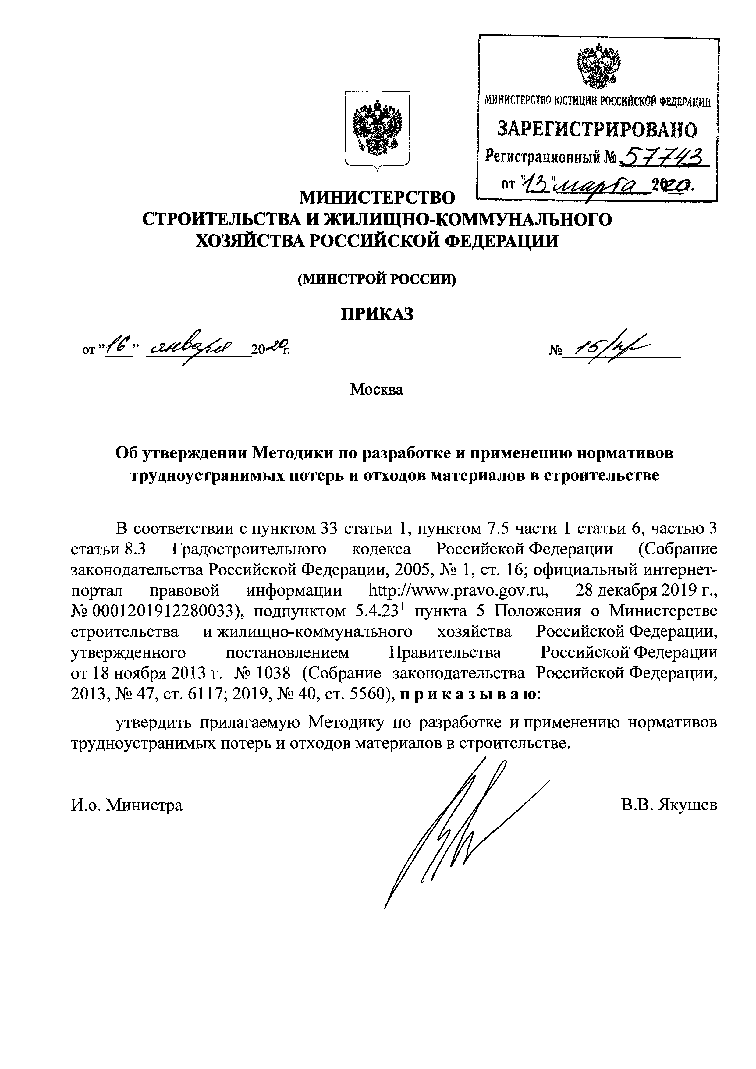 | Утверждён: | 16.01.2020 Министерство строительства и жилищно-коммунального хозяйства Российской Федерации (15/пр) |