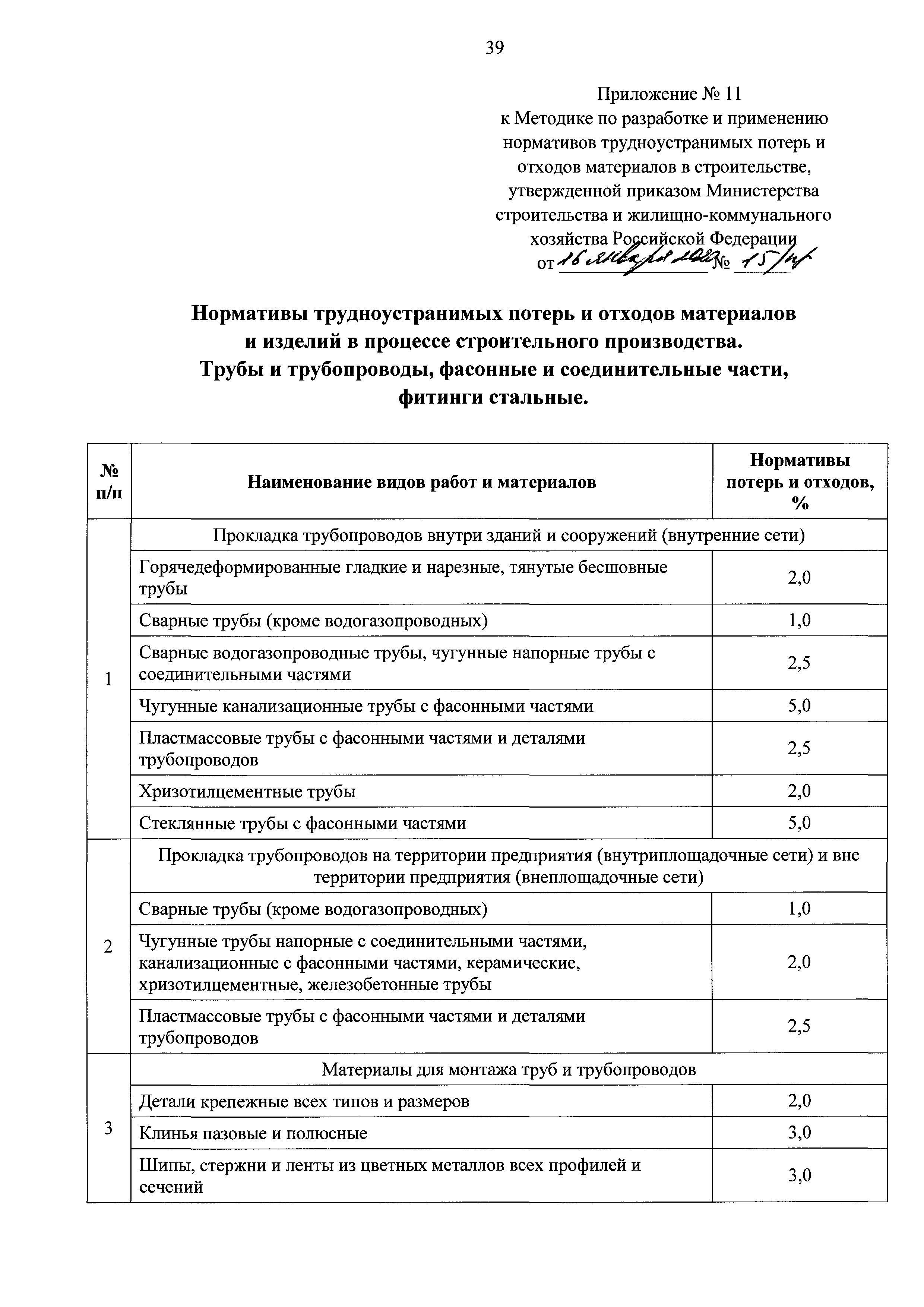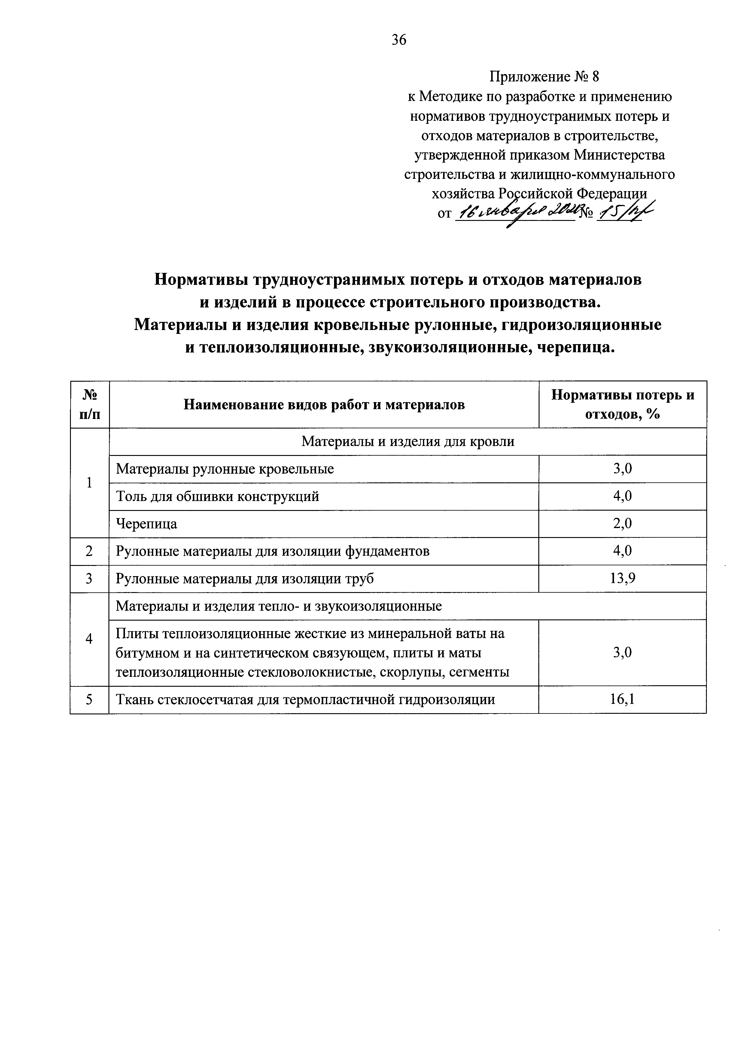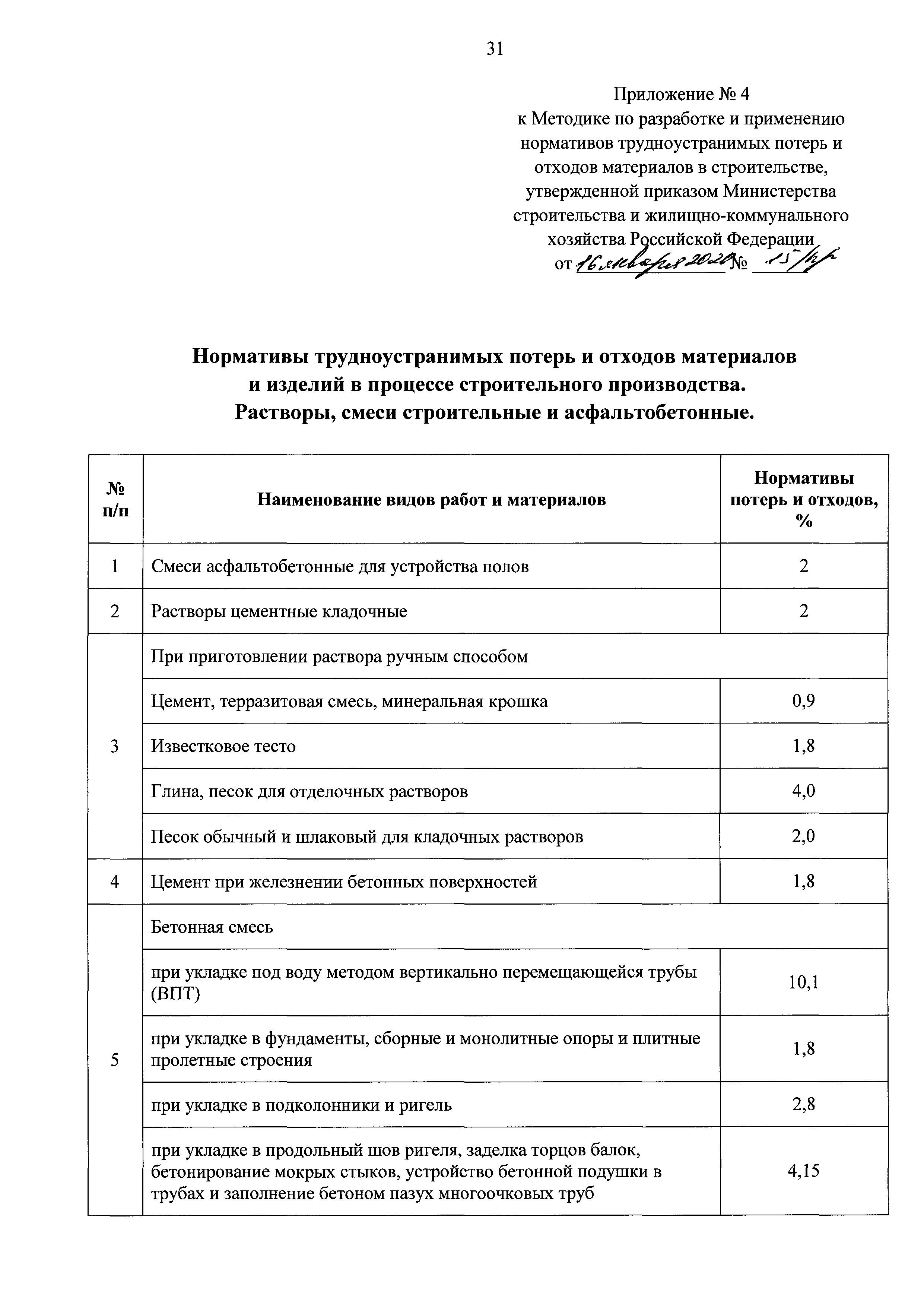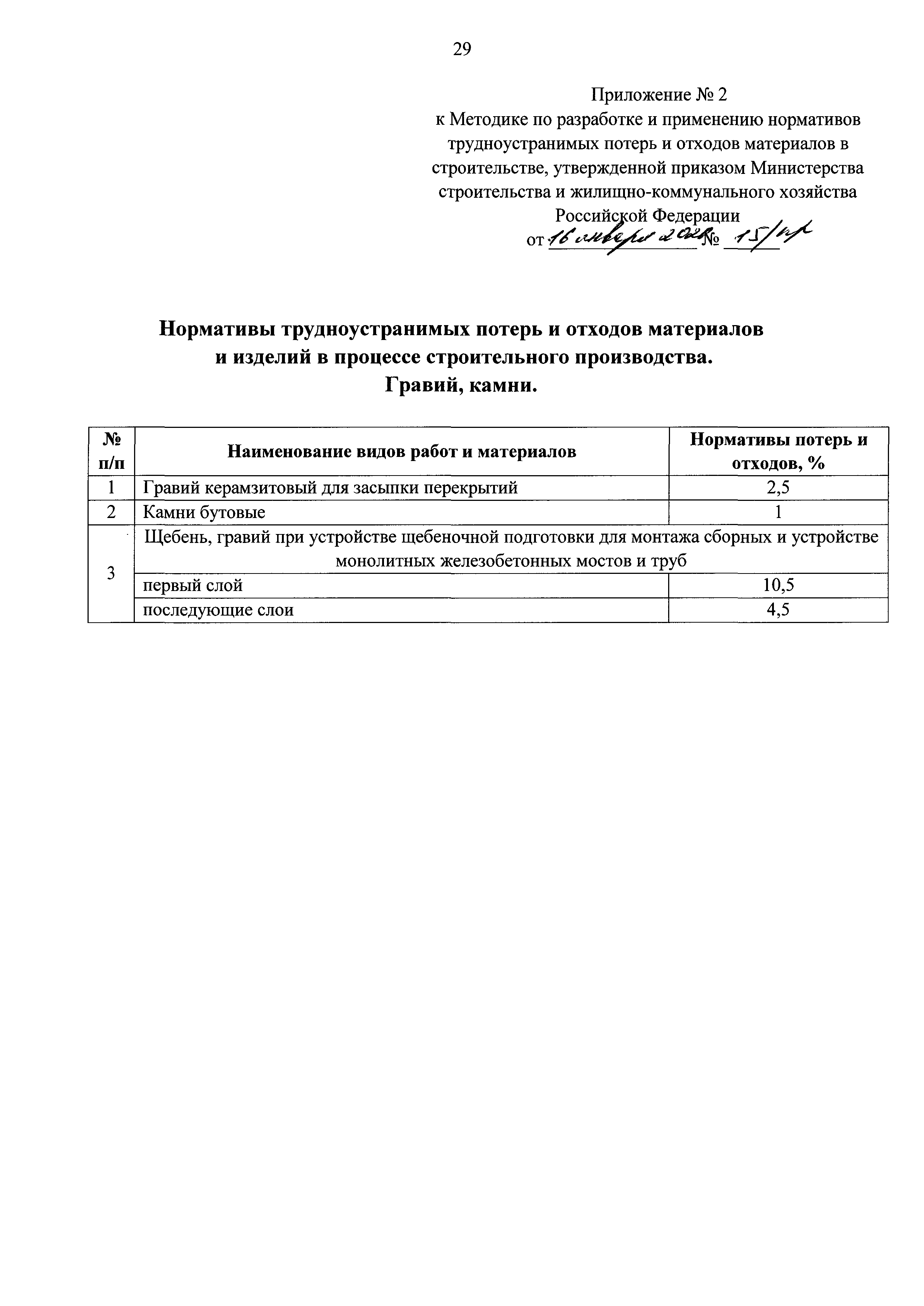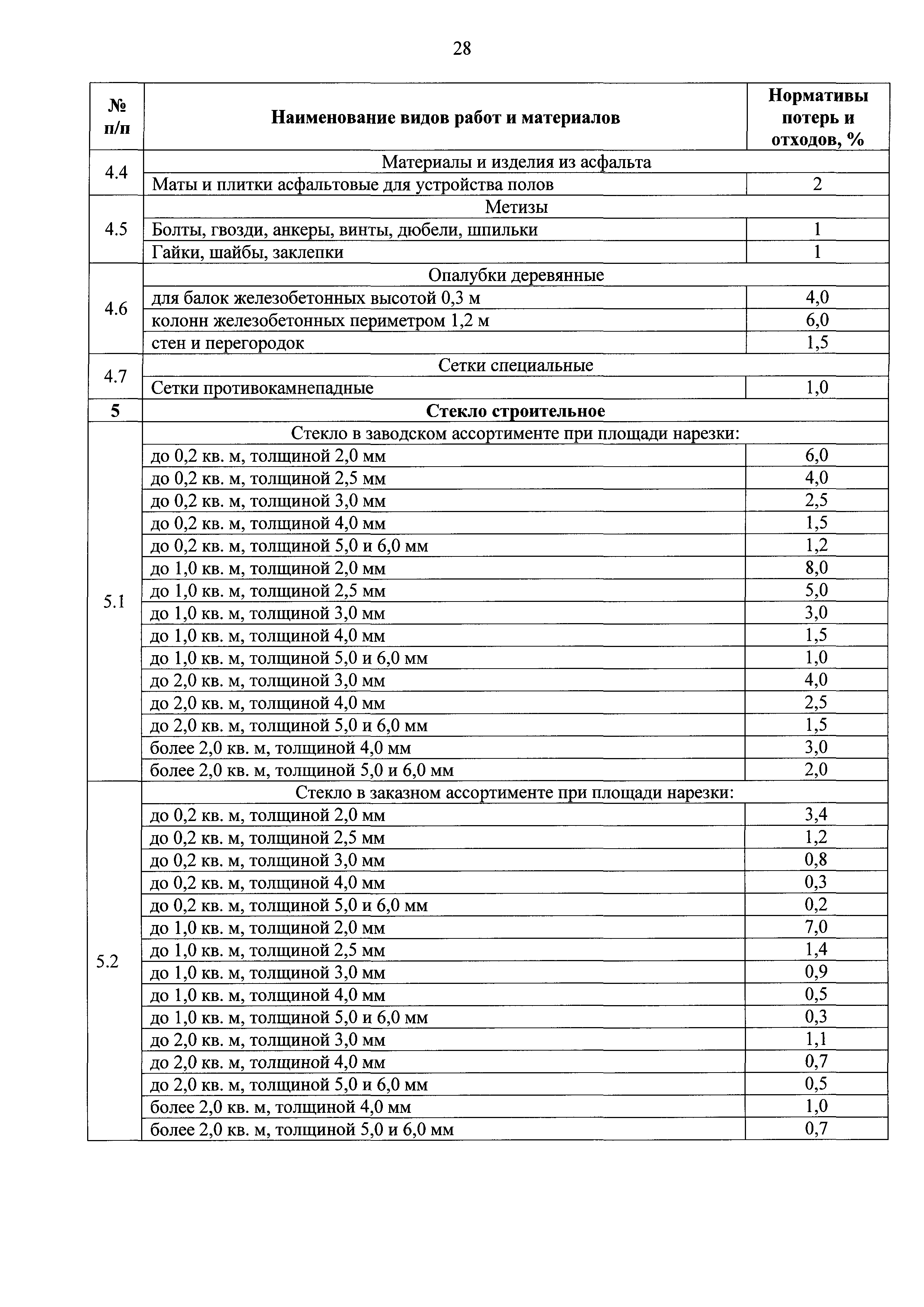 | Оглавление: | I Общие положения II Методы разработки нормативов трудноустранимых потерь и отходов материалов в строительстве Приложение 1. Нормативы трудноустранимых потерь и отходов материалов и изделий в процессе строительного производства. Материалы для строительных и дорожных работ. Приложение 2. Нормативы трудноустранимых потерь и отходов материалов и изделий в процессе строительного производства. Гравий, камни Приложение 3. Нормативы трудноустранимых потерь и отходов материалов и изделий в процессе строительного производства. Изделия из бетона, цемента и гипса Приложение 4. Нормативы трудноустранимых потерь и отходов материалов и изделий в процессе строительного производства. Растворы, смеси строительные и асфальтобетонные Приложение 5. Нормативы трудноустранимых потерь и отходов материалов и изделий в процессе строительного производства. Изделия керамические строительные Приложение 6. Нормативы трудноустранимых потерь и отходов материалов и изделий в процессе строительного производства. Изделия металлические, металлопрокат, канаты Приложение 7. Нормативы трудноустранимых потерь и отходов материалов и изделий в процессе строительного производства. Изделия и конструкции из дерева и пластмассовых профилей Приложение 8. Нормативы трудноустранимых потерь и отходов материалов и изделий в процессе строительного производства. Материалы и изделия кровельные рулонные, гидроизоляционные и теплоизоляционные, звукоизоляционные, черепица Приложение 9. Нормативы трудноустранимых потерь и отходов материалов и изделий в процессе строительного производства. Материалы монтажные и электроустановочные, изделия и конструкции Приложение 10. Нормативы трудноустранимых потерь и отходов материалов и изделий в процессе строительного производства. Материалы лакокрасочные и мастичные составы Приложение 11. Нормативы трудноустранимых потерь и отходов материалов и изделий в процессе строительного производства. Трубы и трубопроводы, фасонные и соединительные части, фитинги стальные Приложение 12. Нормативы оборачиваемости инвентарных деталей, конструкций и материалов в процессе строительного производства Приложение 13. Таблица "Результаты замера расхода материалов" |