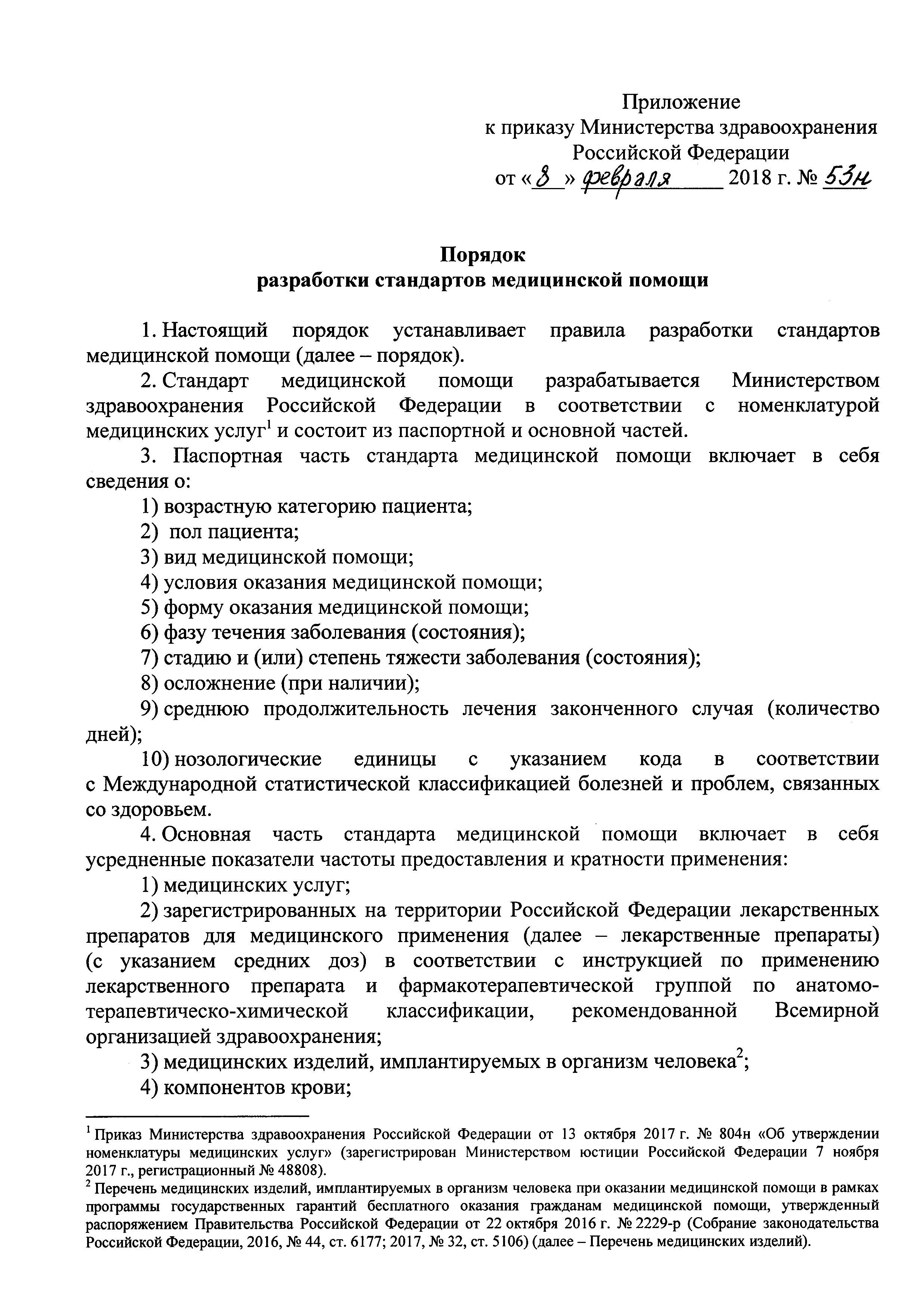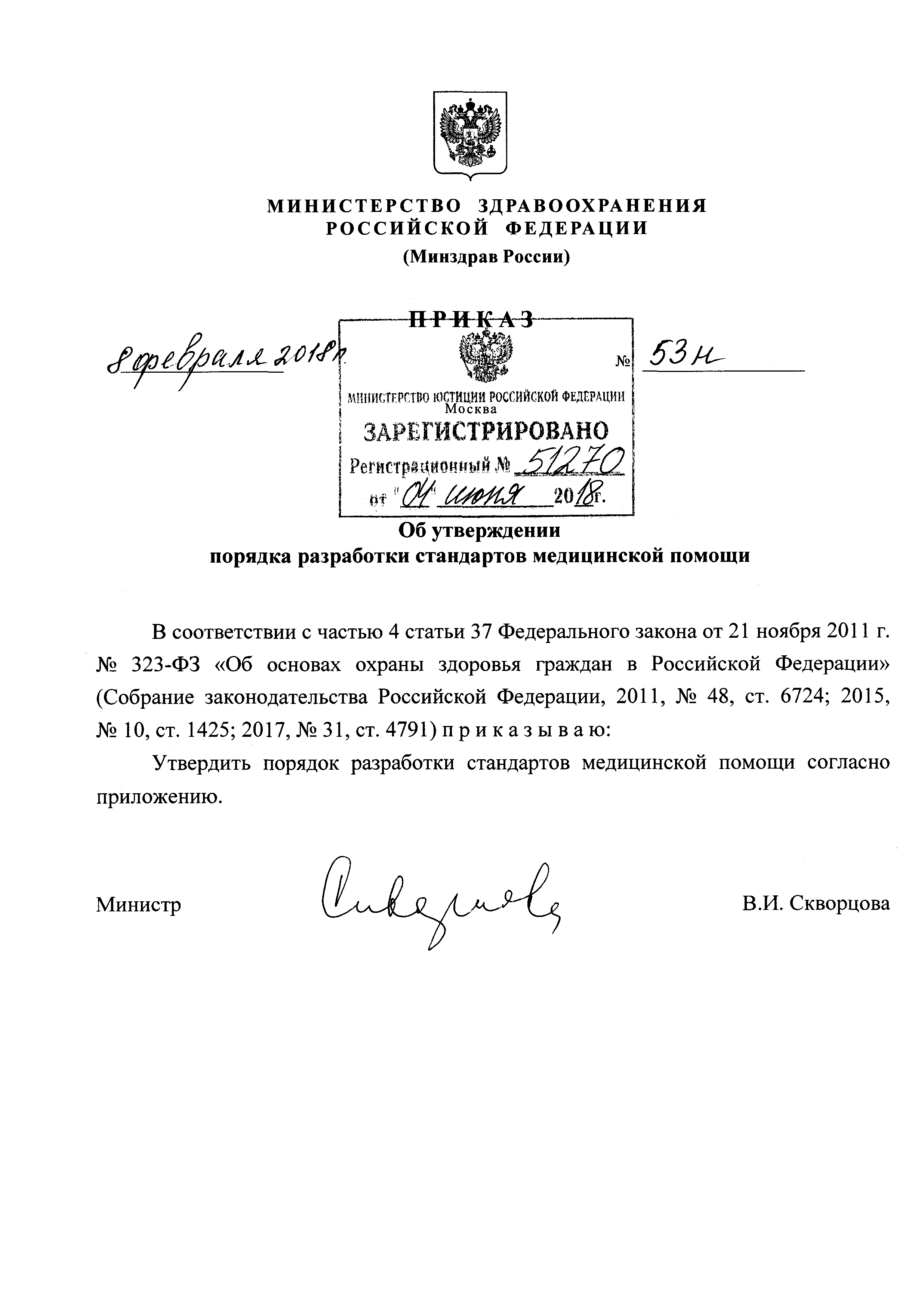| Утверждён: | 08.02.2018 Министерство здравоохранения Российской Федерации (53н)
