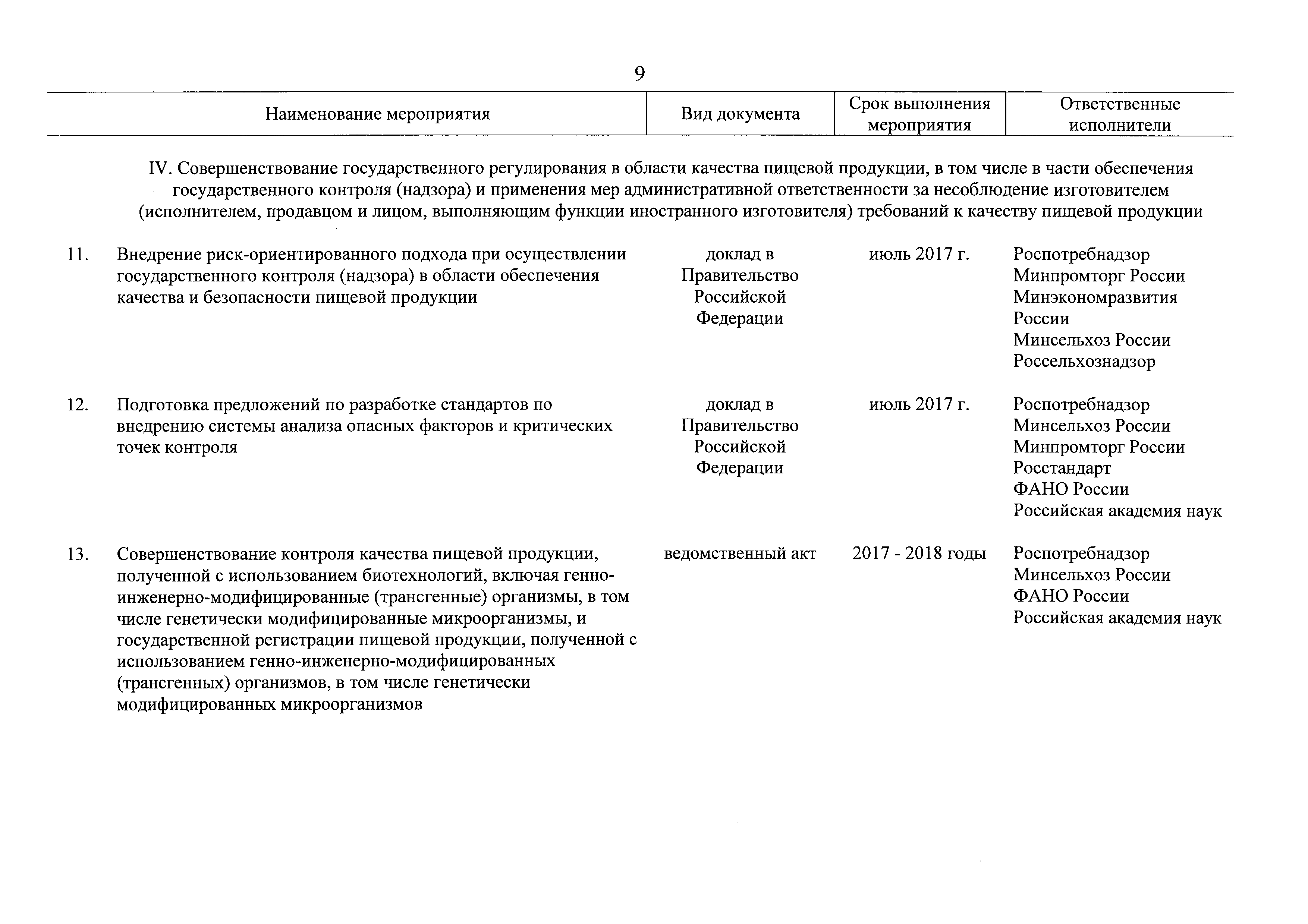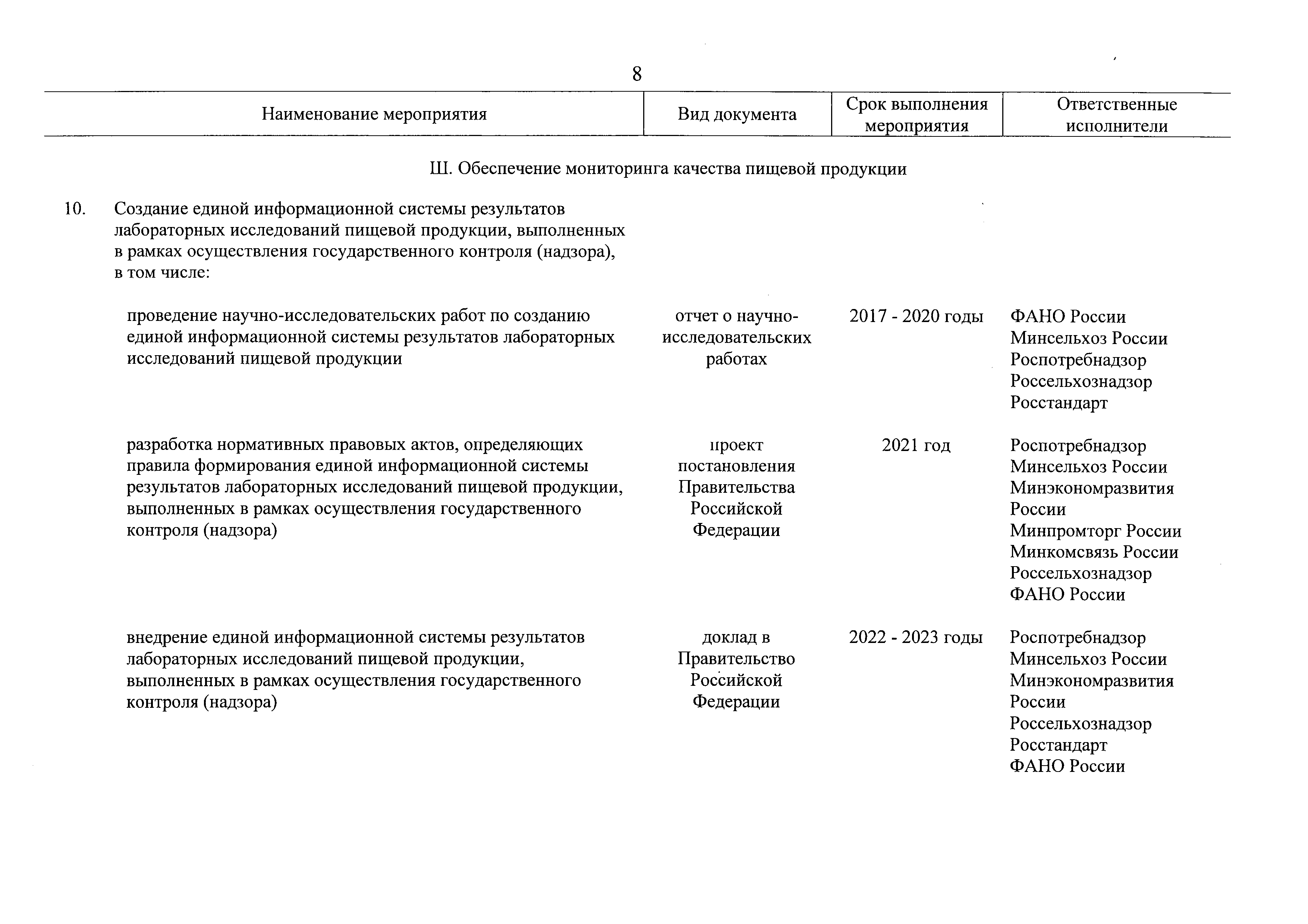 | Название рус.: | План мероприятий по реализации Стратегии повышения качества пищевой продукции в Российской Федерации до 2030 года |