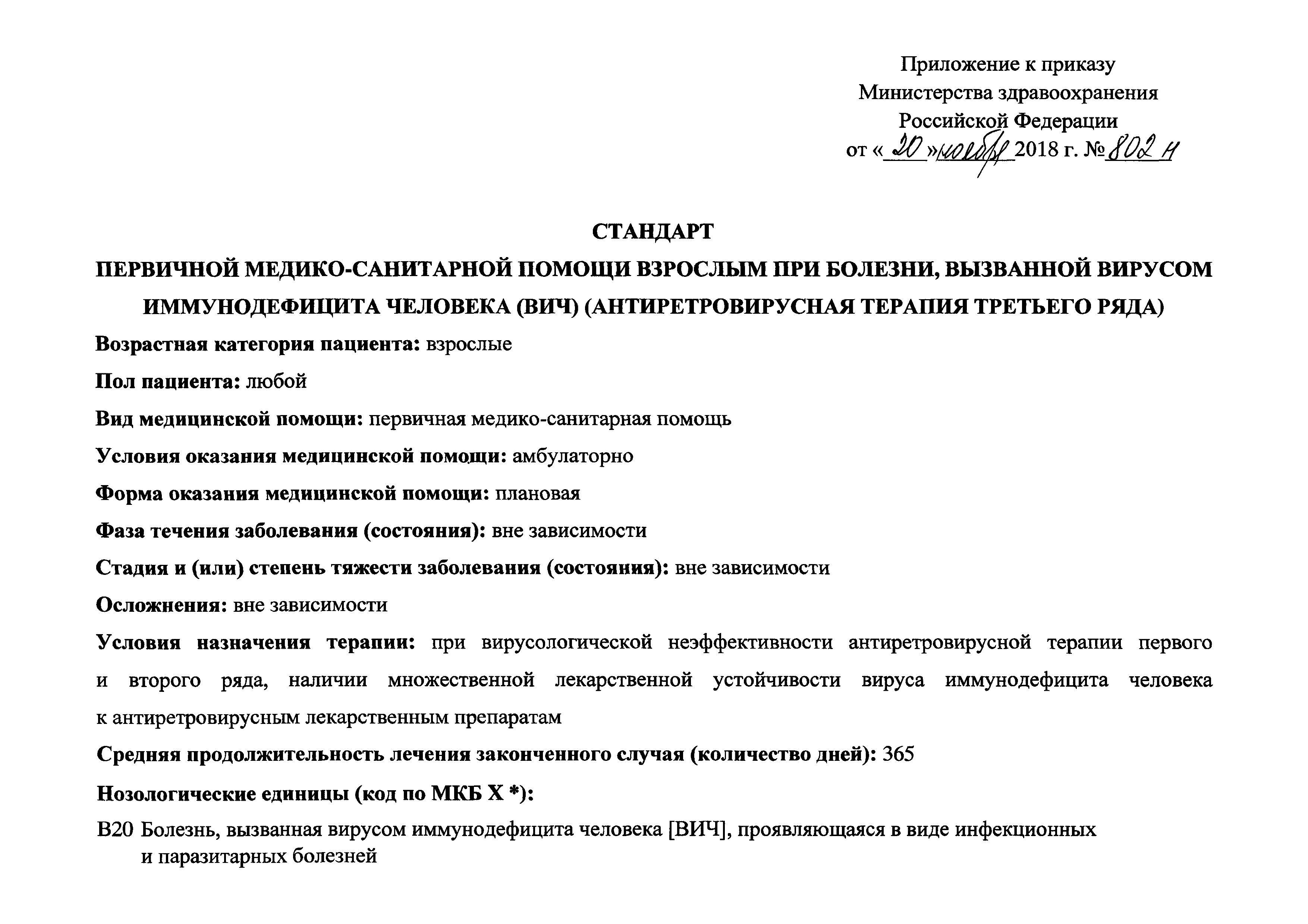 Скачать Стандарт первичной медико-санитарной помощи взрослым при болезни, вызванной вирусом иммунодефицита человека (ВИЧ) (Антиретровирусная терапия третьего ряда)Дата актуализации: 01.01.2021