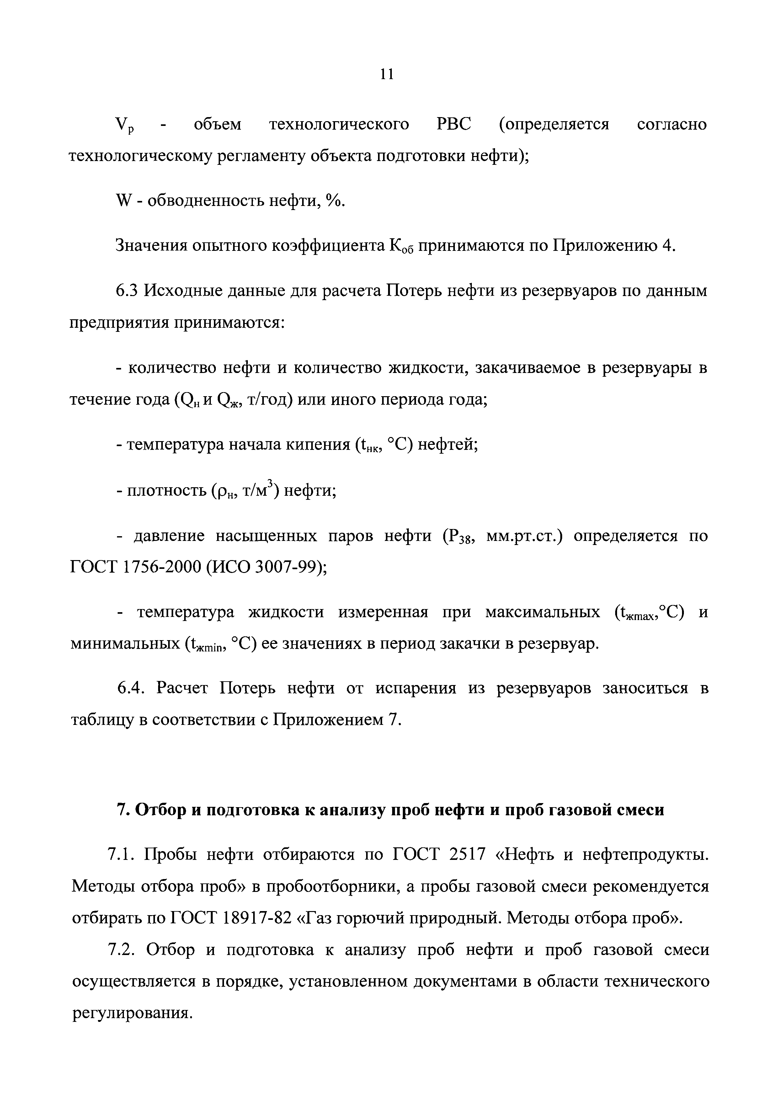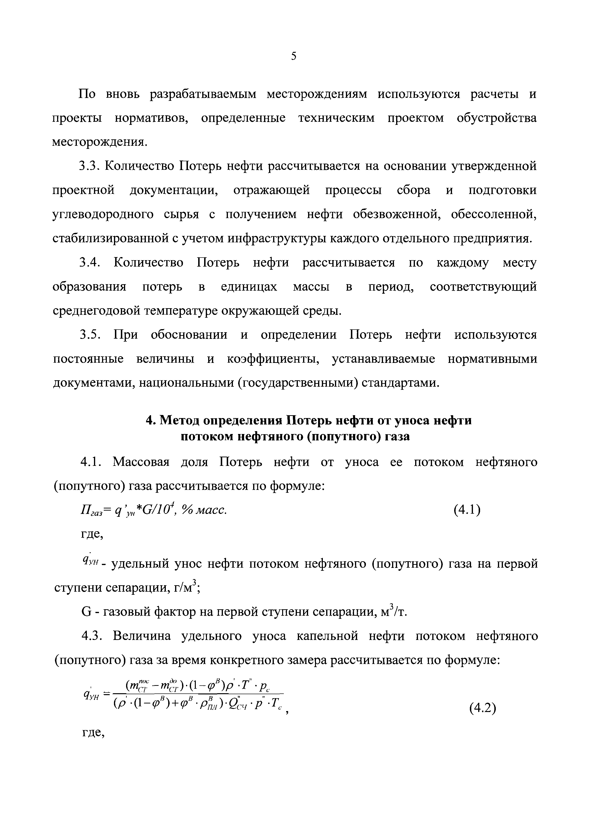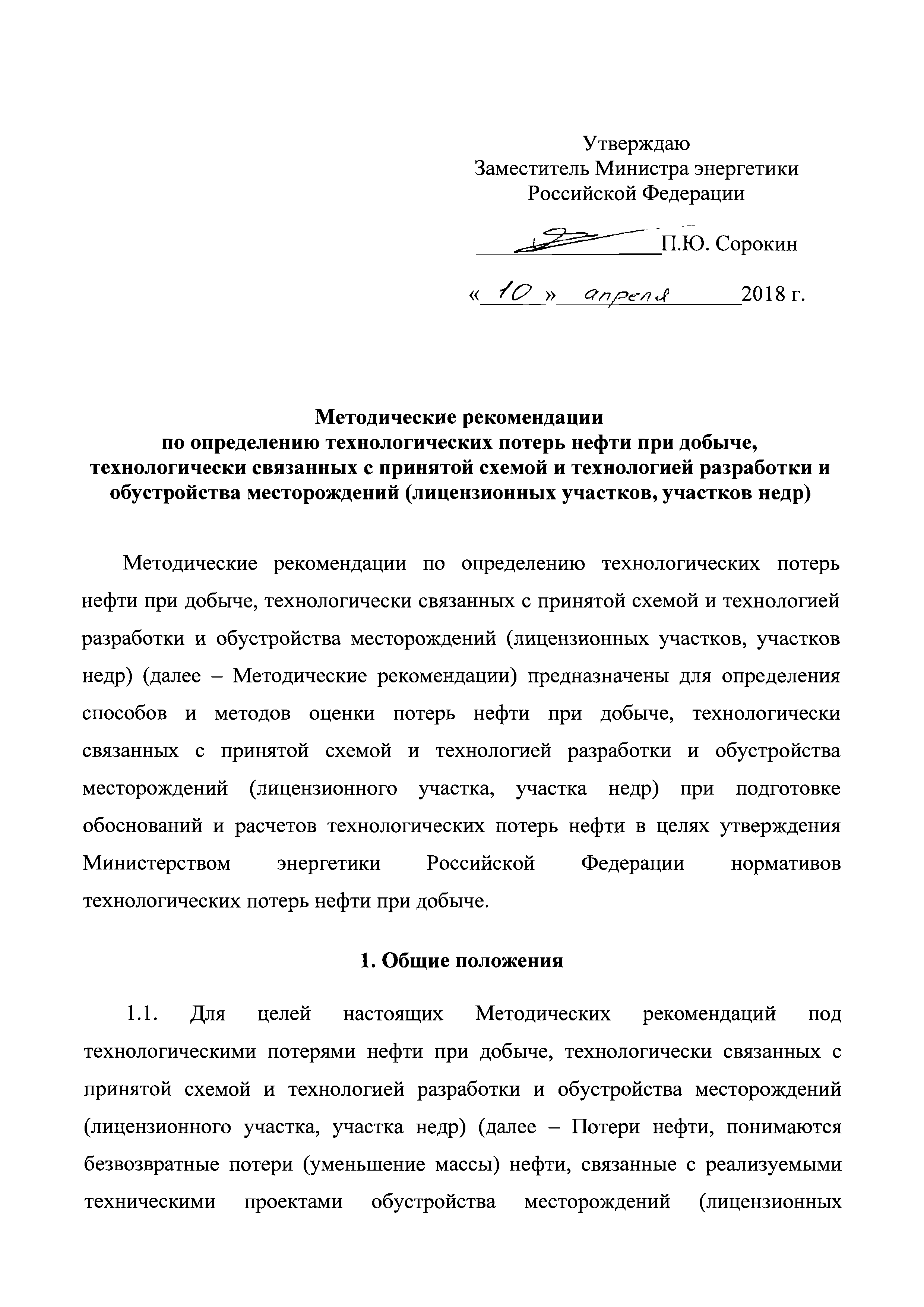 Методические рекомендации по определению технологических потерь нефти при добыче, технологически связанных с принятой схемой и технологией разработки и обустройства месторождений (лицензионных участков, участков недр)| Статус: | действует | | Название рус.: | Методические рекомендации по определению технологических потерь нефти при добыче, технологически связанных с принятой схемой и технологией разработки и обустройства месторождений (лицензионных участков, участков недр) | | Дата добавления в базу: | 01.01.2021 | | Дата актуализации: | 01.01.2021 | | Область применения: | Методические рекомендации по определению технологических потерь нефти при добыче, технологически связанных с принятой схемой и технологией разработки и обустройства месторождений (лицензионных участков, участков недр) предназначены для определения способов и методов оценки потерь нефти при добыче, технологически связанных с принятой схемой и технологией разработки и обустройства месторождений (лицензионного участка, участка недр) при подготовке обоснований и расчетов технологических потерь нефти в целях утверждения Министерством энергетики Российской Федерации нормативов технологических потерь нефти при добыче. | | Оглавление: | 1. Общие положения 2. Источники Потерь нефти 3. Обоснование величины Потерь нефти 4. Метод определения Потерь нефти от уноса нефти потоком нефтяного (попутного) газа 5. Методы определения Потерь нефти в результате уноса капельной нефти сточными (дренажными) водами 6. Метод определения Потерь нефти от испарения в сырьевых и технологических резервуарах 7. Отбор и подготовка к анализу проб нефти и проб газовой смеси 8. Рекомендации по организации исследований для определения Потерь нефти Приложение 1. Структура технологических потерь нефти обезвоженной, обессоленной и стабилизированной в предыдущем и плановом году по каждому объекту потерь месторождения Приложение 2. Значения опытных коэффициентов Приложение 3. Значение опытного коэффициента К тр ср Приложение 4. Значение опытного коэффициента Коб Приложение 5. Значение опытного коэффициента Кр Приложение 6. Значение молекулярной массы паров нефтей в зависимости от температуры начала кипения углеводородов Приложение 7. Расчет потерь нефти от испарения из технологических резервуаров | | Утверждён: | 10.04.2018 Минэнерго России (Russian Federation Minenergo )