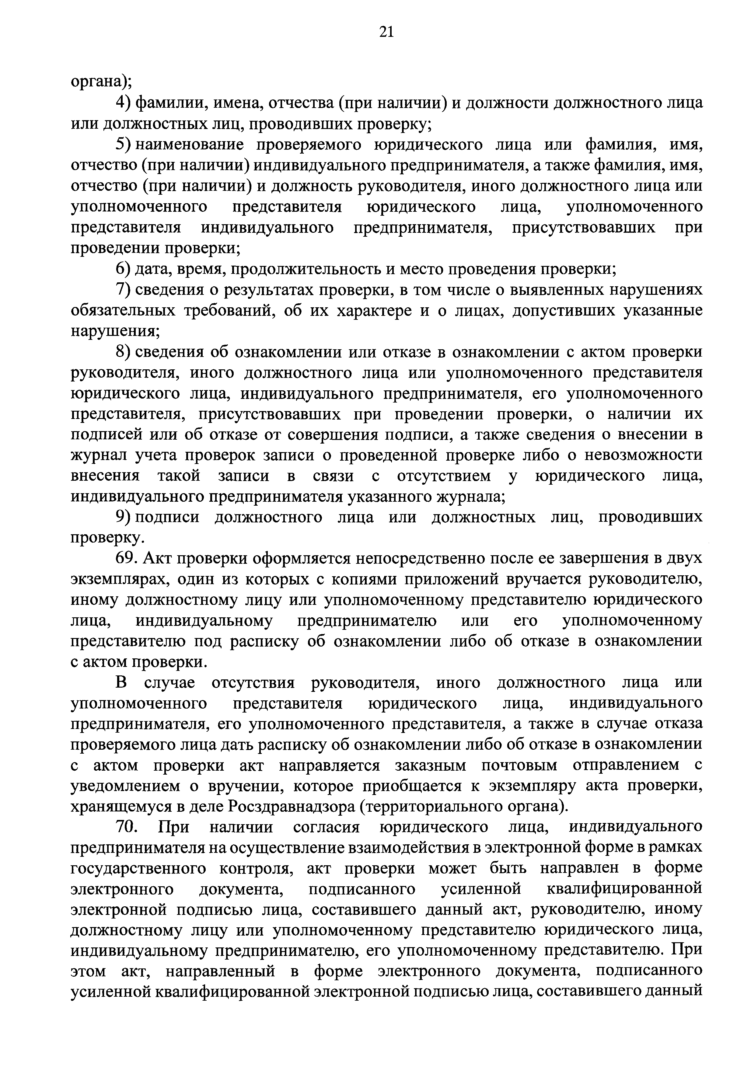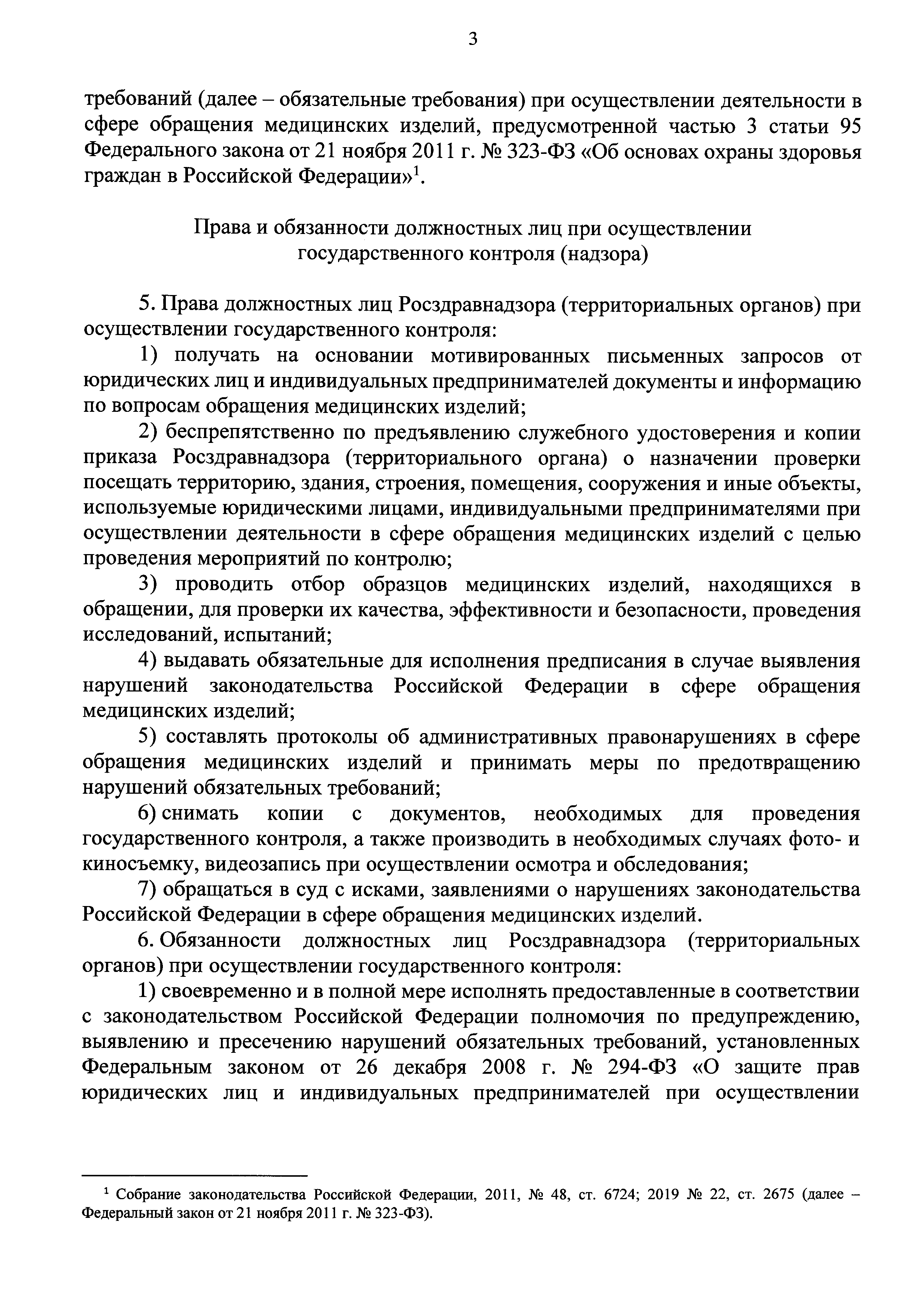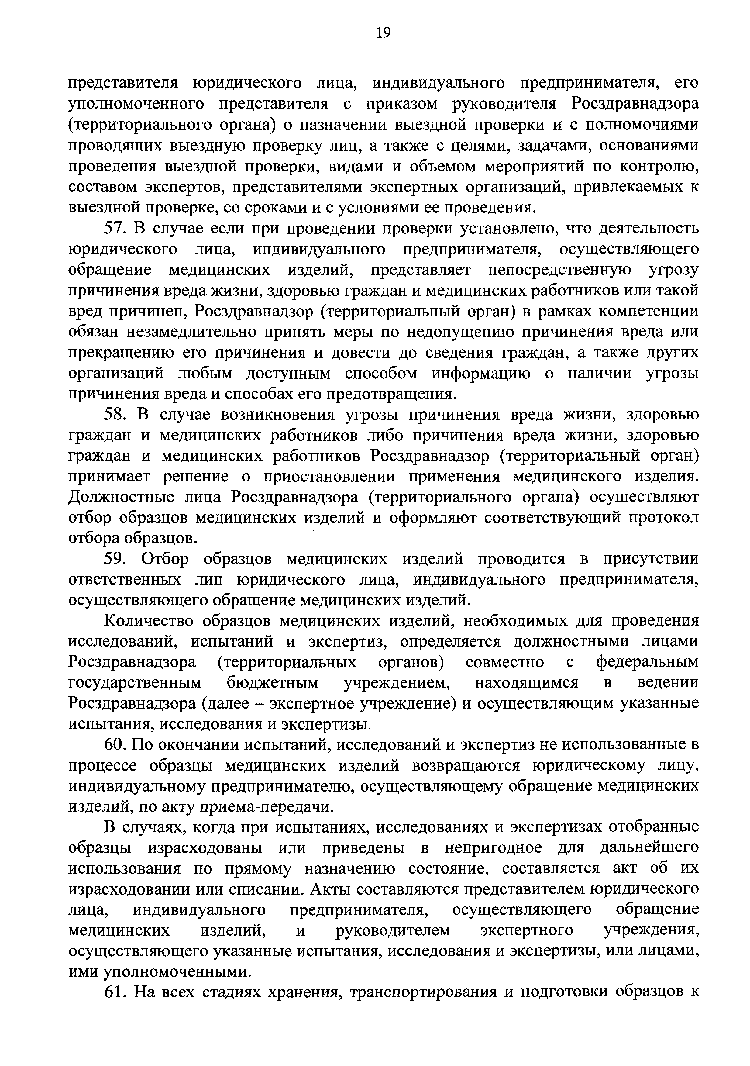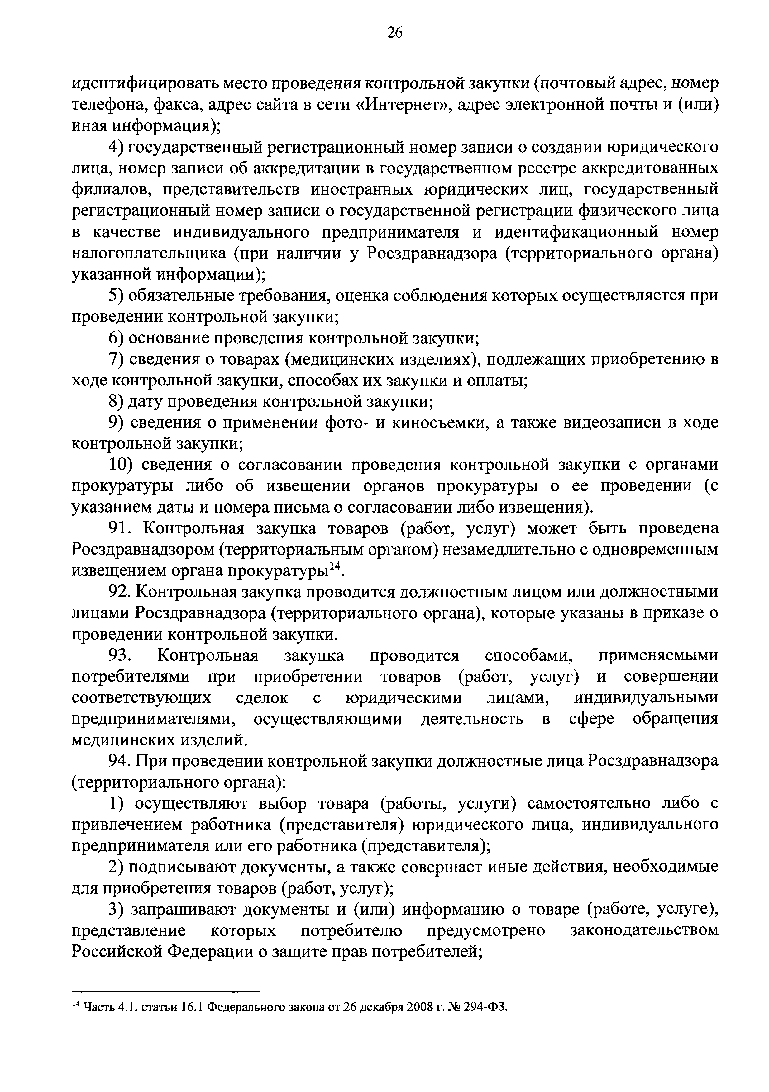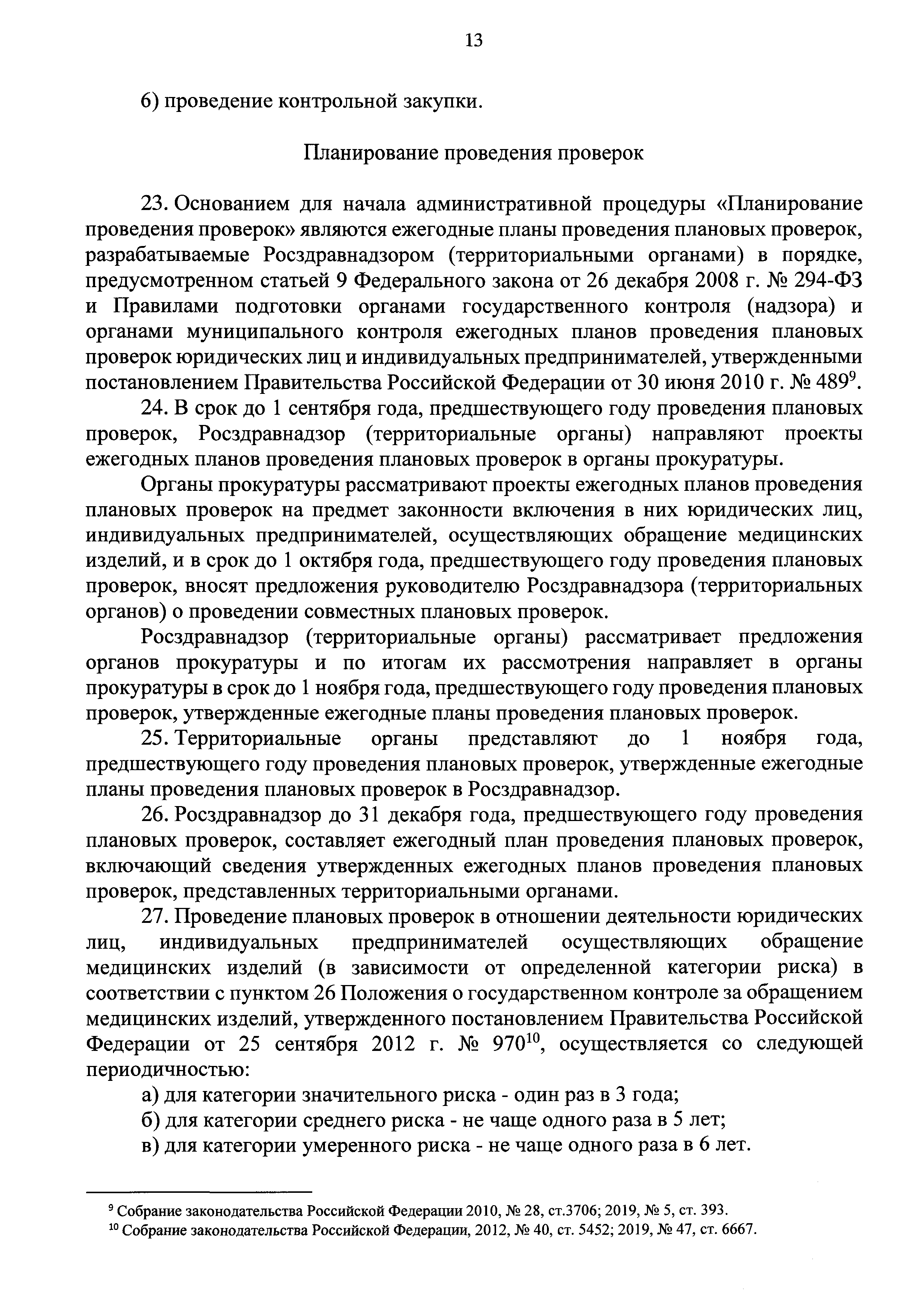 | Оглавление: | I. Общие положения II. Требования к порядку осуществления государственного контроля (надзора) III. Состав, последовательность и сроки выполнения административных процедур, требования к порядку их выполнения, в том числе особенности выполнения административных процедур в электронной форме IV. Порядок и формы контроля за осуществлением государственного контроля (надзора) V. Досудебный (внесудебный) порядок обжалования решений и действий (бездействия) Росздравнадзора (территориального органа), а также его должностных лиц |