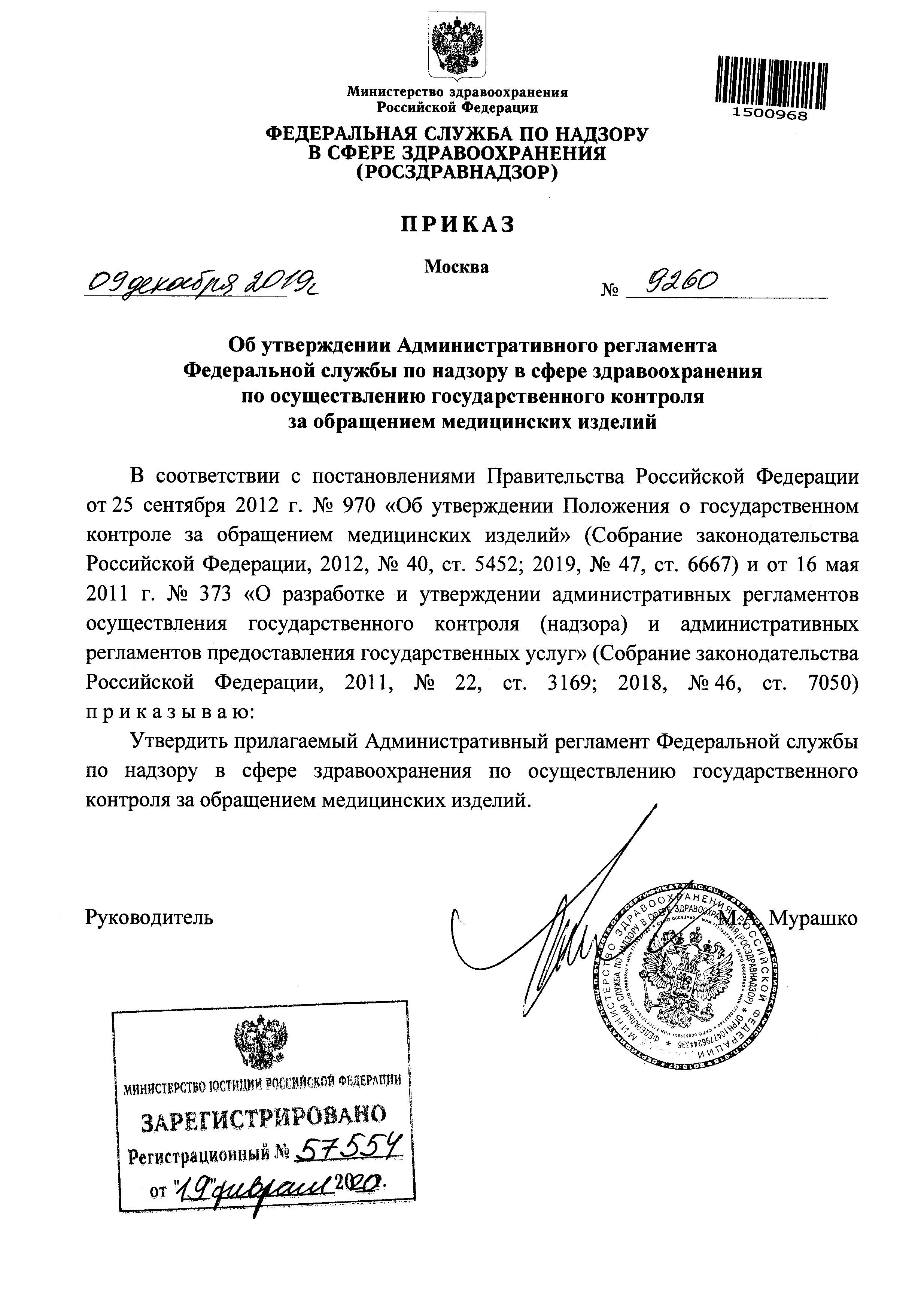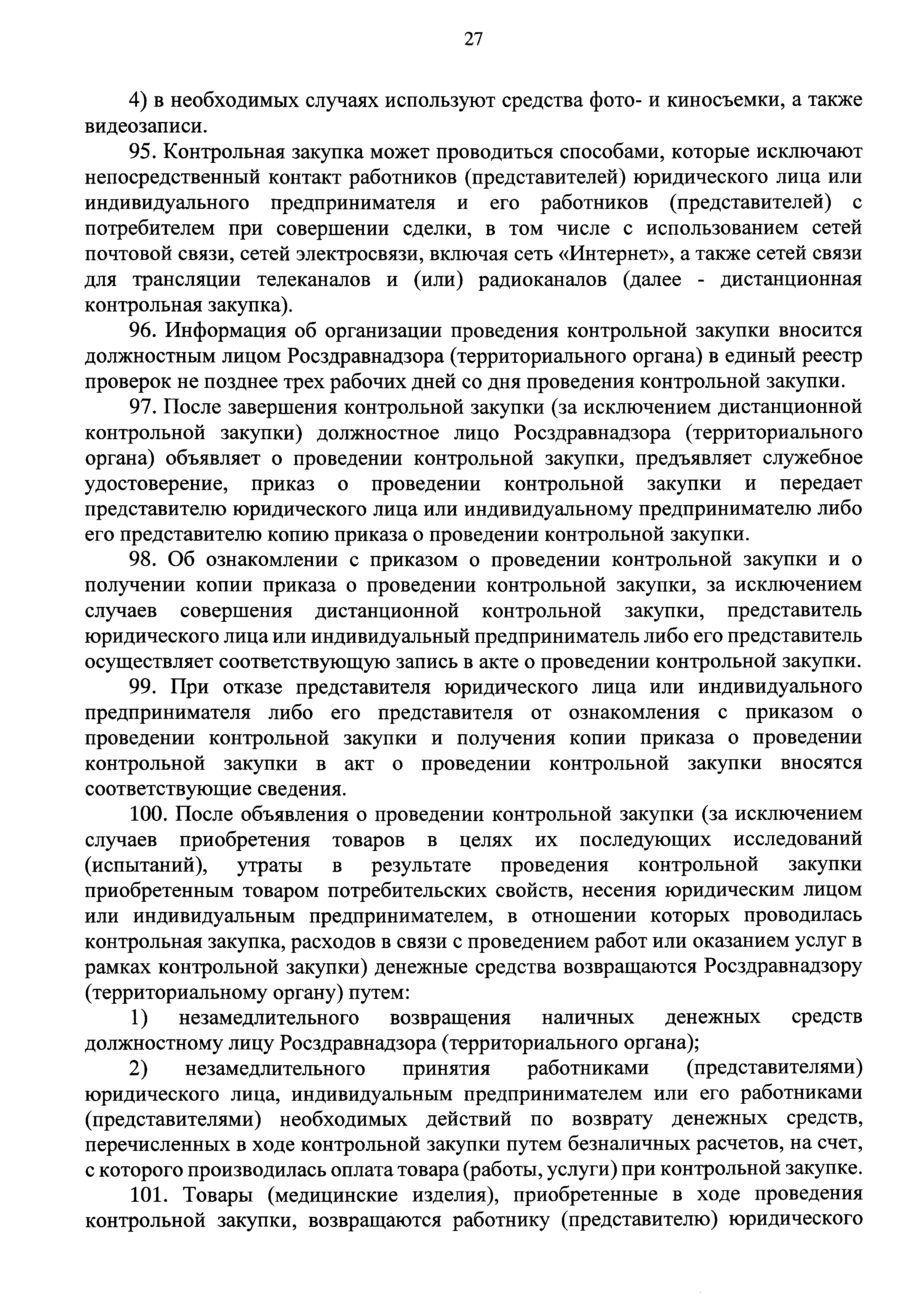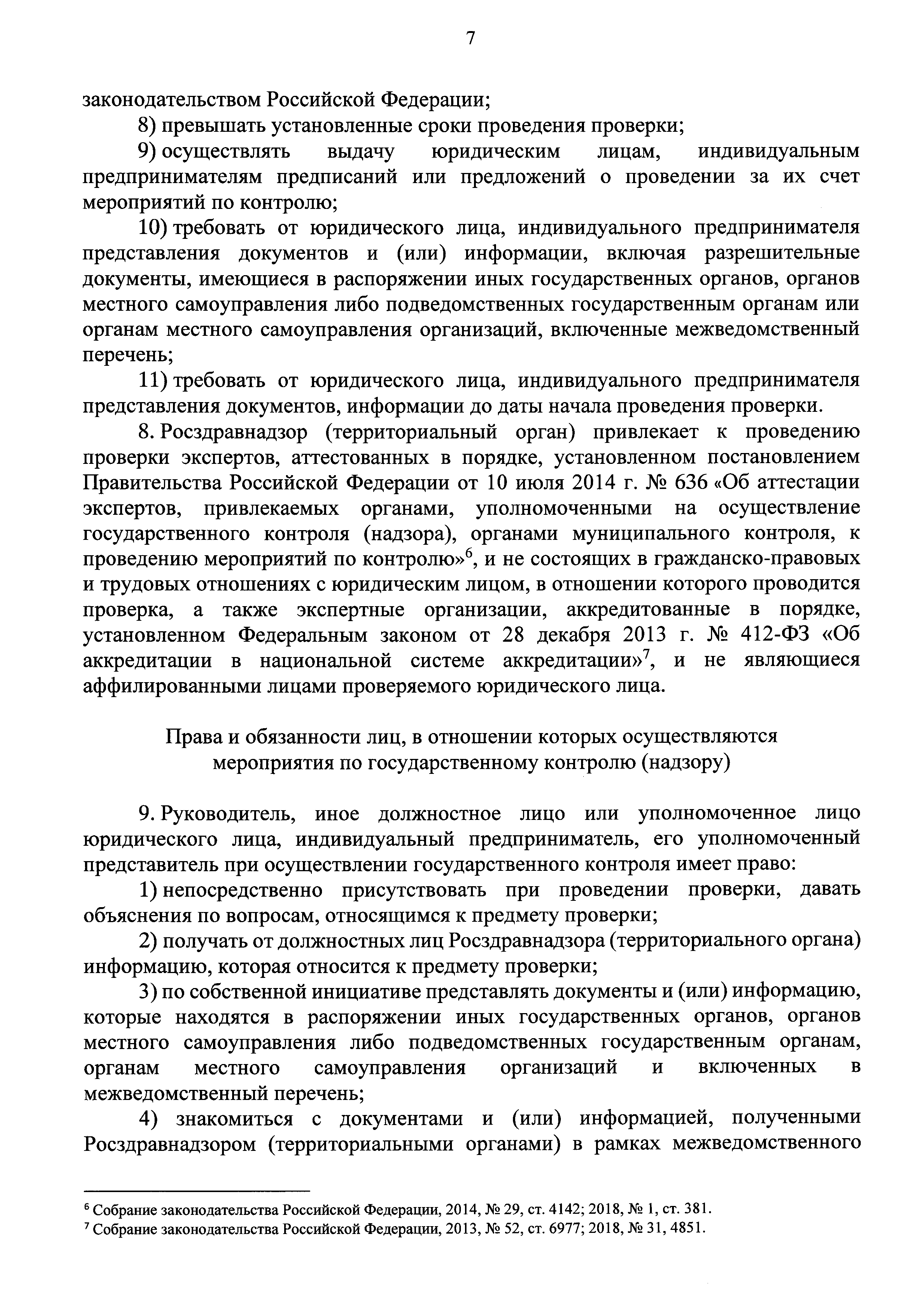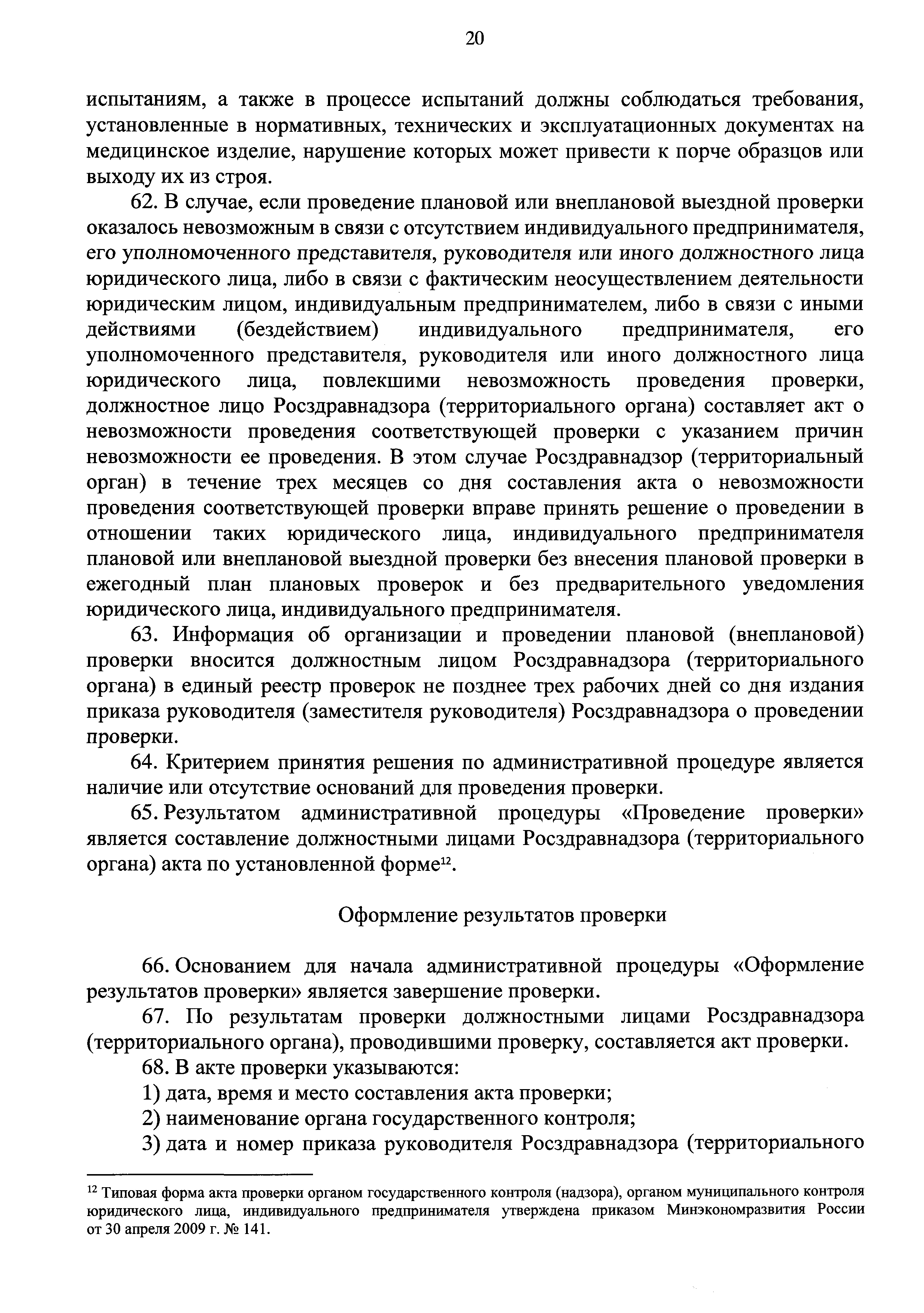 | Оглавление: | I. Общие положения II. Требования к порядку осуществления государственного контроля (надзора) III. Состав, последовательность и сроки выполнения административных процедур, требования к порядку их выполнения, в том числе особенности выполнения административных процедур в электронной форме IV. Порядок и формы контроля за осуществлением государственного контроля (надзора) V. Досудебный (внесудебный) порядок обжалования решений и действий (бездействия) Росздравнадзора (территориального органа), а также его должностных лиц |